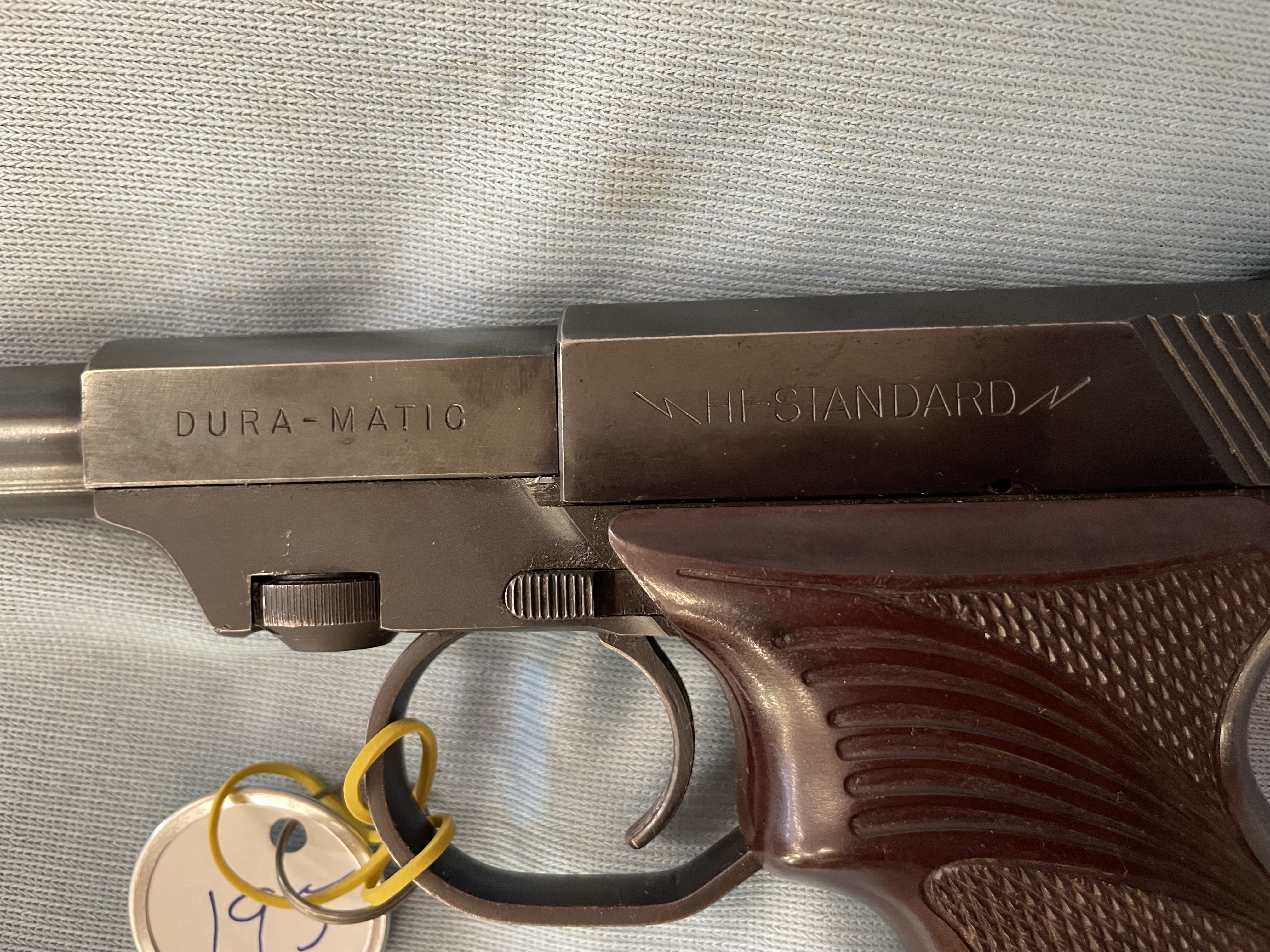 High Standard Dura – Matic M-101 22LR with one (1) mag, as pictured. Clean old gun, overall, and the