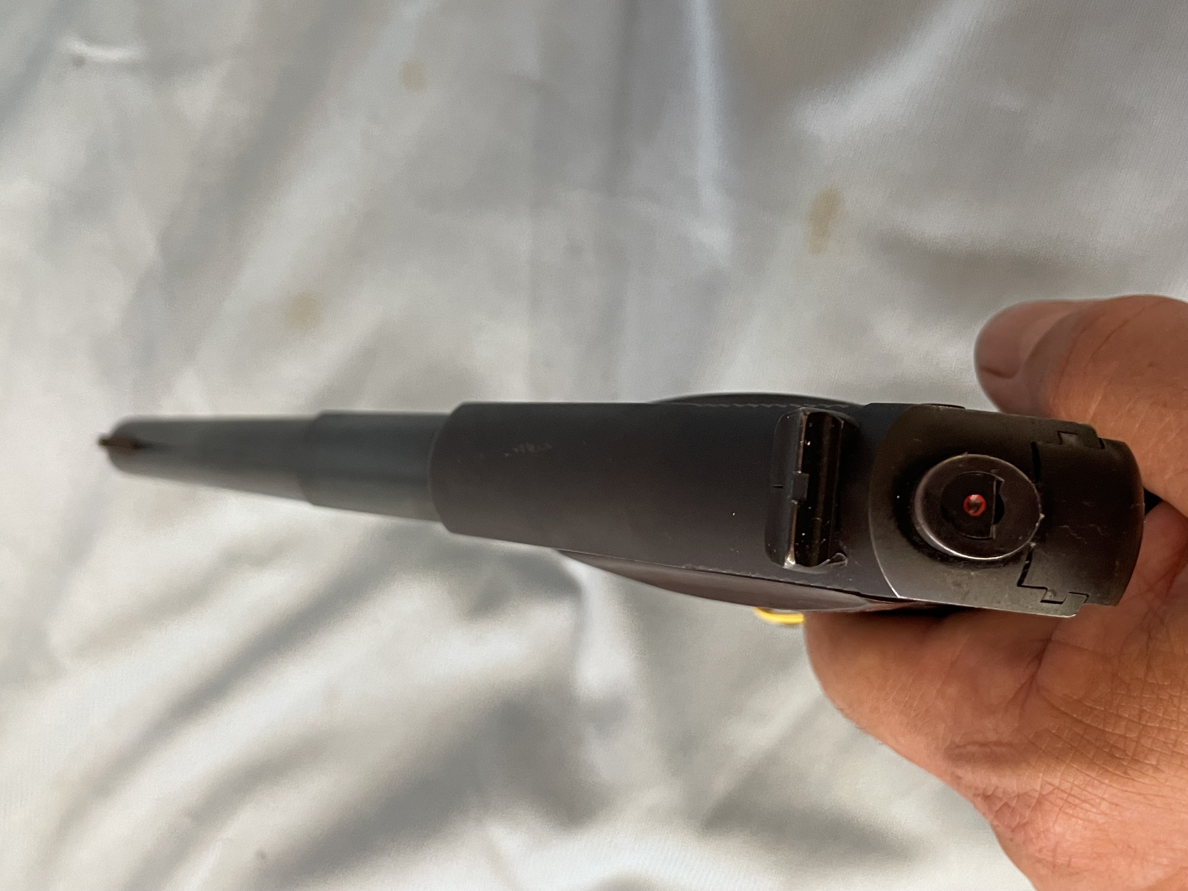 grip panels are not cracked or damaged. Bore is bright and shiny.