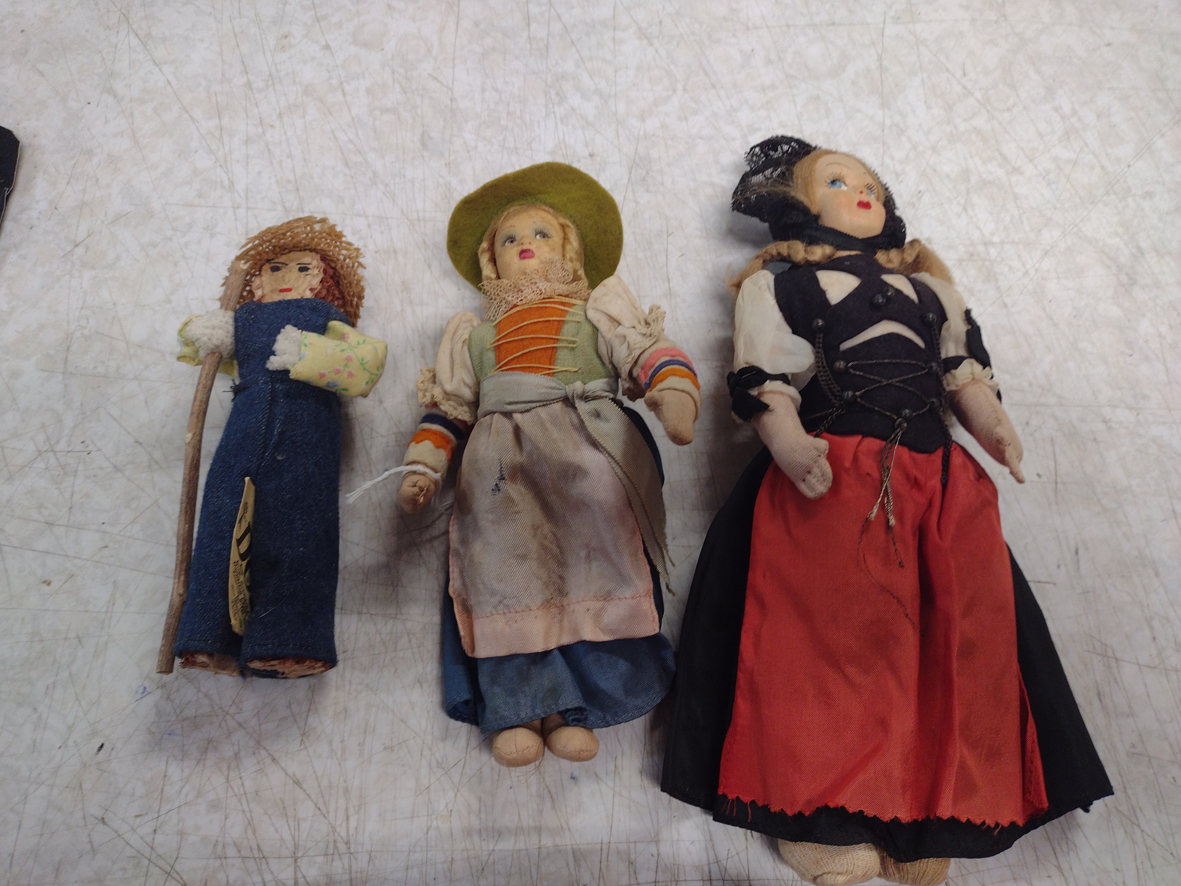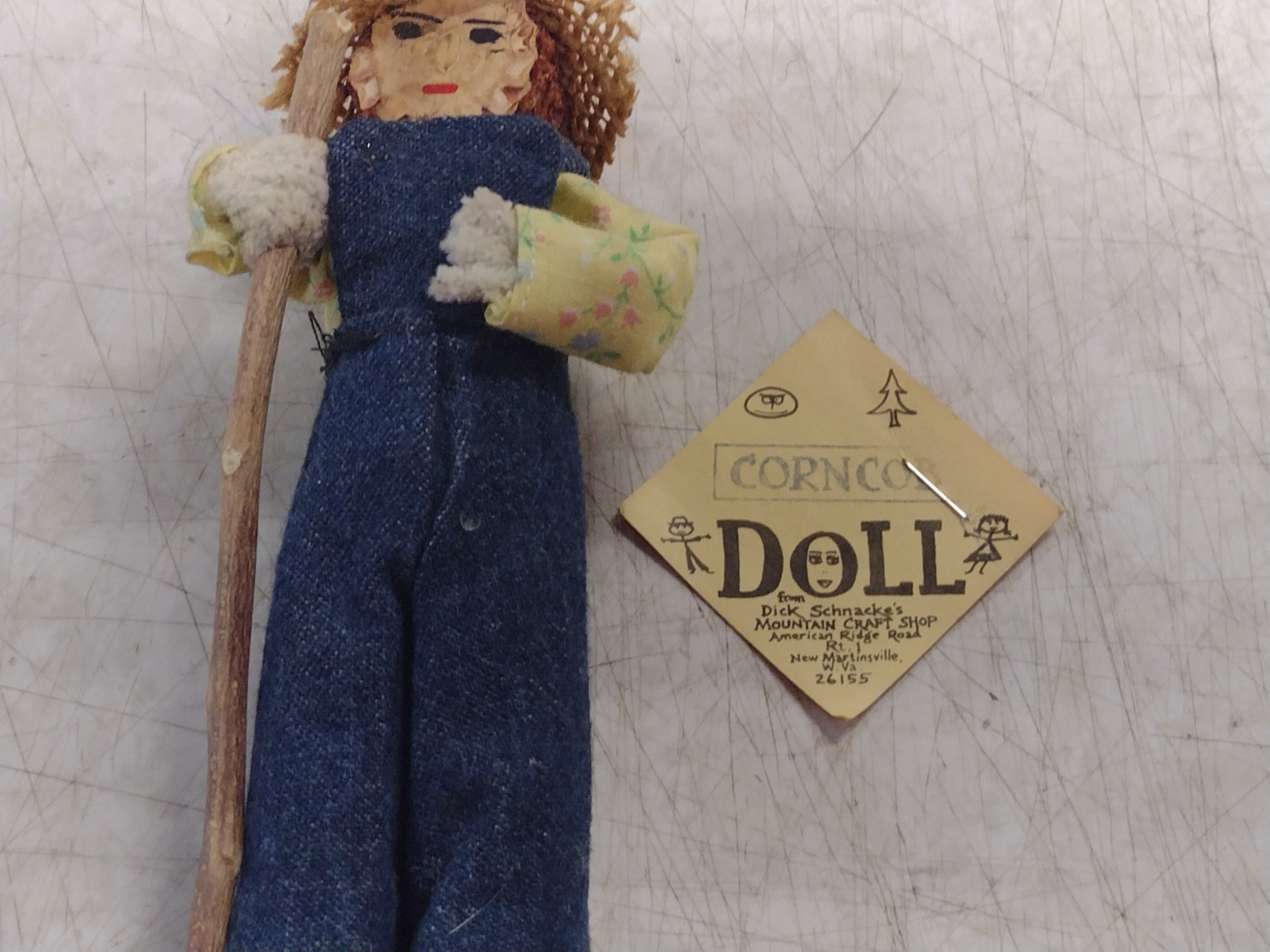 Three Small Antique Dolls/ Very Old Corn Cobb Doll, Roma Italy Doll and Rag Doll Shipping $18.00