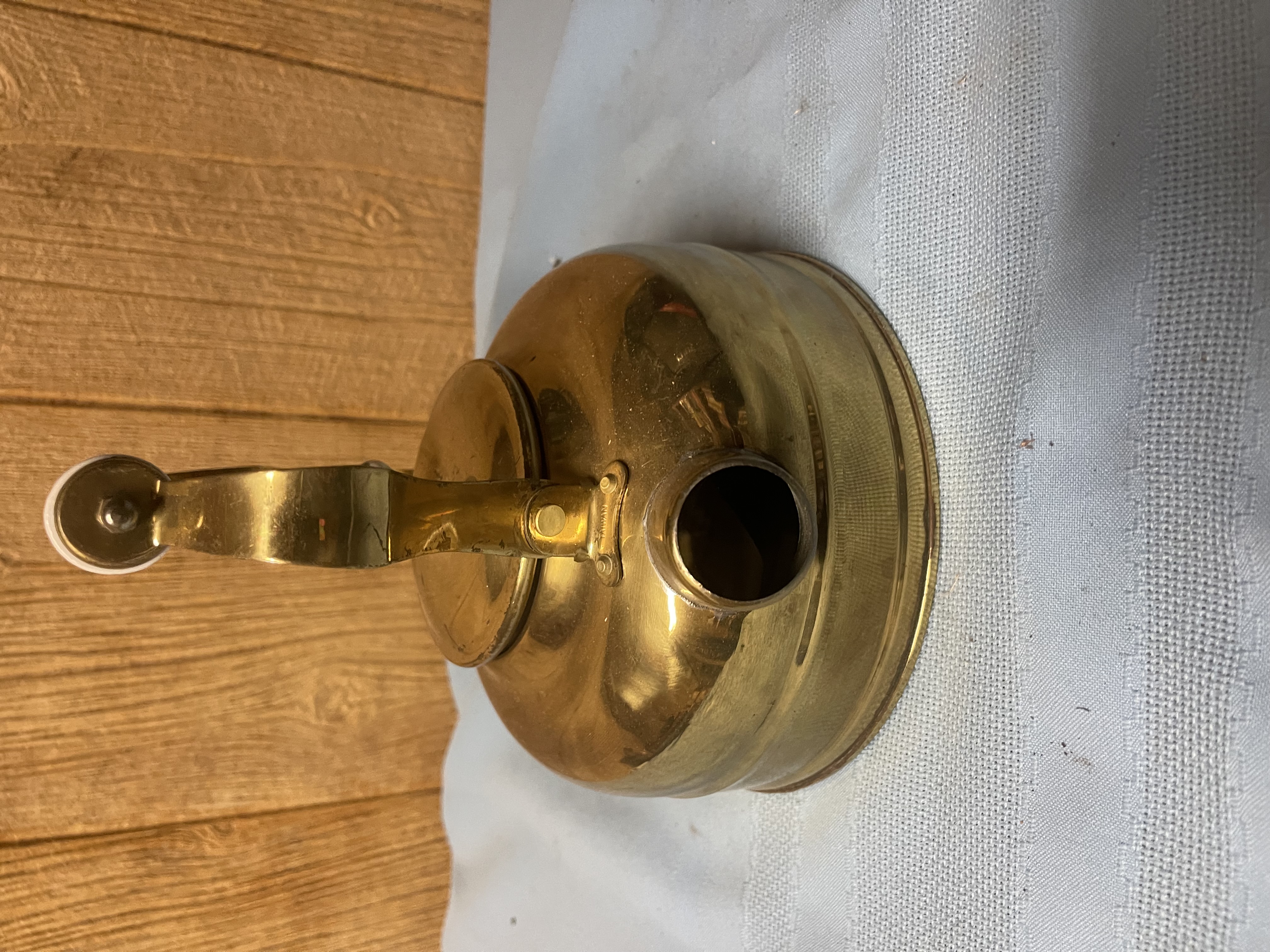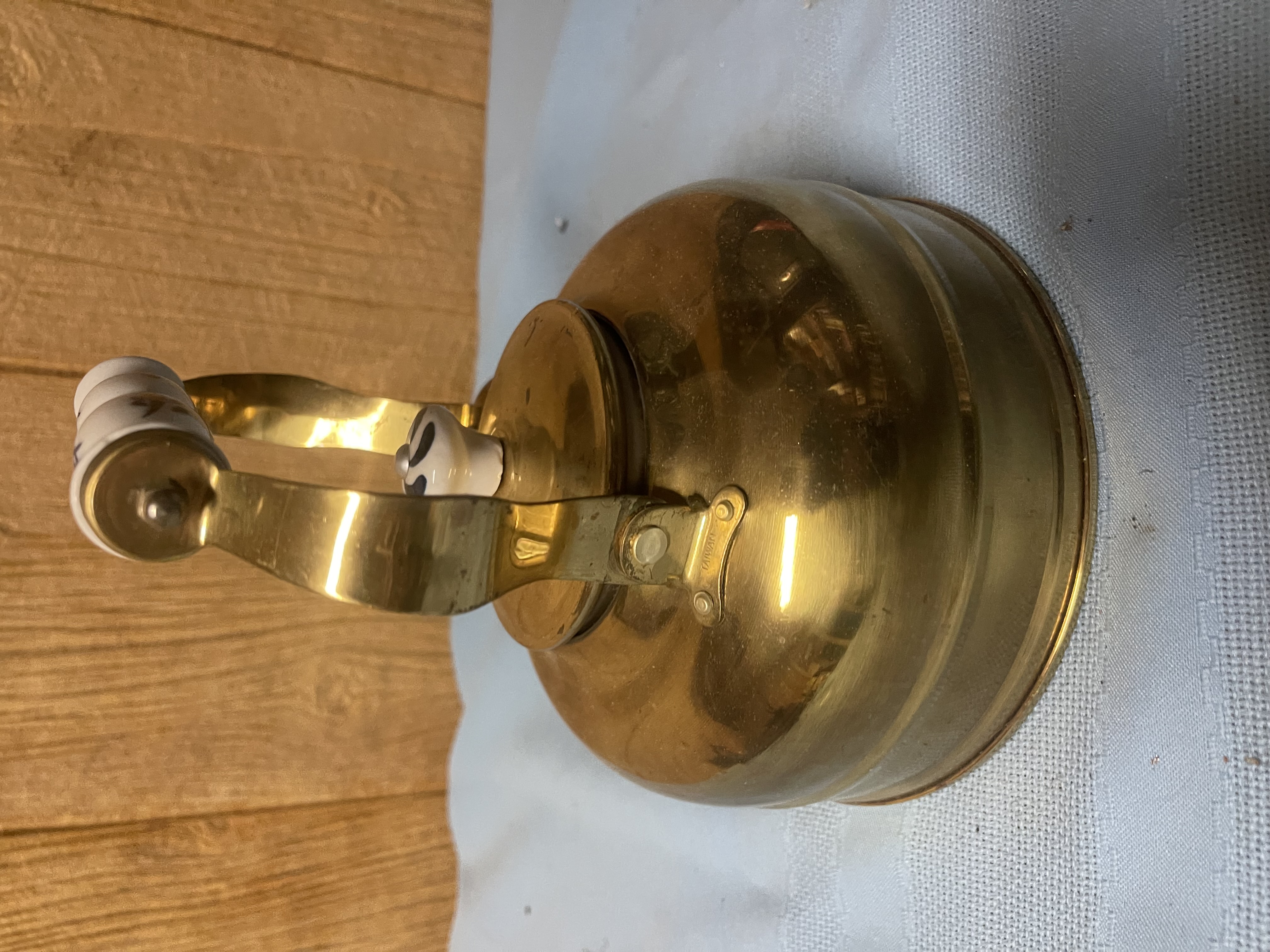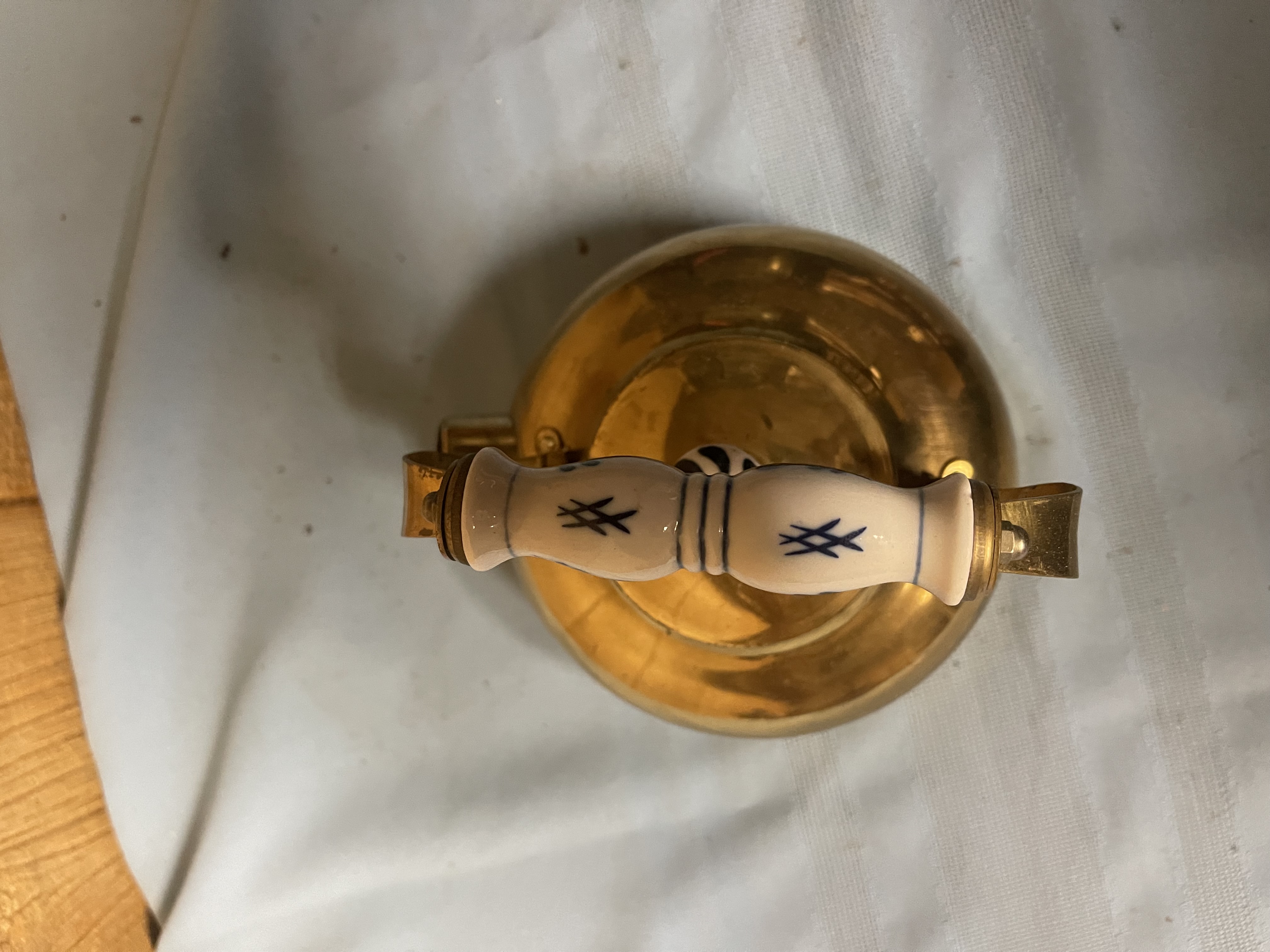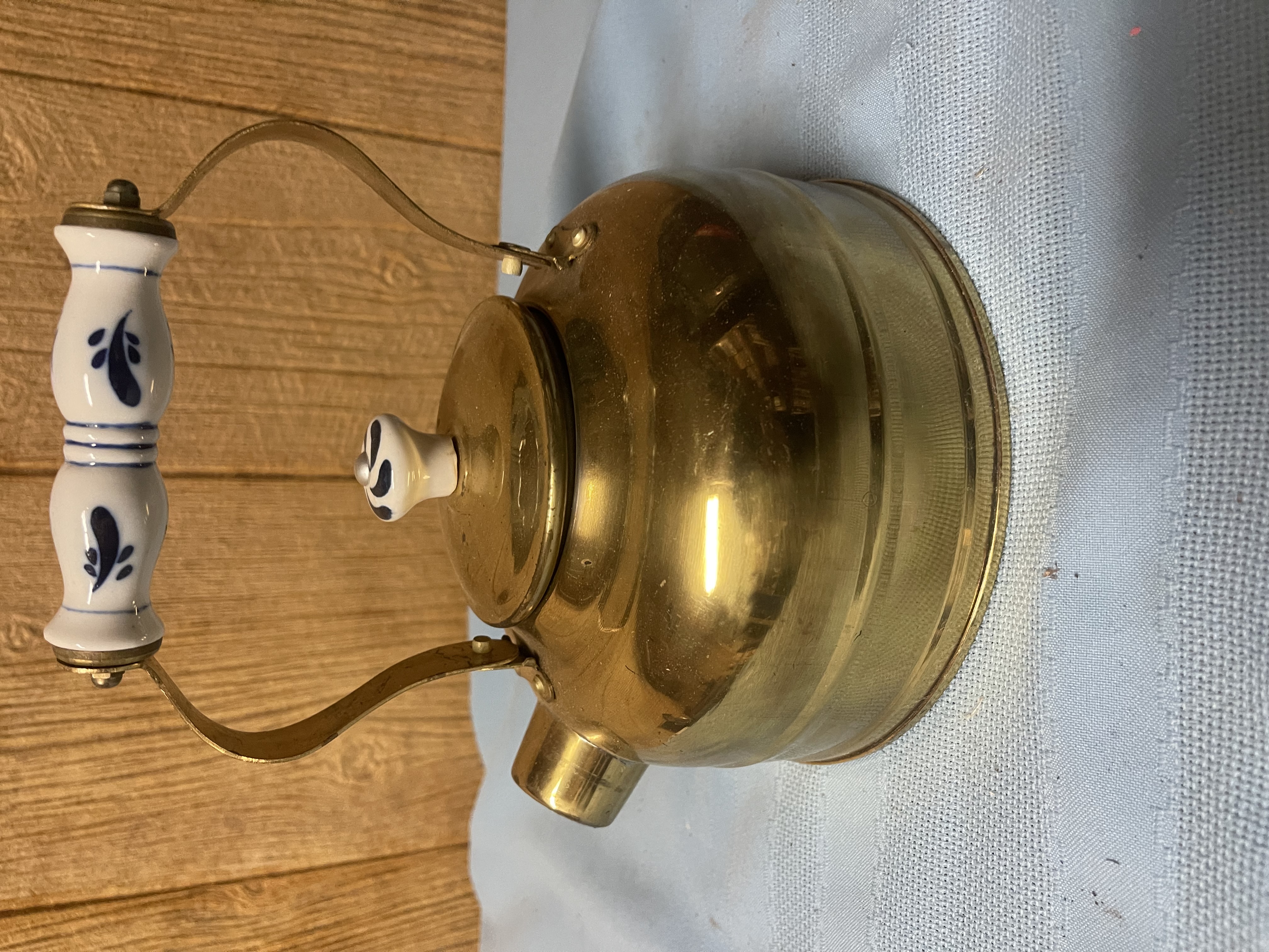 Vintage Copper Tea Kettle Teapot Ceramic Porcelain Handles White Blue MCM 18 shipping