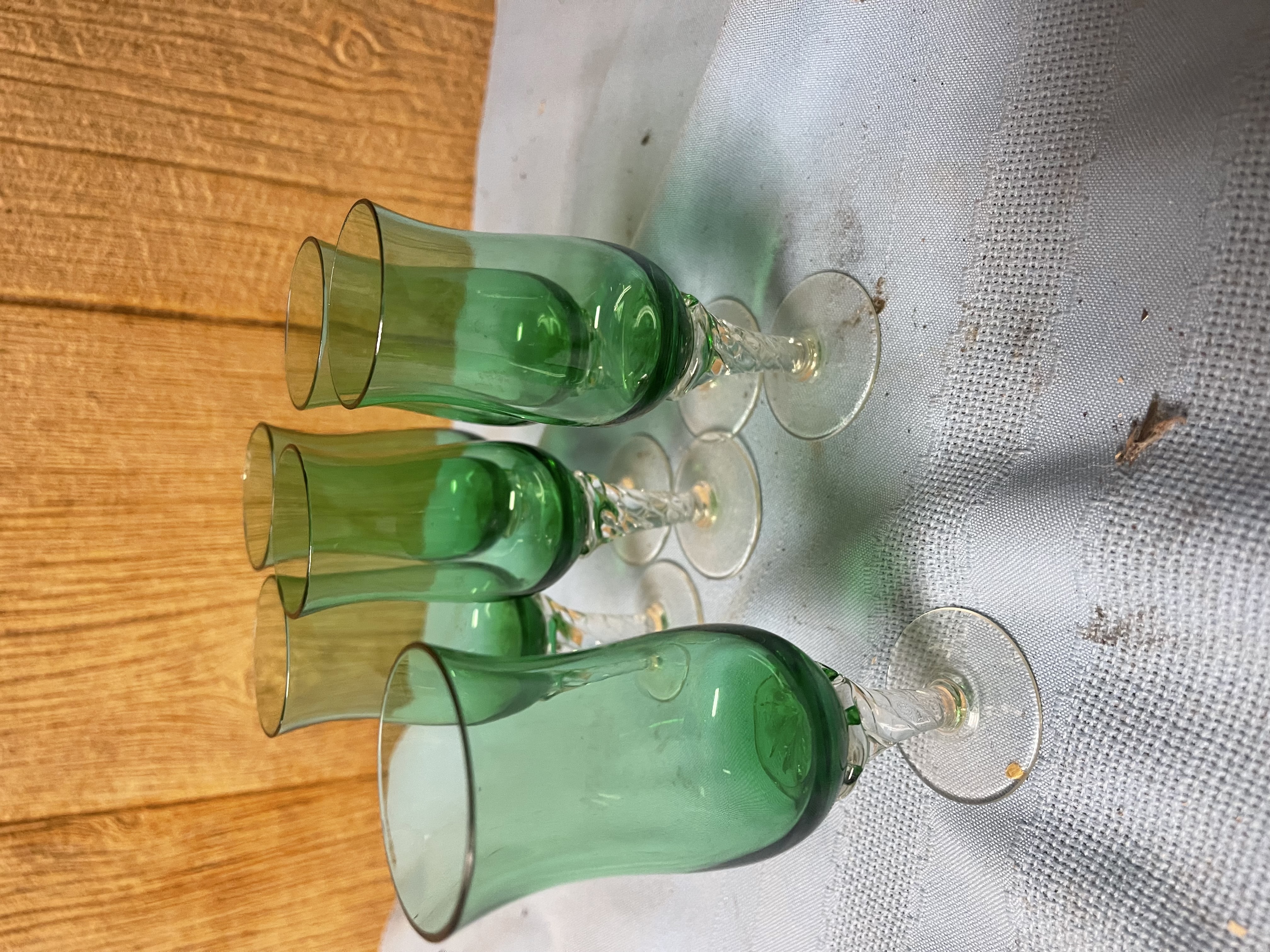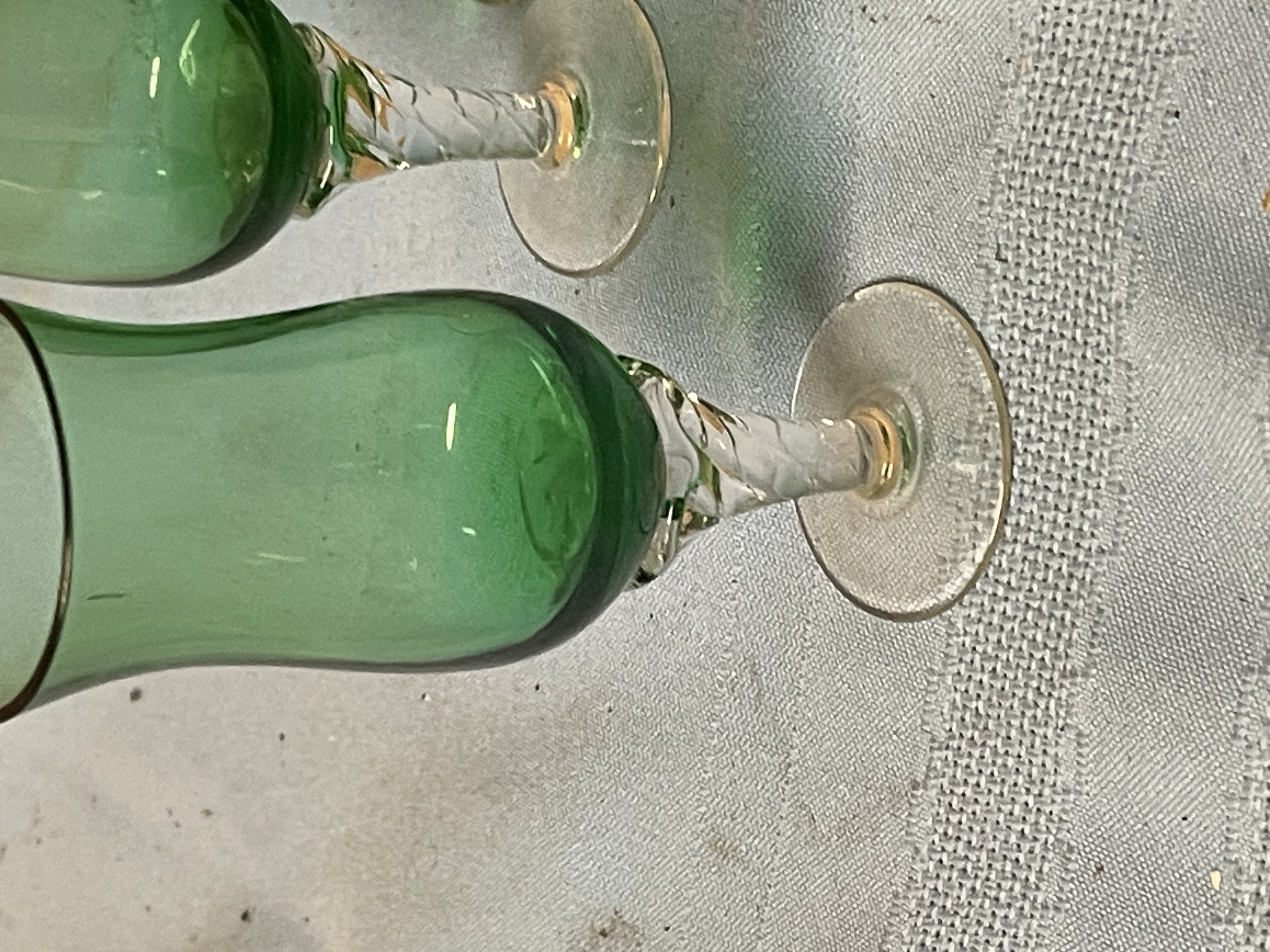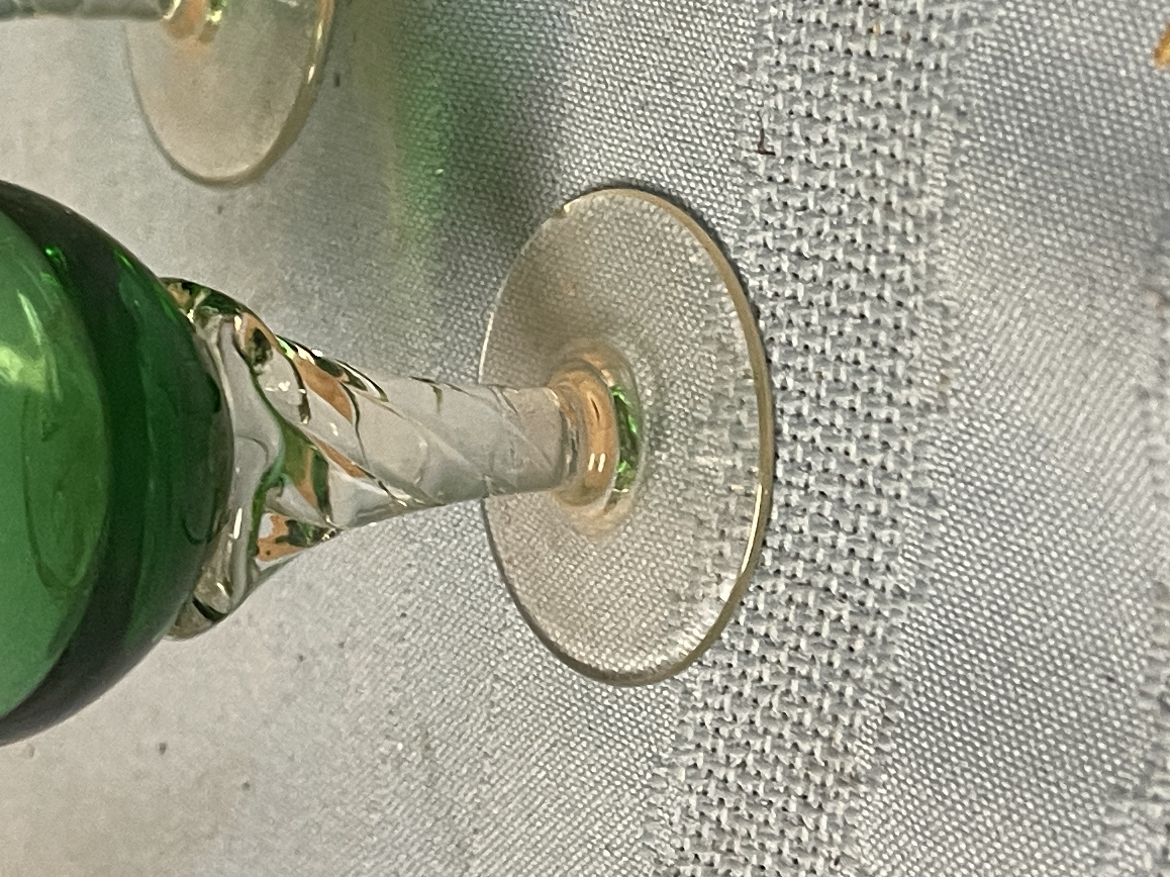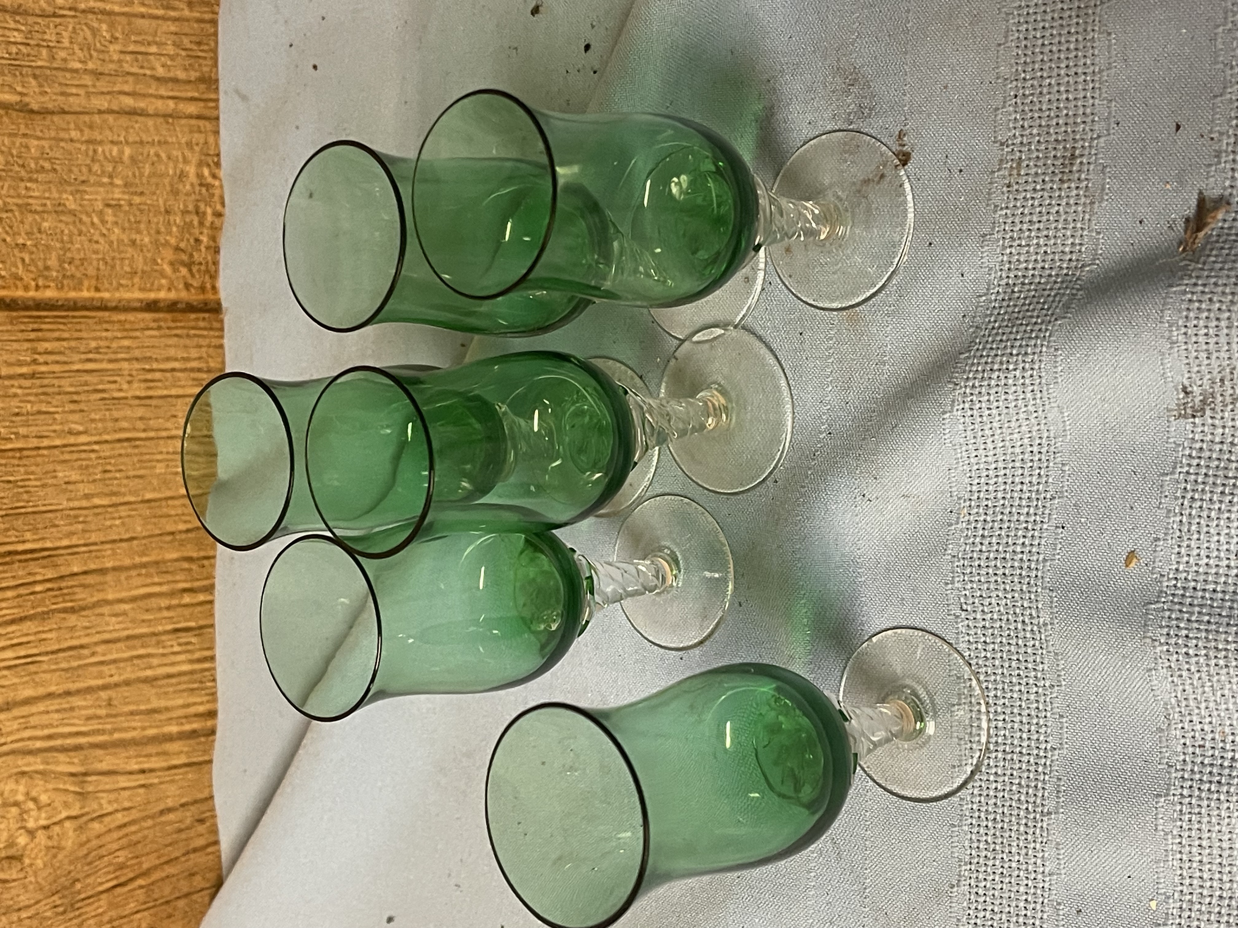Set of 6- Green Cordial glasses with clear twist on stem no shipping