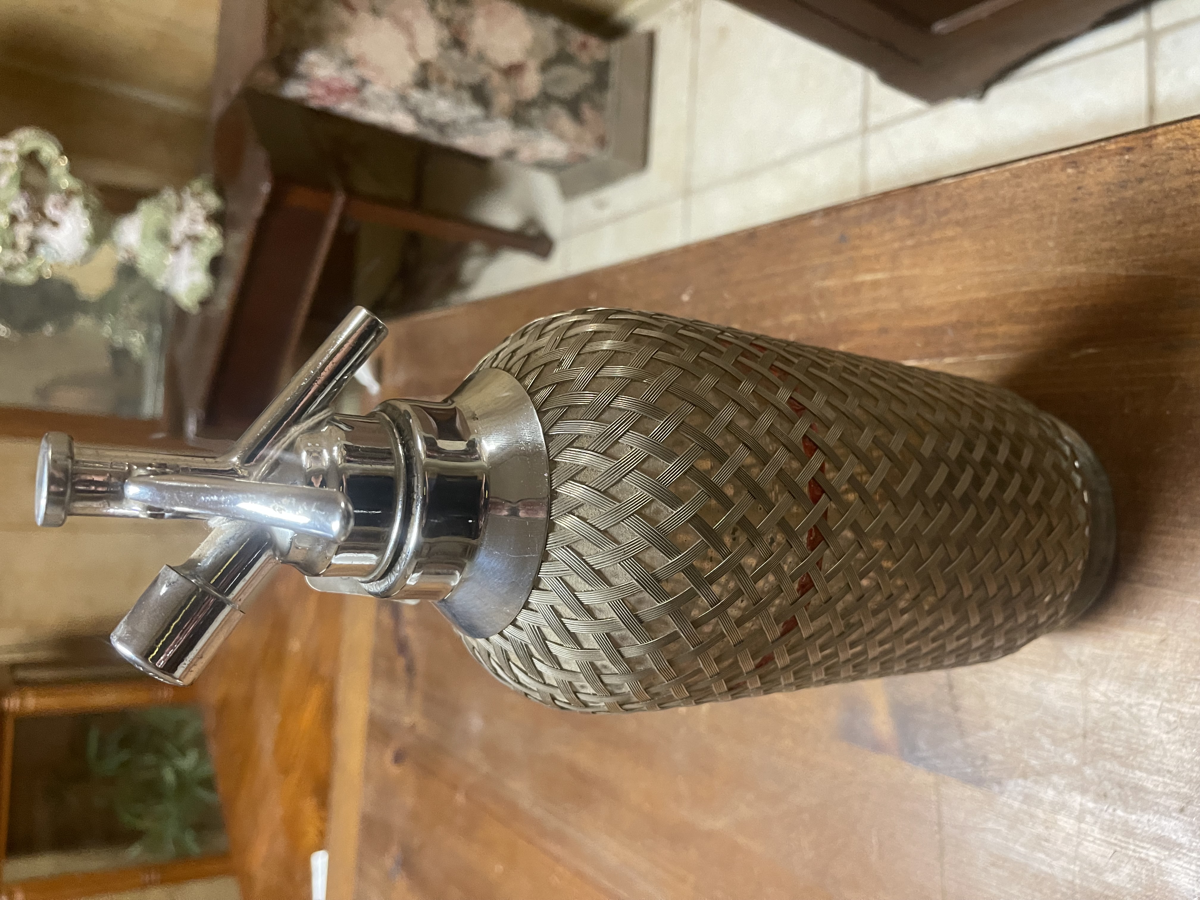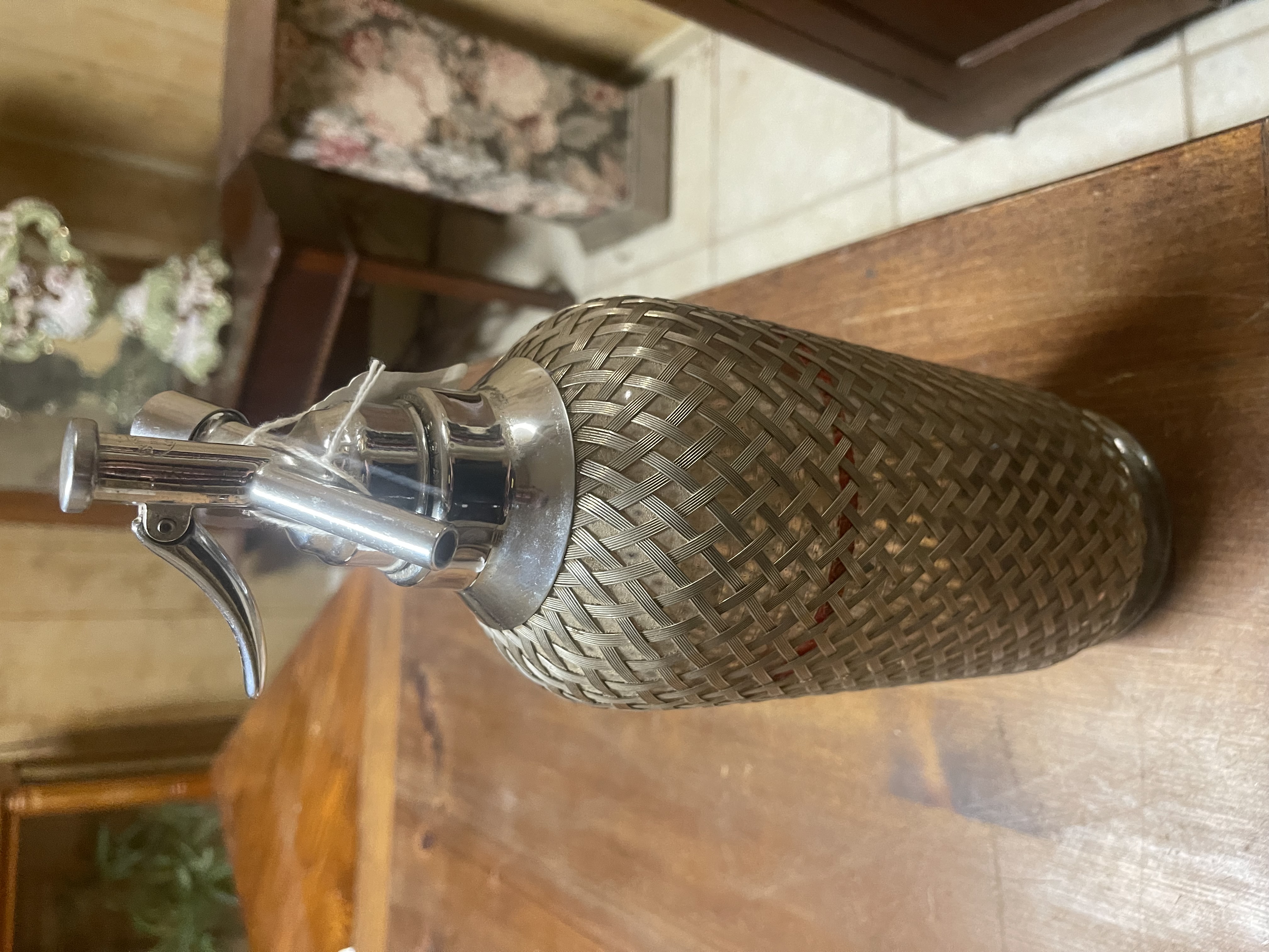Sparklets London England Seltzer Water Bottle Metal Mesh Wrapped Art Deco 1924 No shipping