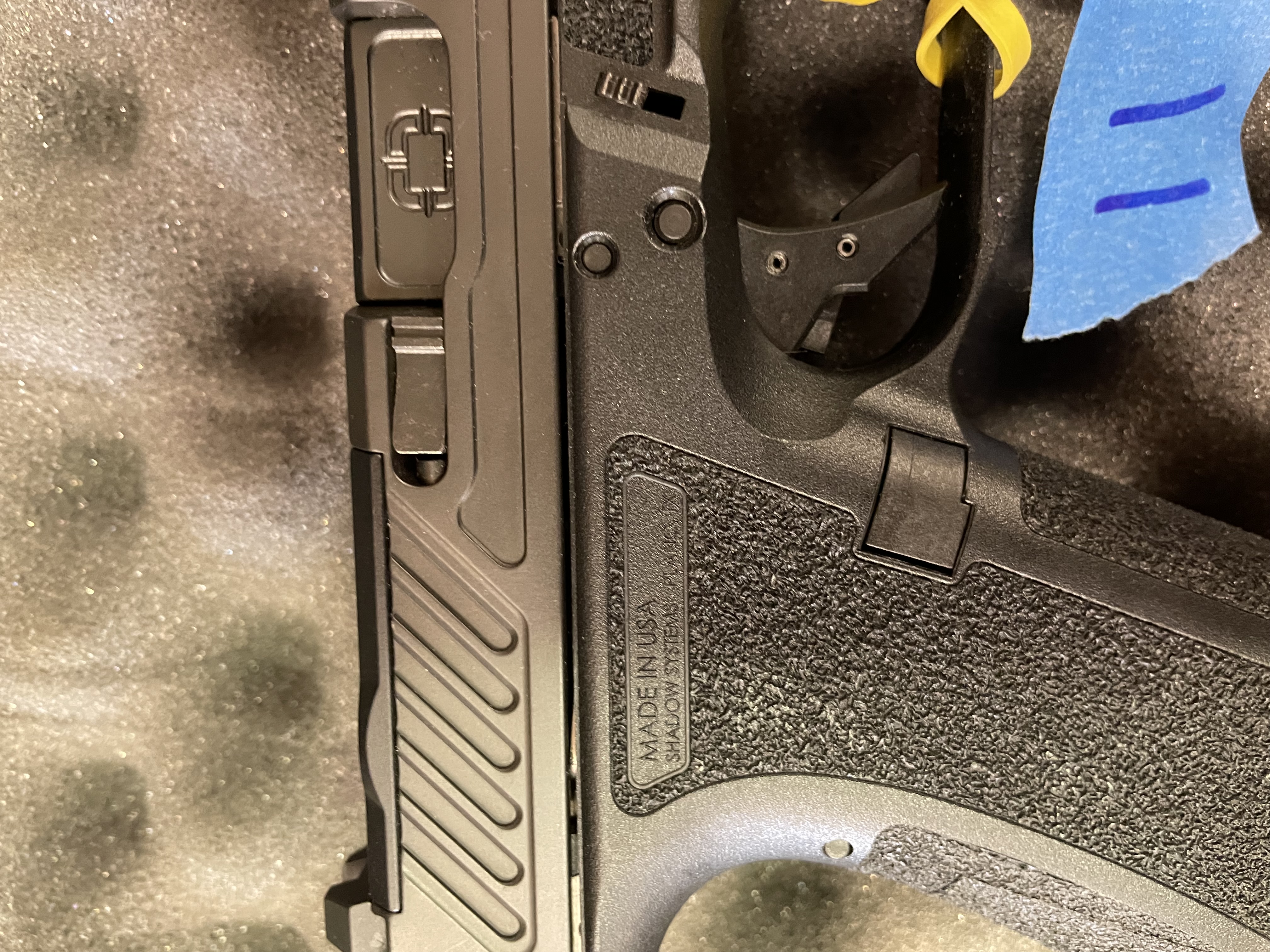 Factory Shadow Systems DR920P Elite Slide Red dot Optic Pistol in 9mm. Compensated black barrel. Tritium front sight. Black Frame & slide. Optics ready slide. 17 rd. magazine.