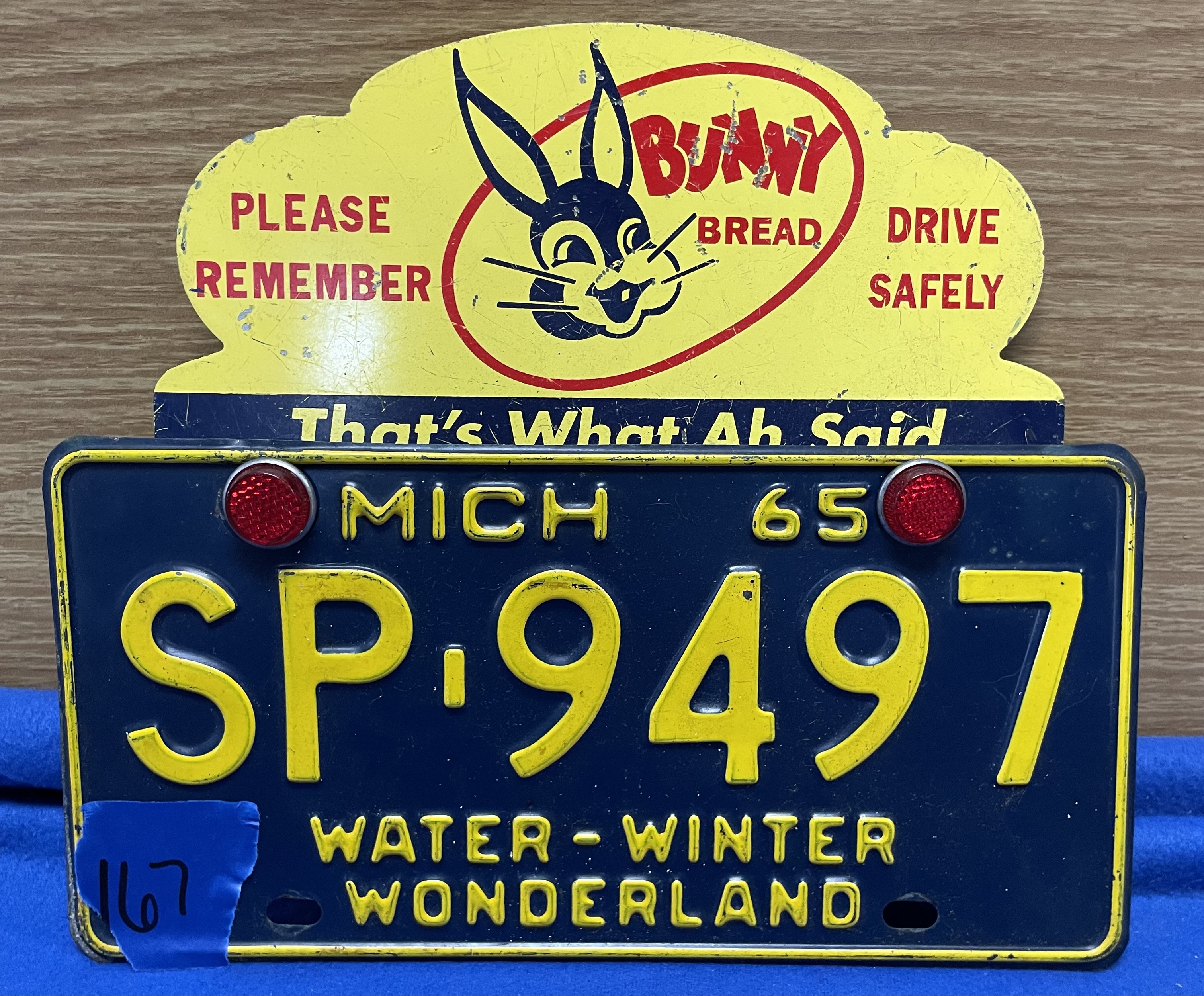 65 Michigan License Plate w/ Detachable Bunny Bread Sign, Shipping $10