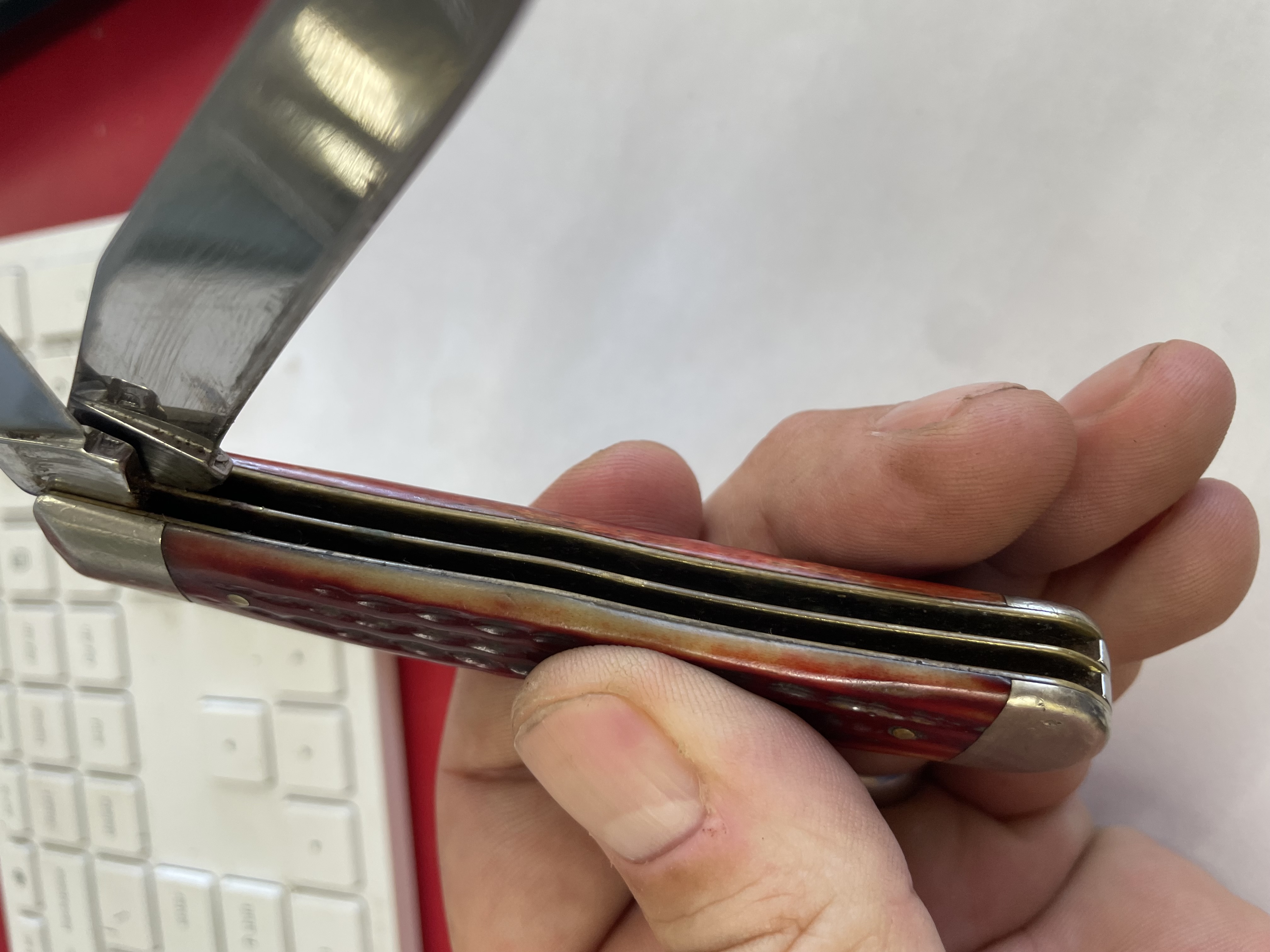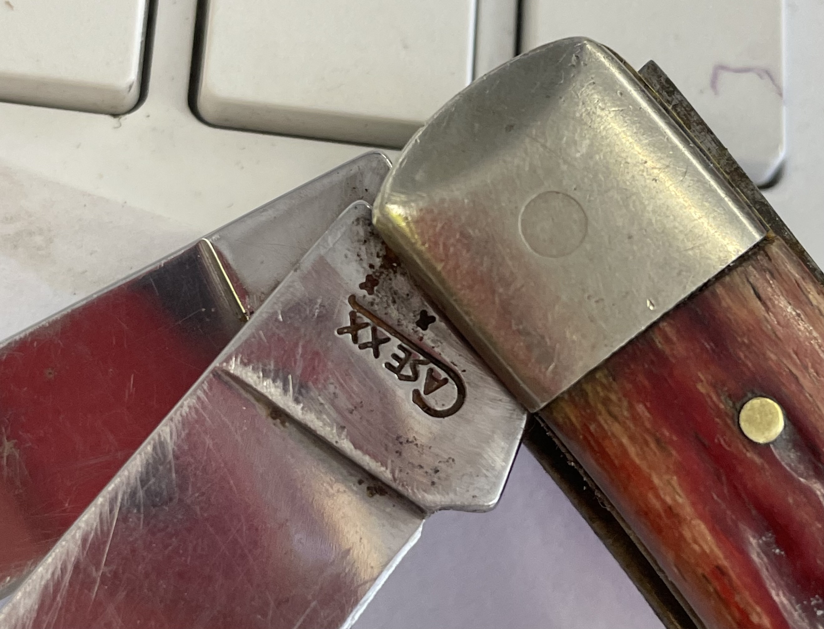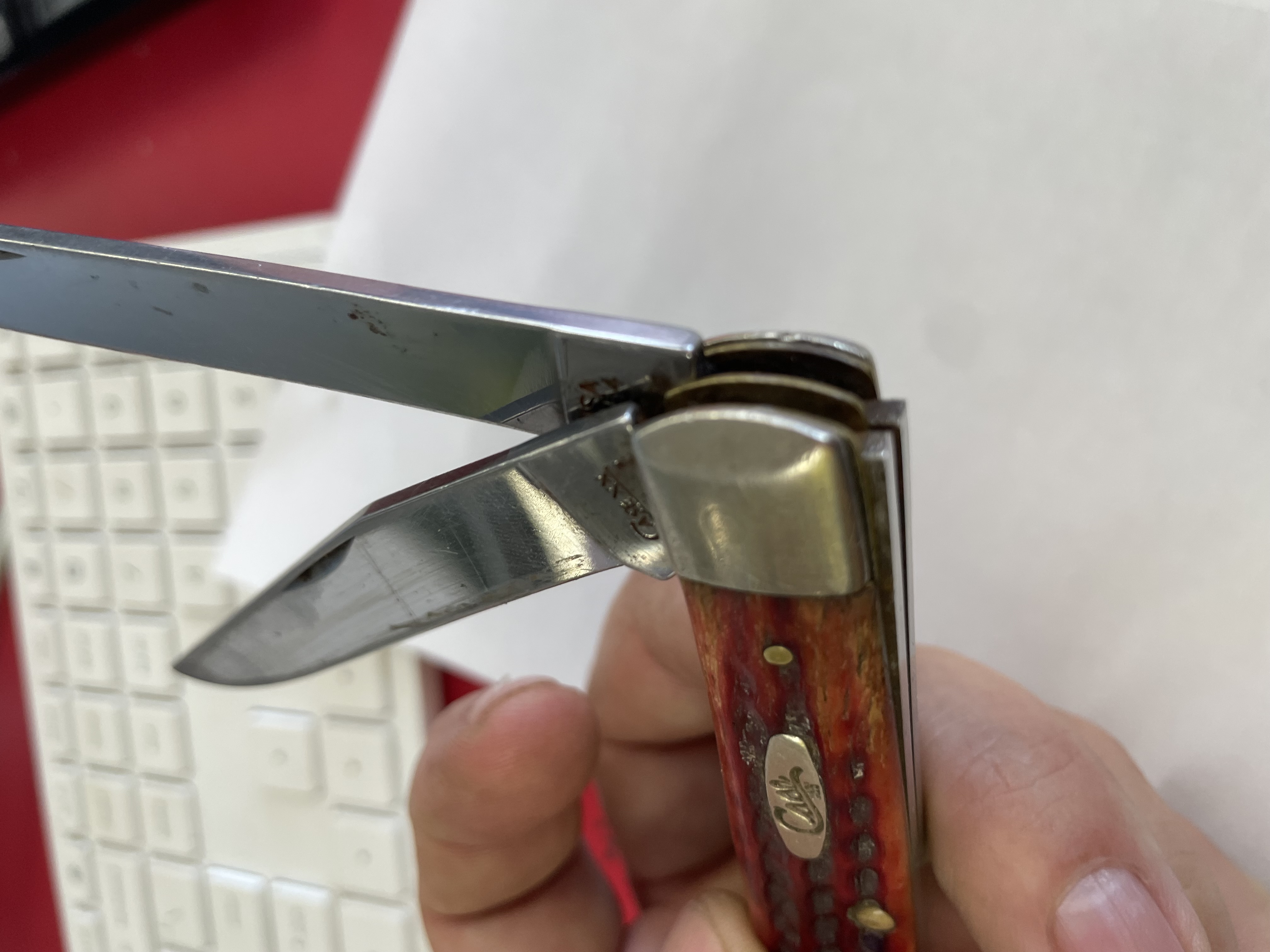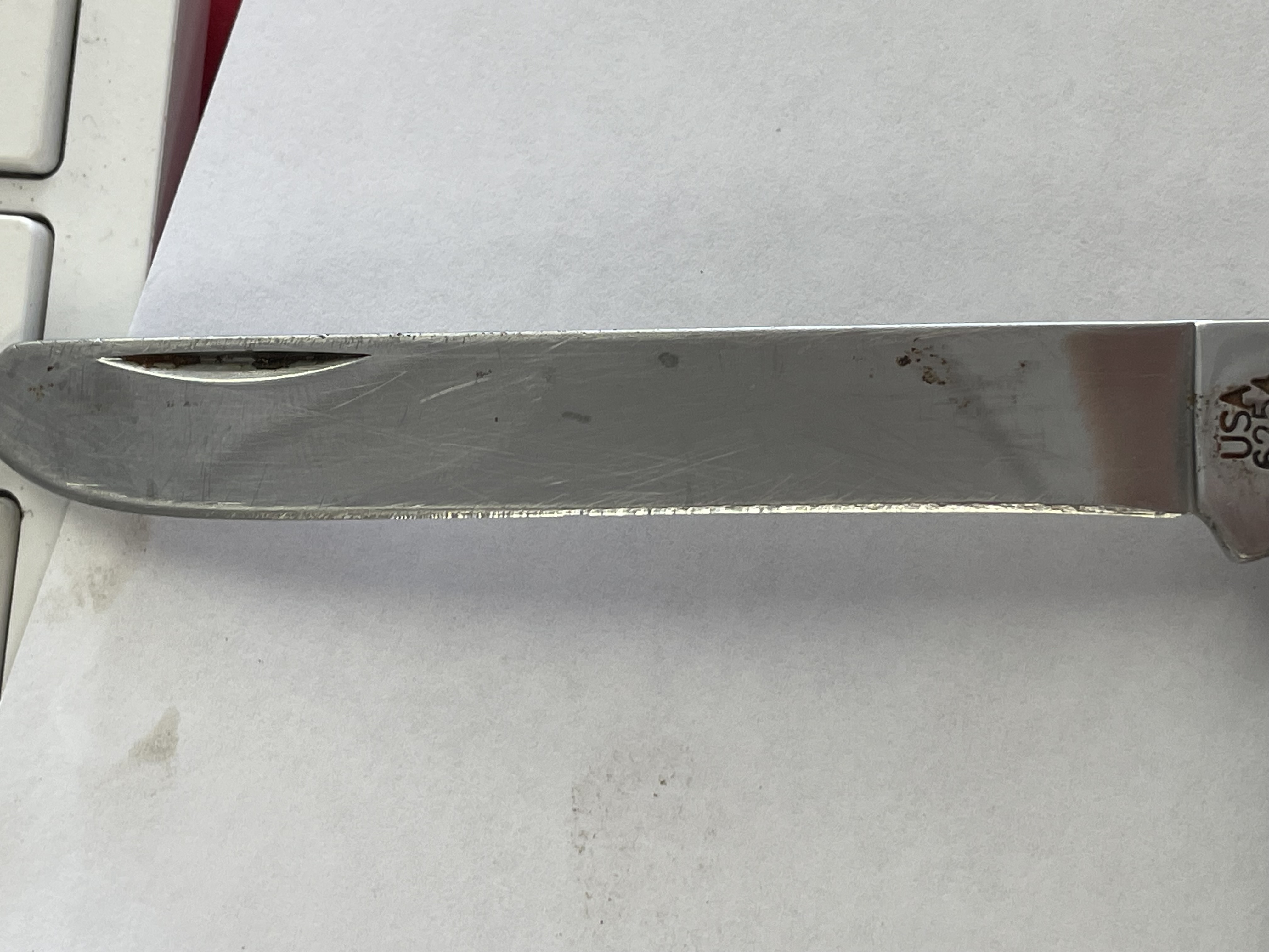 CASE XX, TRAPPER, 6254 SS, VINTAGE RED HANDLES IT HAS BEEN USED