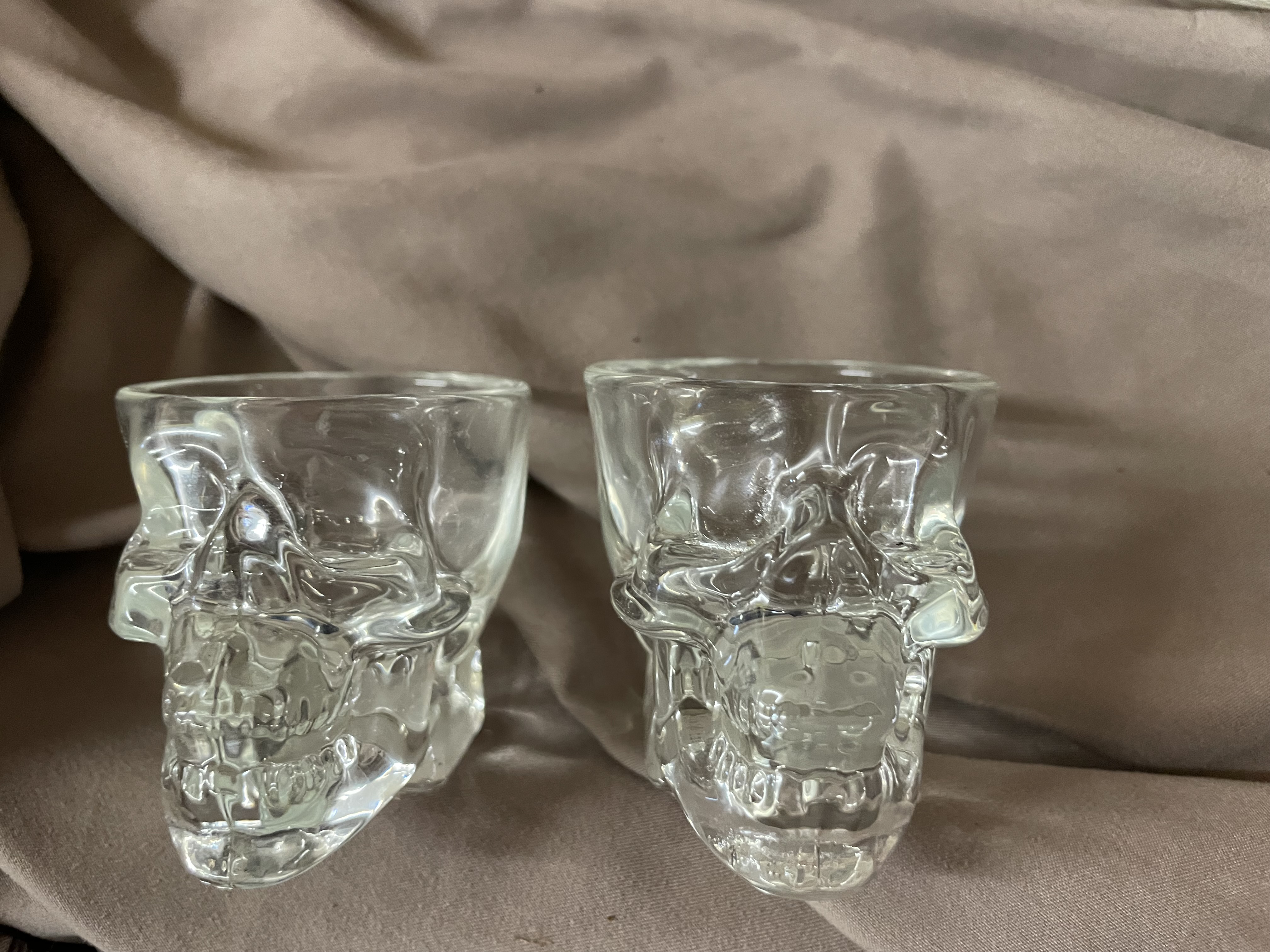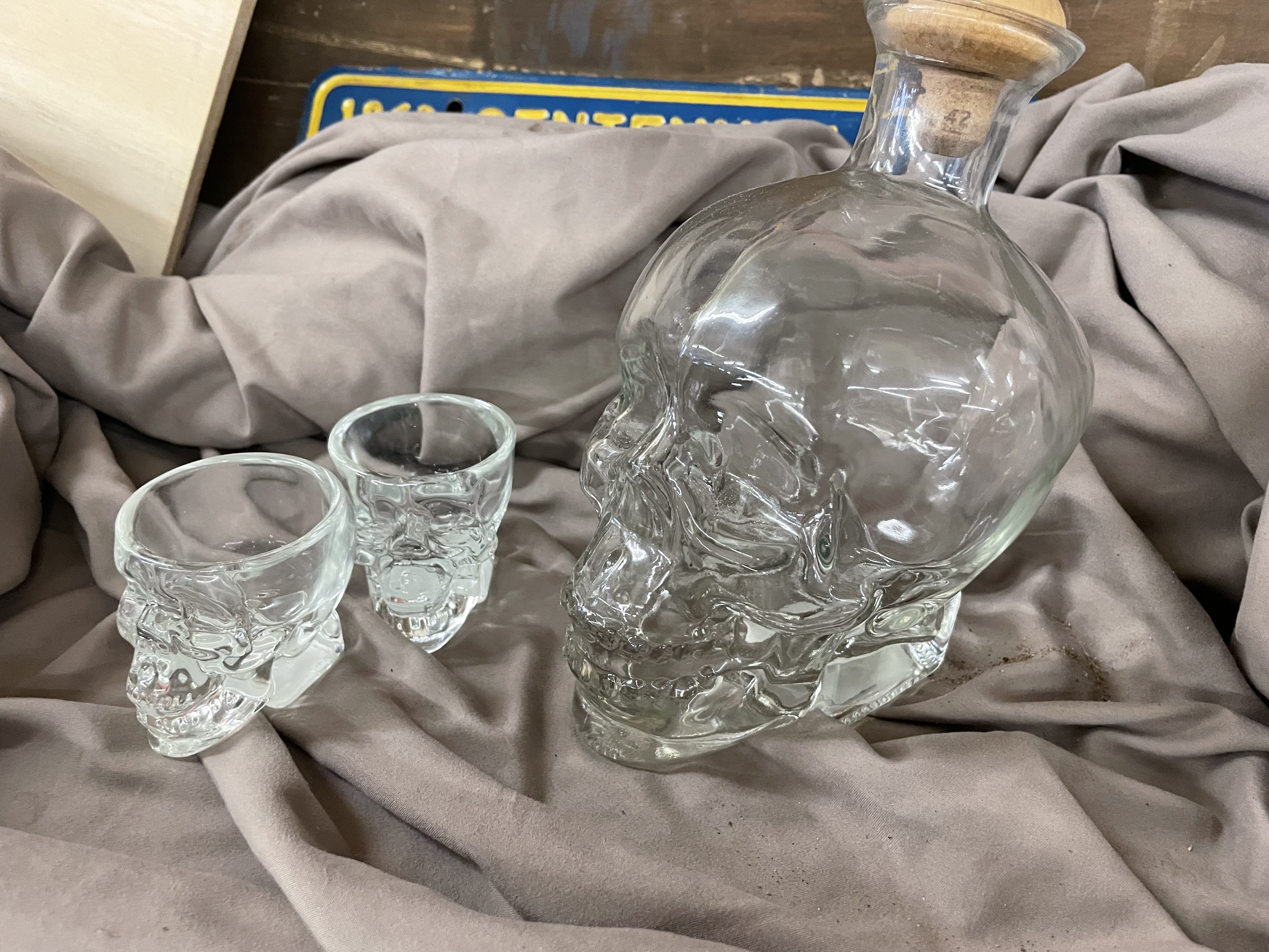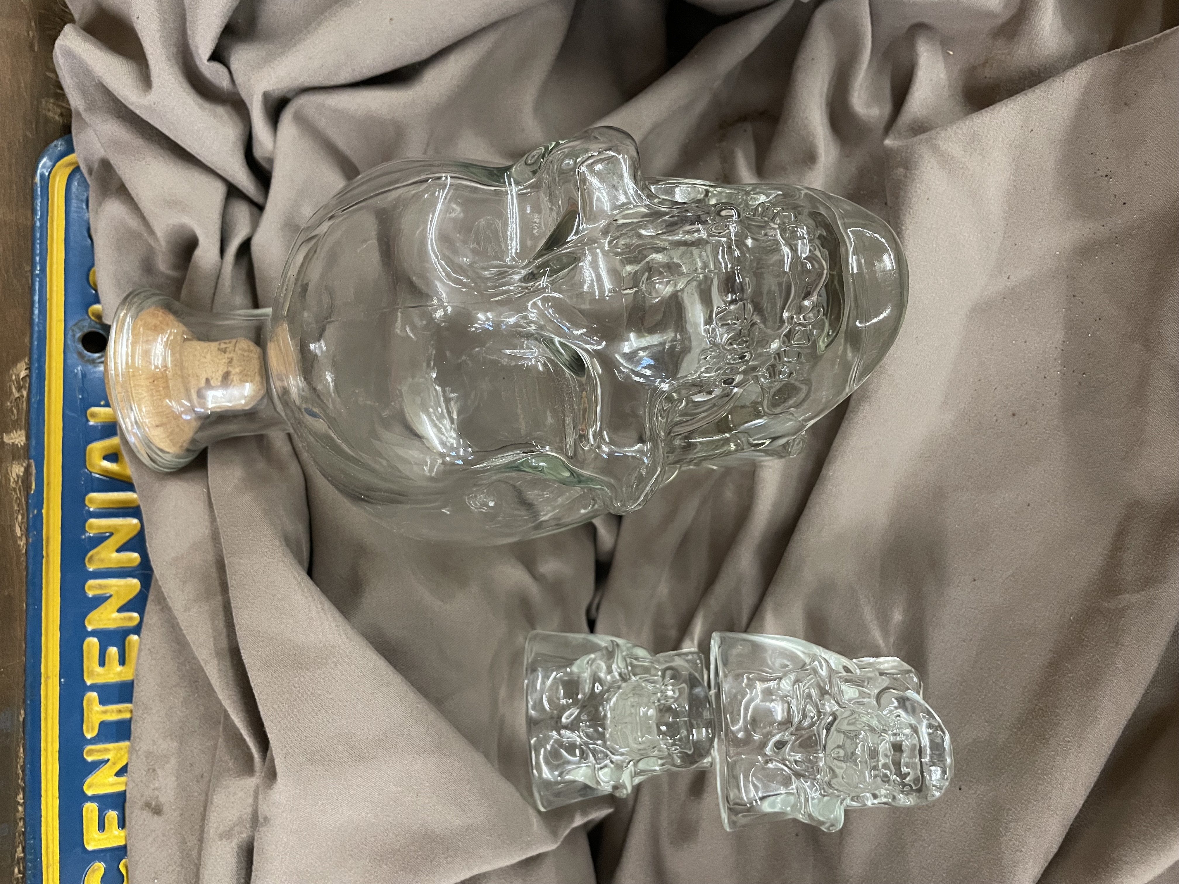 SKULL DECANTER AND GLASSES SHIPPPING 20 DOLLARS