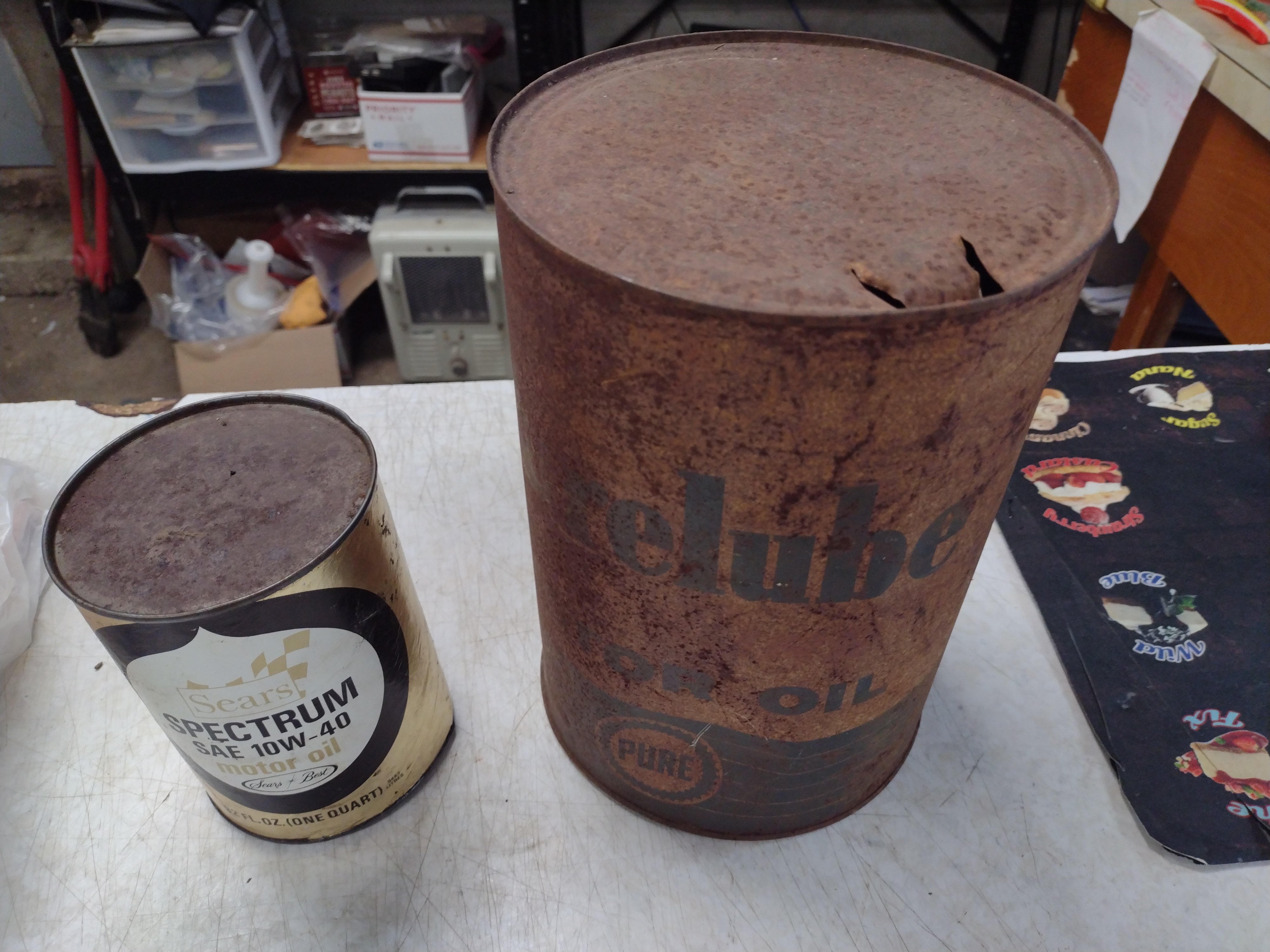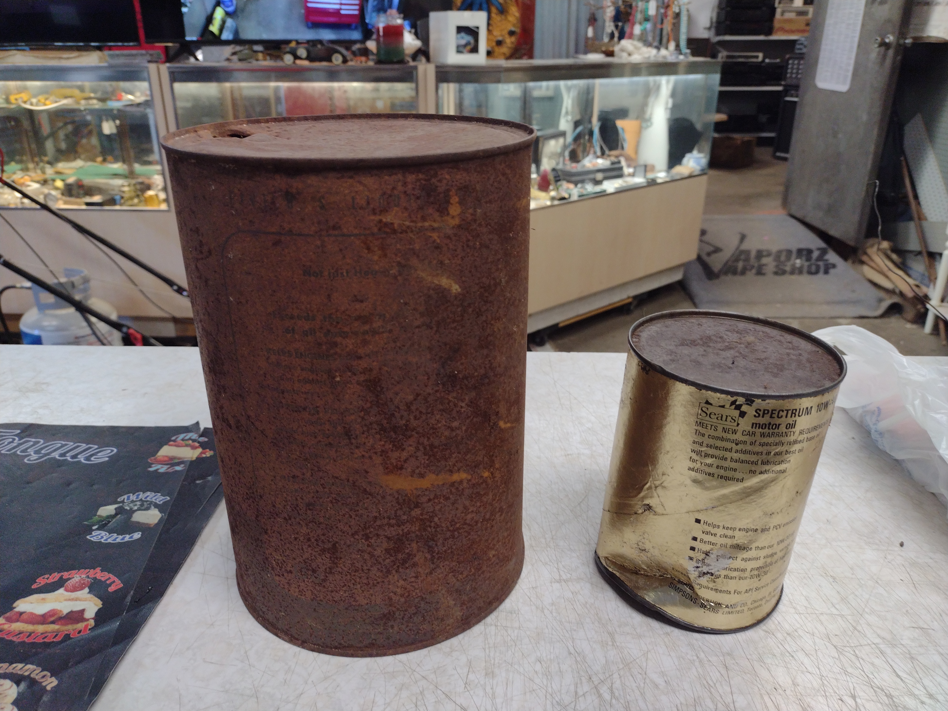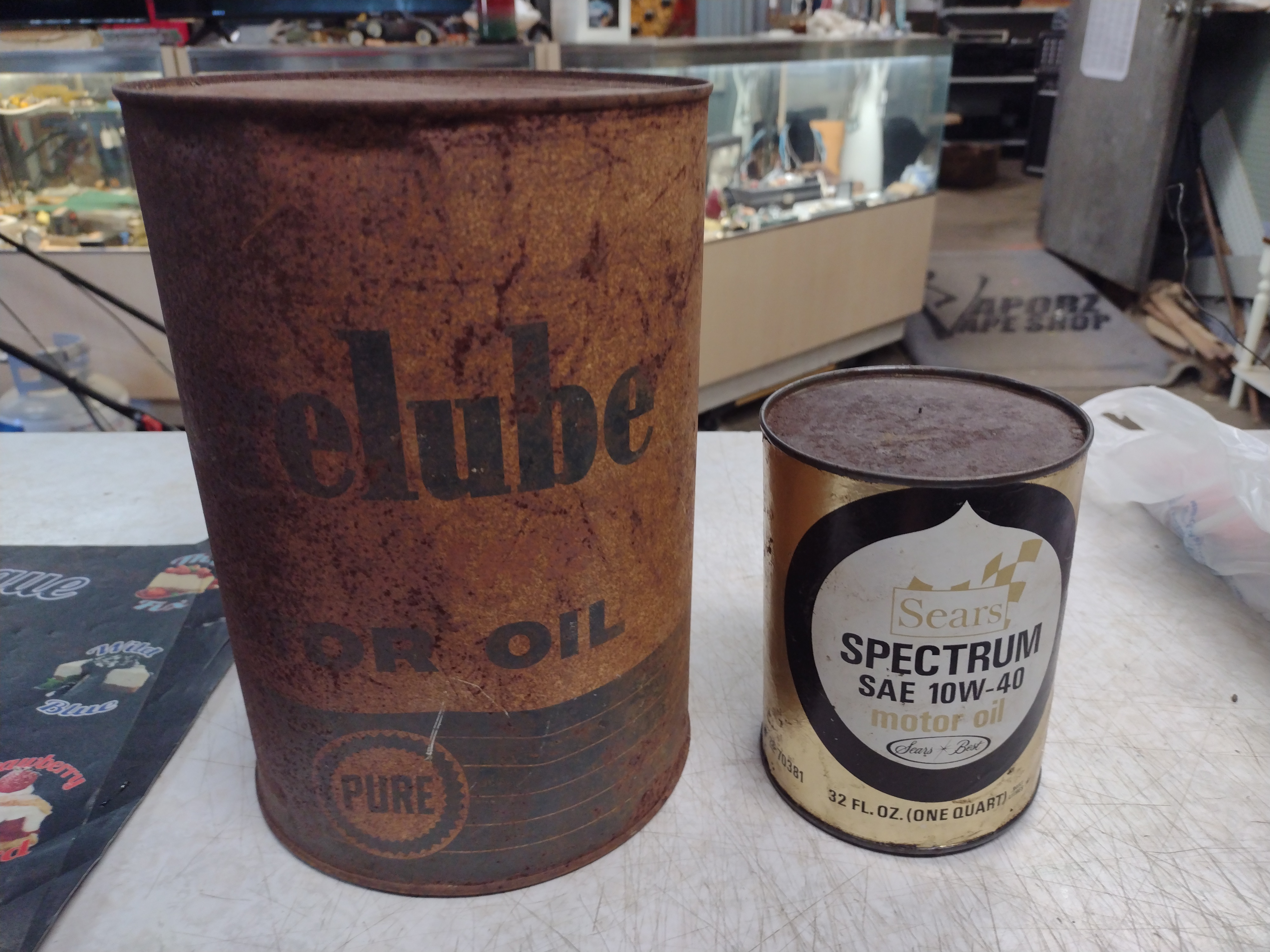 Vintage Oil Cans/ Gallon Purelube Oil Can and Quart of Sears Motor Oil No Oil No Shipping Local Pickup Only