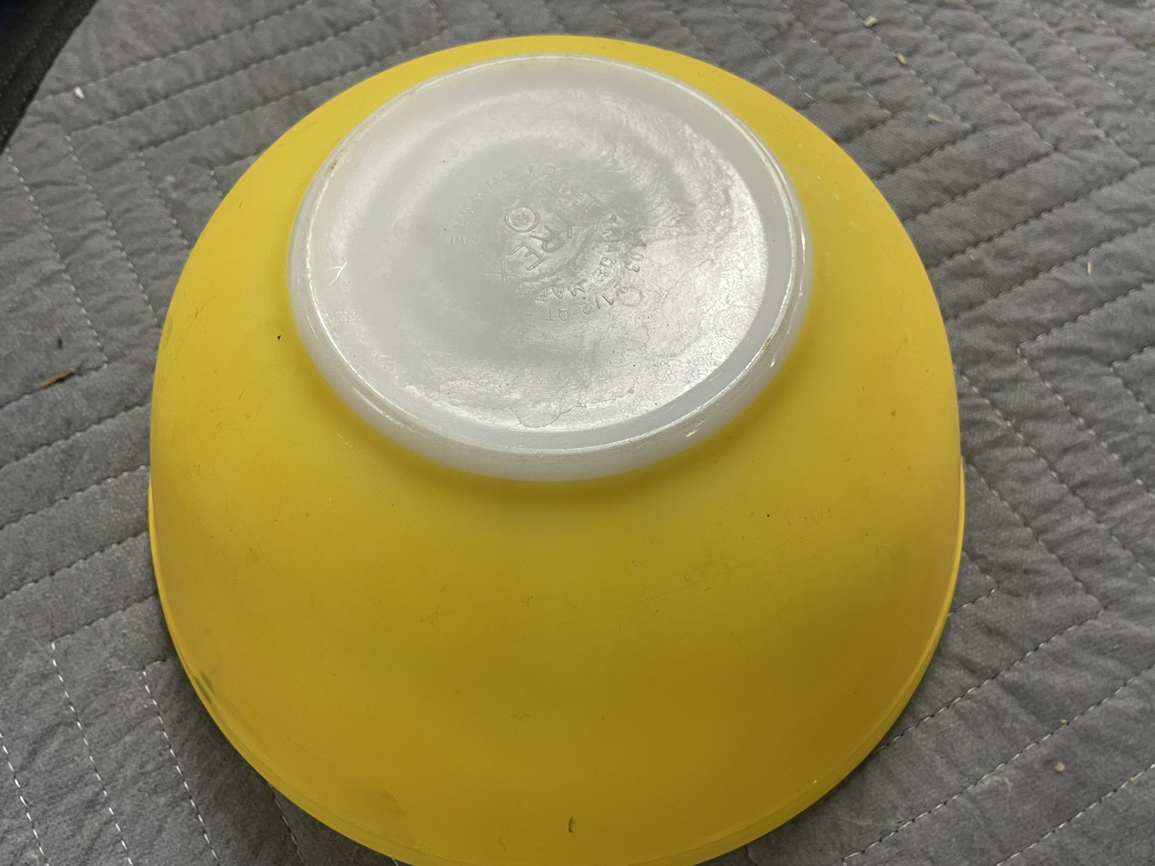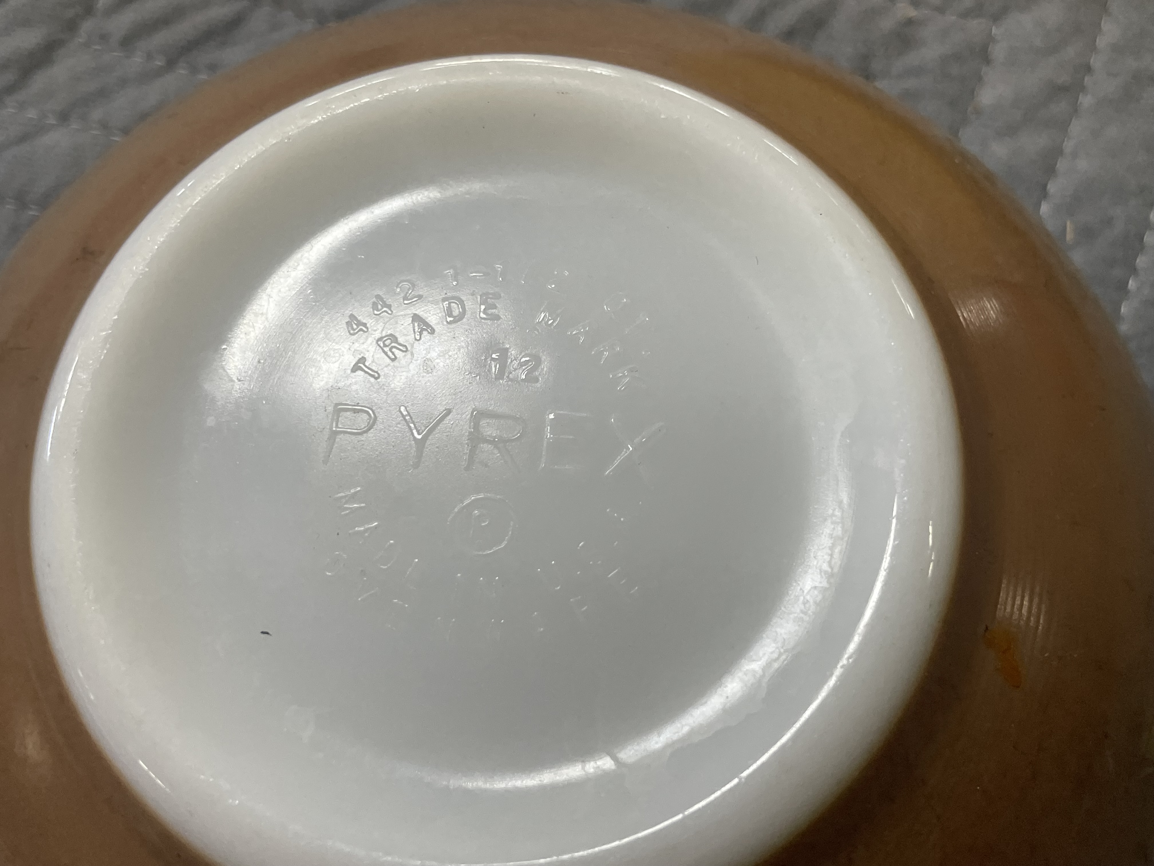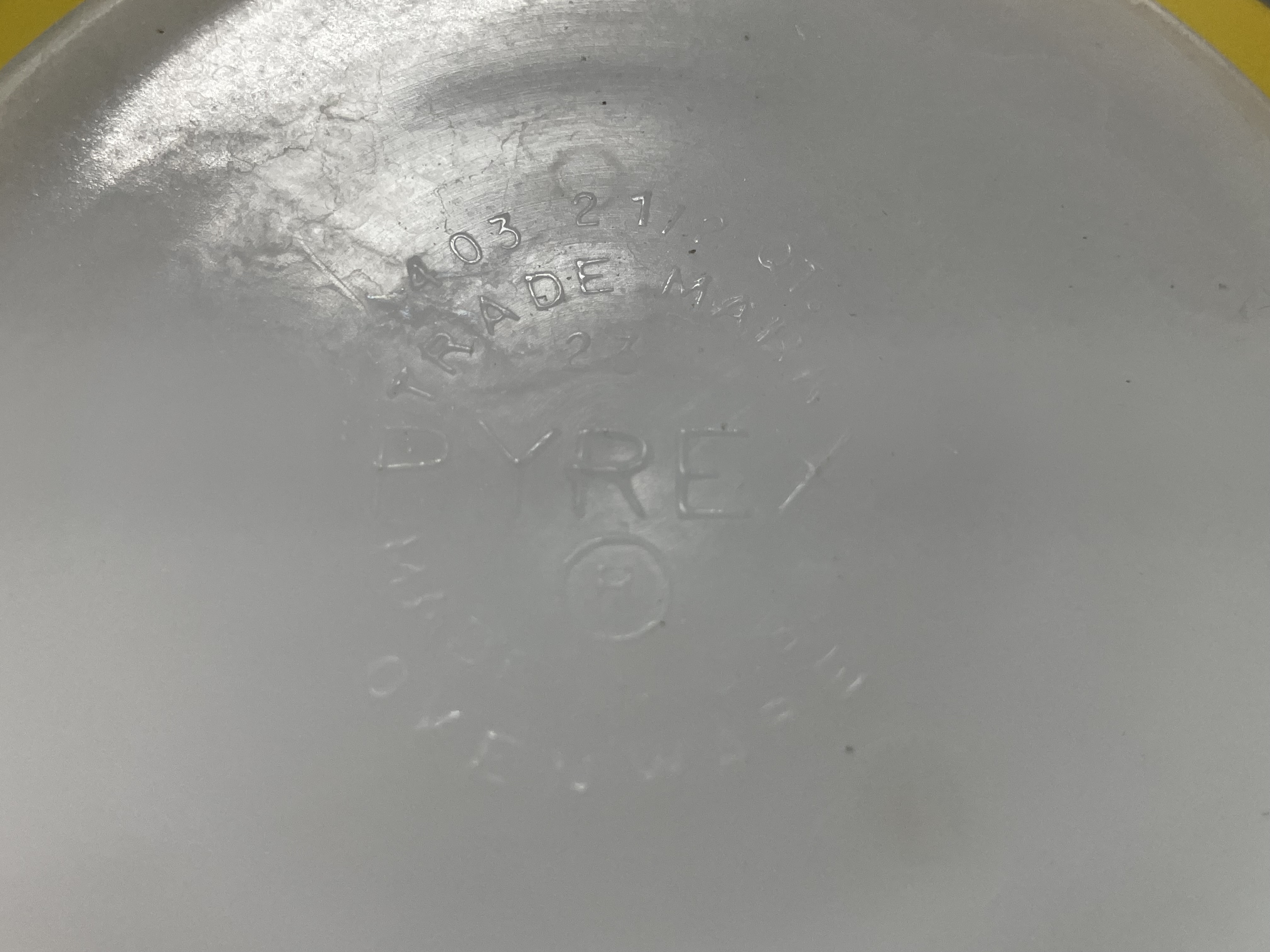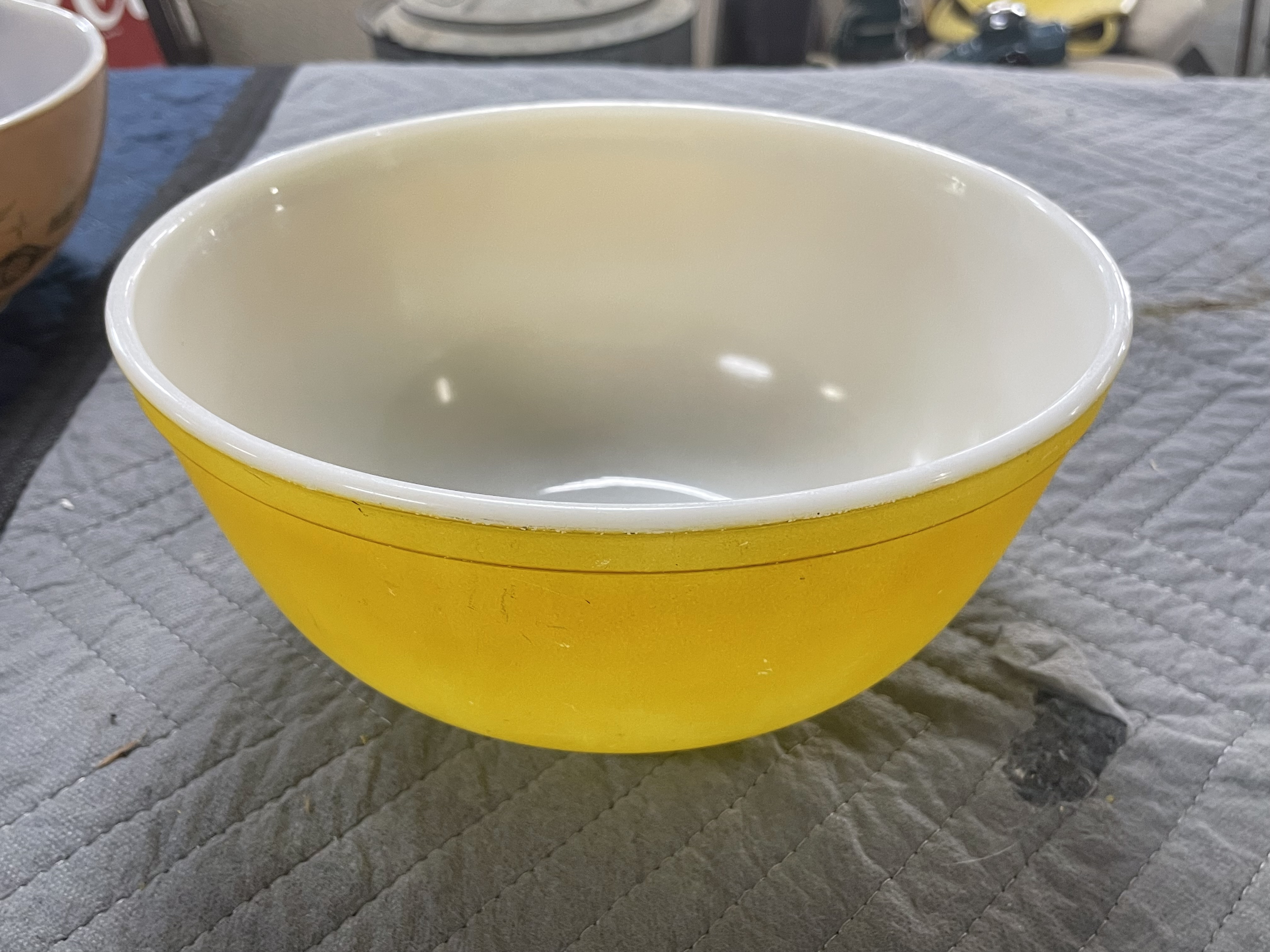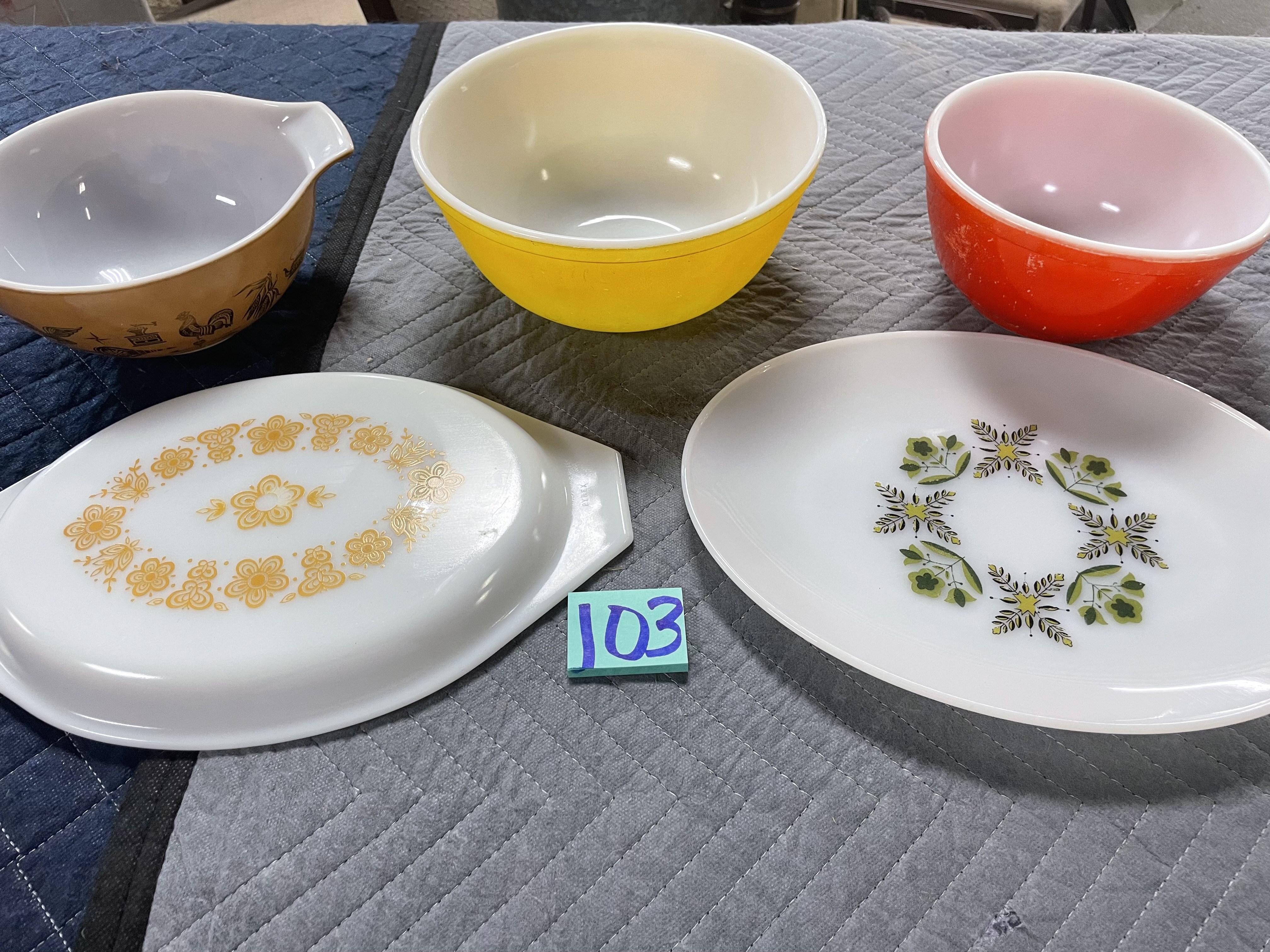 3 Pyrex Bowls, 1 Pyrex Lid and 1 Anchor Hocking Lid