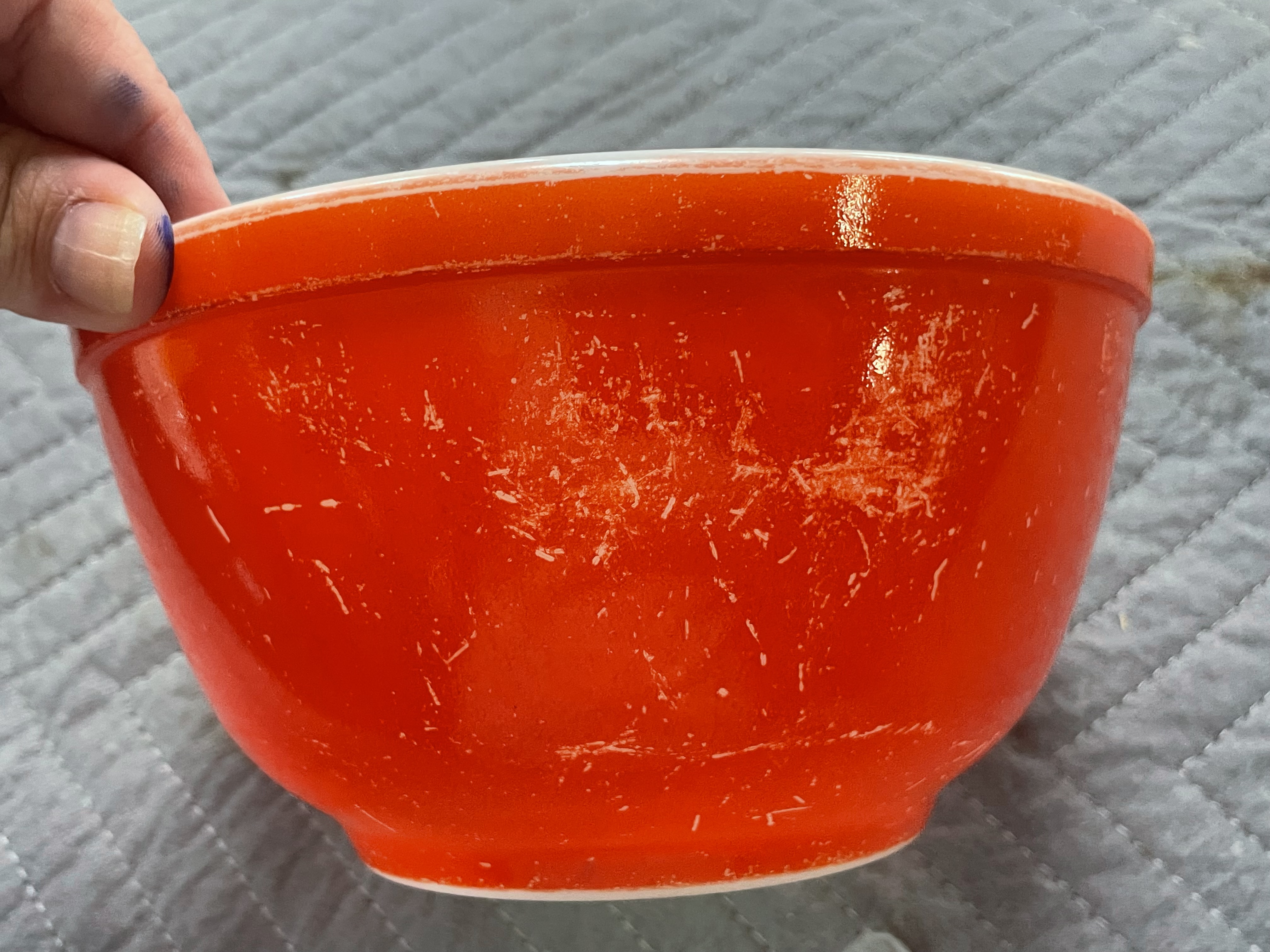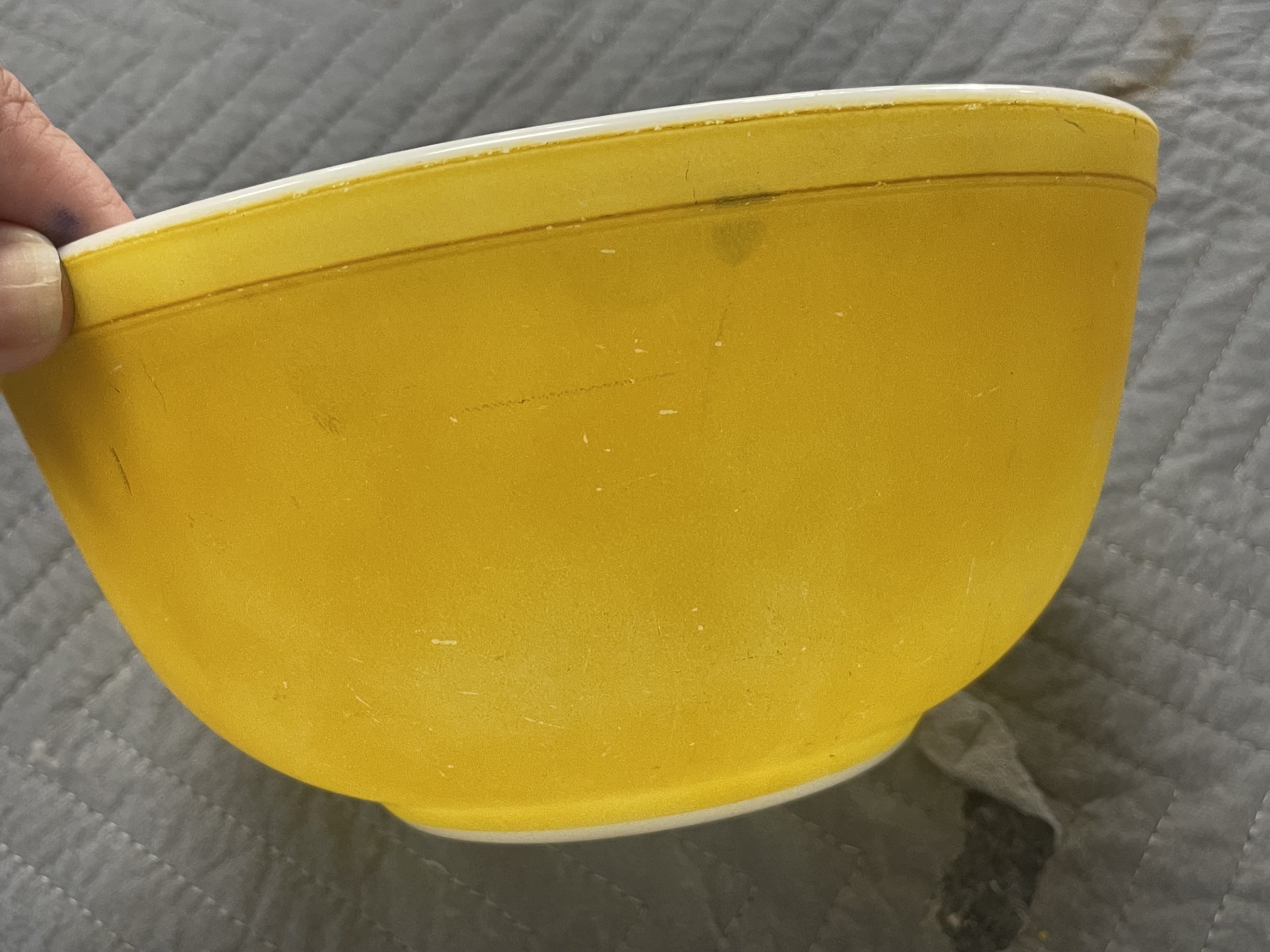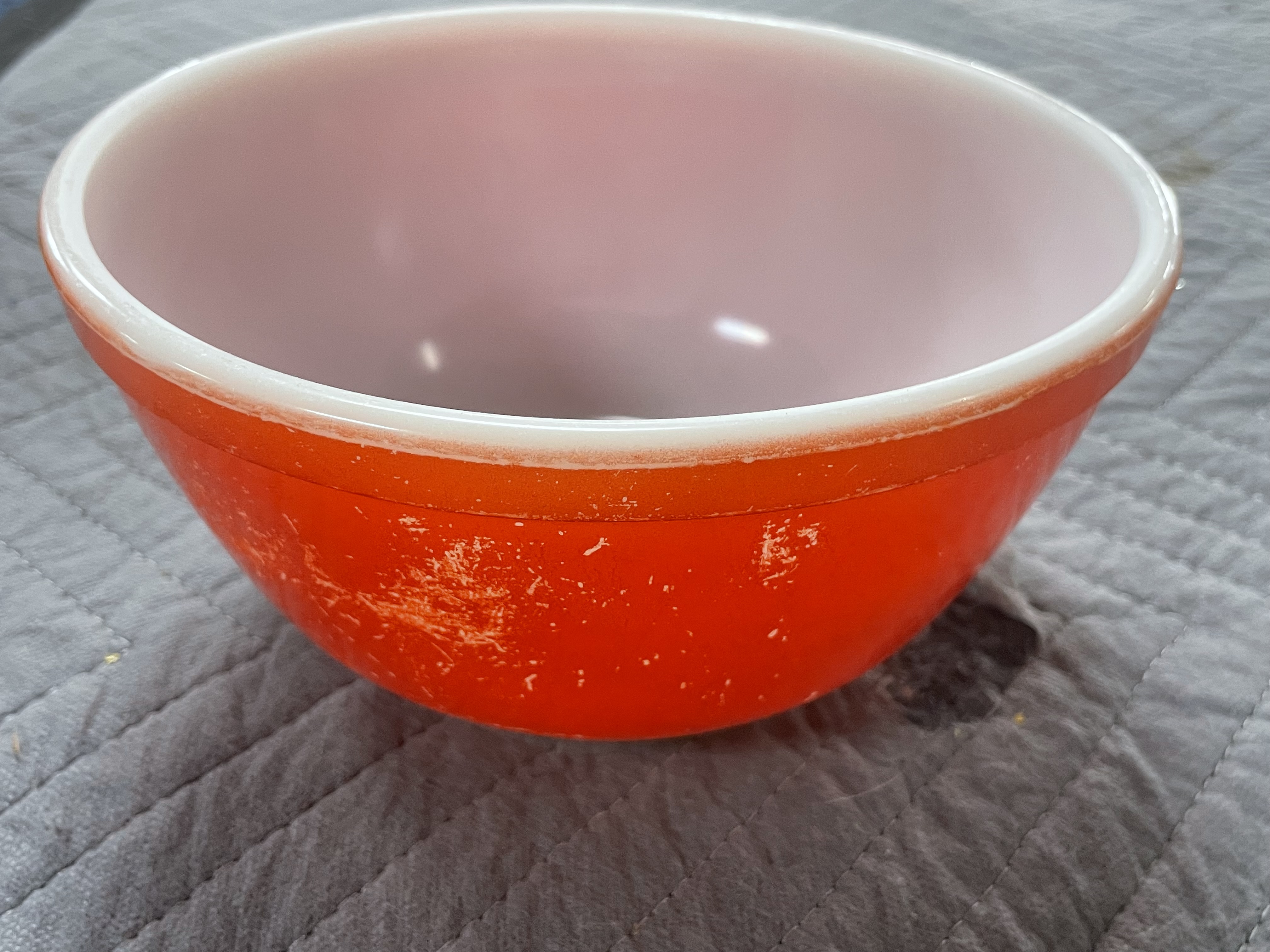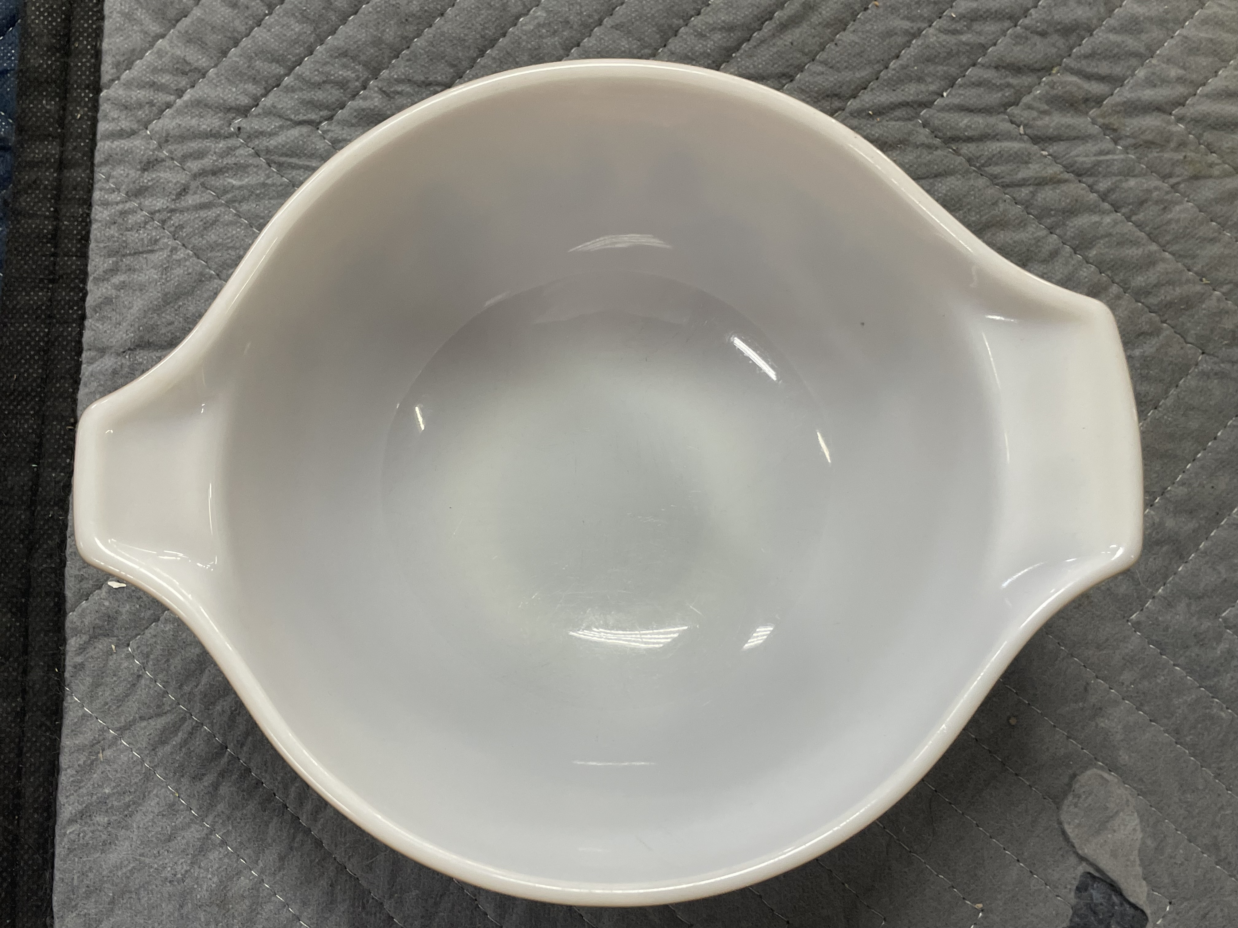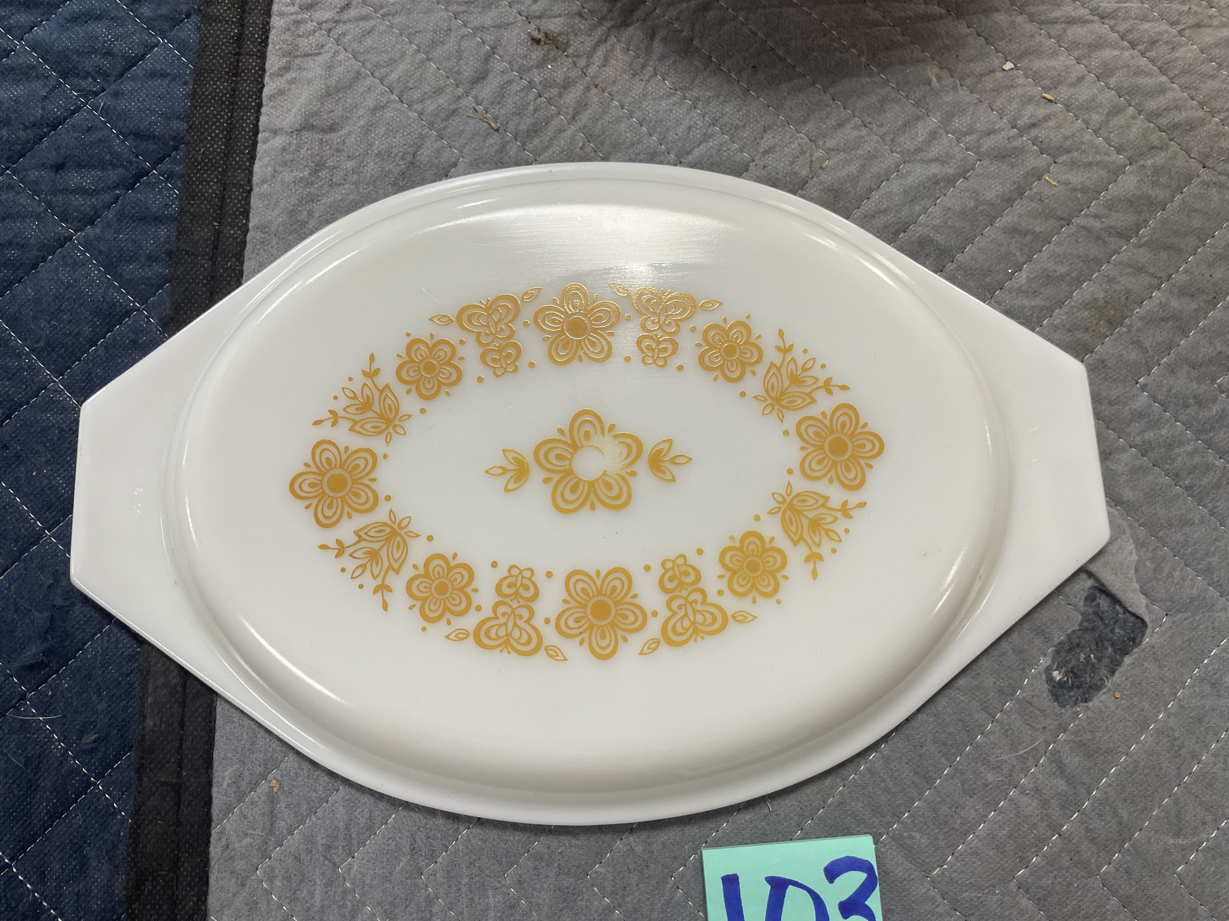 3 Pyrex Bowls, 1 Pyrex Lid and 1 Anchor Hocking Lid
