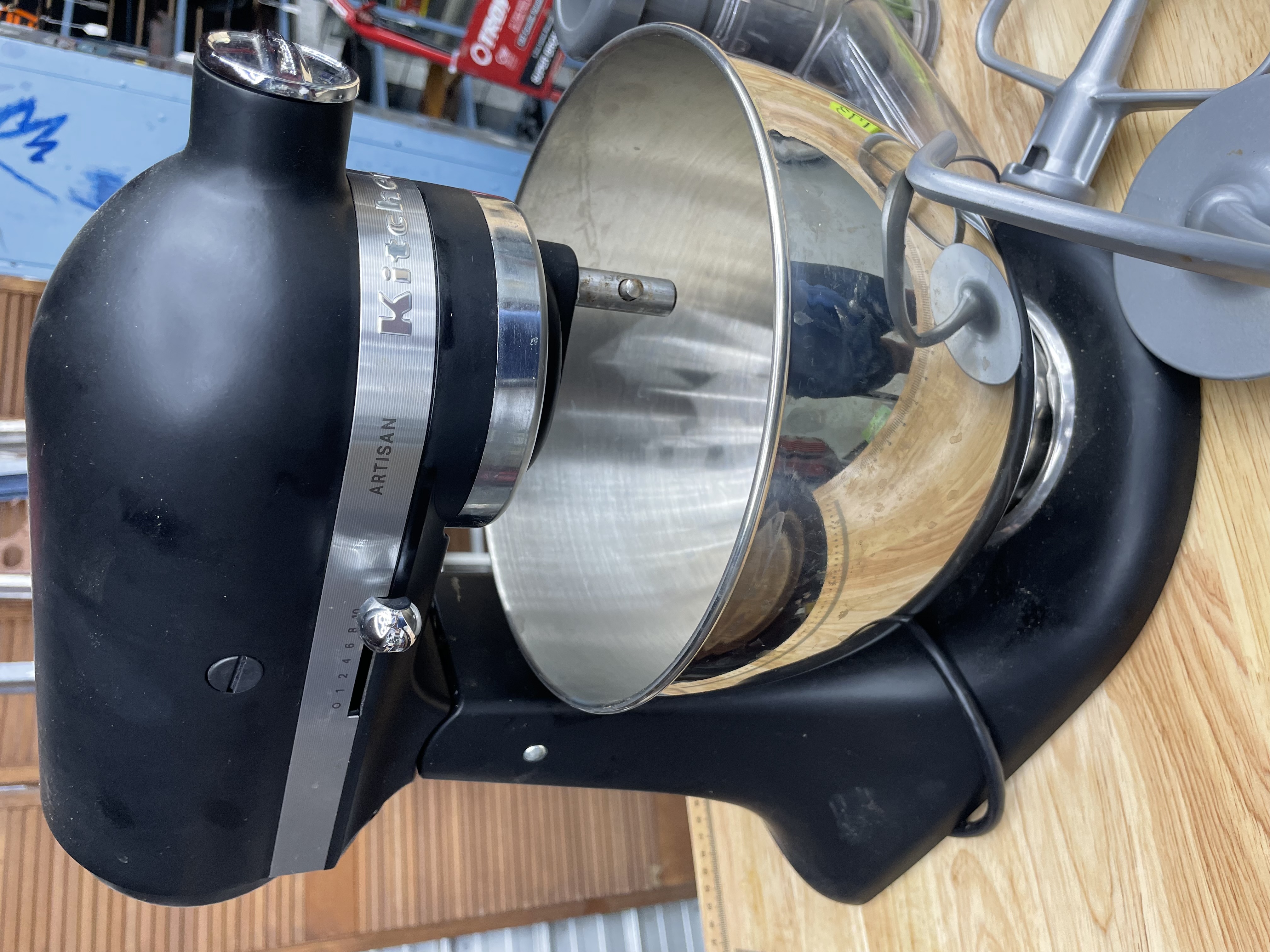 Black Artisa KitchenAid Mixer with Some Attachments