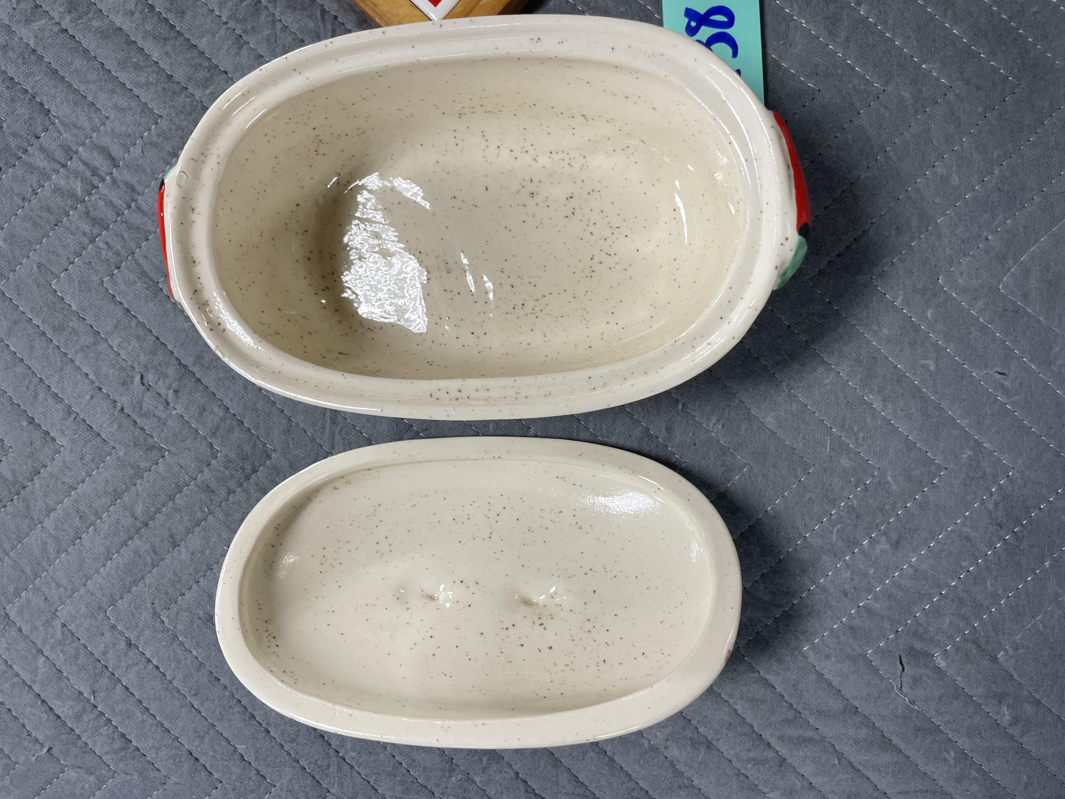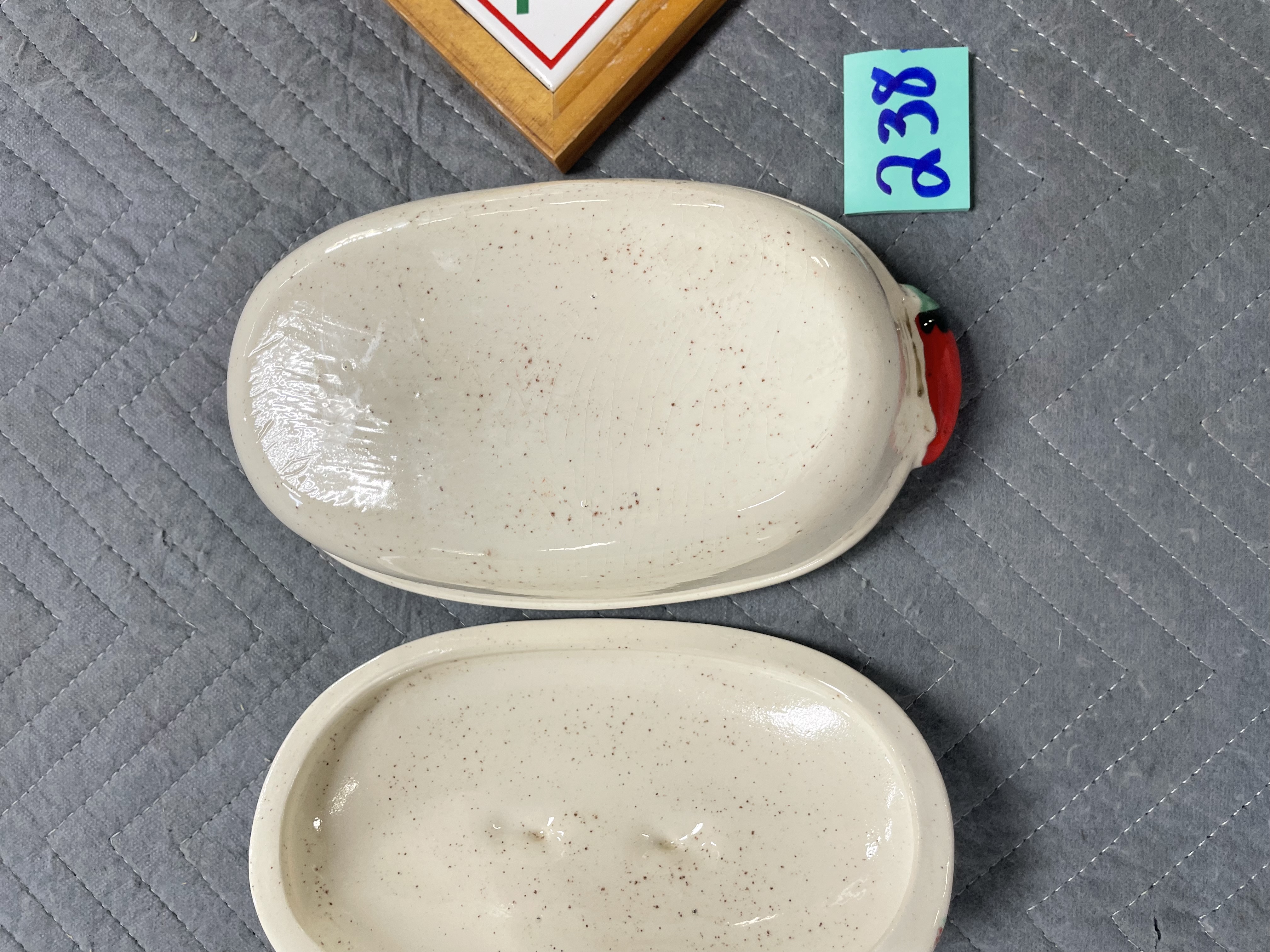 Chili pepper pottery dish with lid Tabasco wood frame sign/picture
