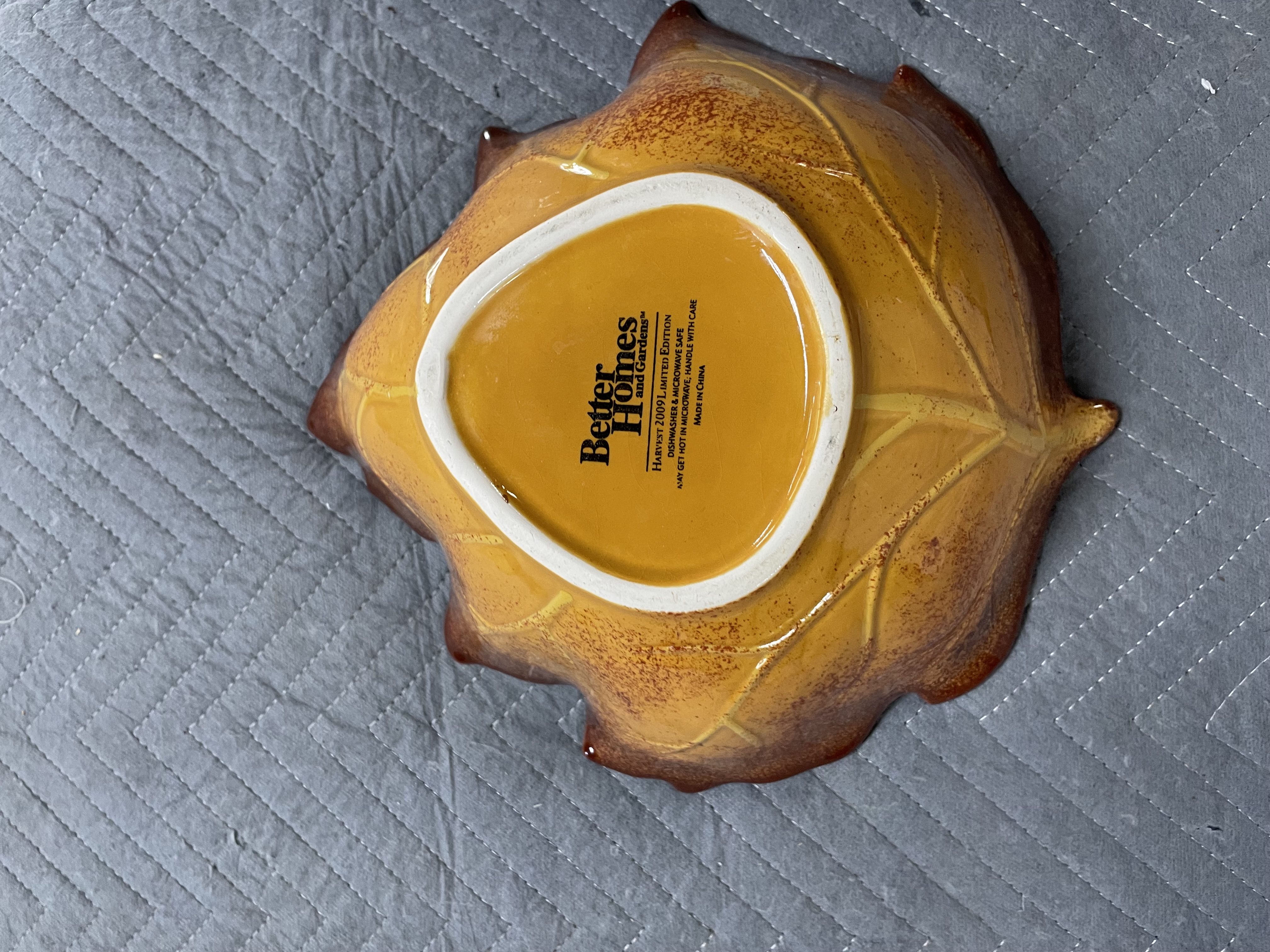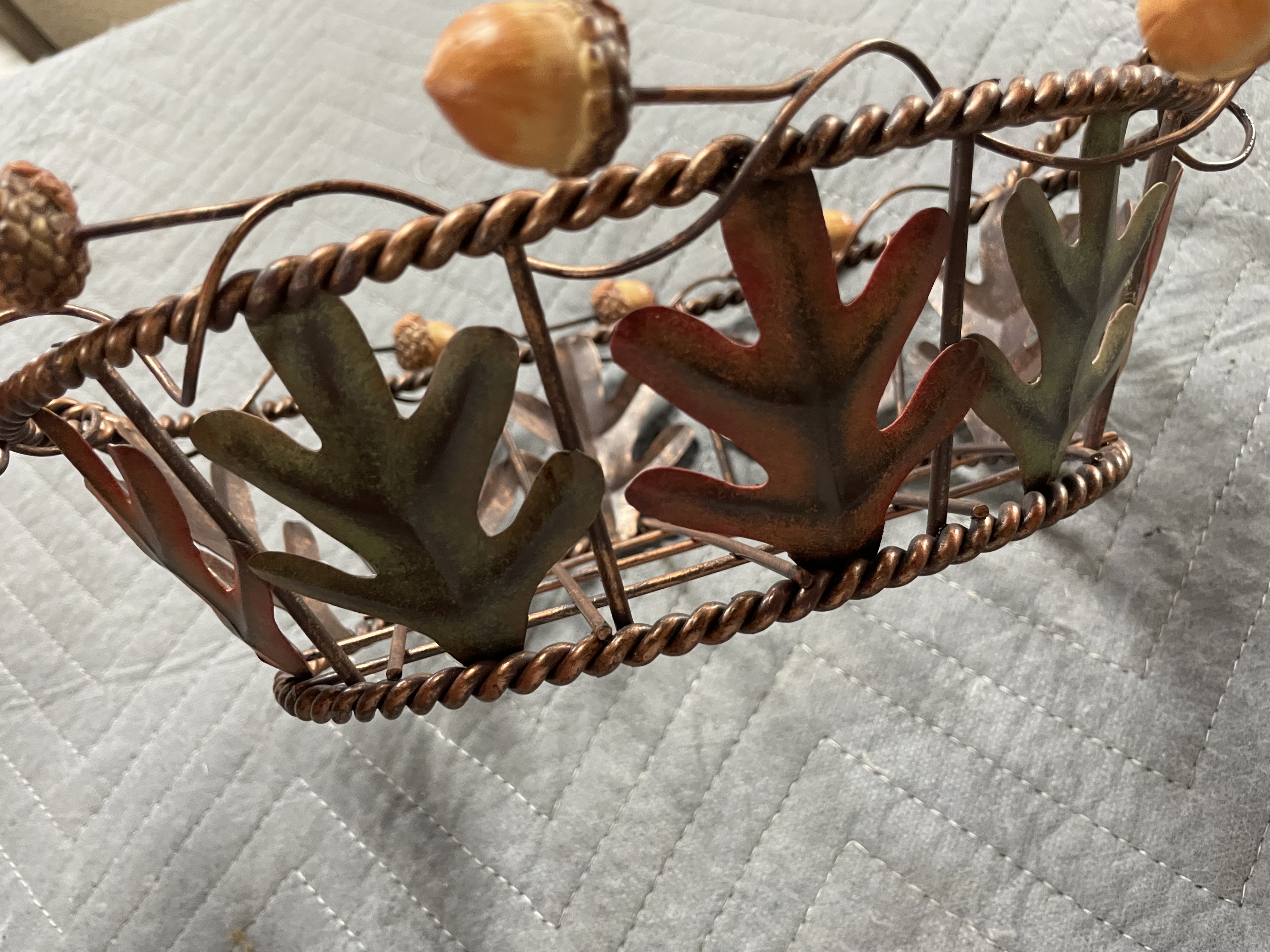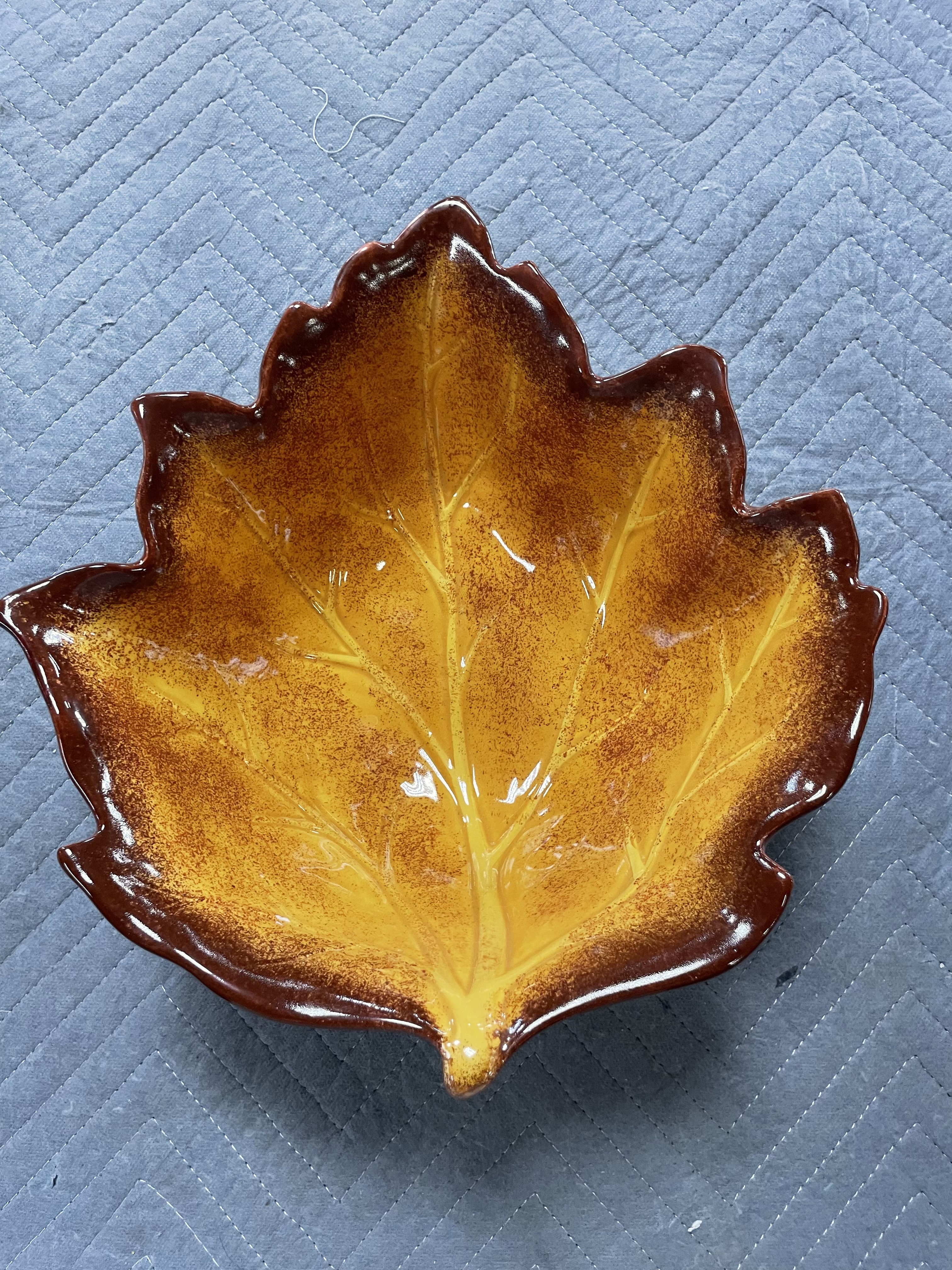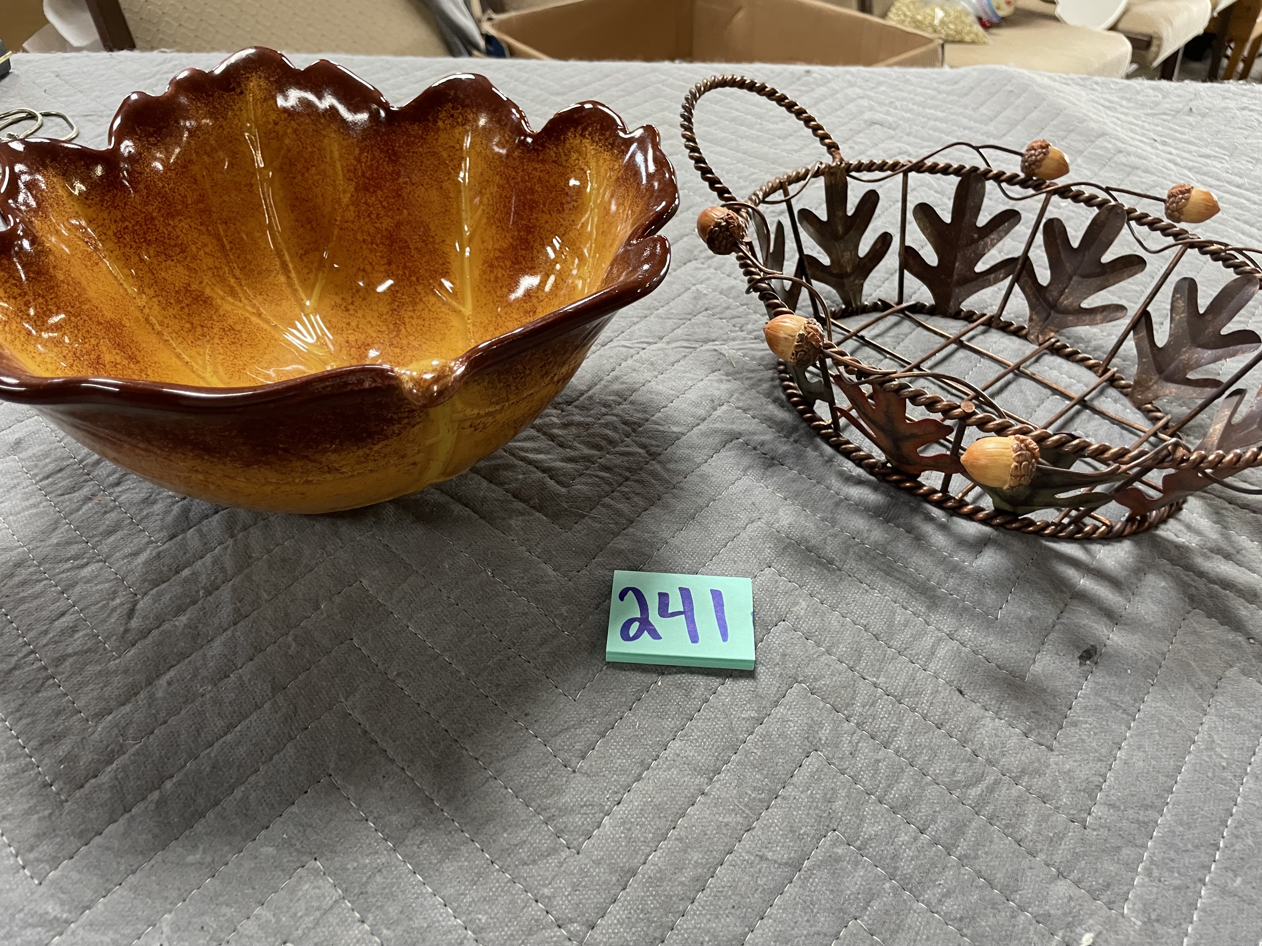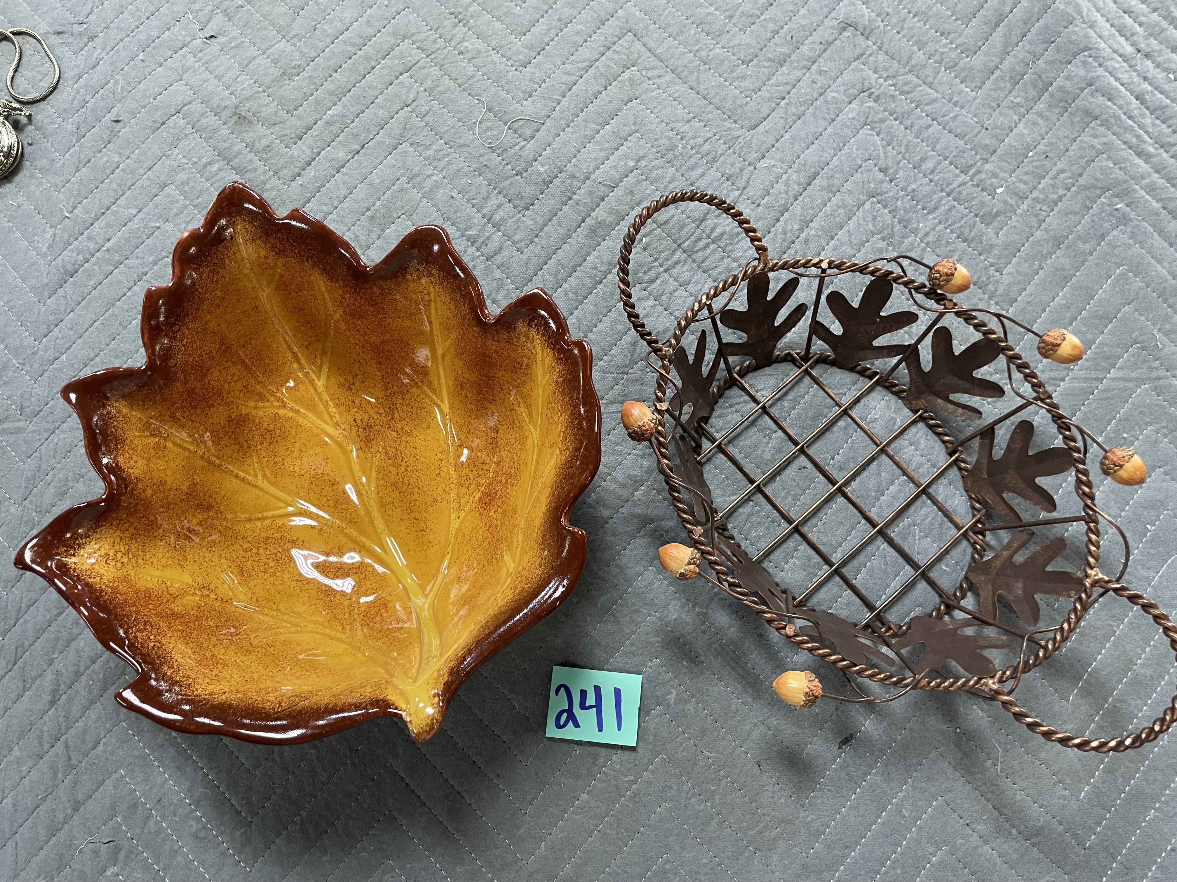 Metal basket with leaves and nice Better Holmes Leaf ceramic dish