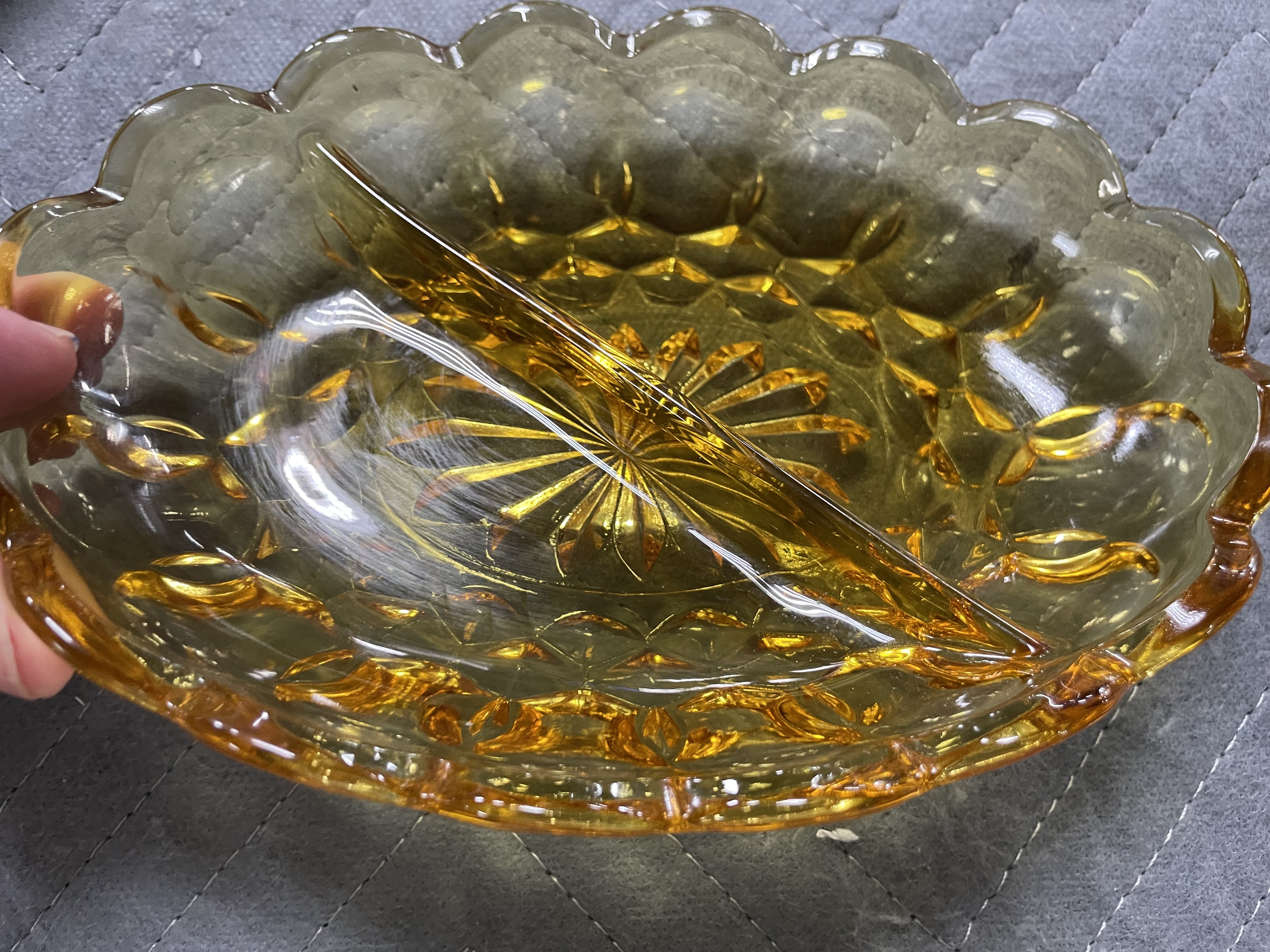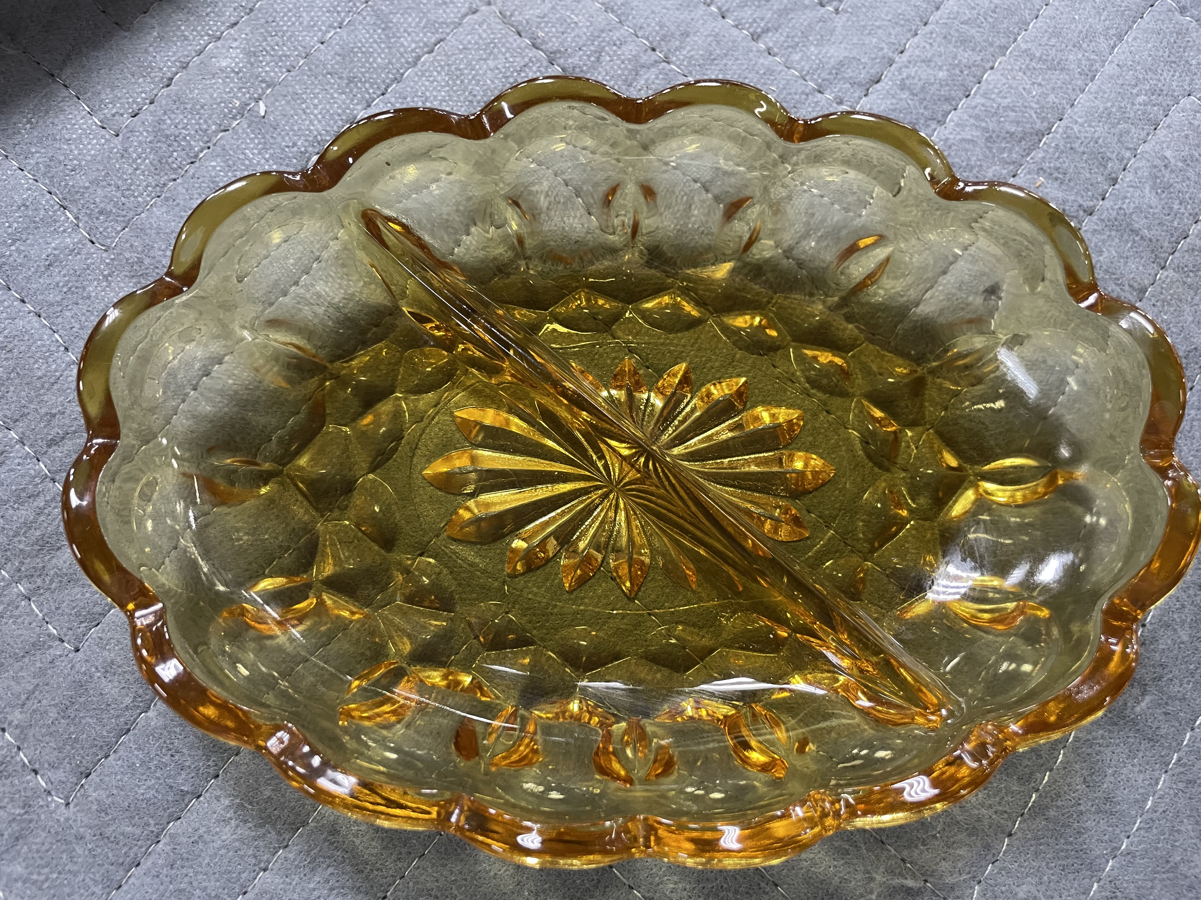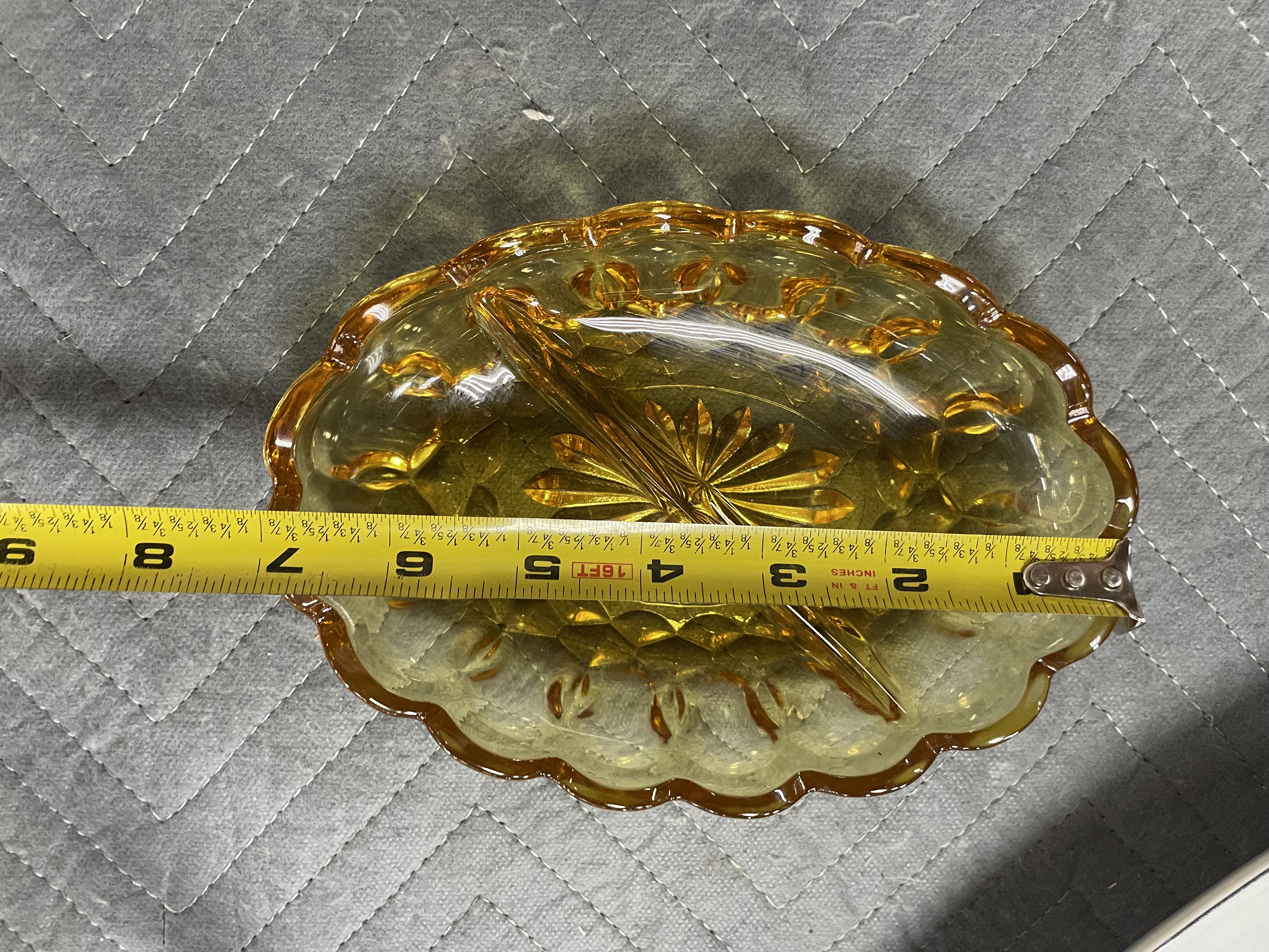 2 Tall Clear with Blue Glasses Amber colored glass candy/relish dish Double Condiment Server with Lids & Spoons Fukagawa Arita Porcelain Platter