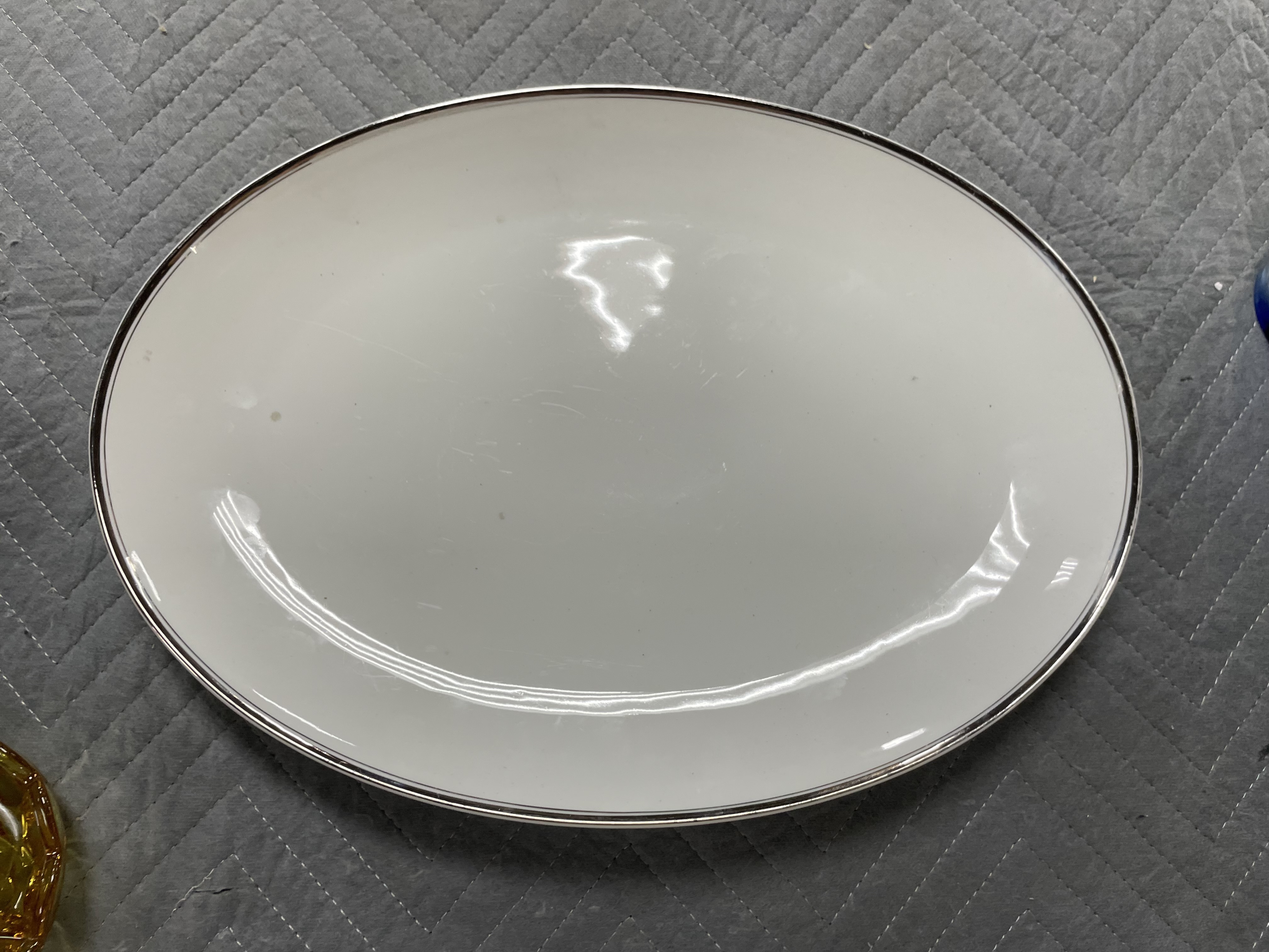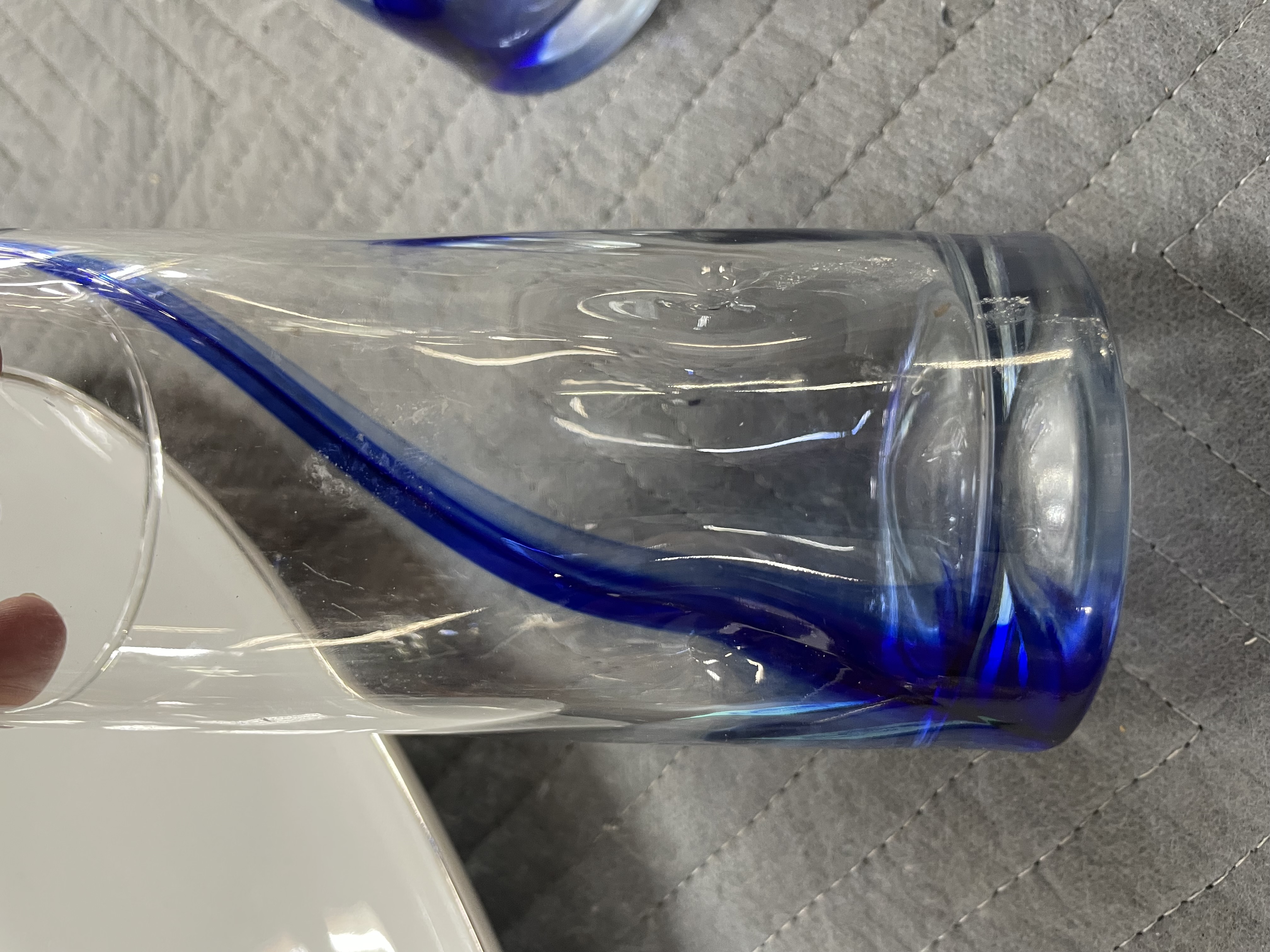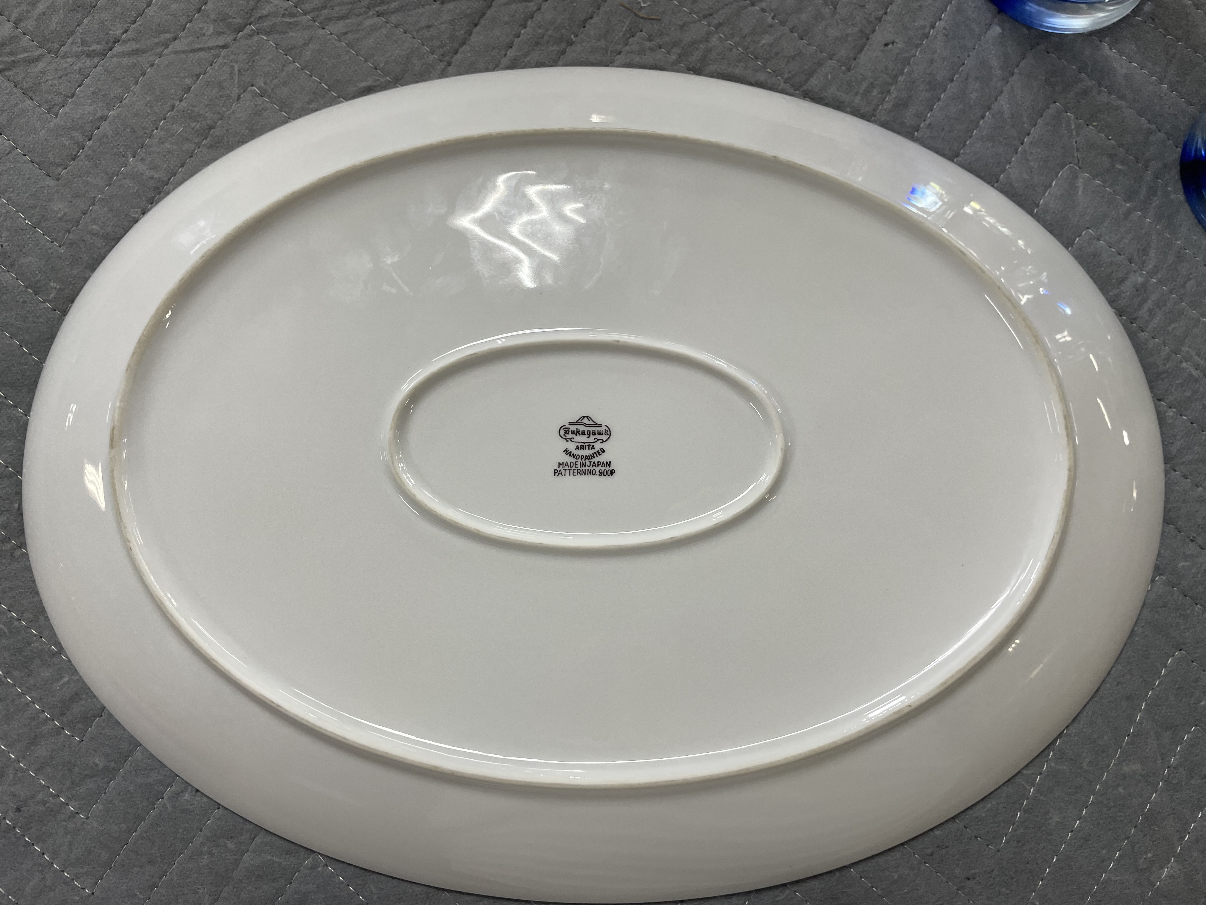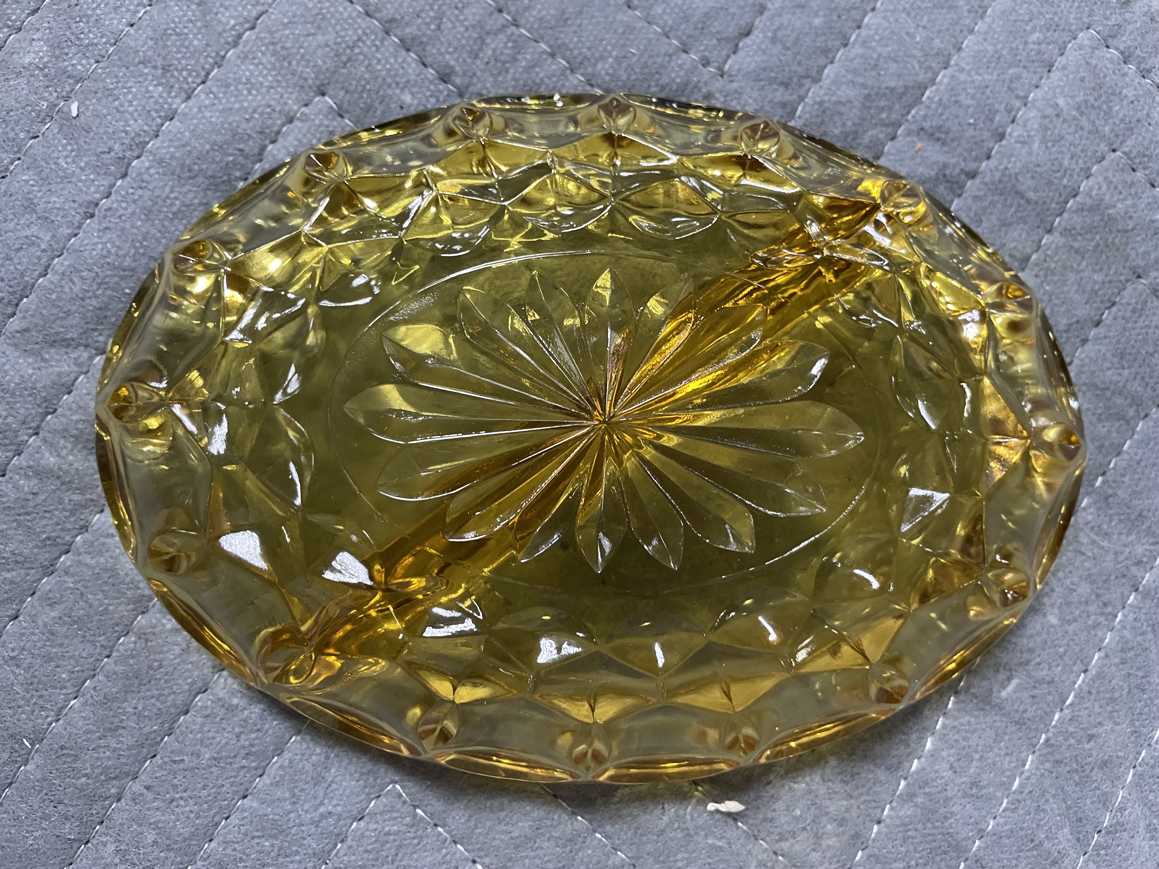 2 Tall Clear with Blue Glasses Amber colored glass candy/relish dish Double Condiment Server with Lids & Spoons Fukagawa Arita Porcelain Platter