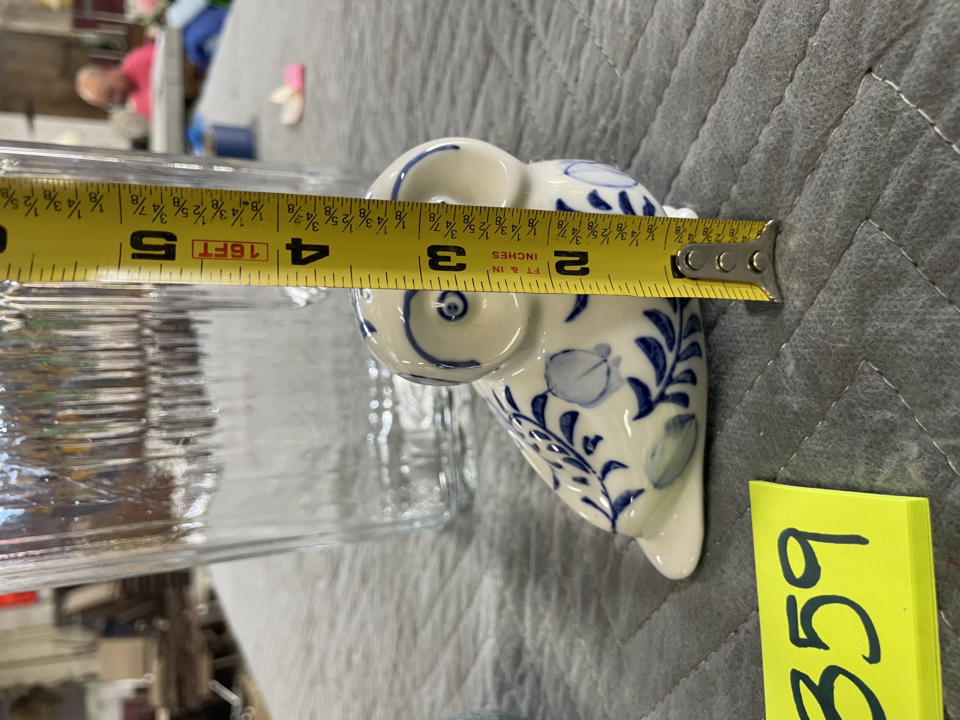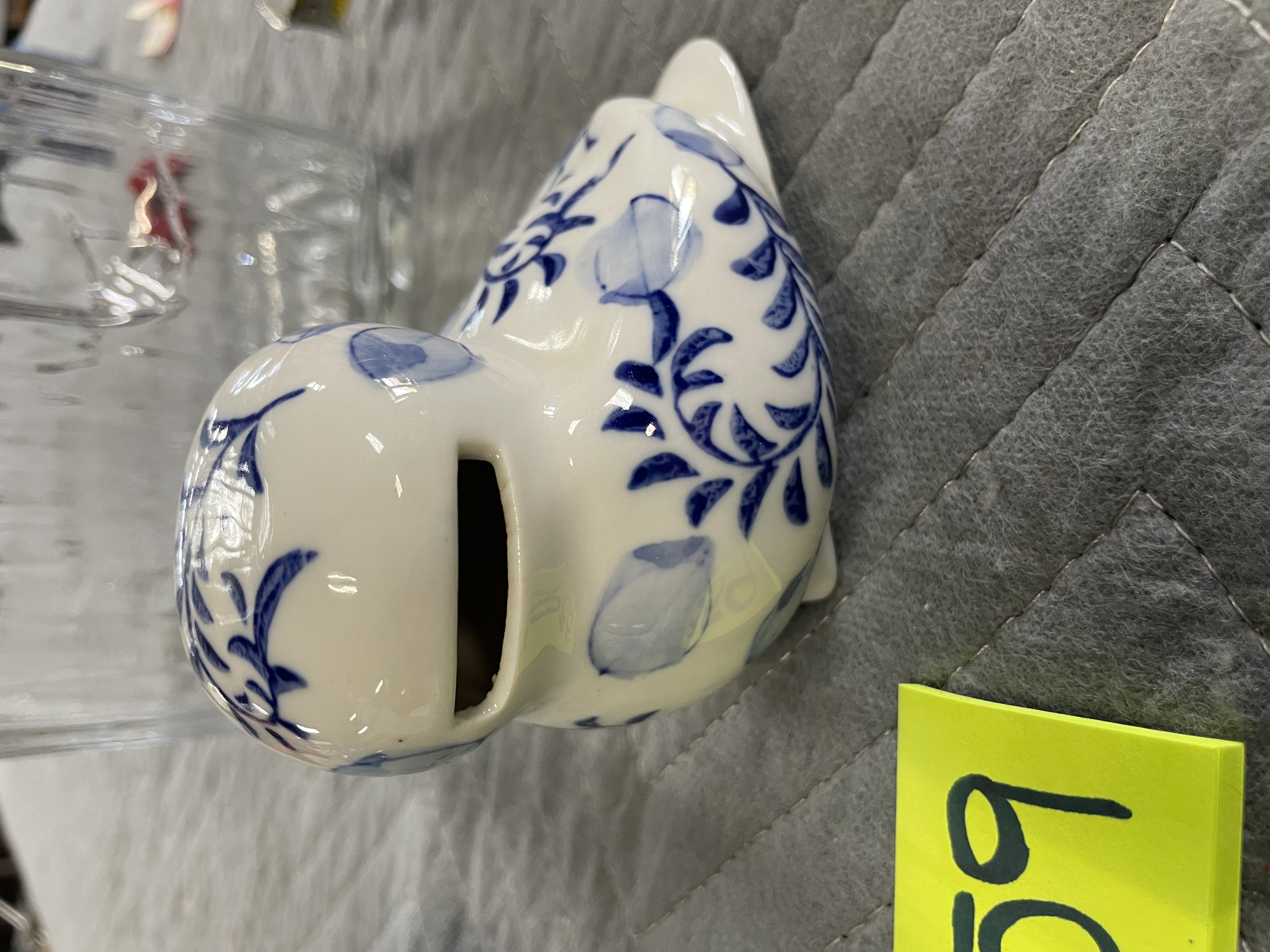 Vintage Hand Painted Porcelain Coin Bank OwlHandmade Pottry Bowl Heavy Anchor Hocking Ribbed Glass Pitcher Shipping Available