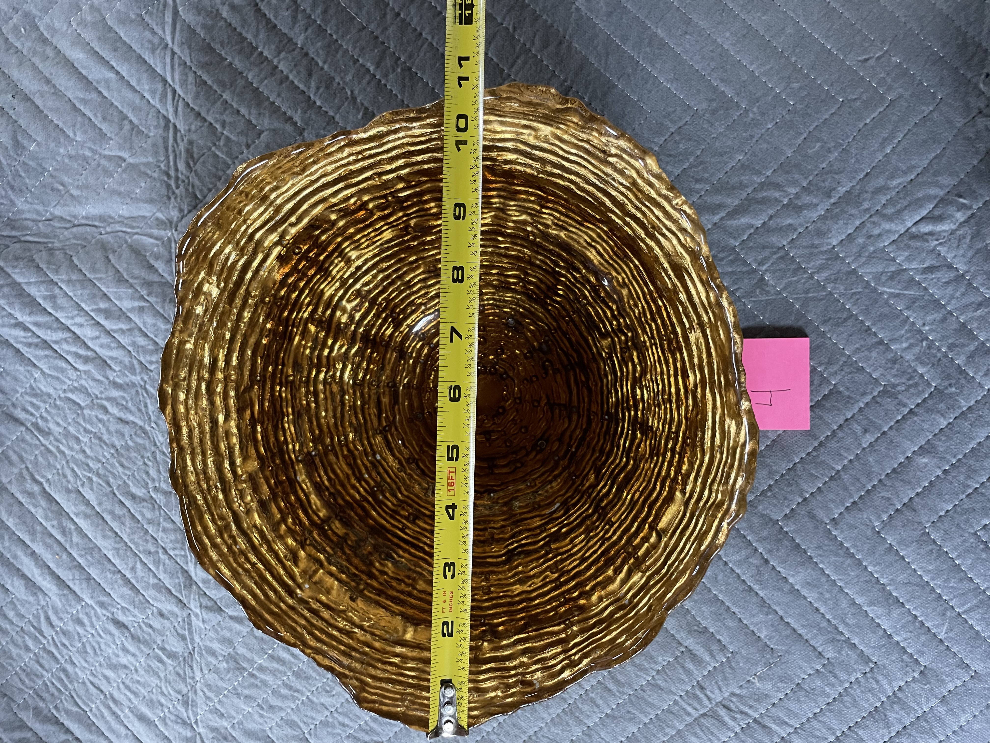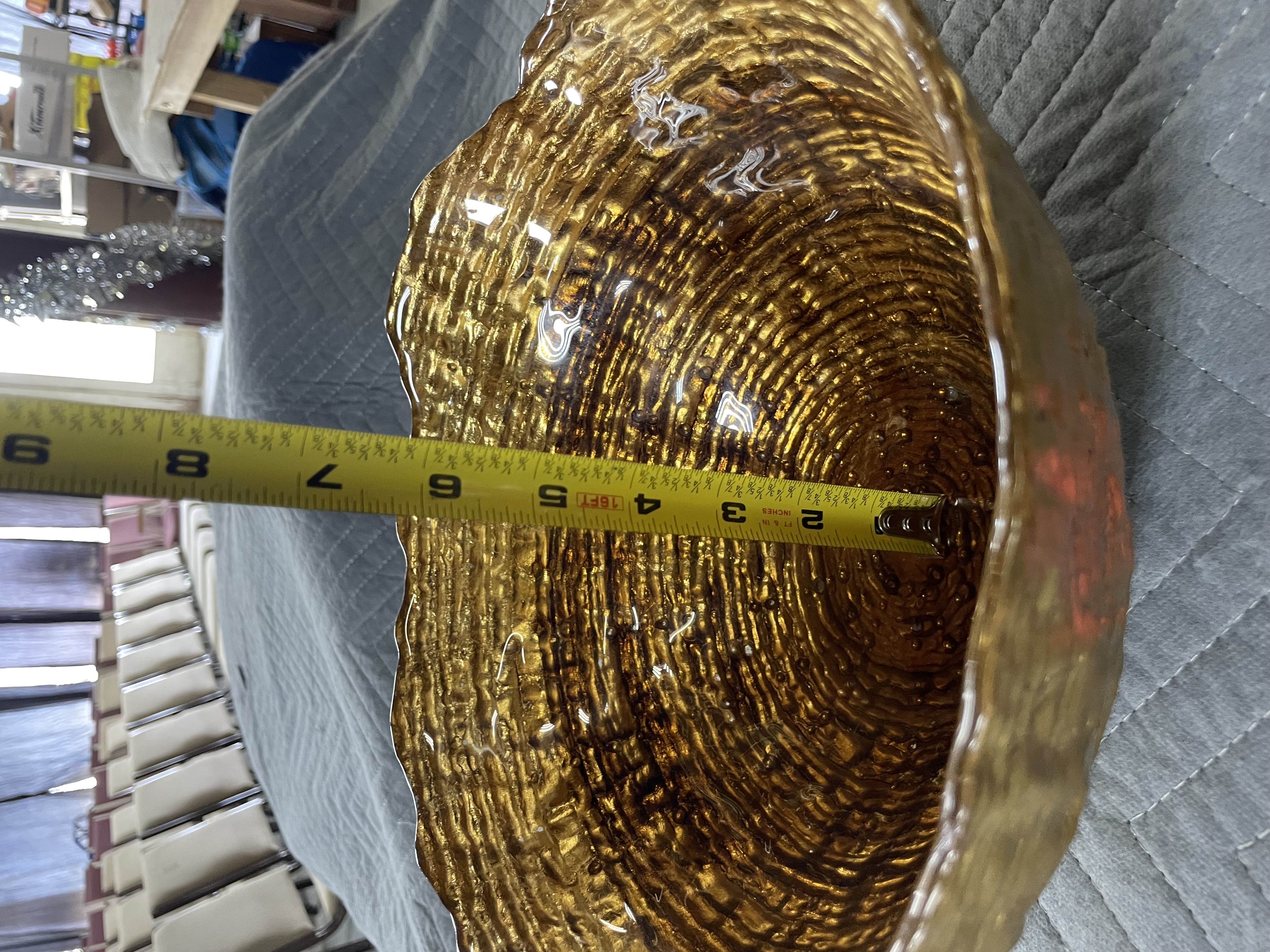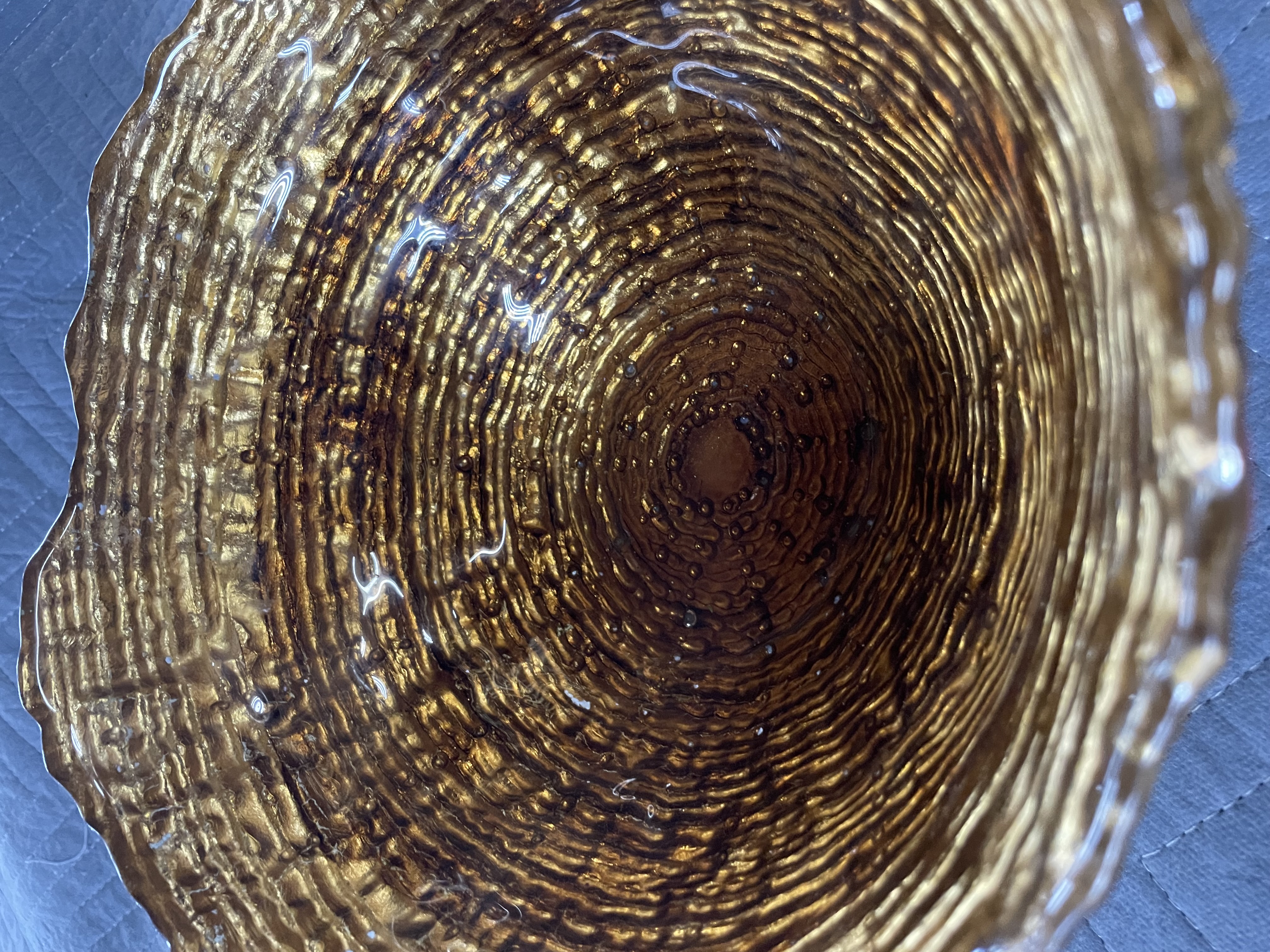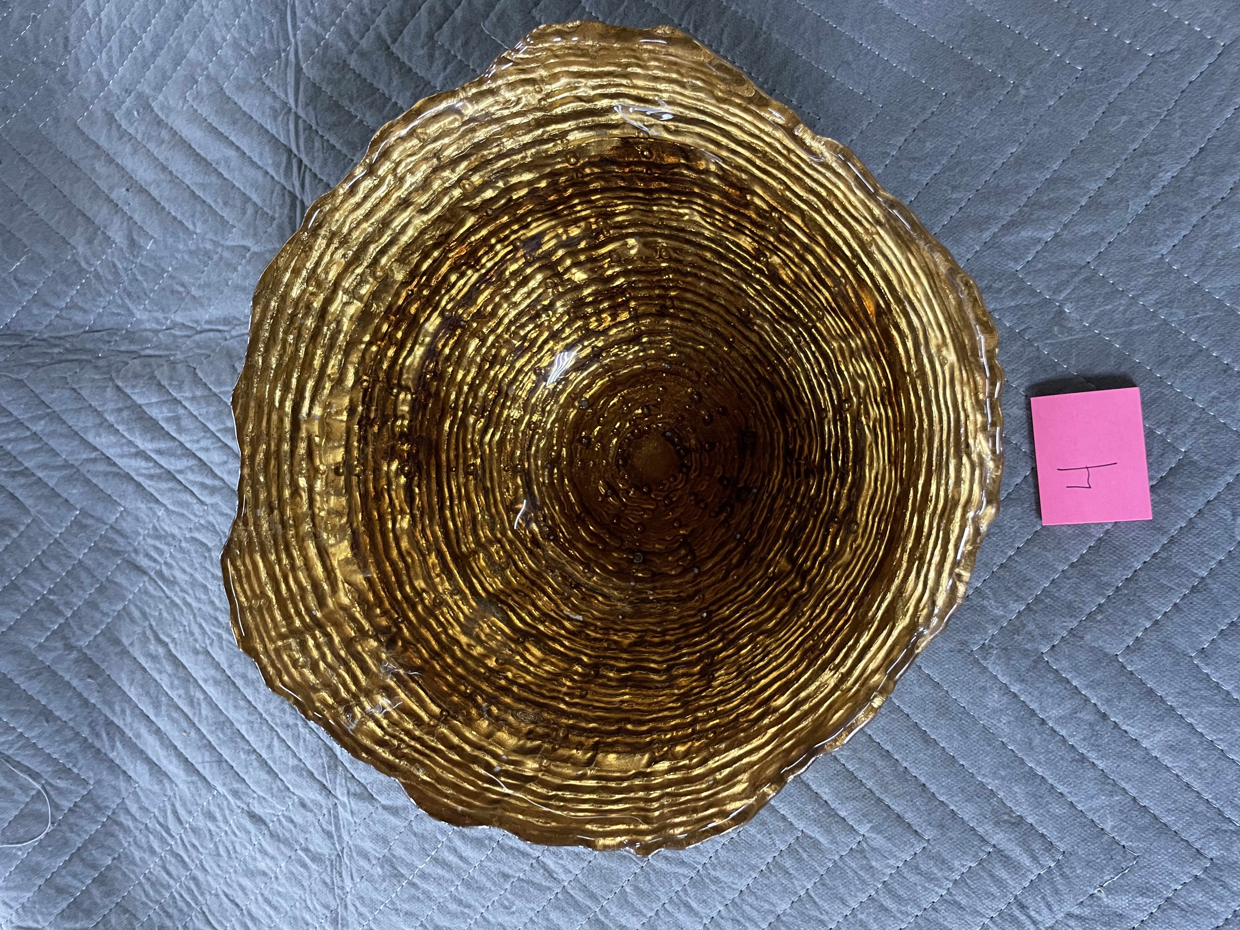 Goofy Glass Bowl Hand Painted Gold Scalloped Rim. I don’t see any dings cracks or chips its nice