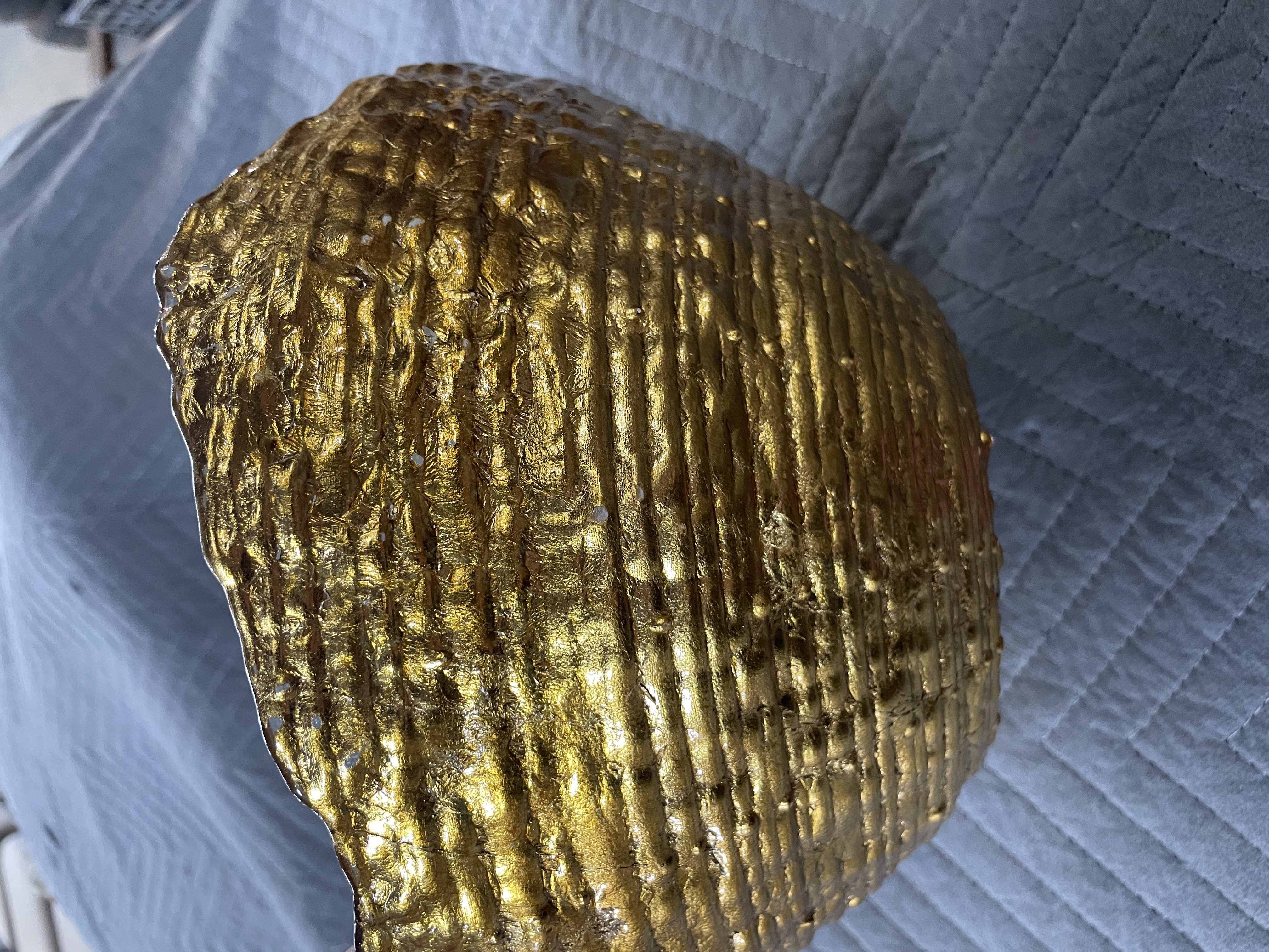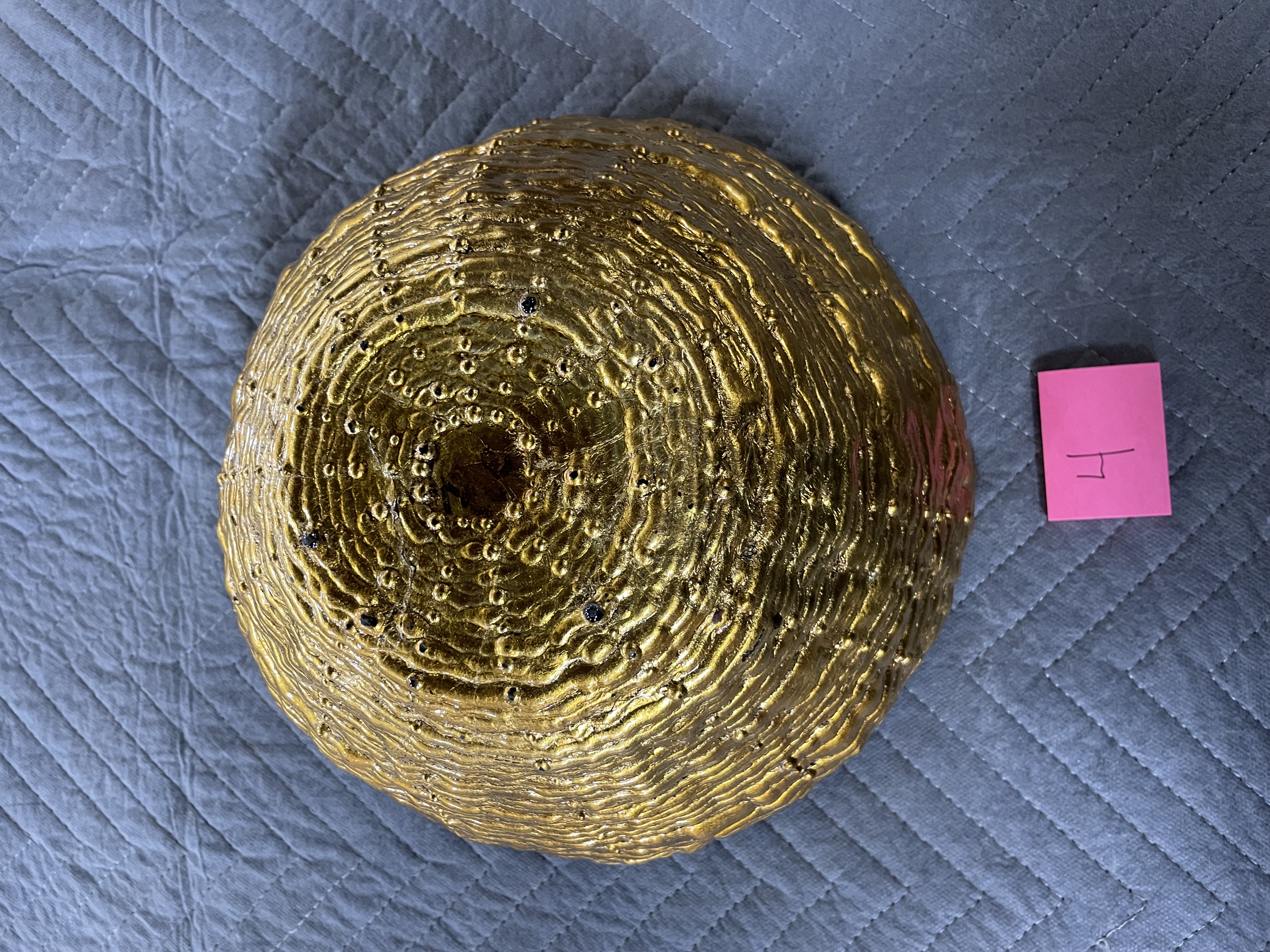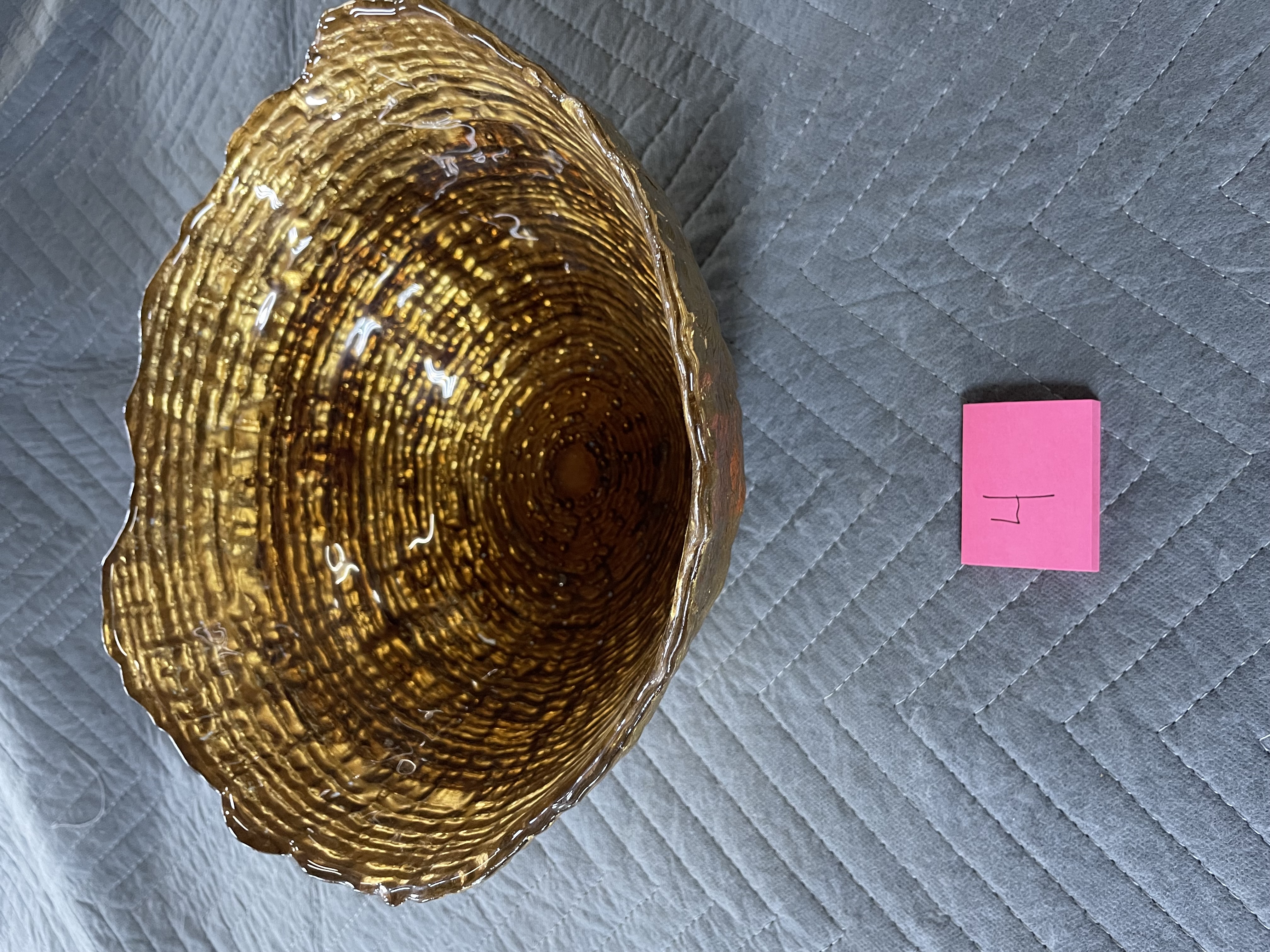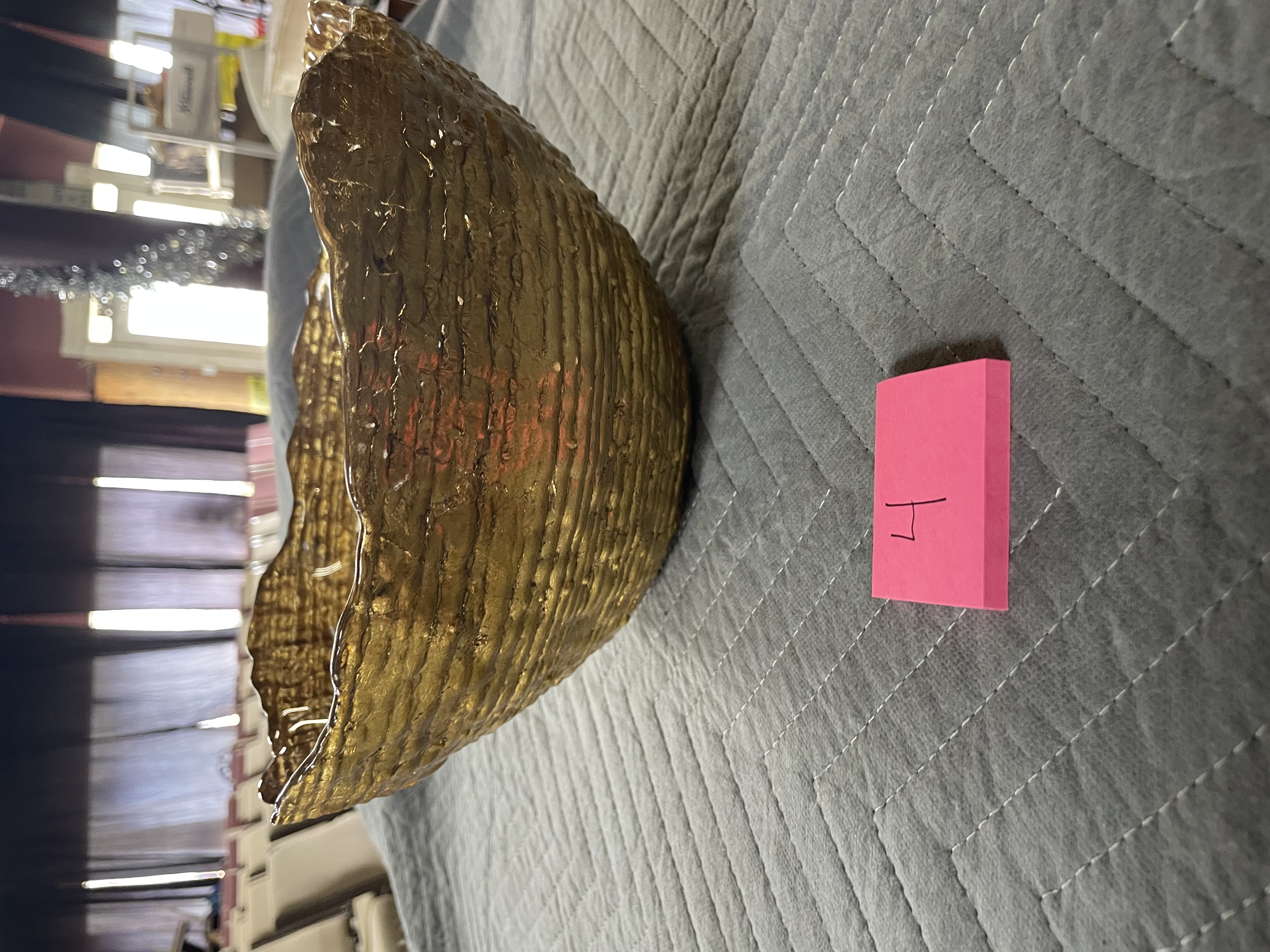 Goofy Glass Bowl Hand Painted Gold Scalloped Rim. I don’t see any dings cracks or chips its nice