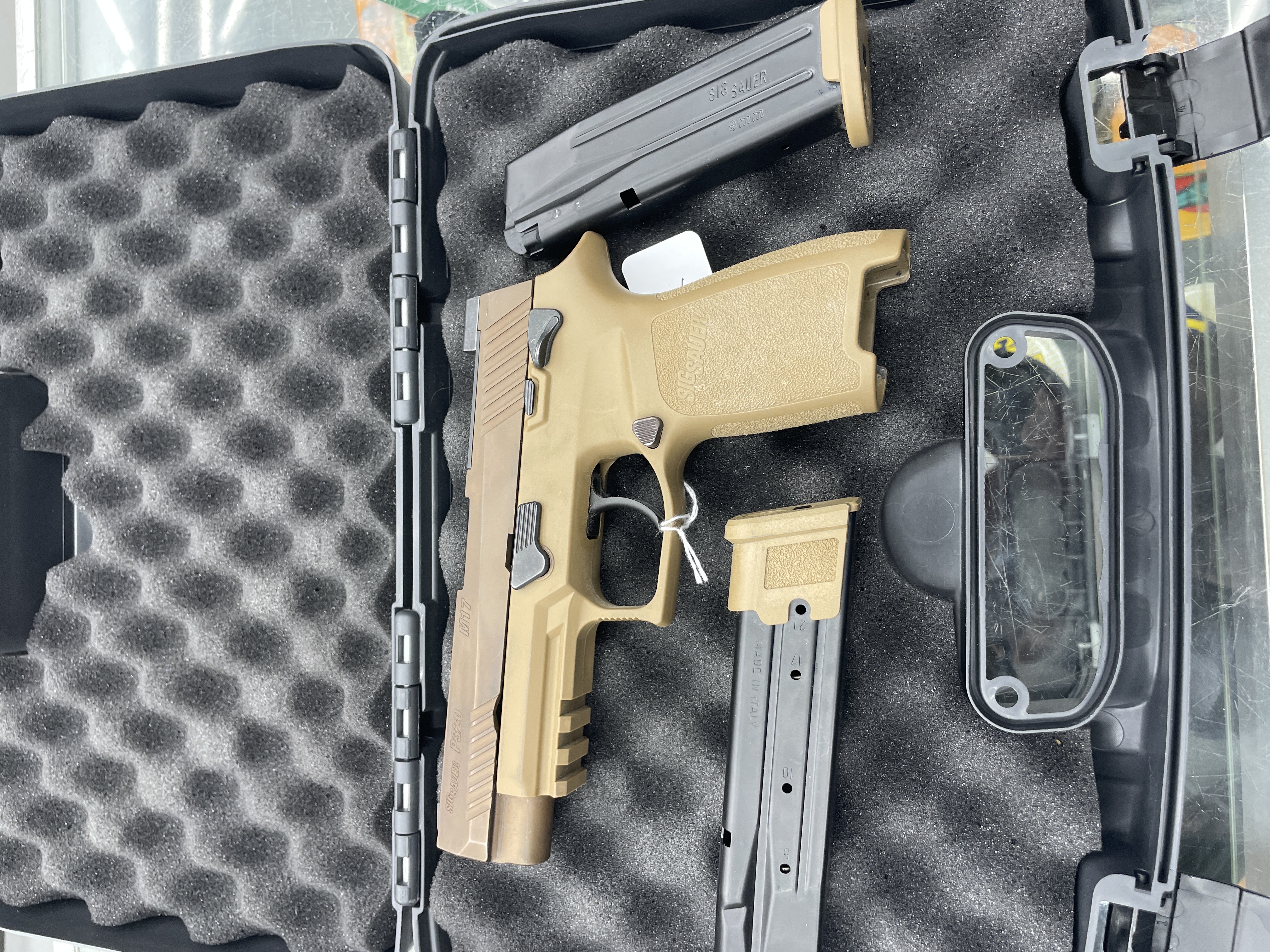 Sig Sauer Model 320-M17 with box two mags 17 rd and 21 rd mags included 9mm in Coyote-tan full size