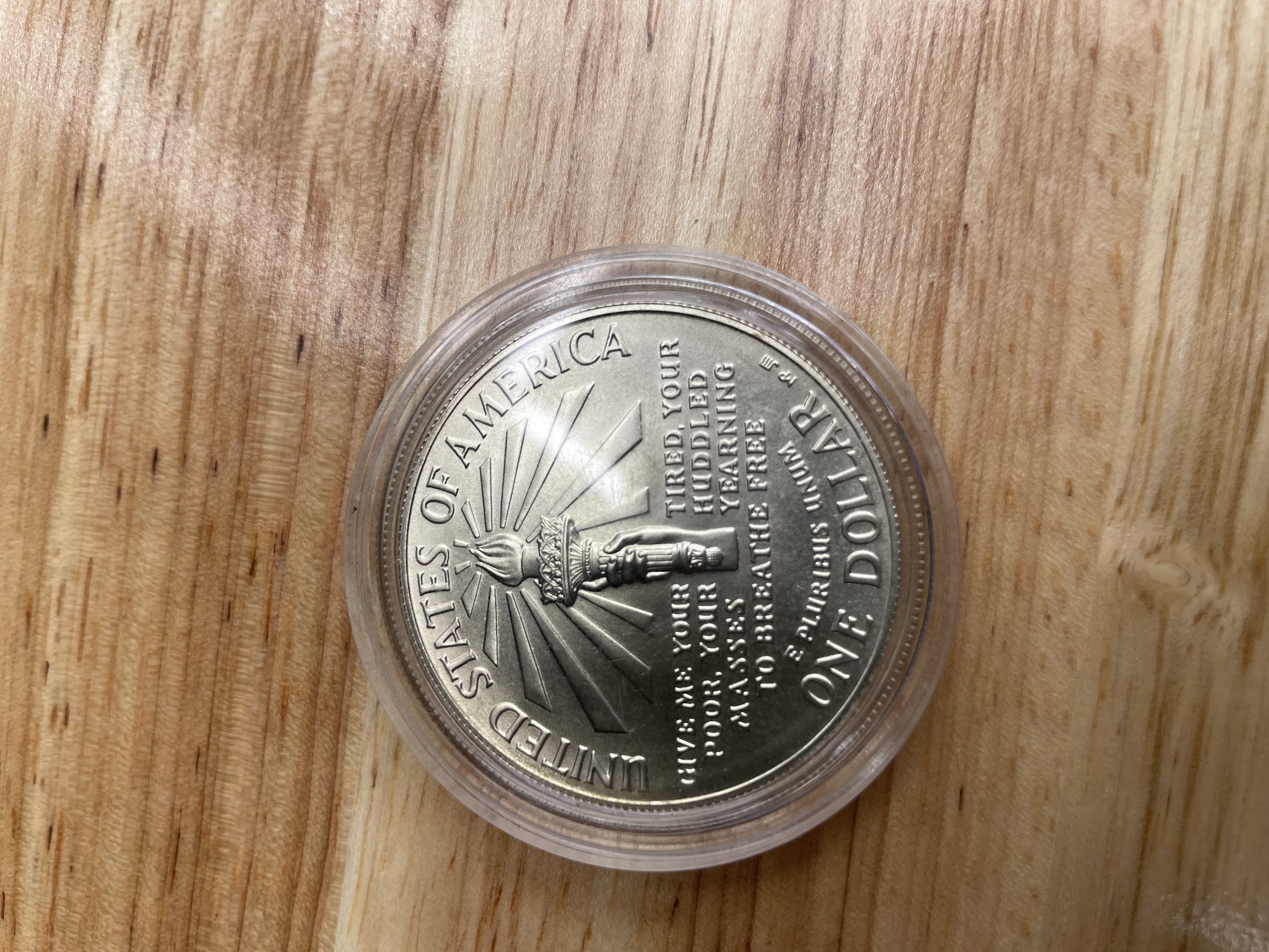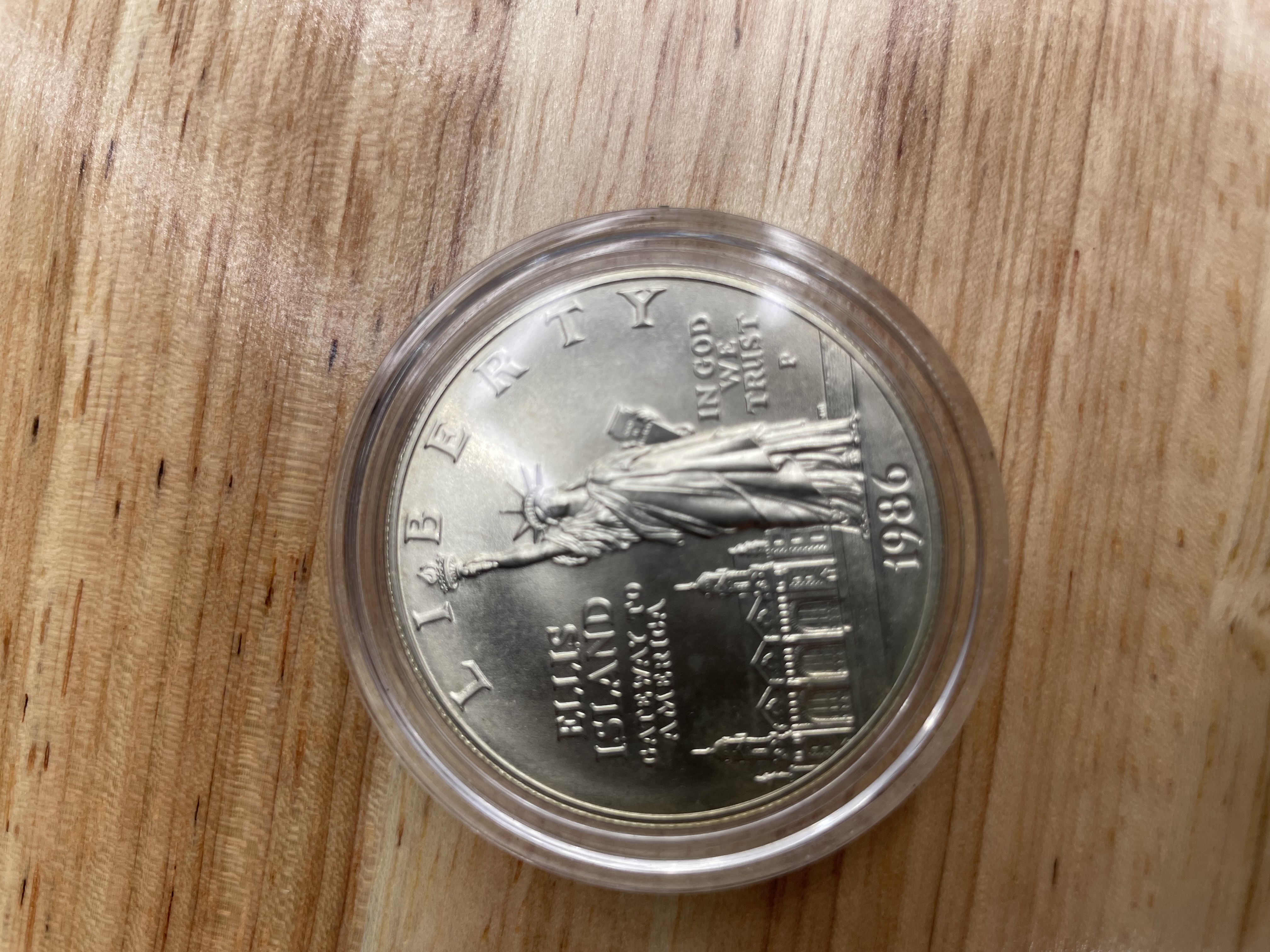 1986-P Liberty Ellis Island Silver Dollar U.S. Coin with Box 90% Silver. Weight is 34 Grams IN plastic case.