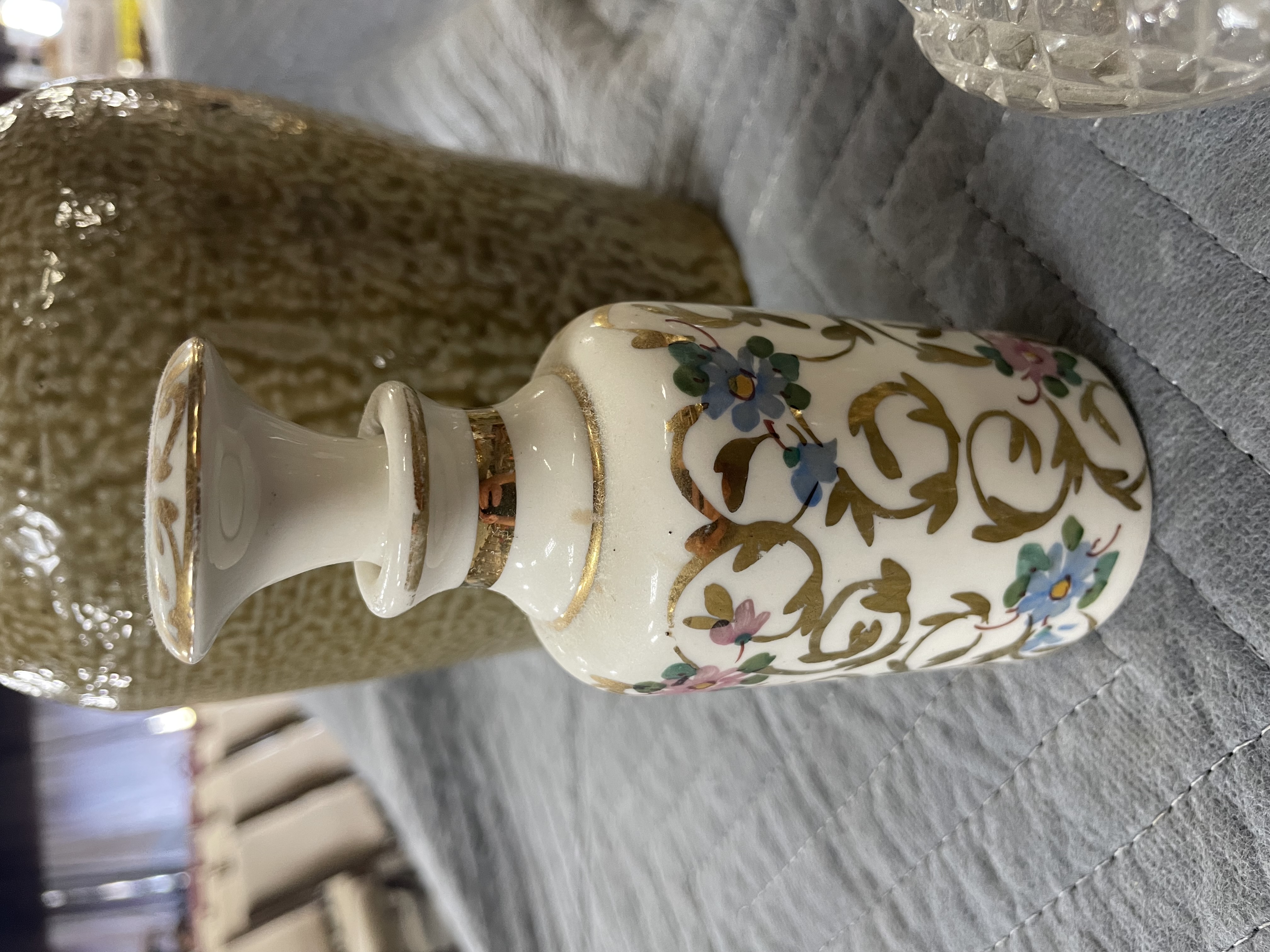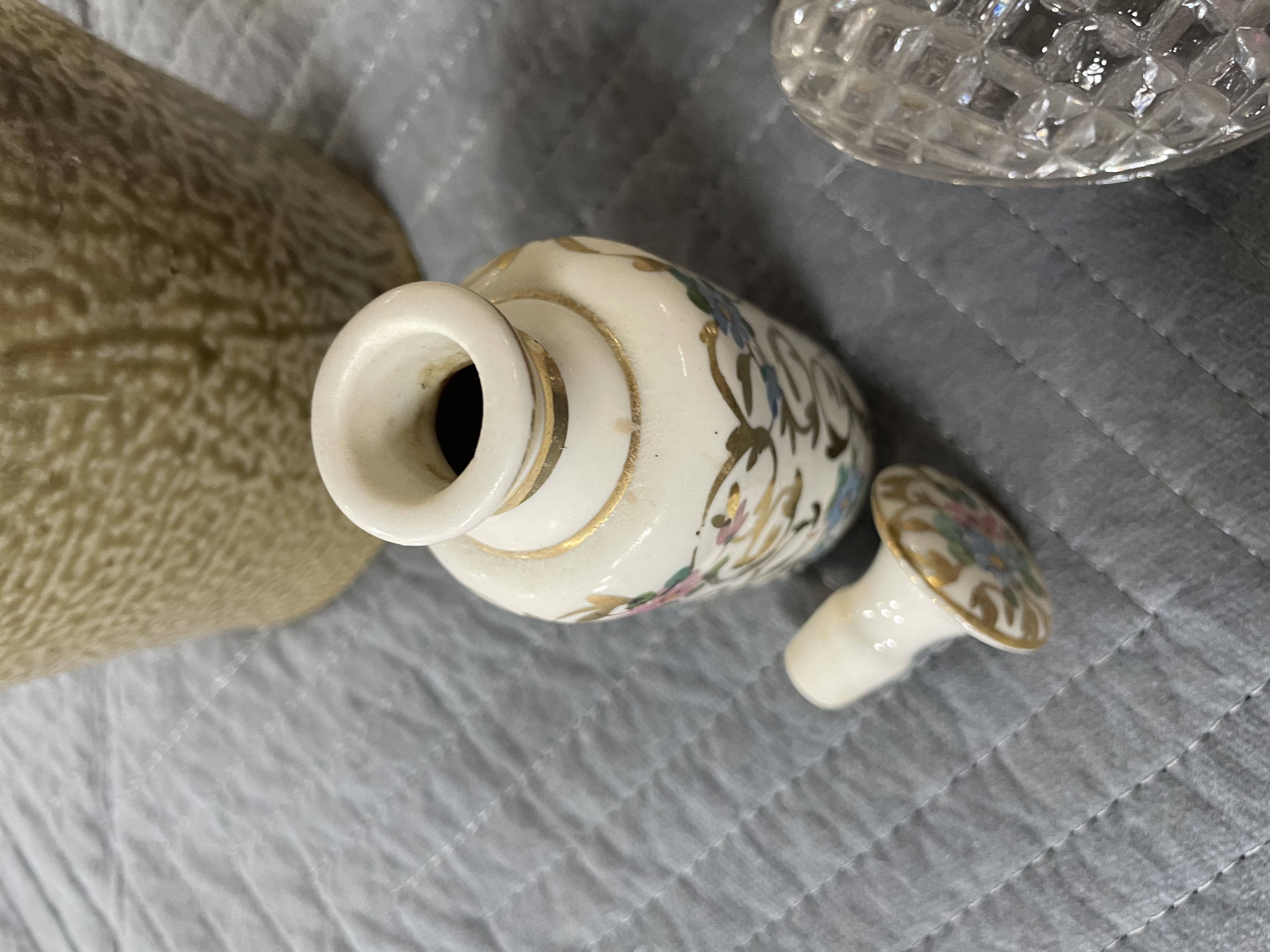 Midcentury AWCO Charleton Rose Decorated Porcelain Round Cologne Bottle