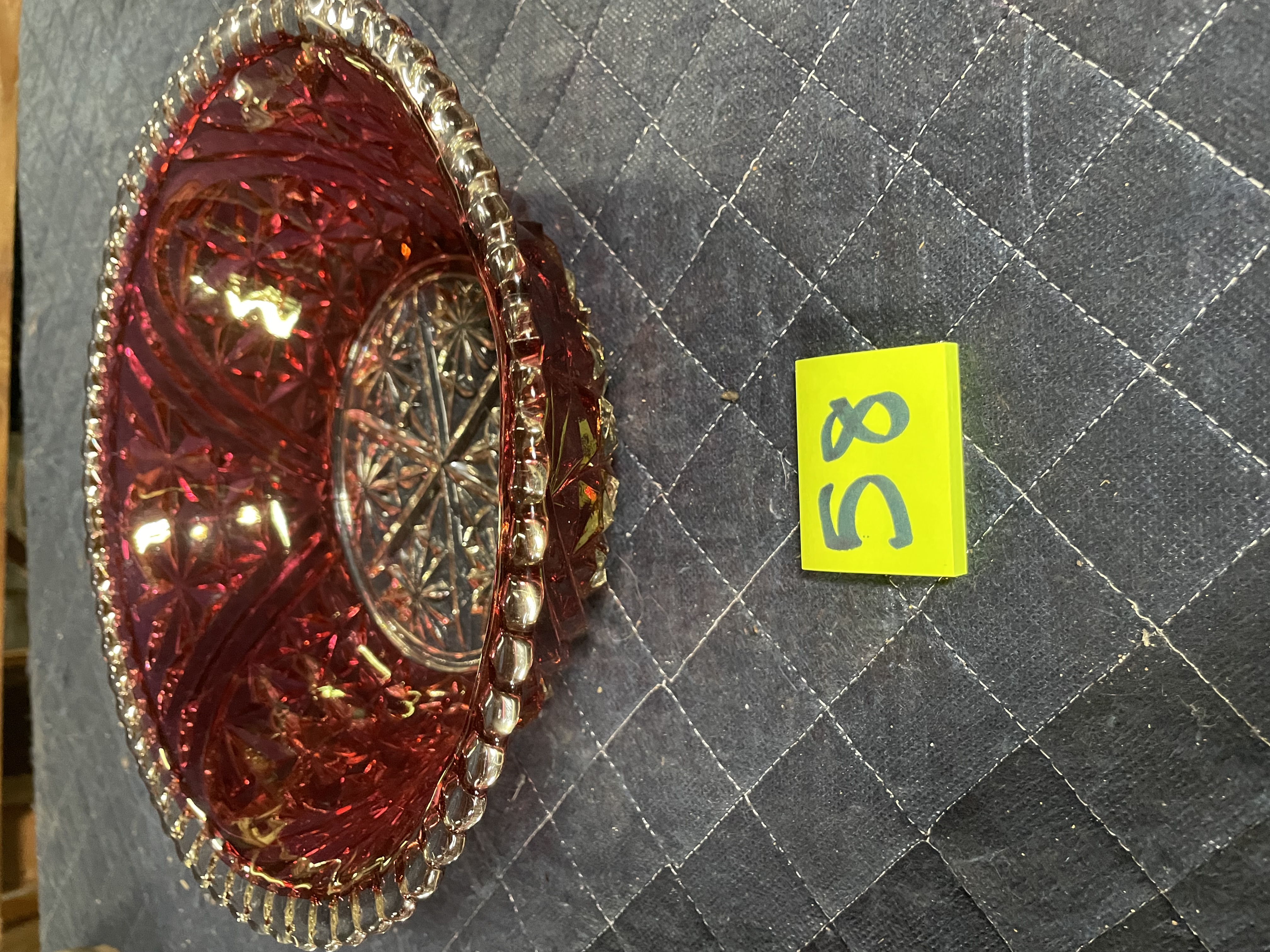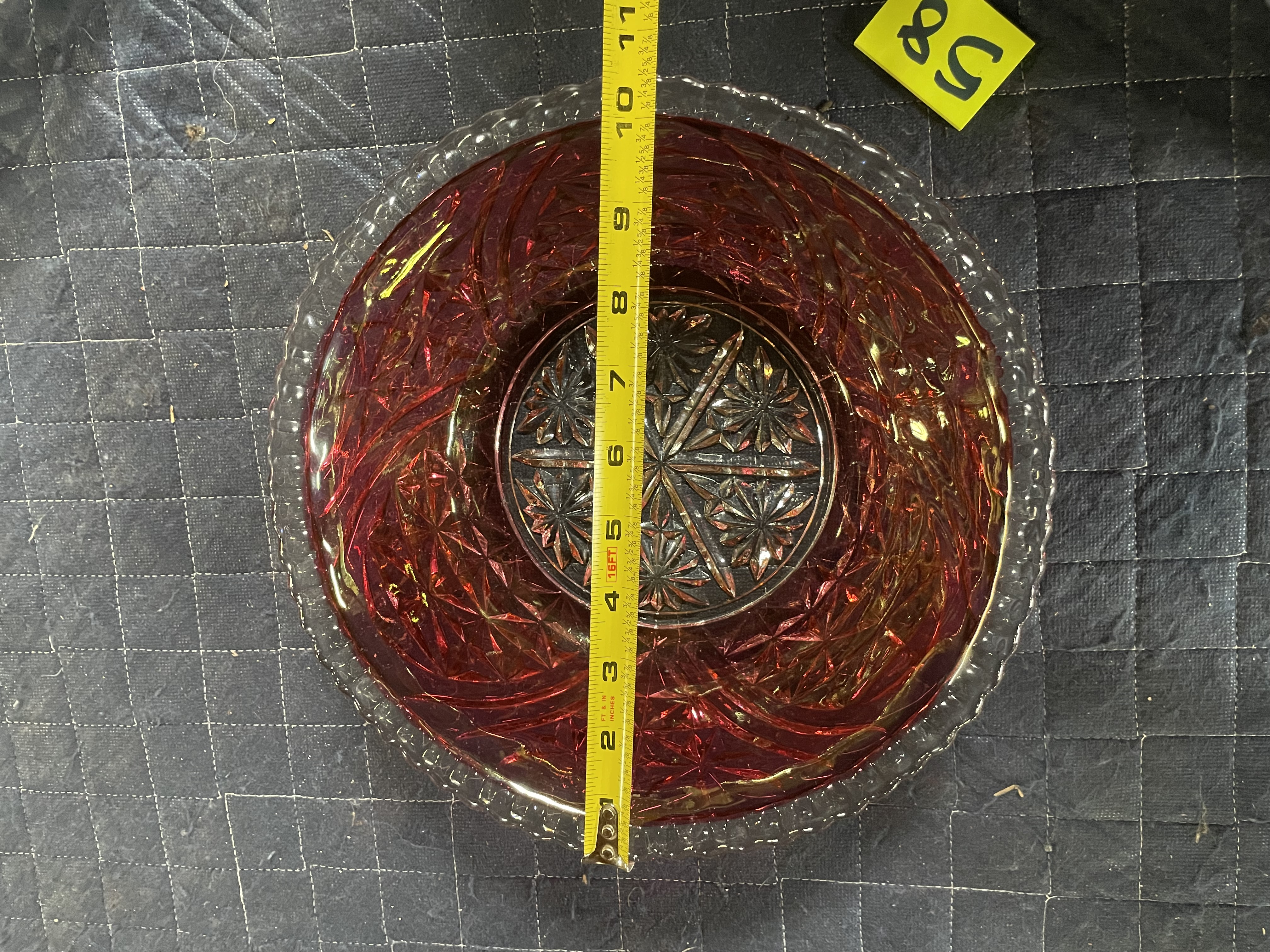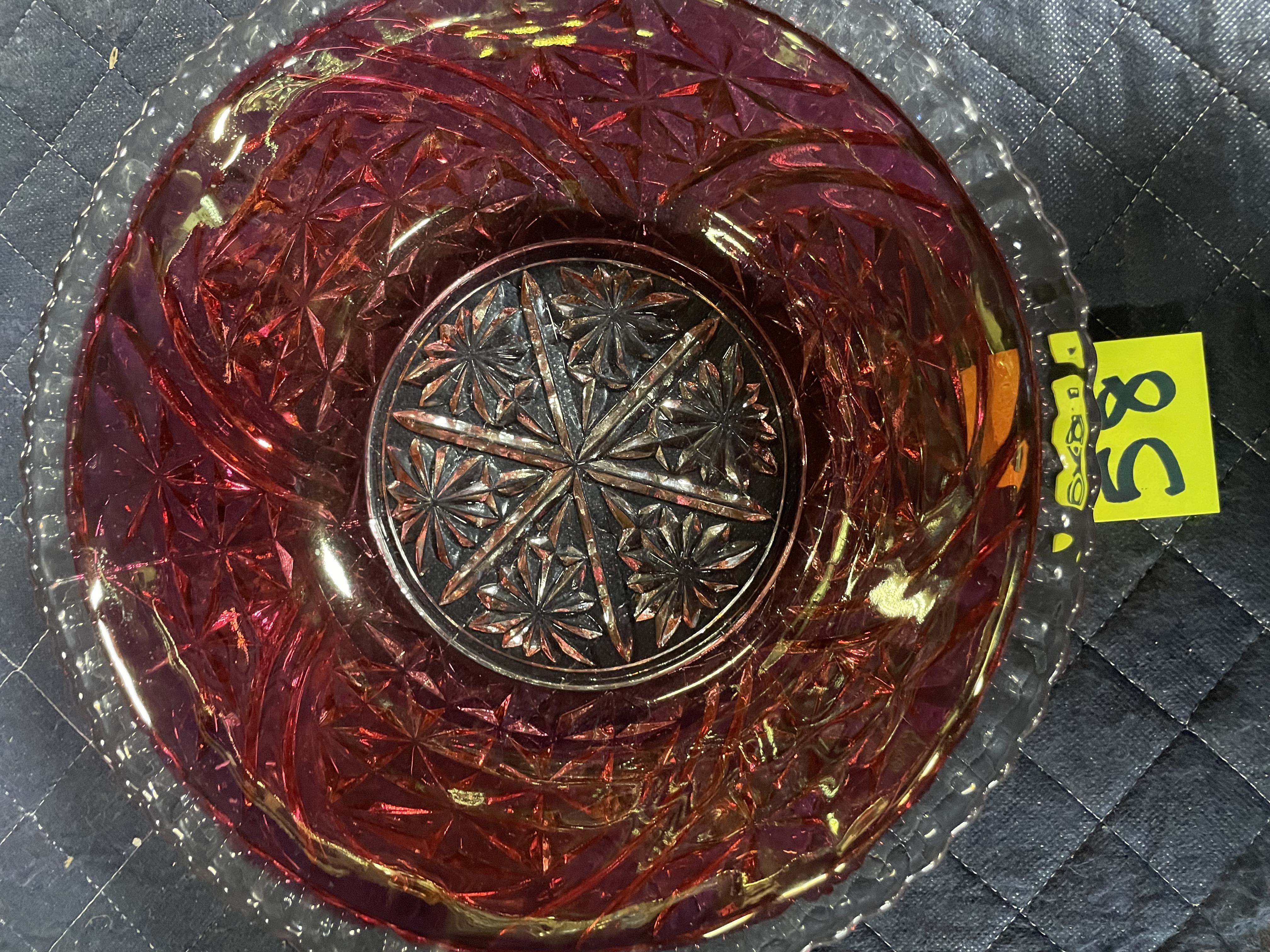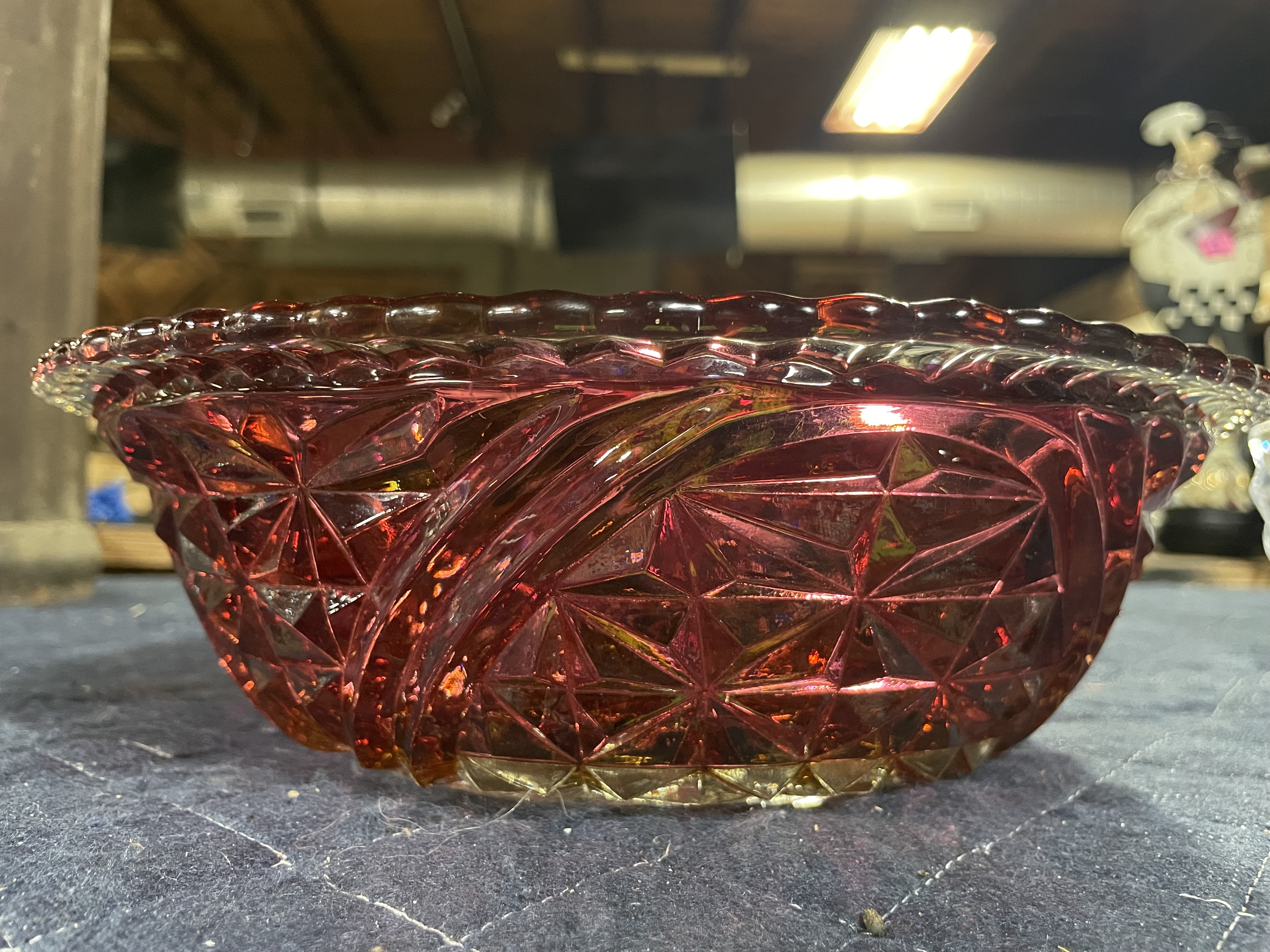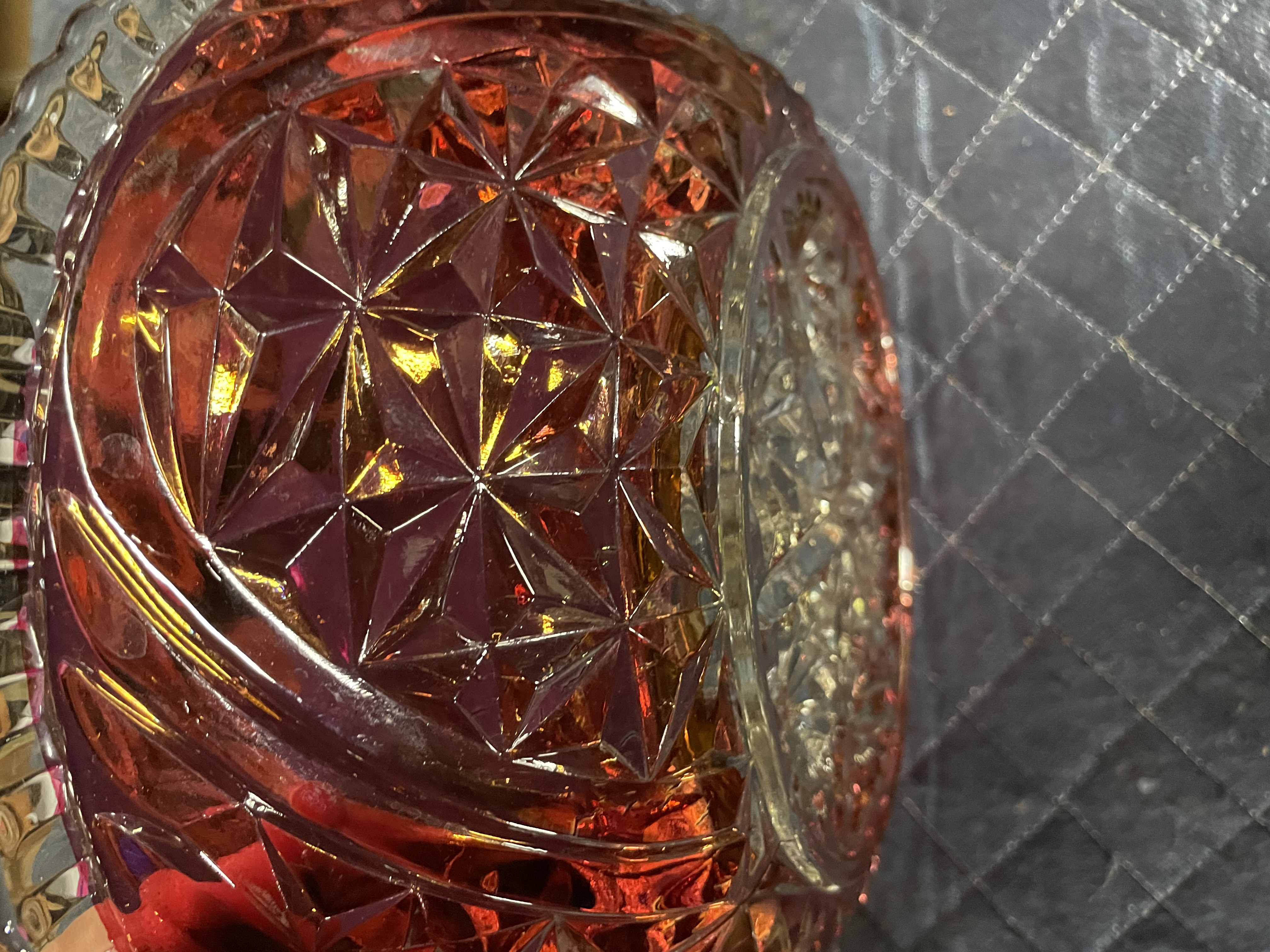 Vintage two toned clear/cranberry glass bowl. No chips I don’t think it is flash glass