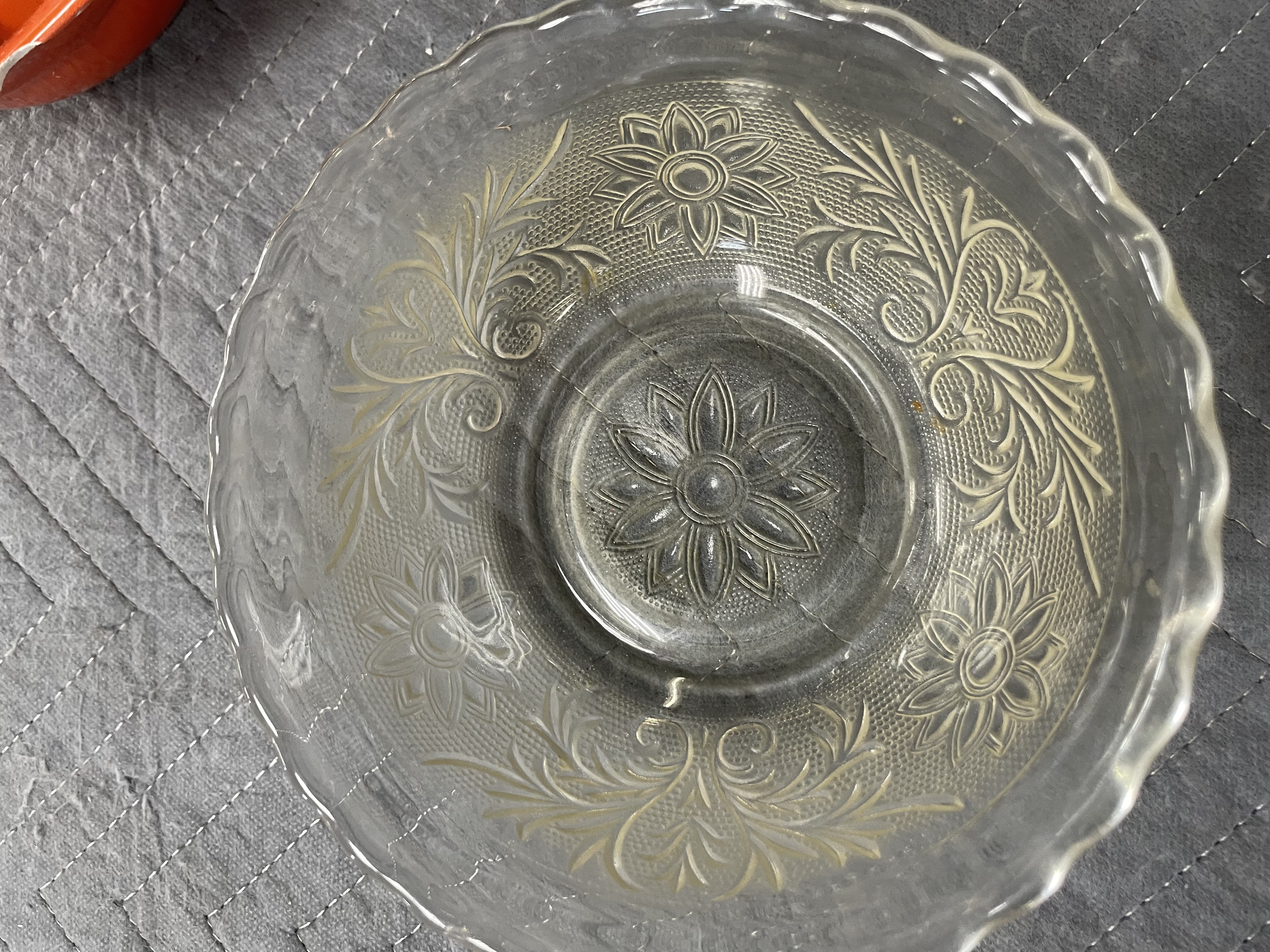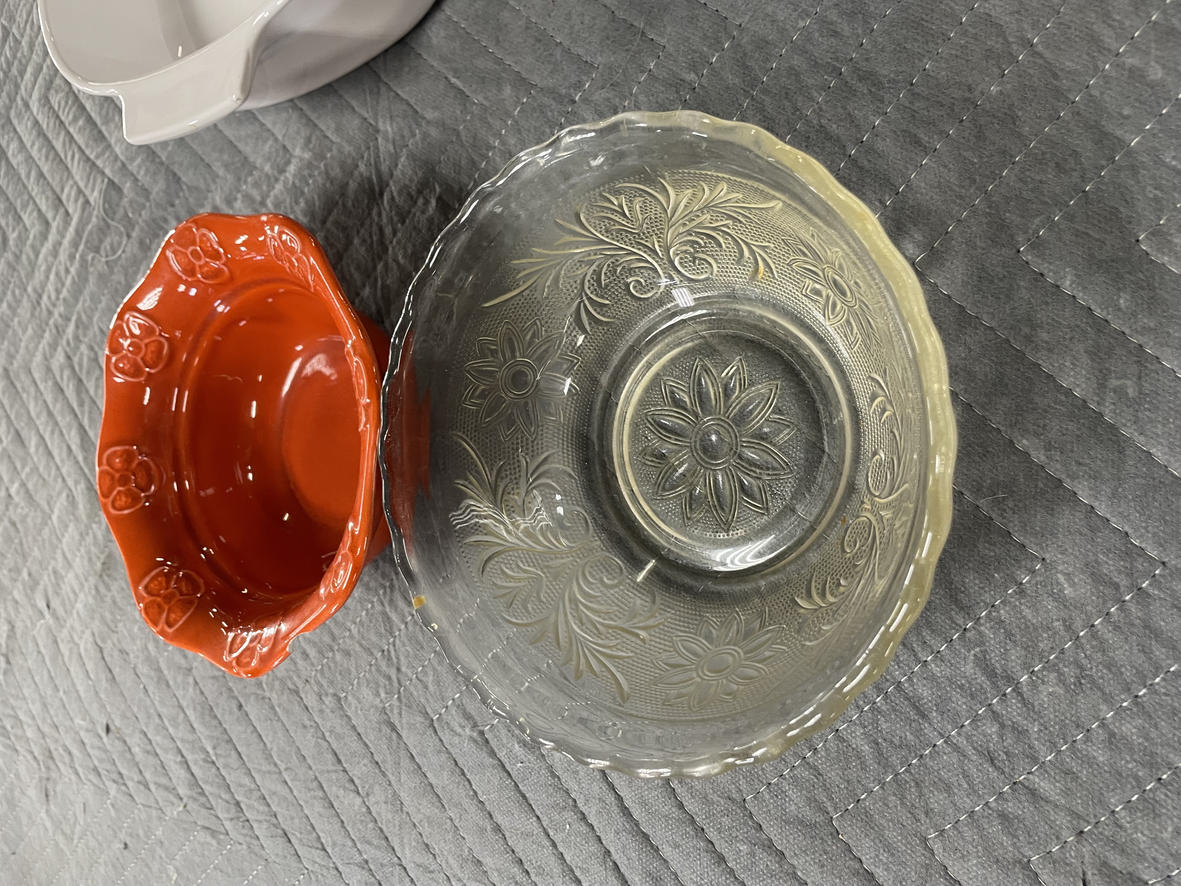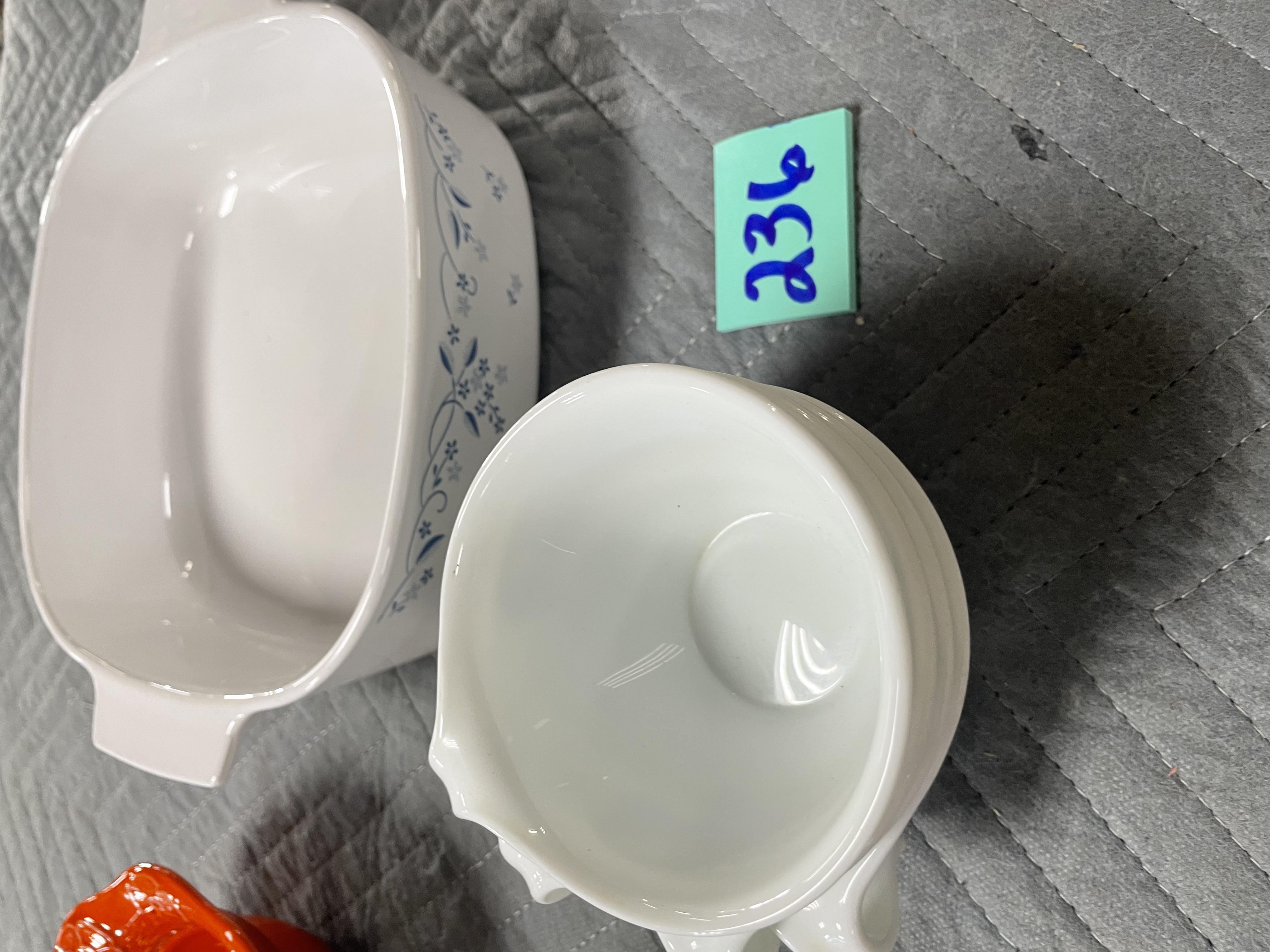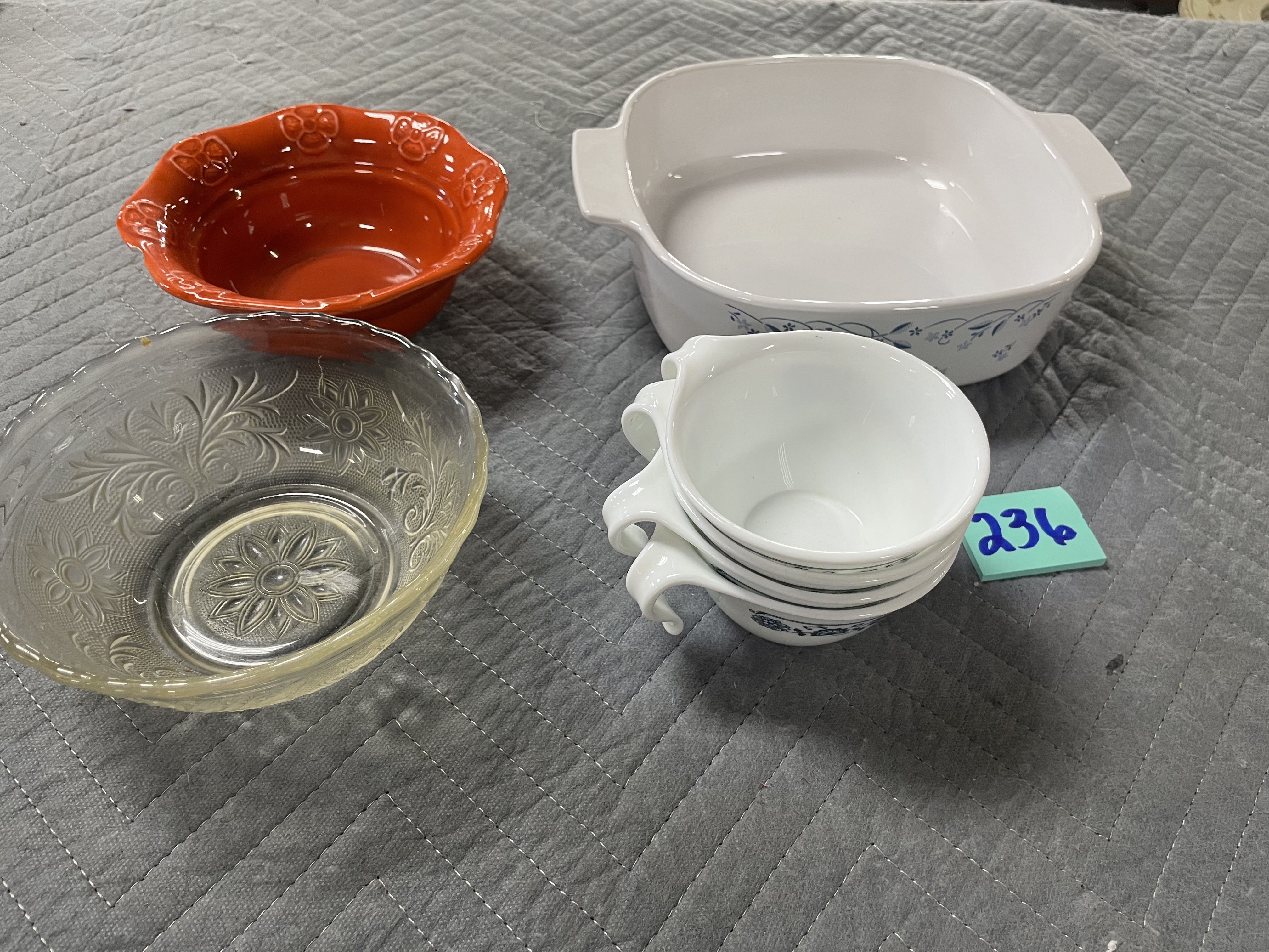 Corning Ware Casserole Corelle by Corning Handle Cups Calif USA 259 Pottery Bowl (does have chip) Clear glass bowl