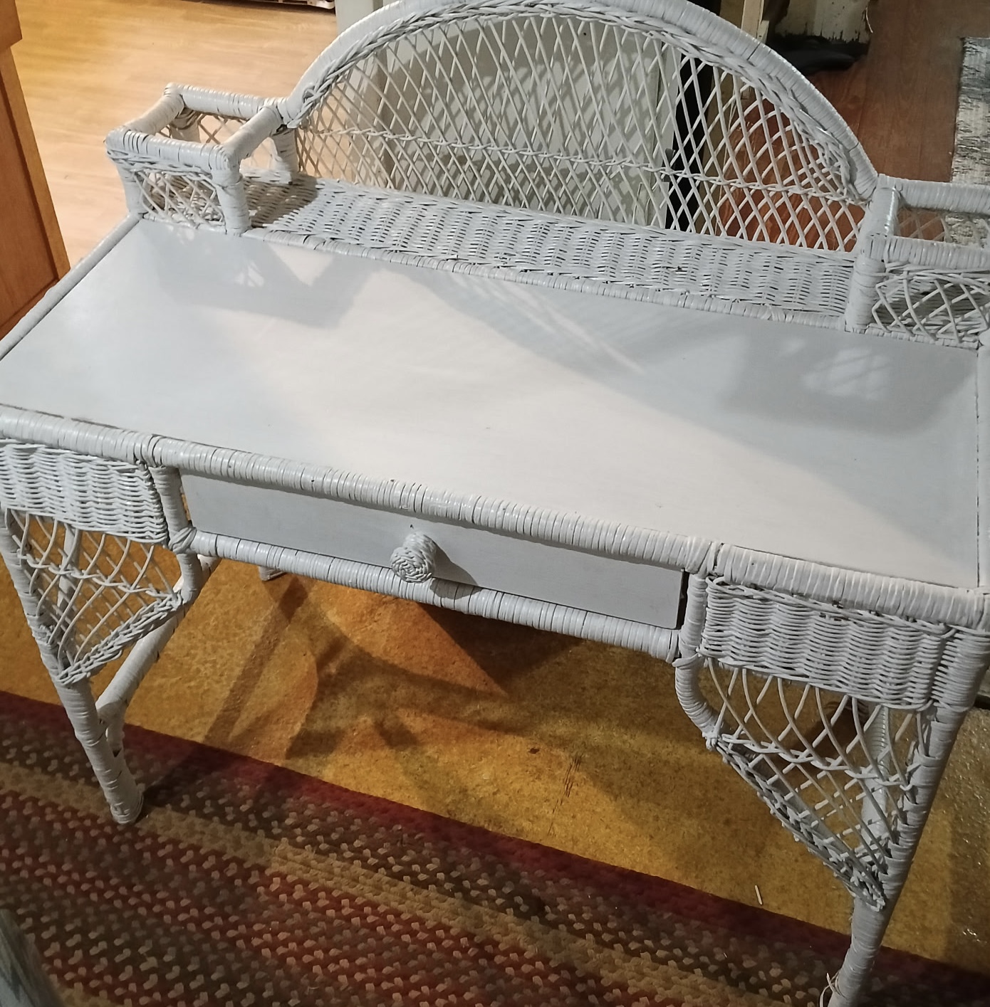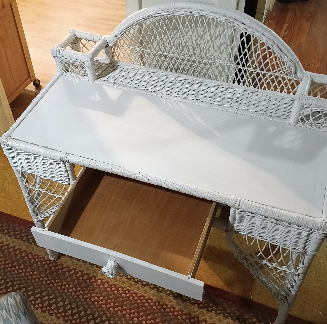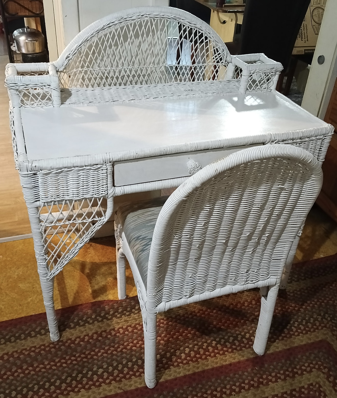 Wicker vanity with Chair. Does have some minor flaws as shown in pictures.
