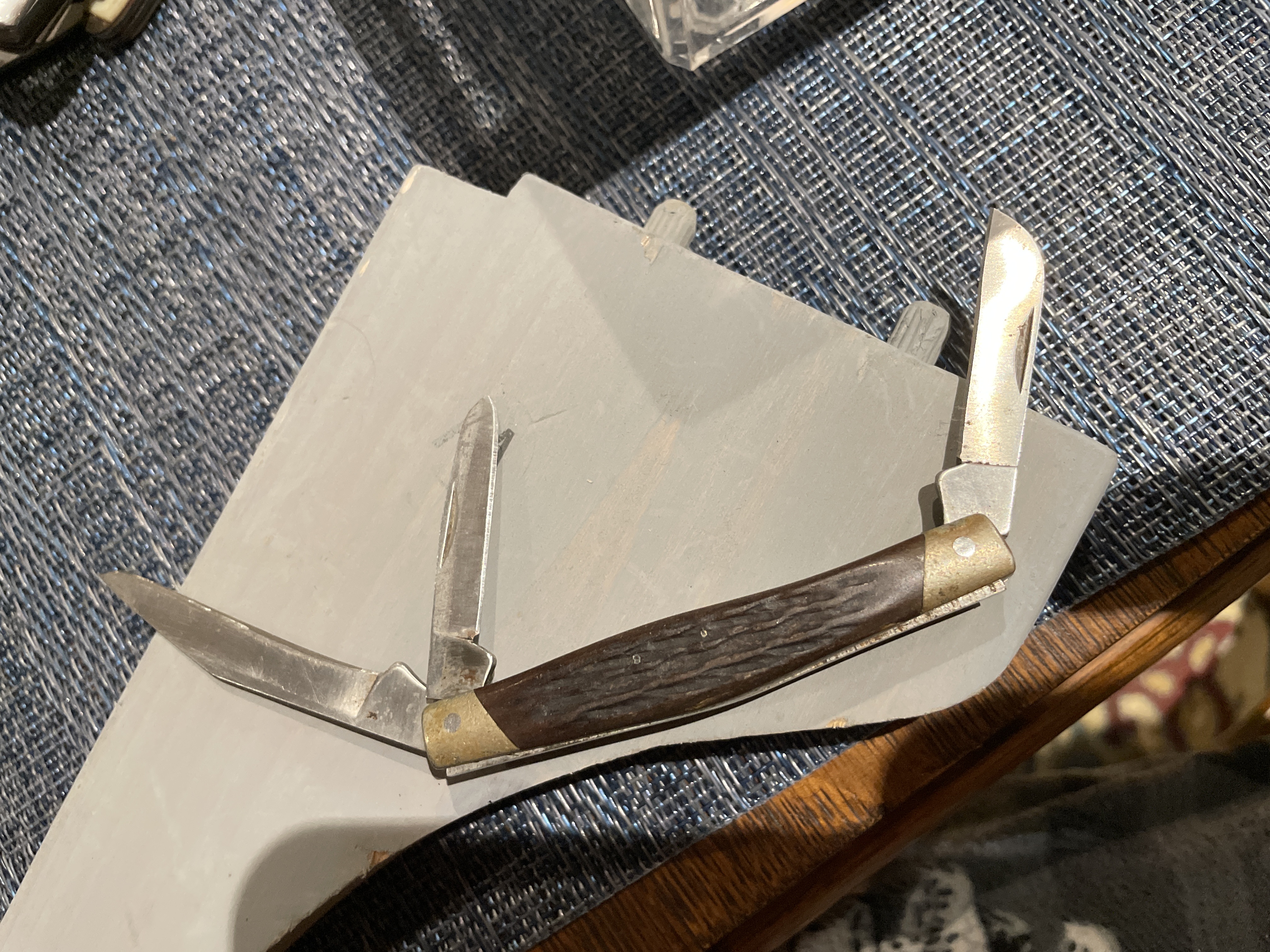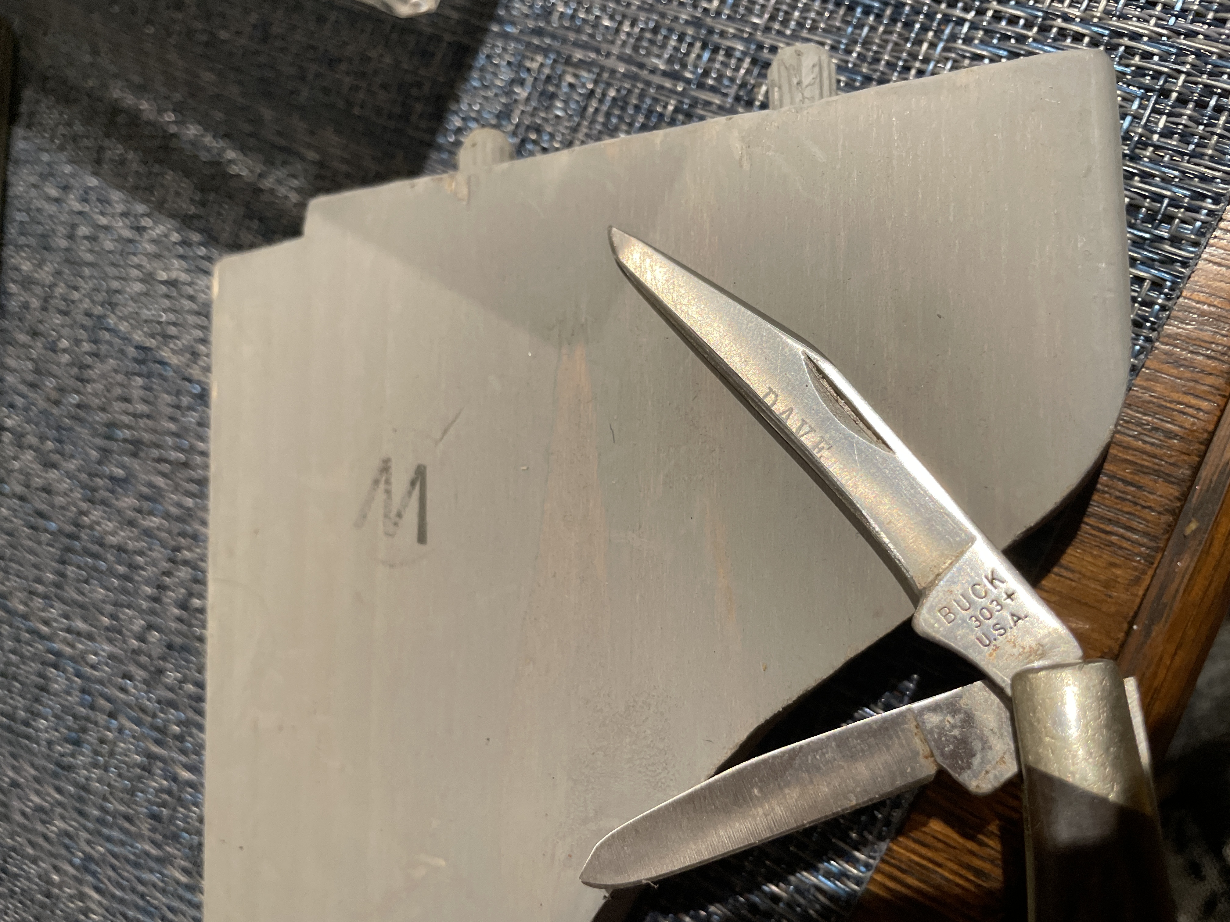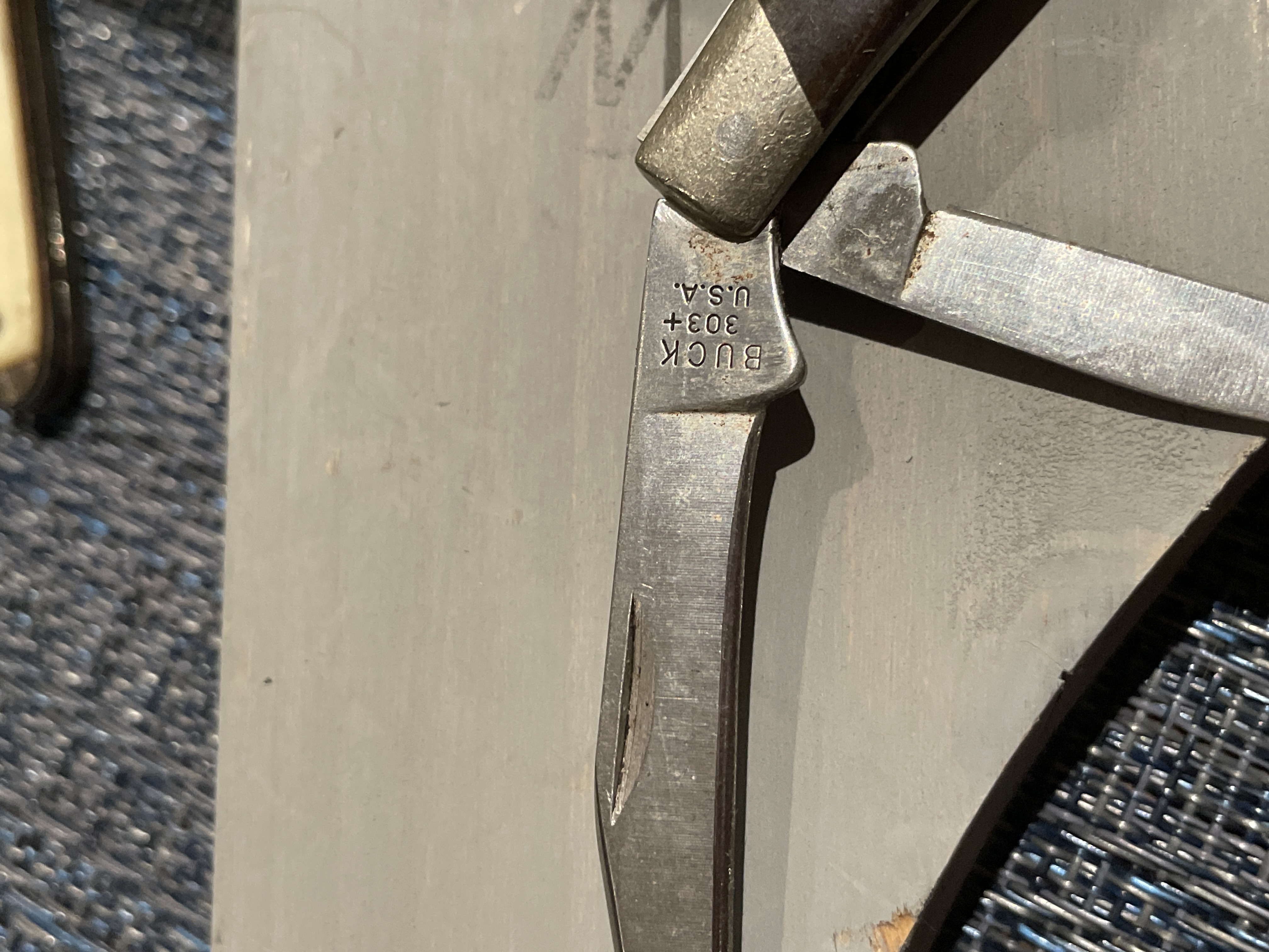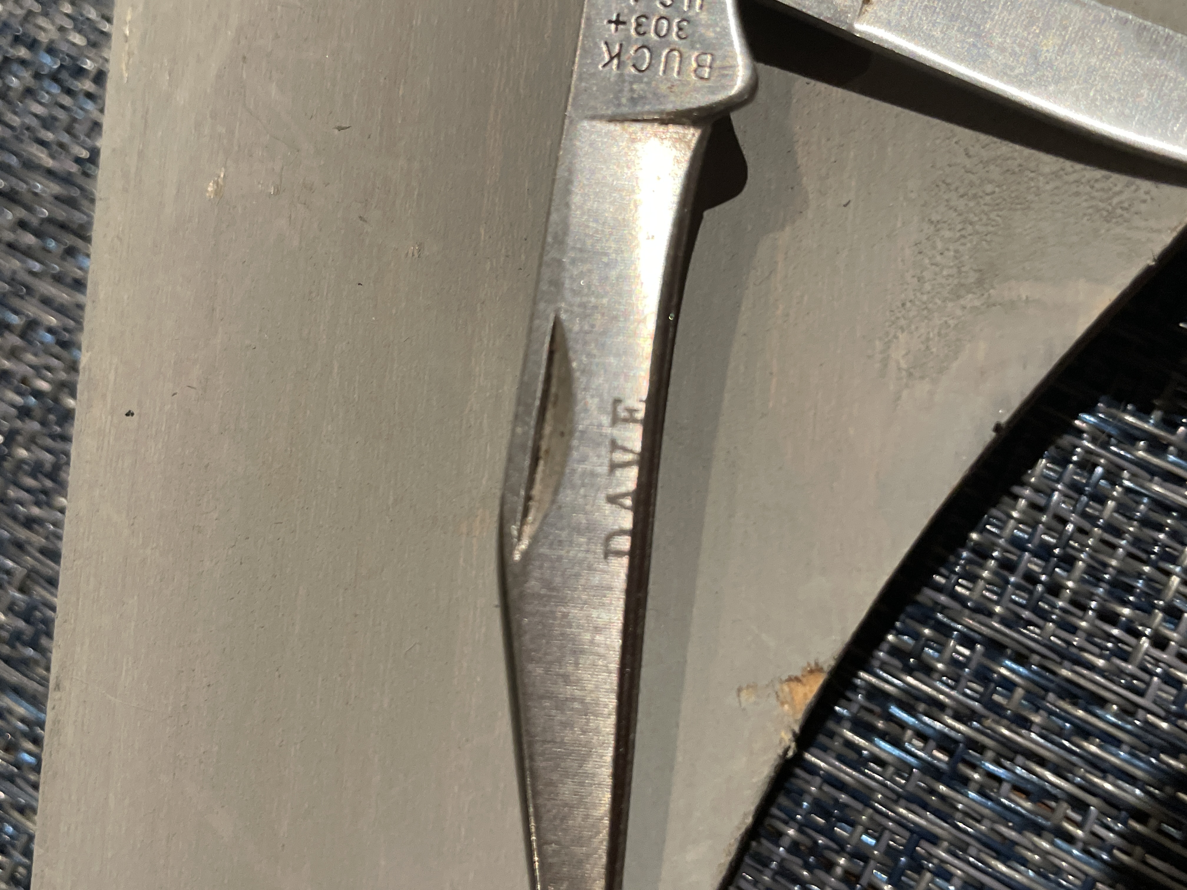 Vtg 1991 Buck 303 Cadet Stockman 3 Blade Folding Pocket Knife Brown Bone Used condition word Dave is professional etched in blade see picture