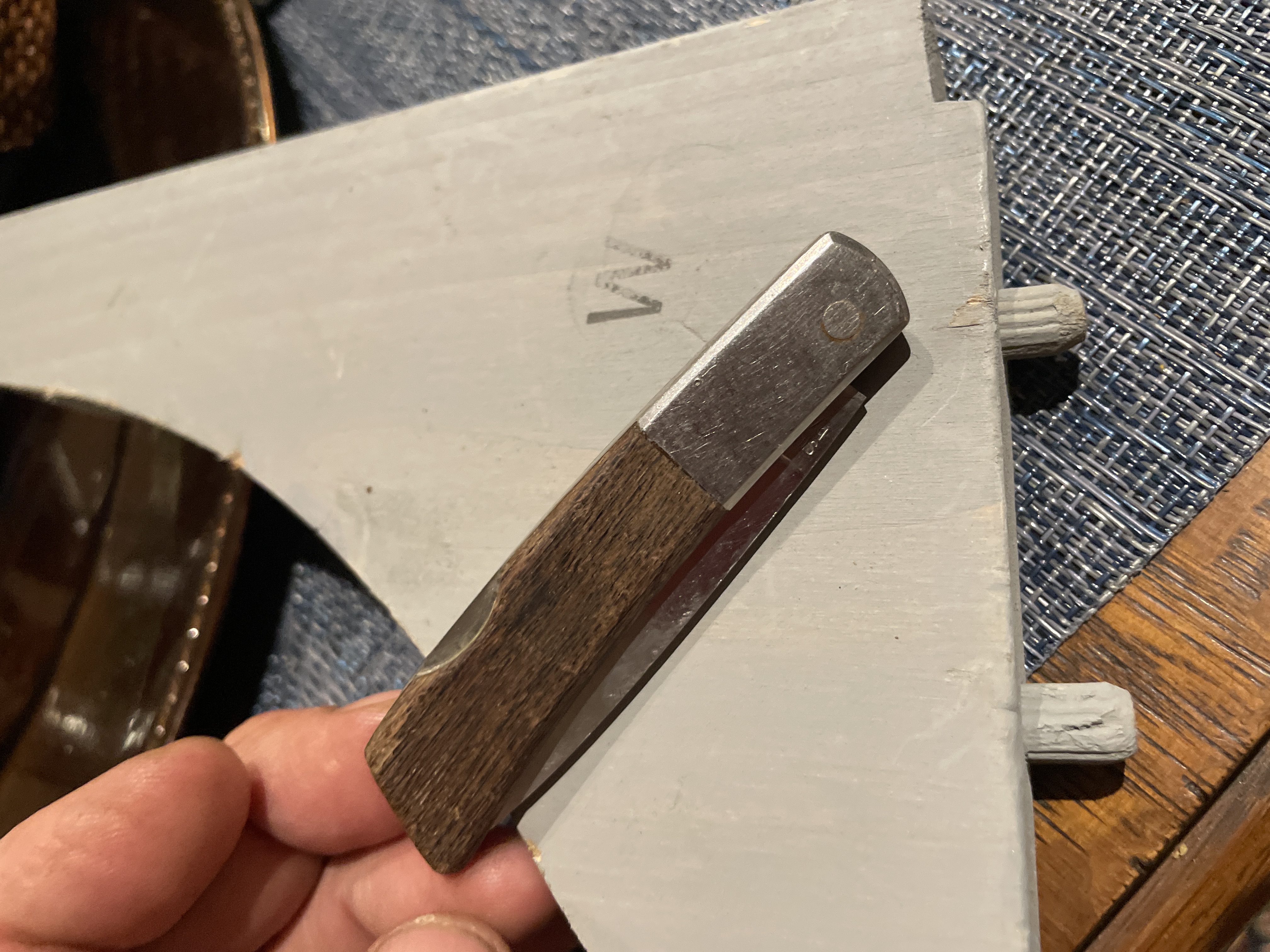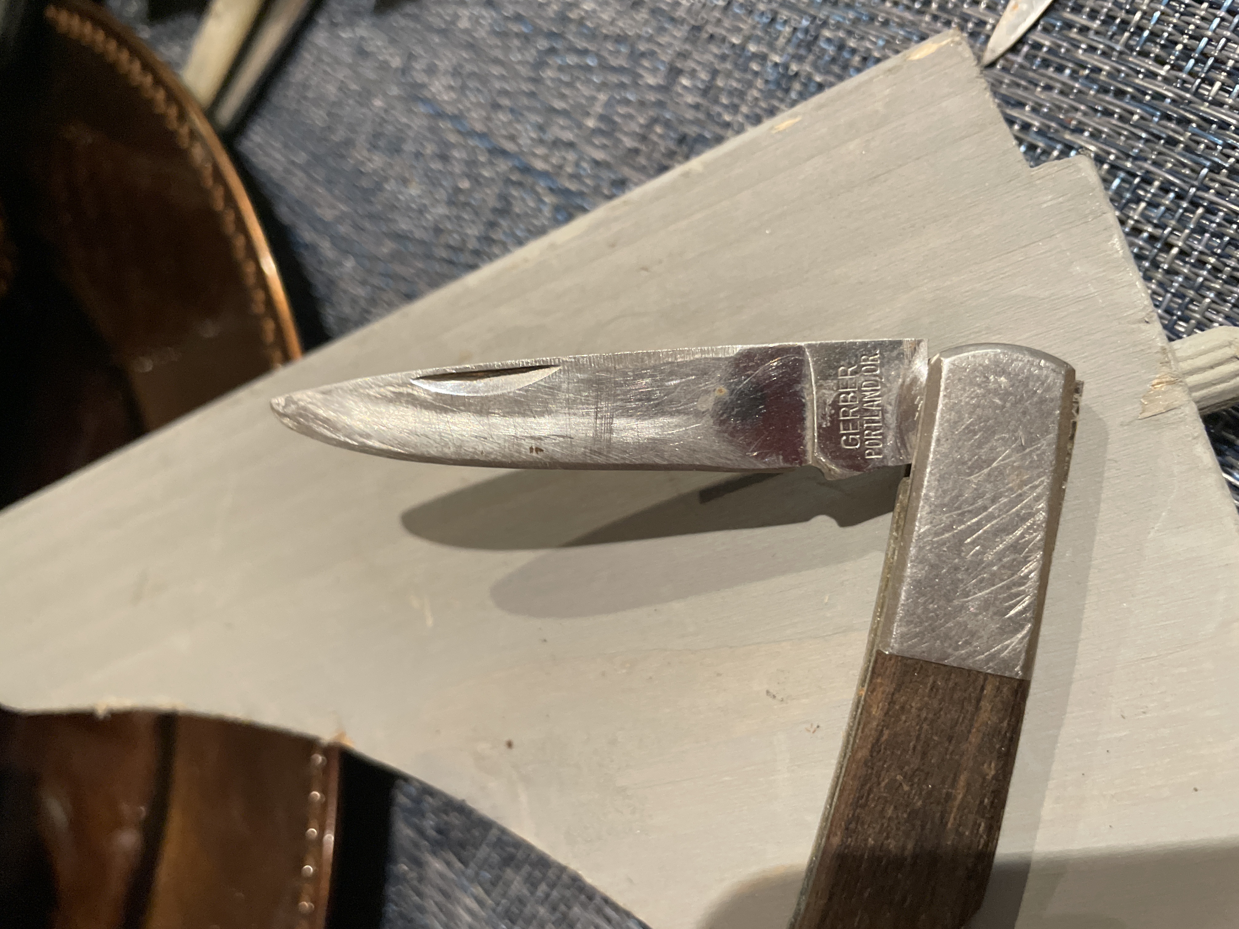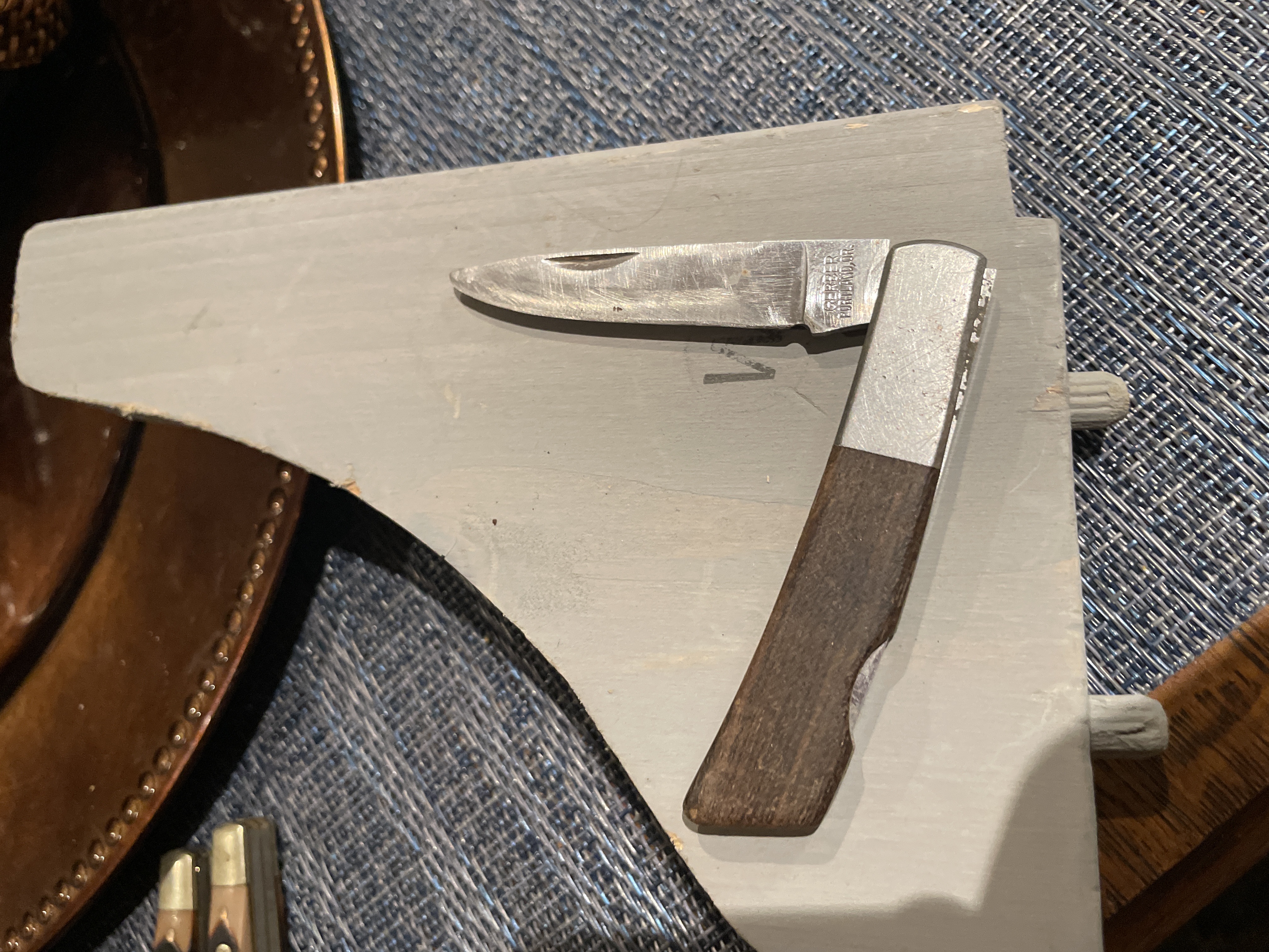 Vintage GERBER SILVER Knight Knife Japan Brown Wood Handles SS Blades 3 3/8″ Closed Shipping available