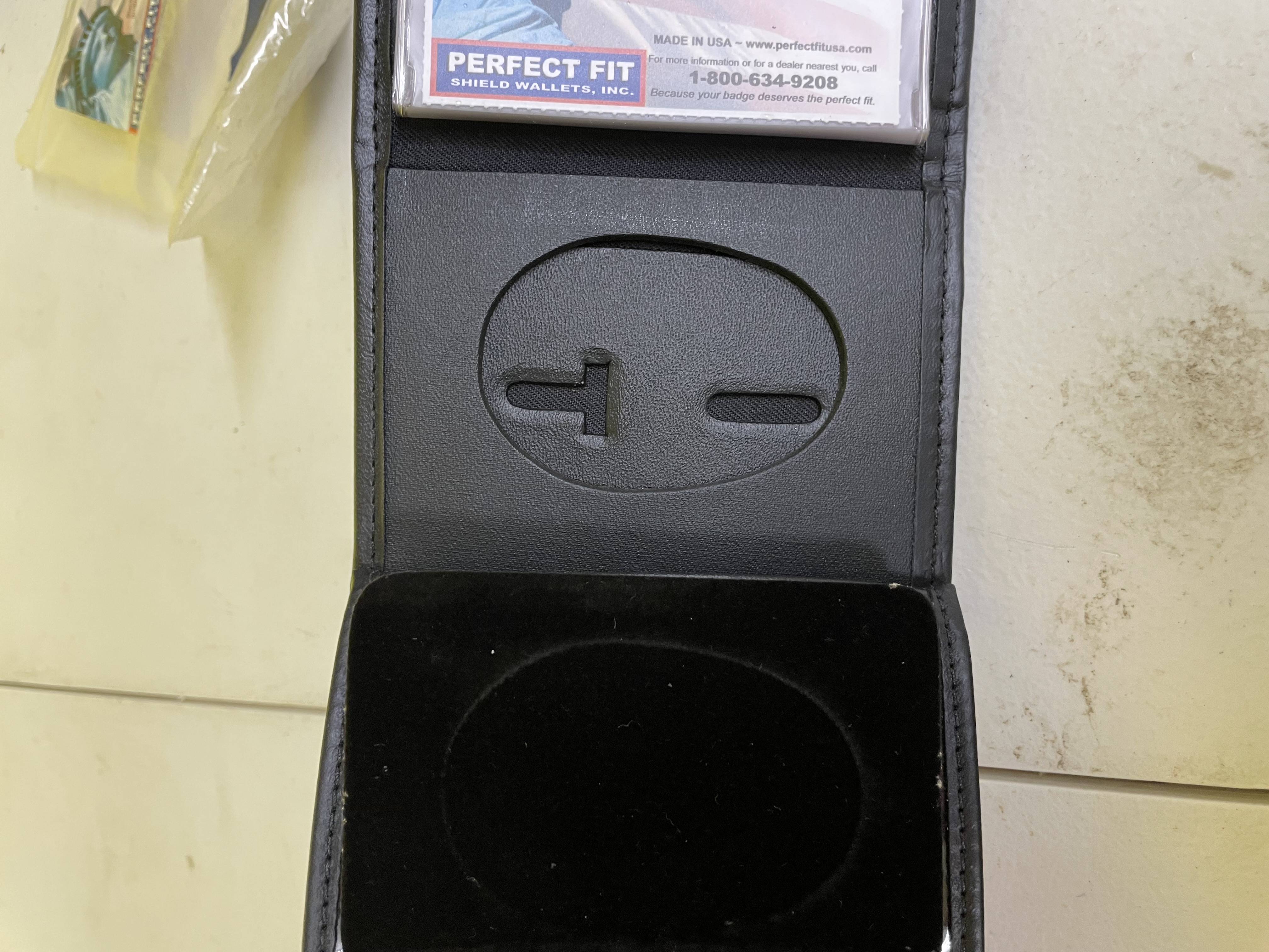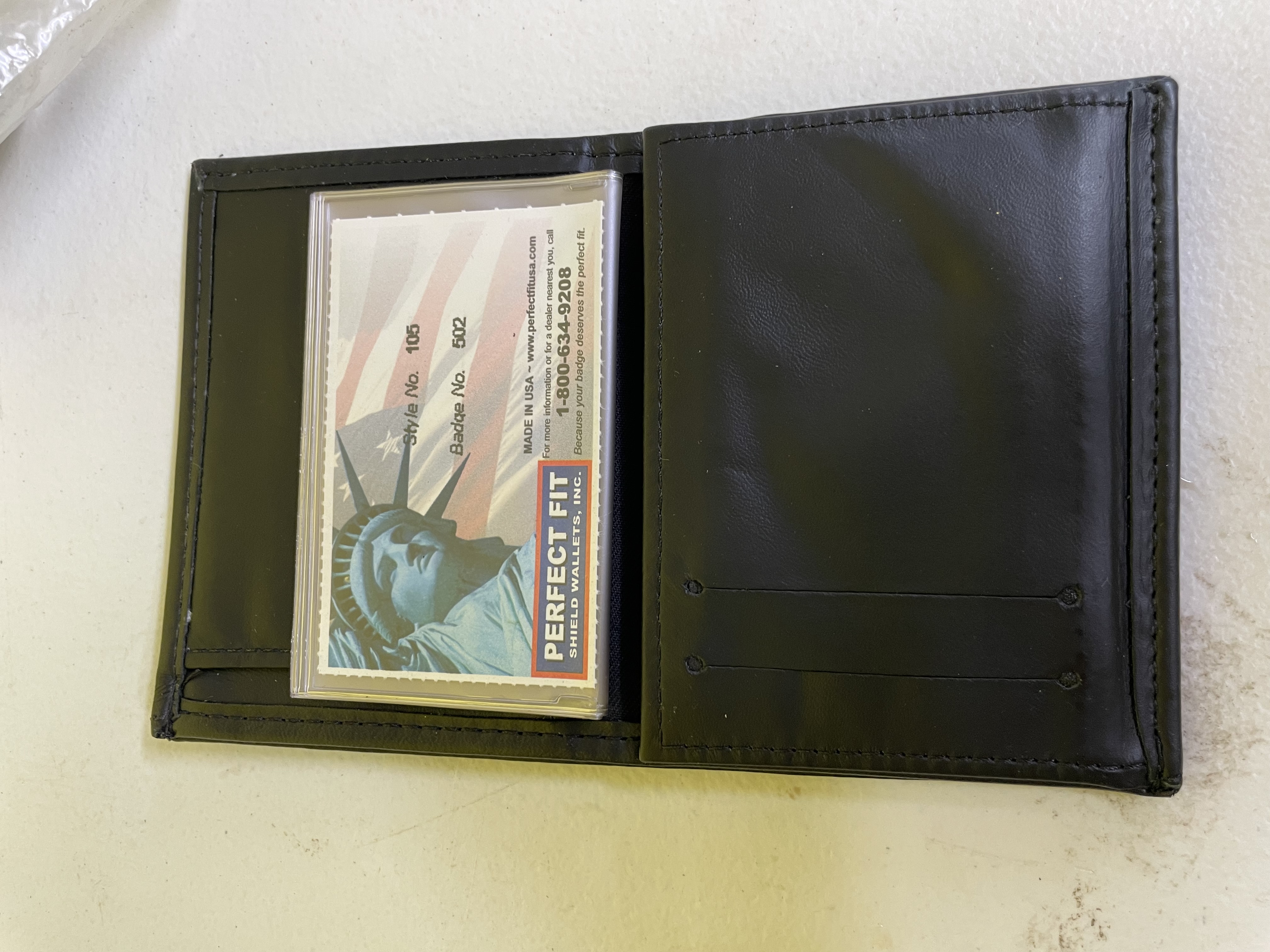 Recessed badge, wallet with single ID and credit card slot max ID size 2 1/2” x 4”