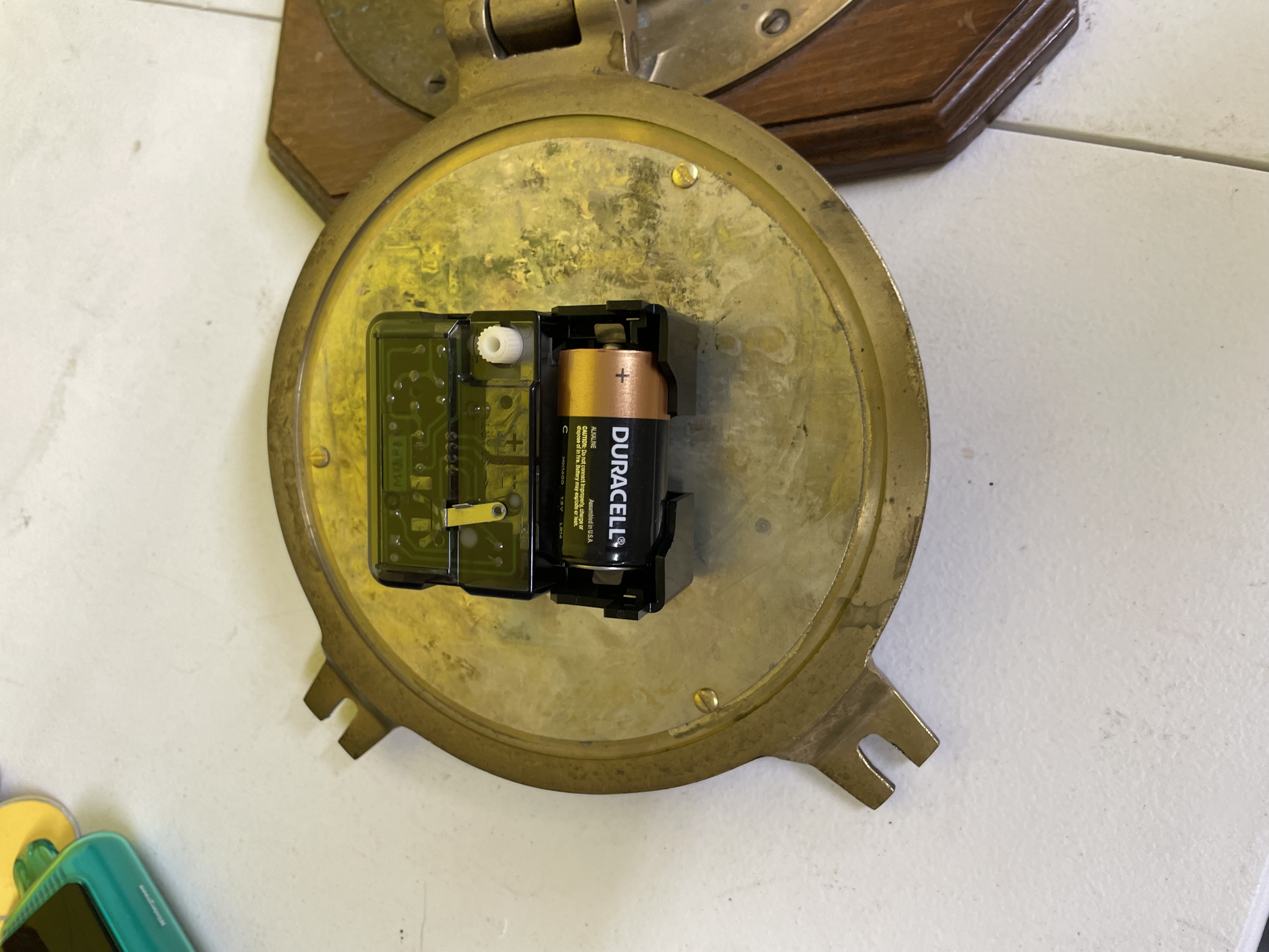 Cheesea Clock Co clock. Does work, needs new battery No glass or covering on face.