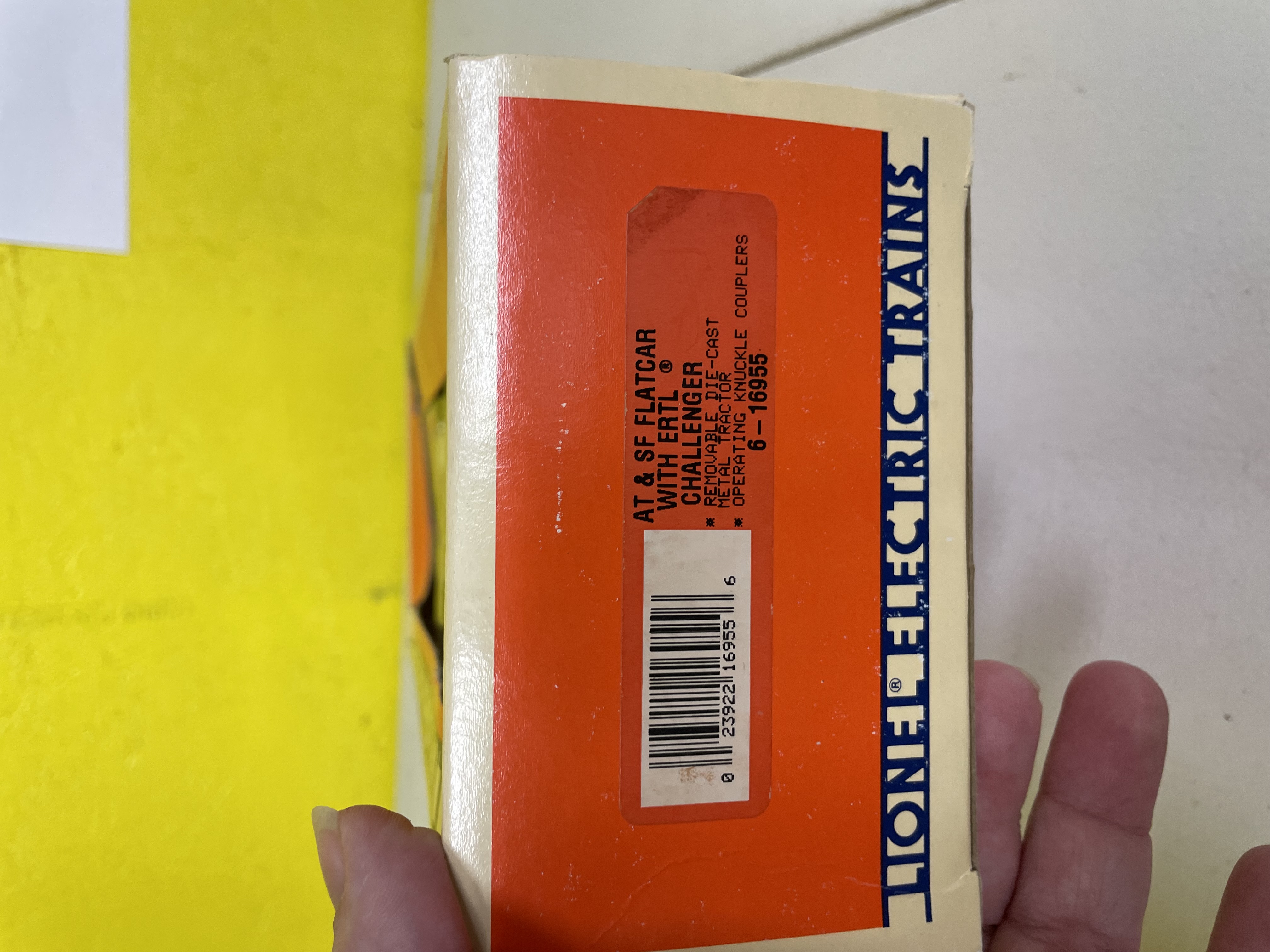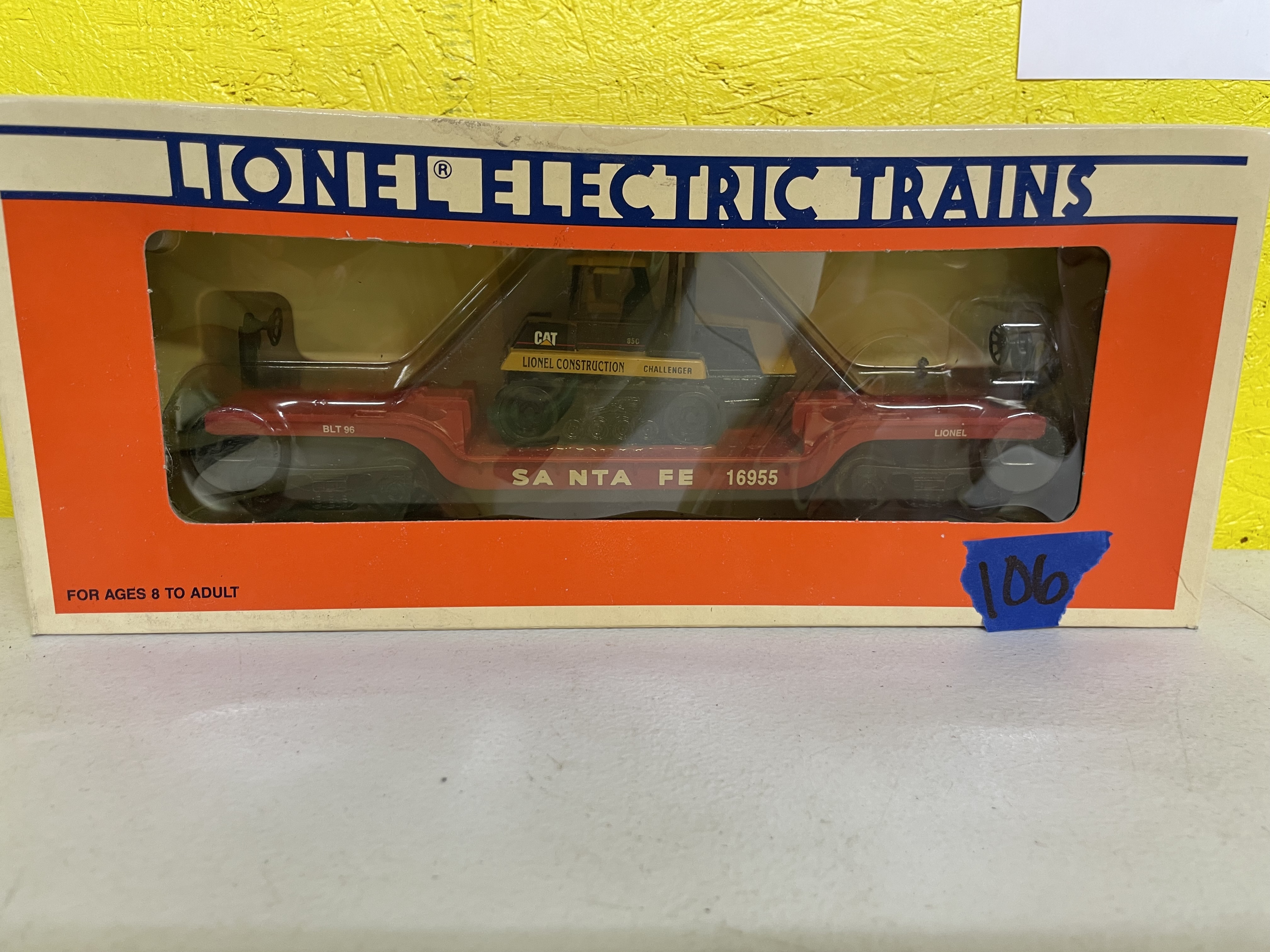 6-16955 AT & SF Flatcar w/ Ertl Challenger. . Metal Frame. O Gauge. New or lightly used. In original box. Shipping Available