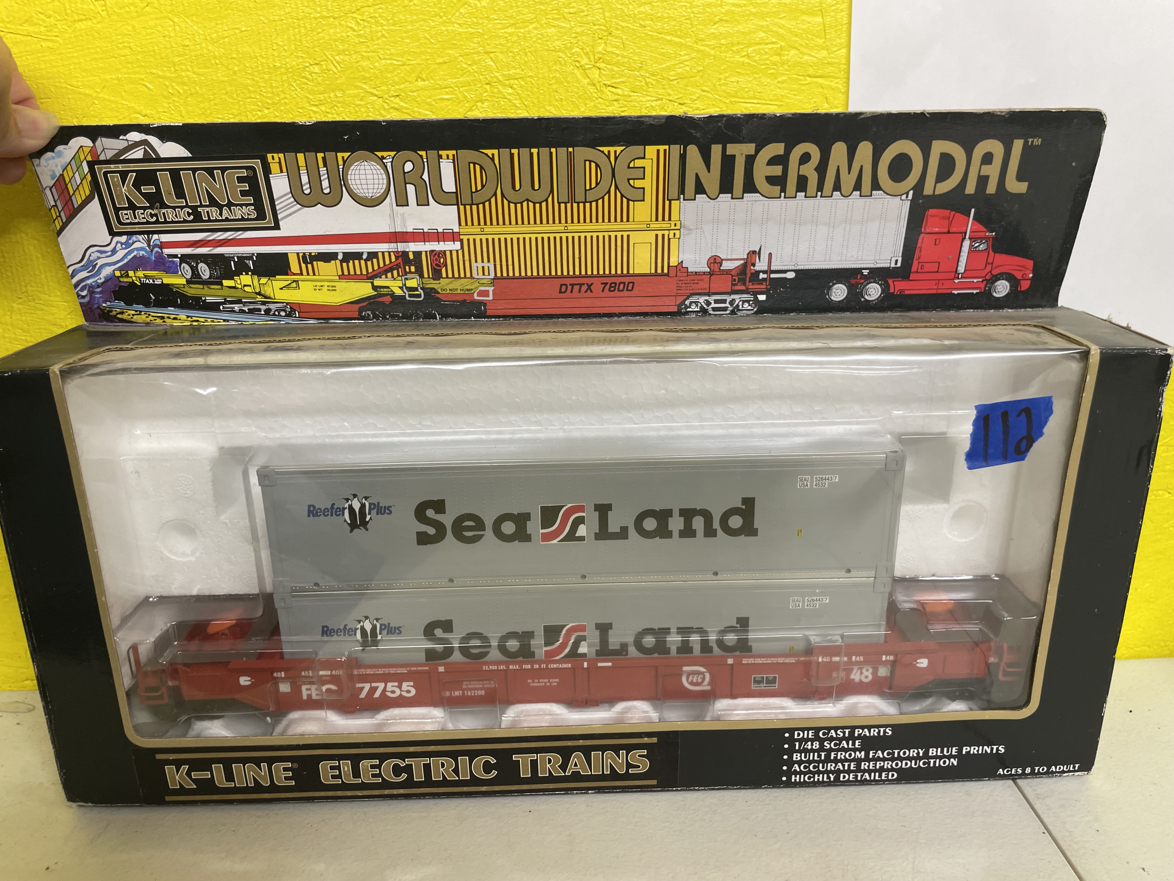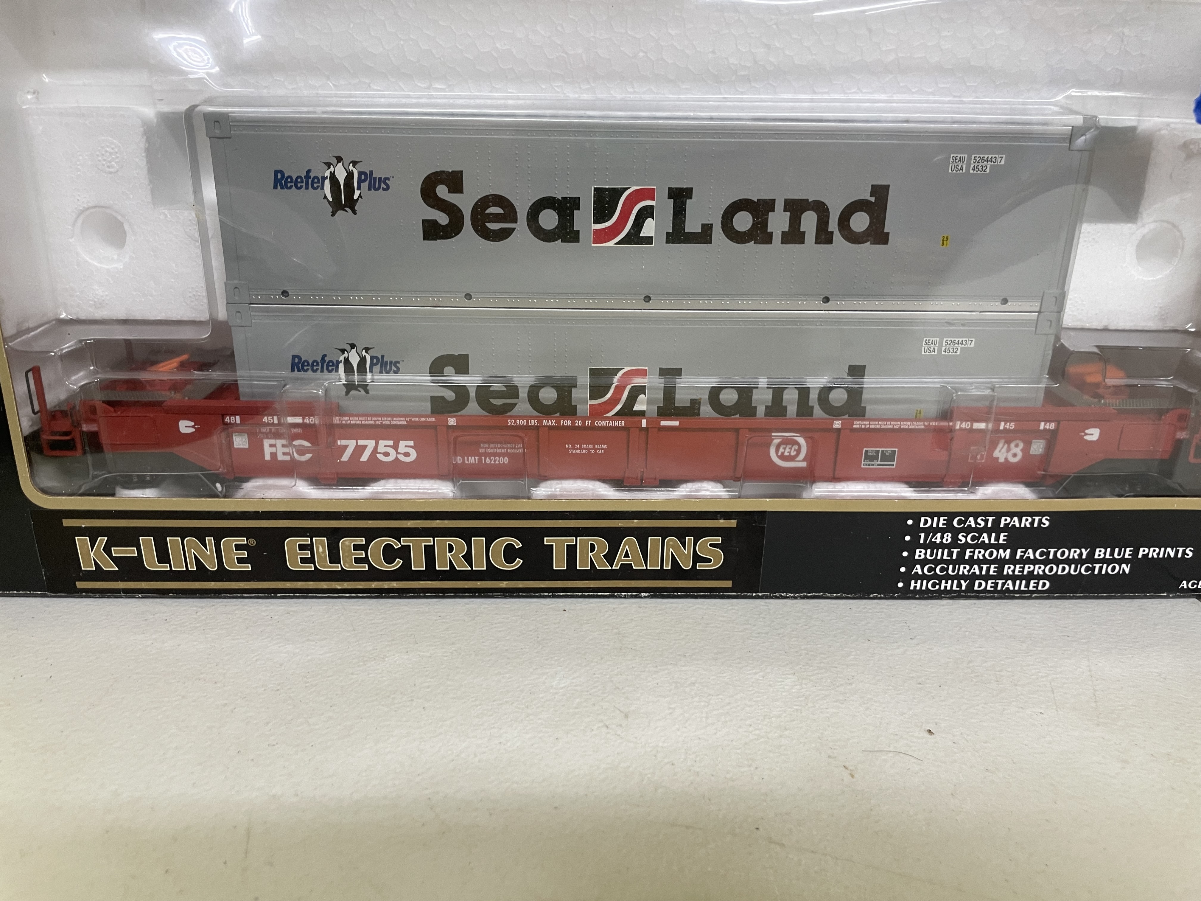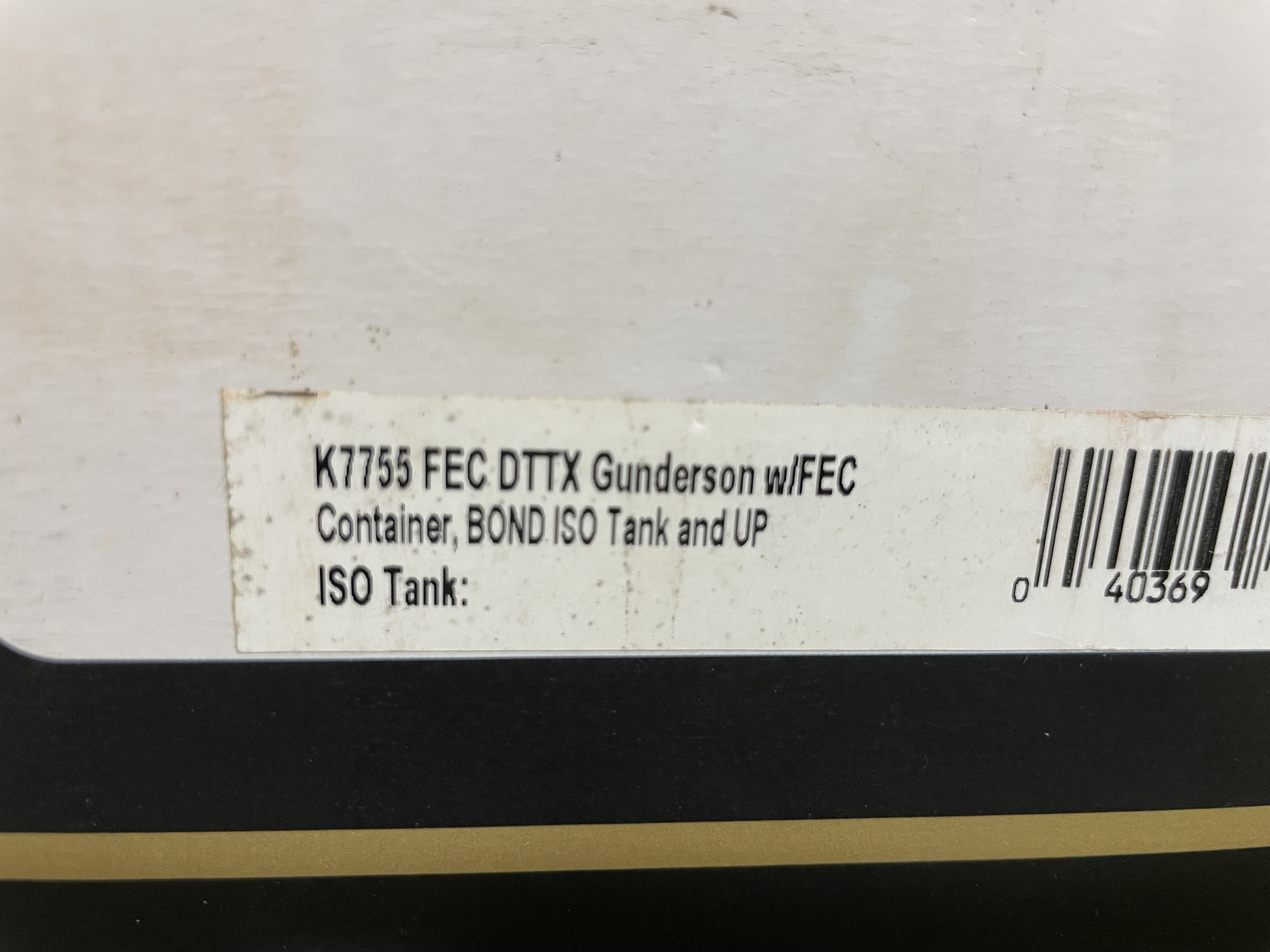K7755 FEC DTTX Gunderson w/FEC Container, Bond ISO Tank and UP. . Metal Frame. O Gauge. New or lightly used. In original box. Shipping Available