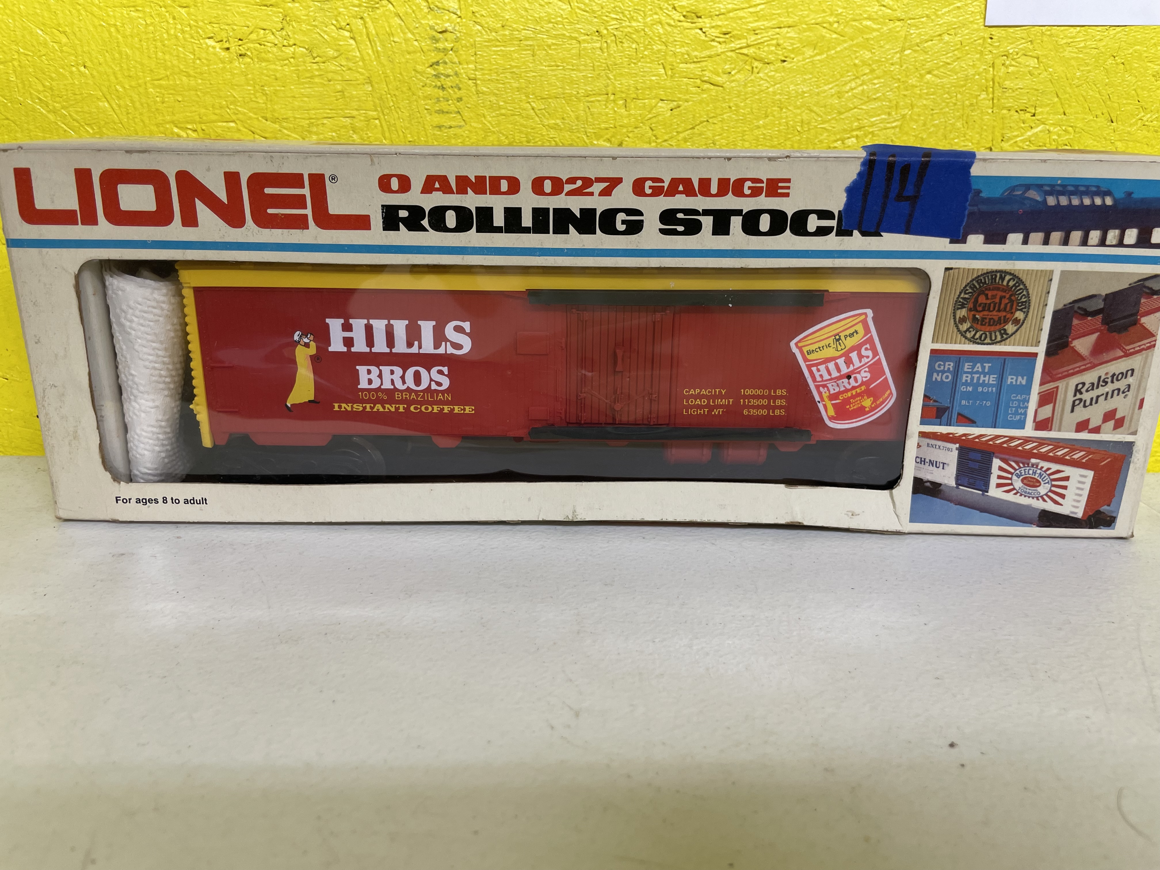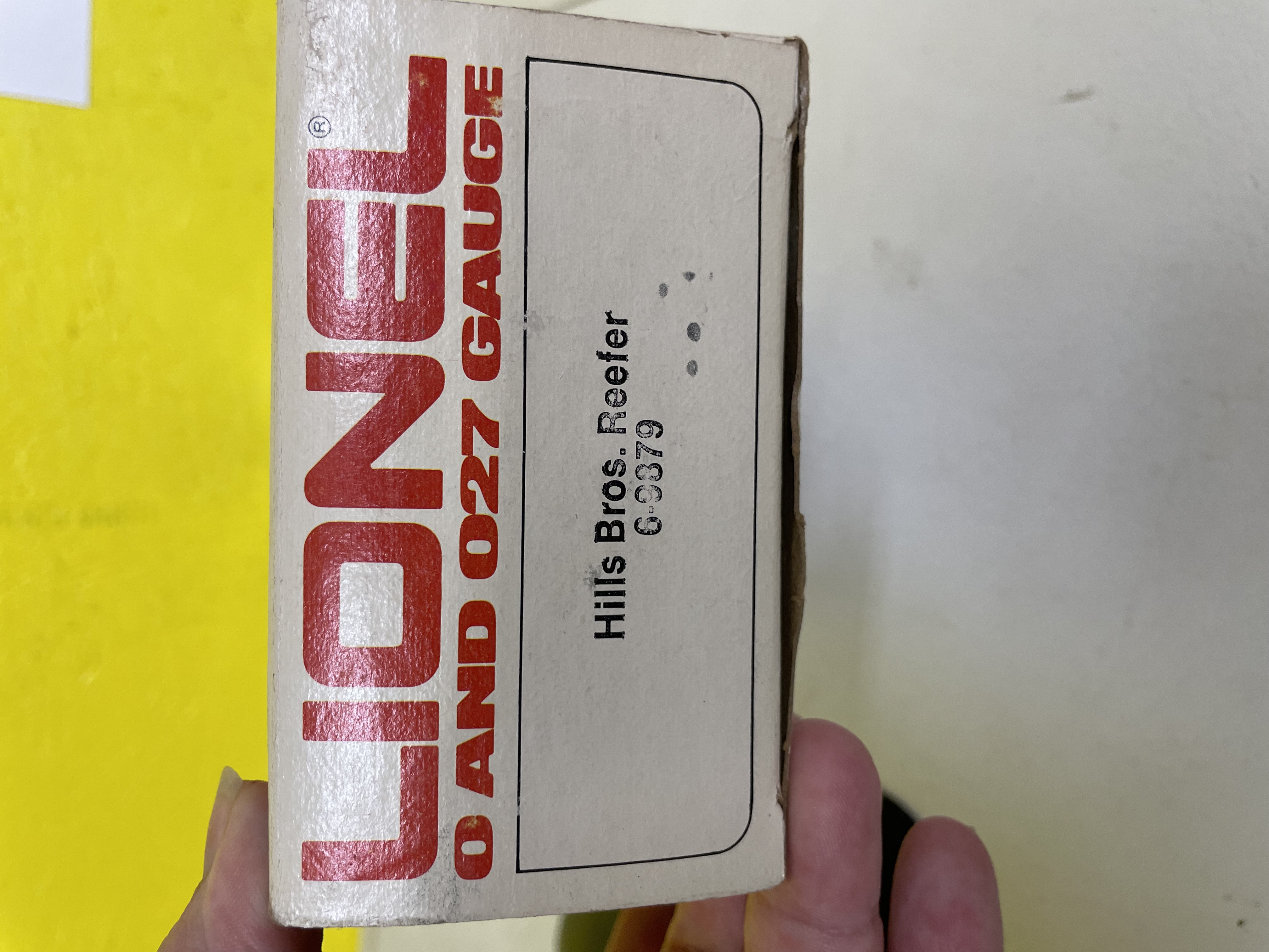 6-9879 Hills Bros Reefer. . Metal Frame. O Gauge. New or lightly used. In original box. Shipping Available