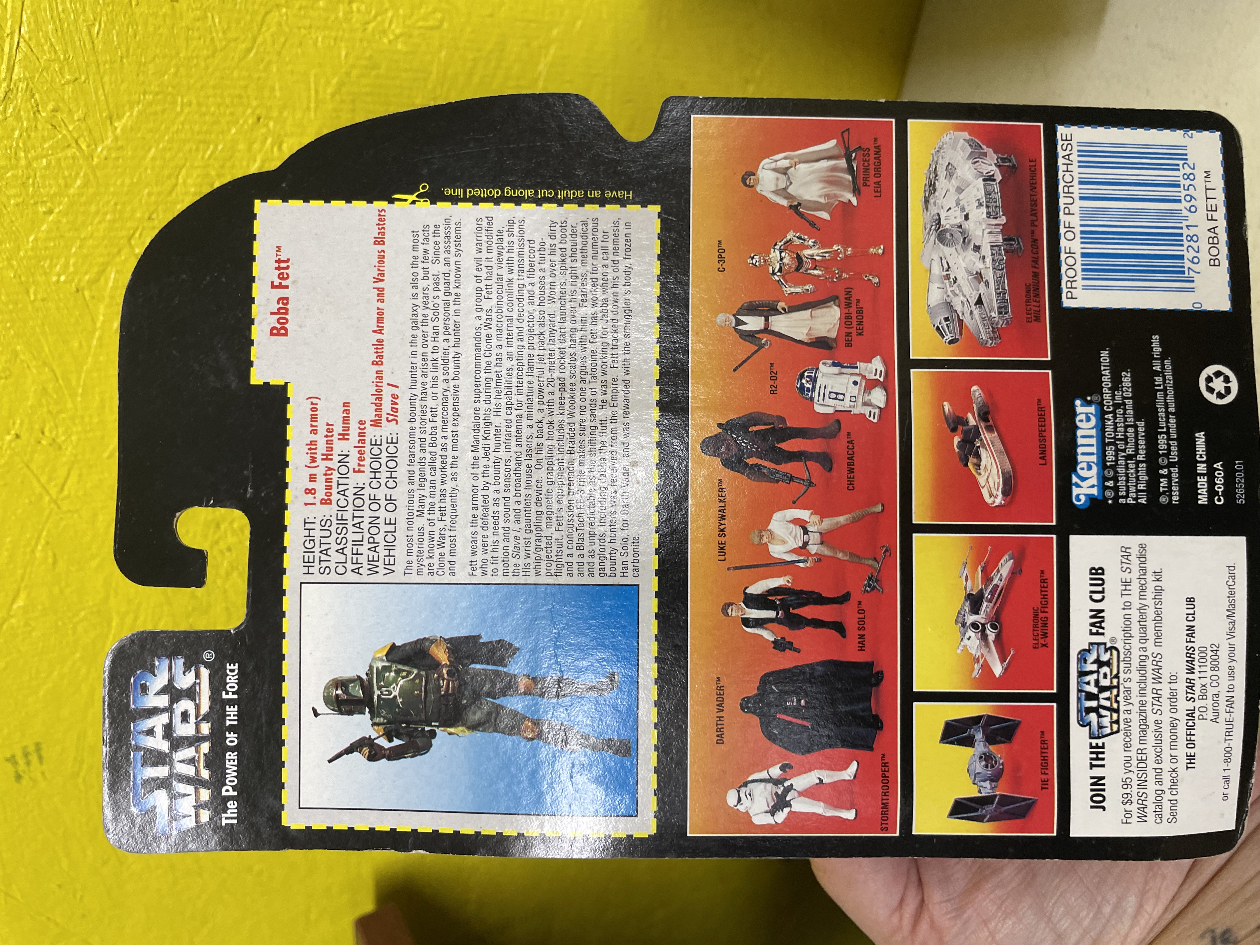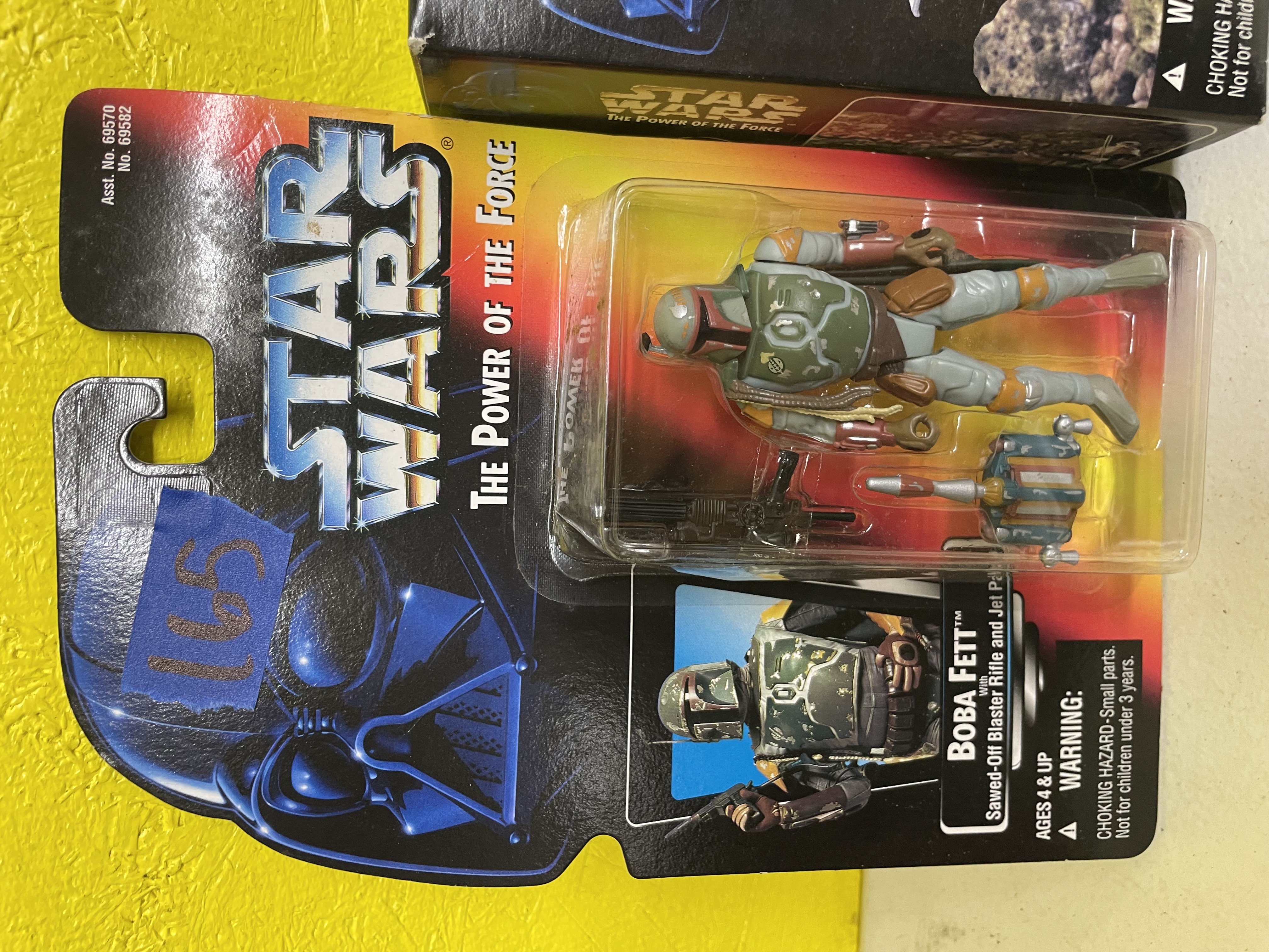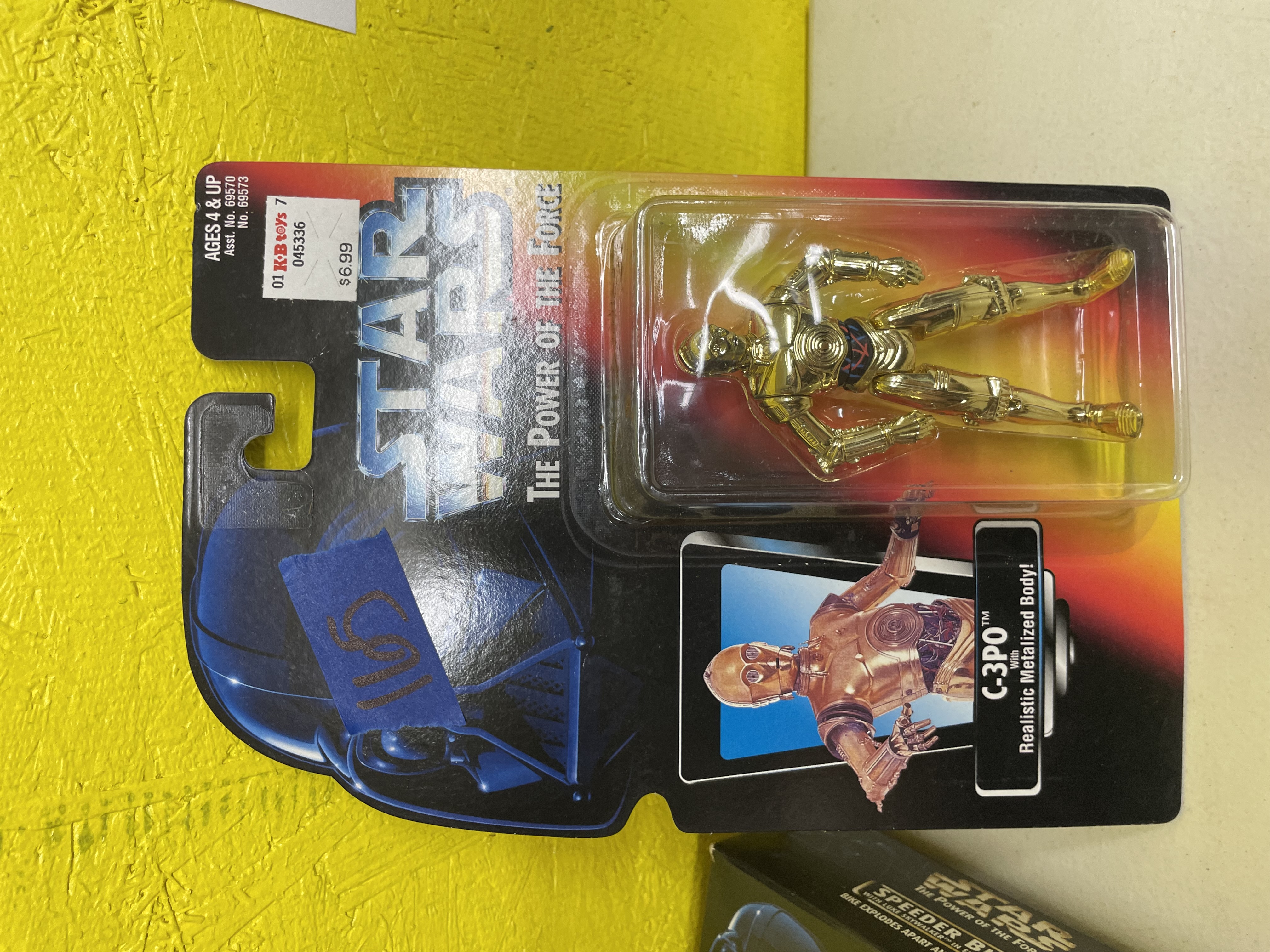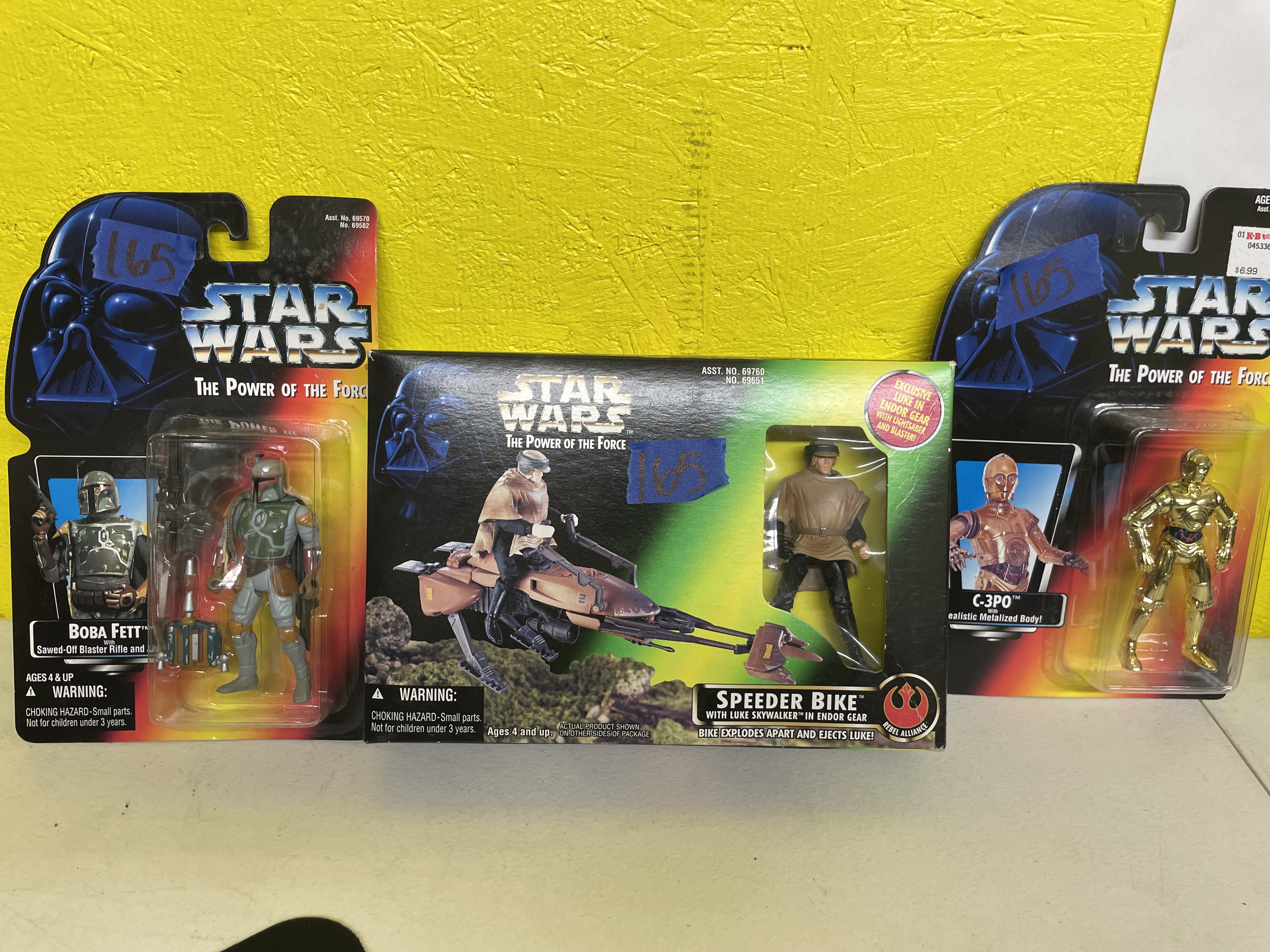 Boba Fett, Speeder Bike w/ Luke Skywalker, C-3PO. All in original packaging.
