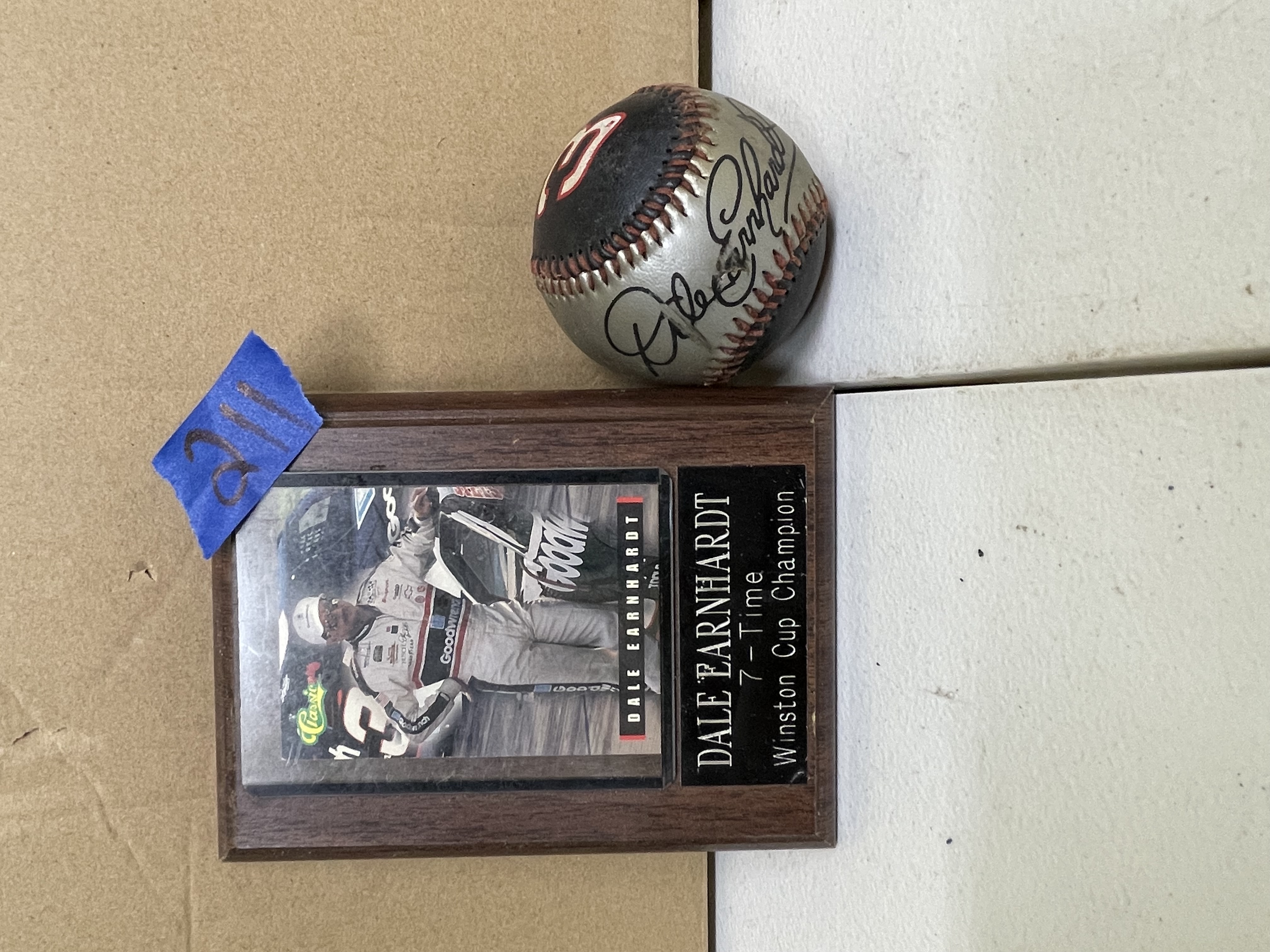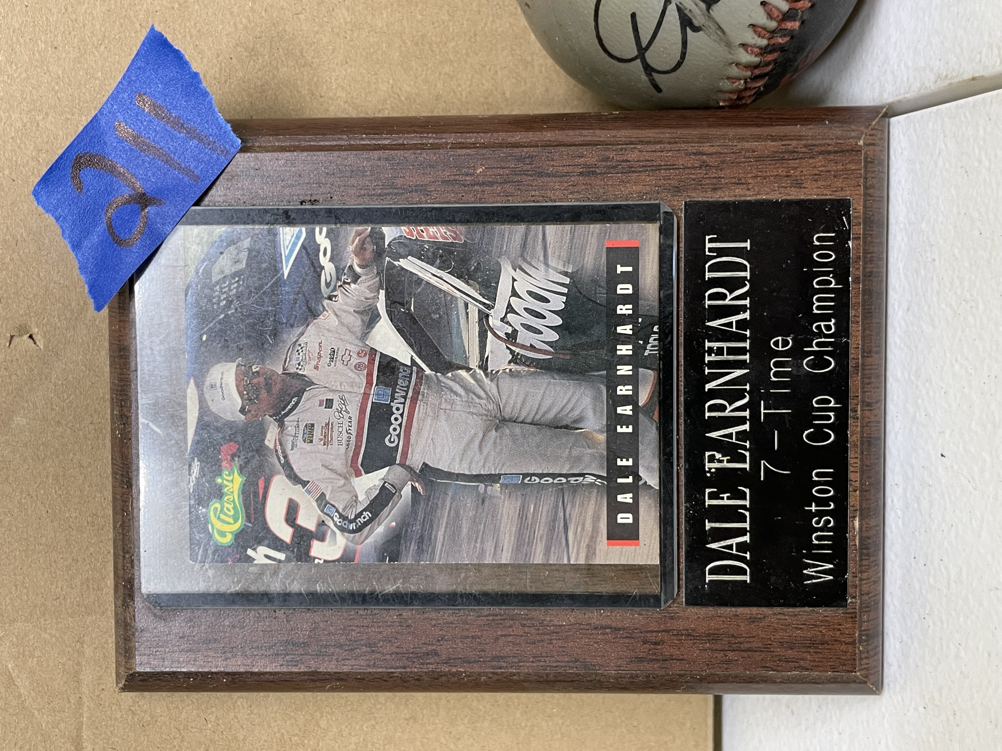 Dale Earnhardt 7 Time Winston Cup Champ Framed Card and “signed” baseball. Baseball does have a small, slight rip. Shipping available.