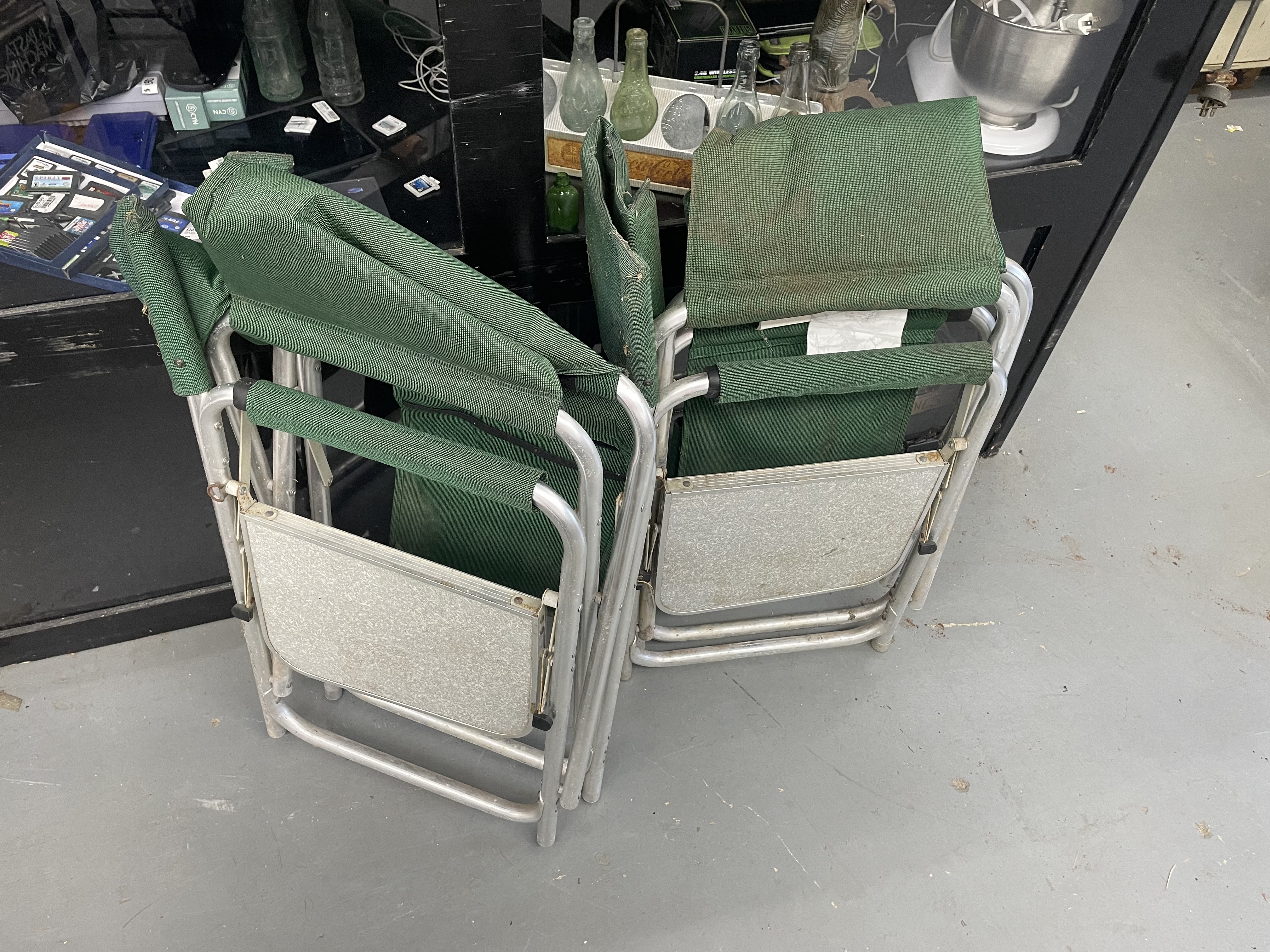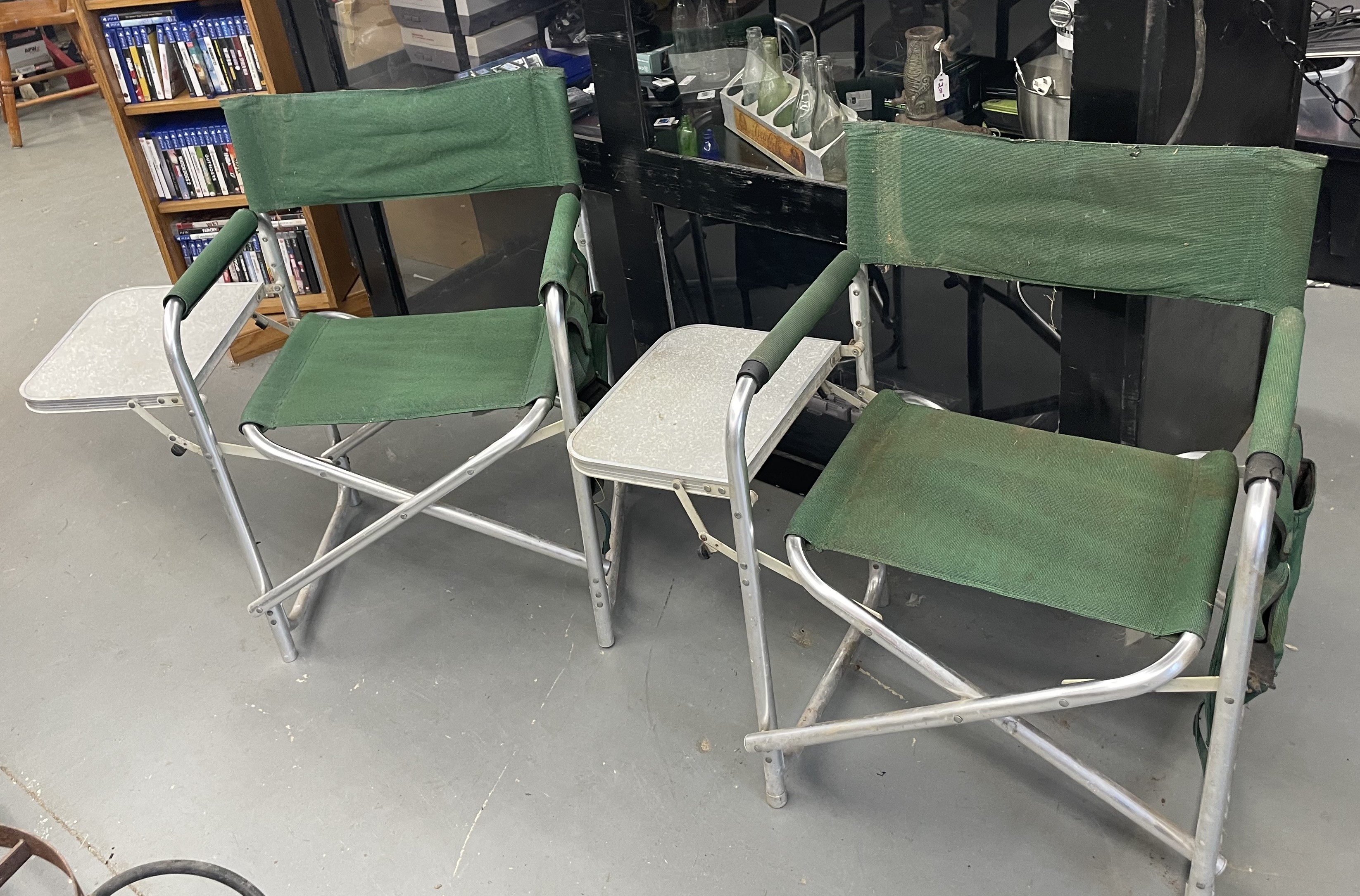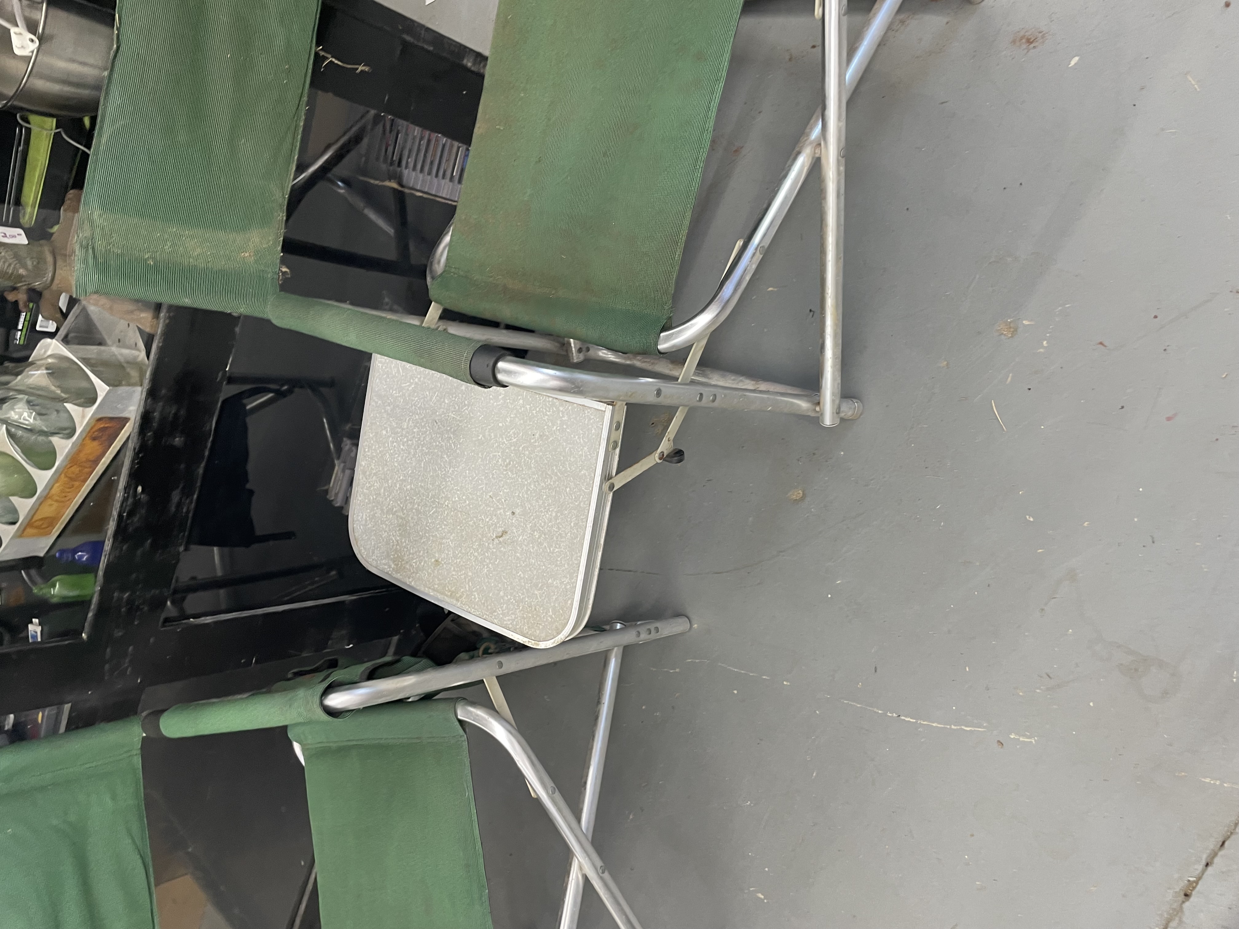 Two foldable camping chair with attached side table. No Shipping