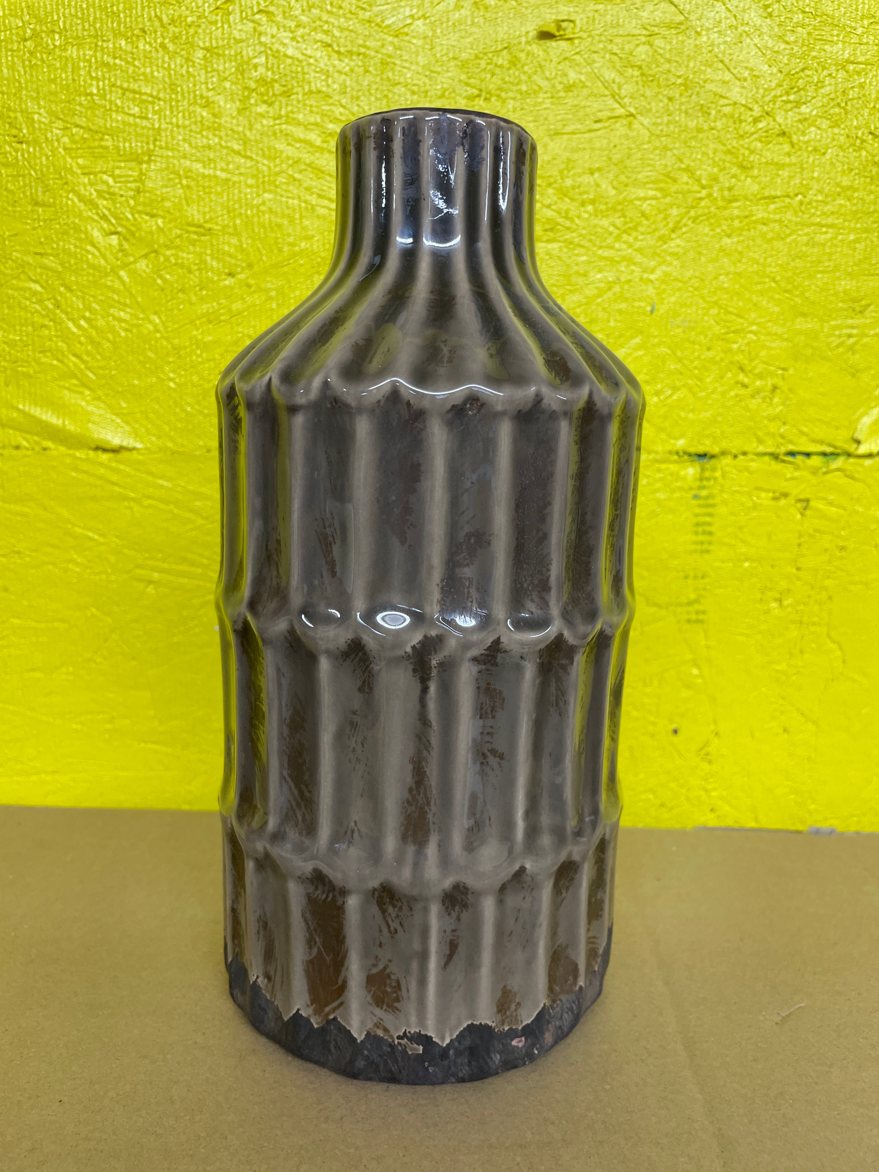 A Mid-Century Modern Style Ceramic Vase with Fluted Texture
