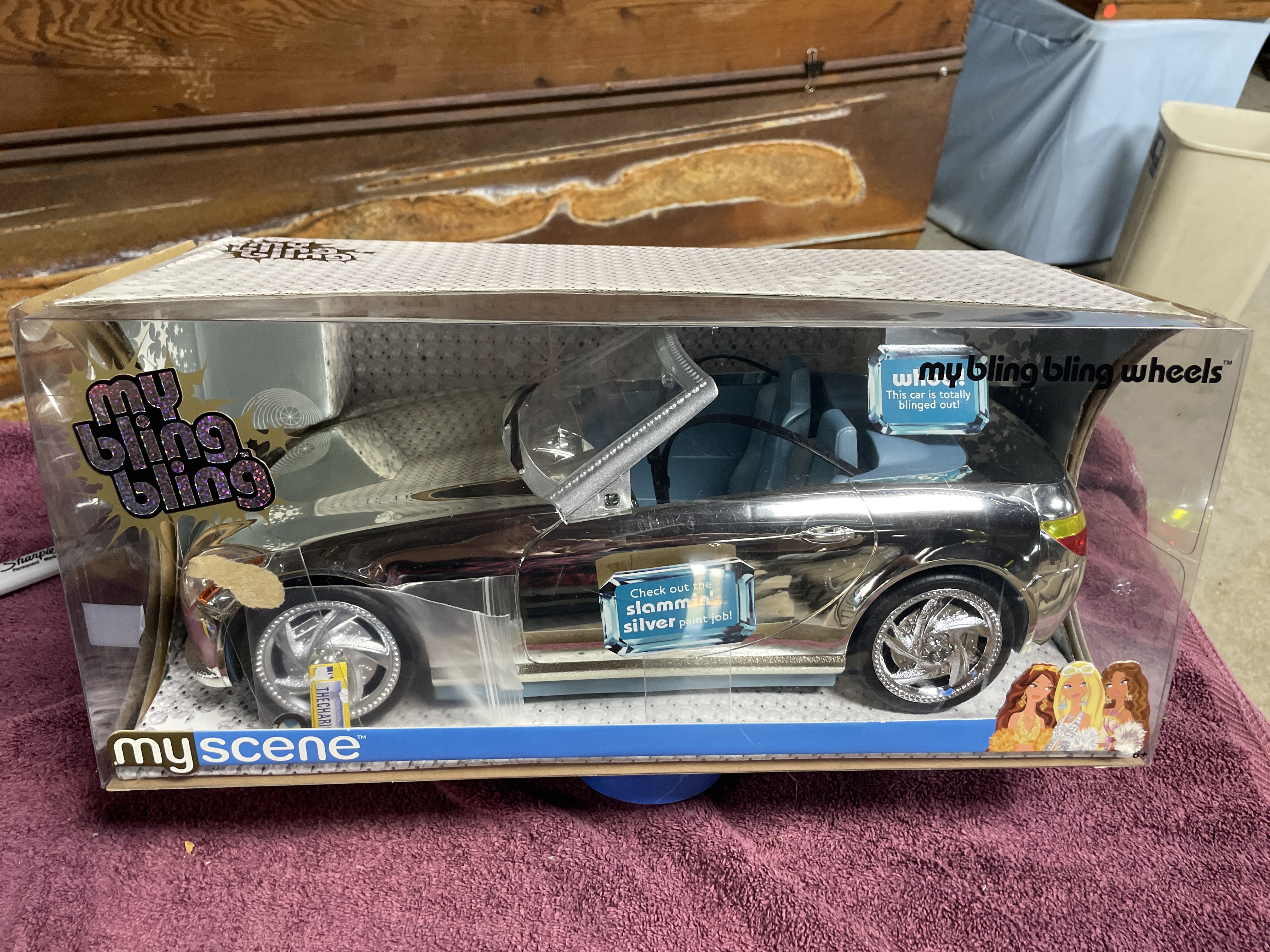 RARE 2005 Barbie Mattel My Bling Bling My Scene Mirrored Chrome Silver Car Box