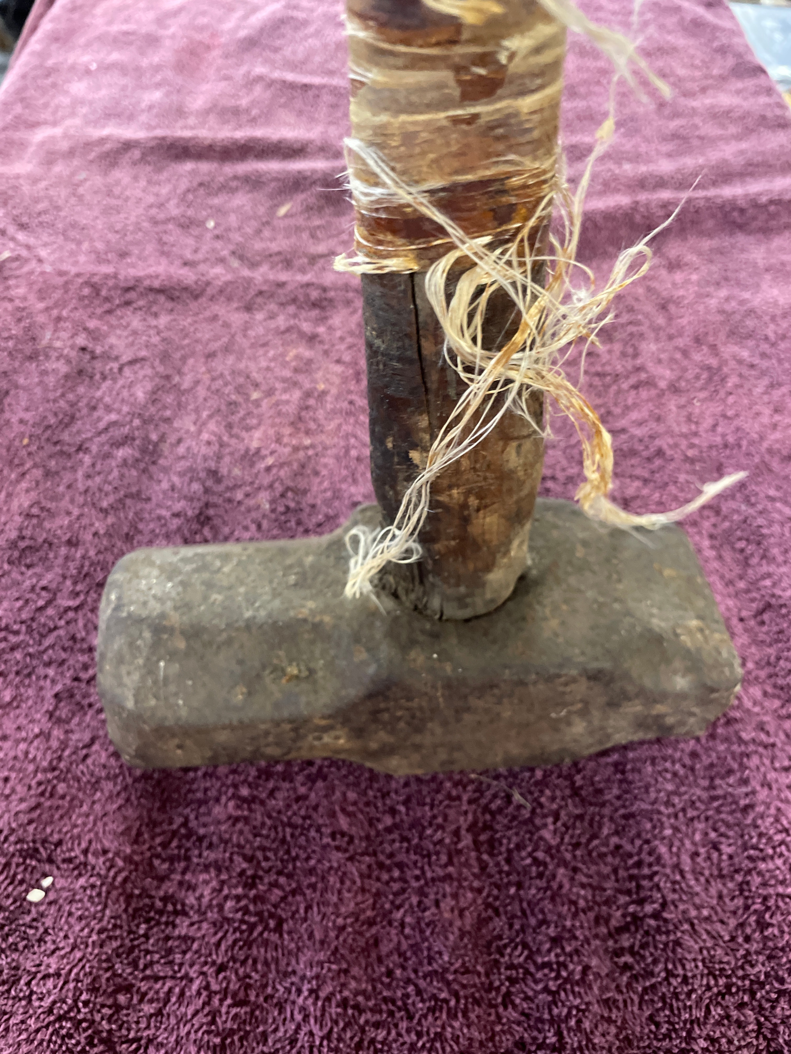 Rustic Metal Head Striking Tool with Fiber-Bound Wooden Handle