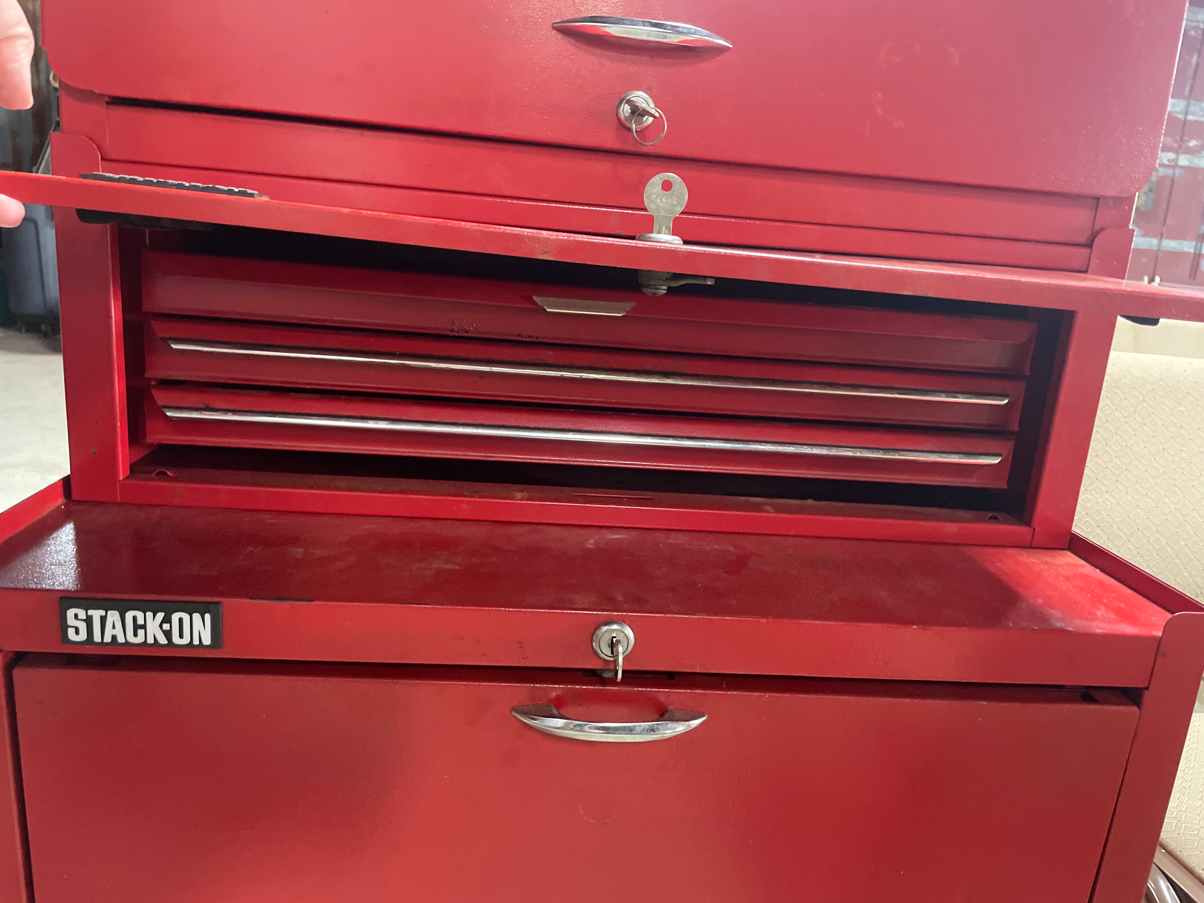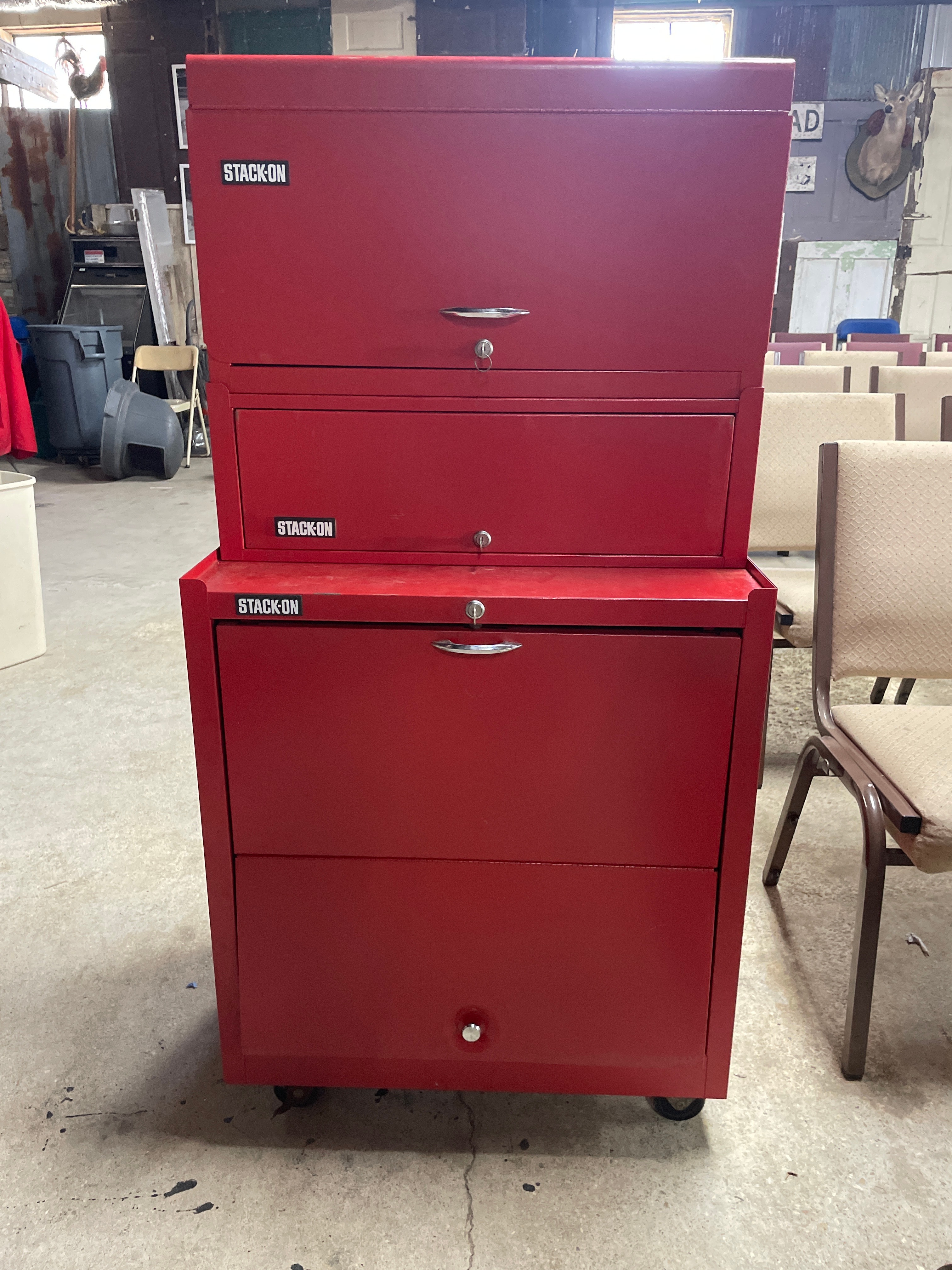 A Three-Piece STACK-ON Red Tool Chest System