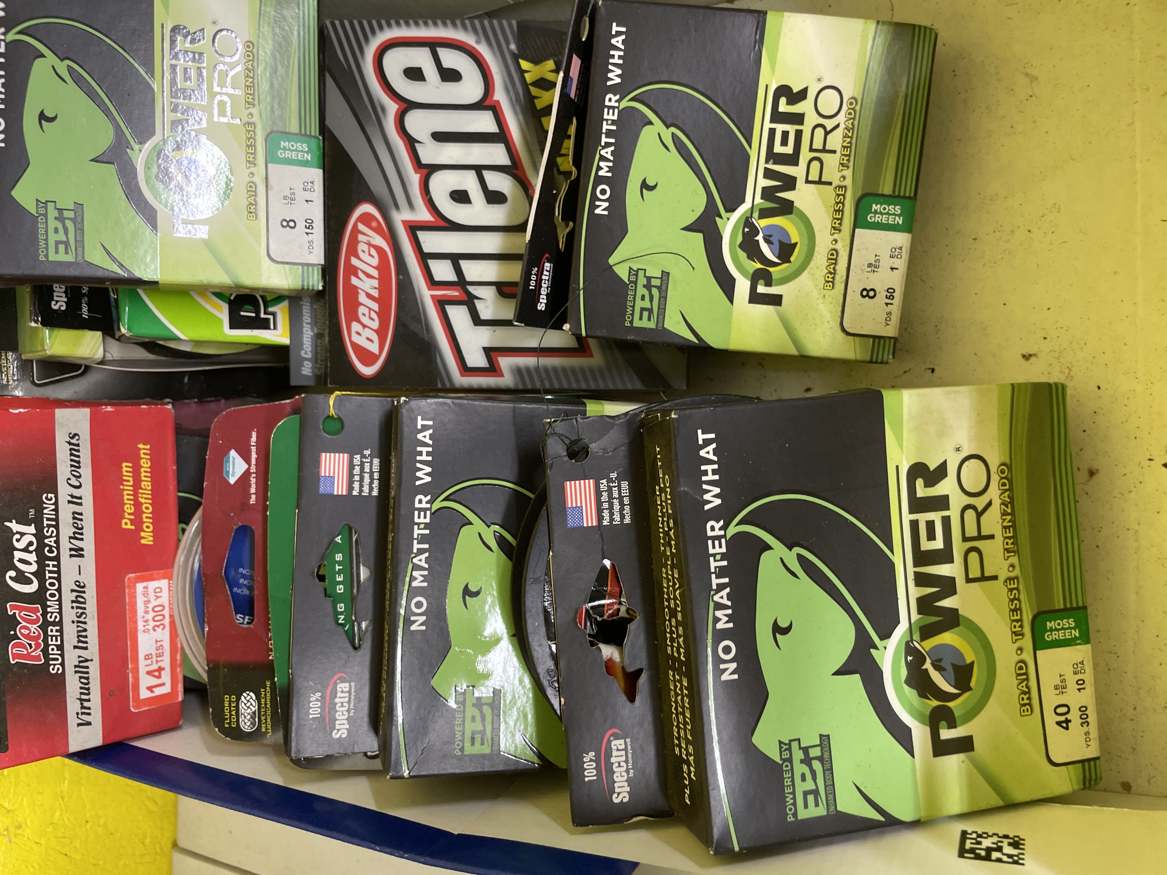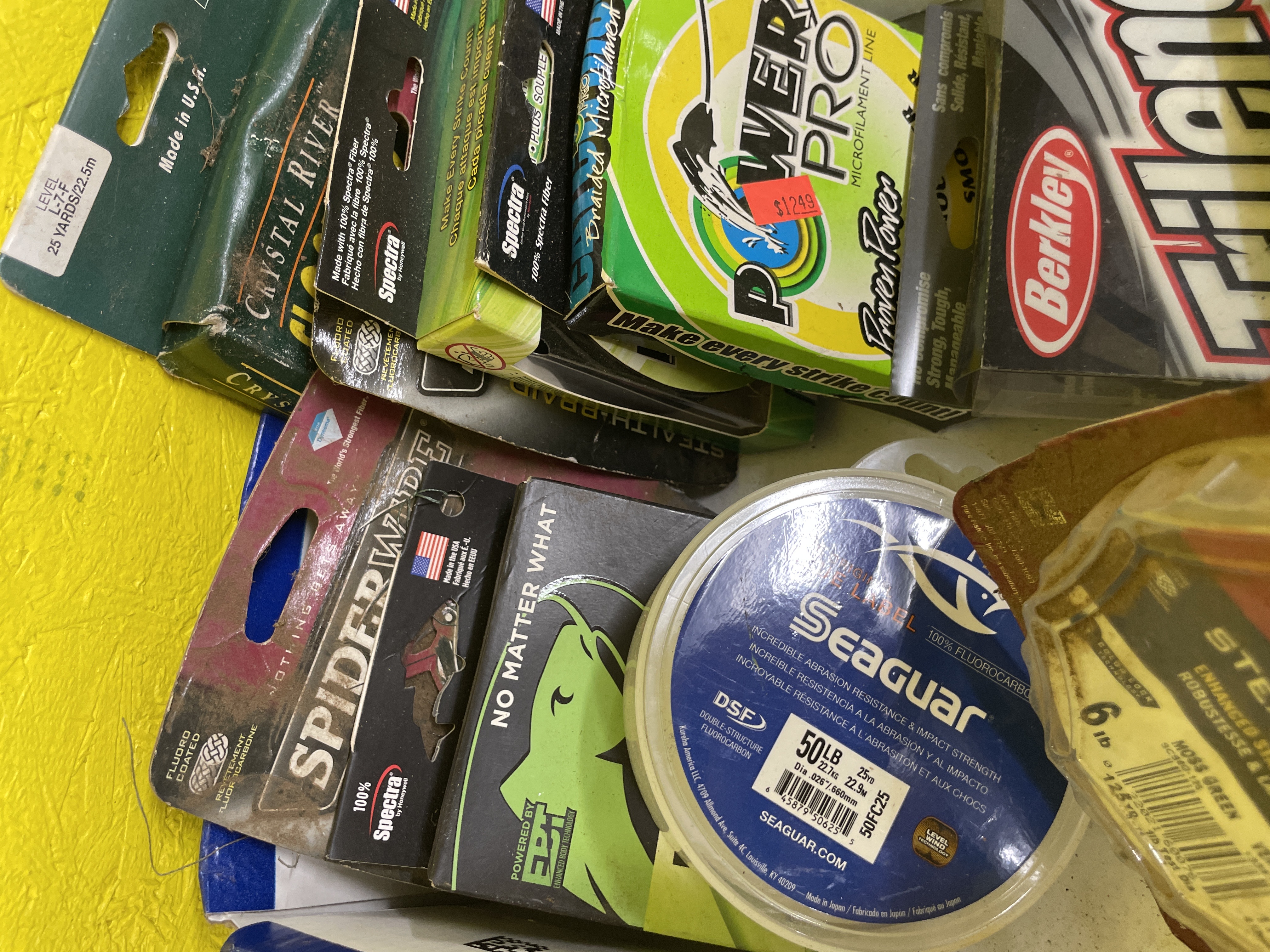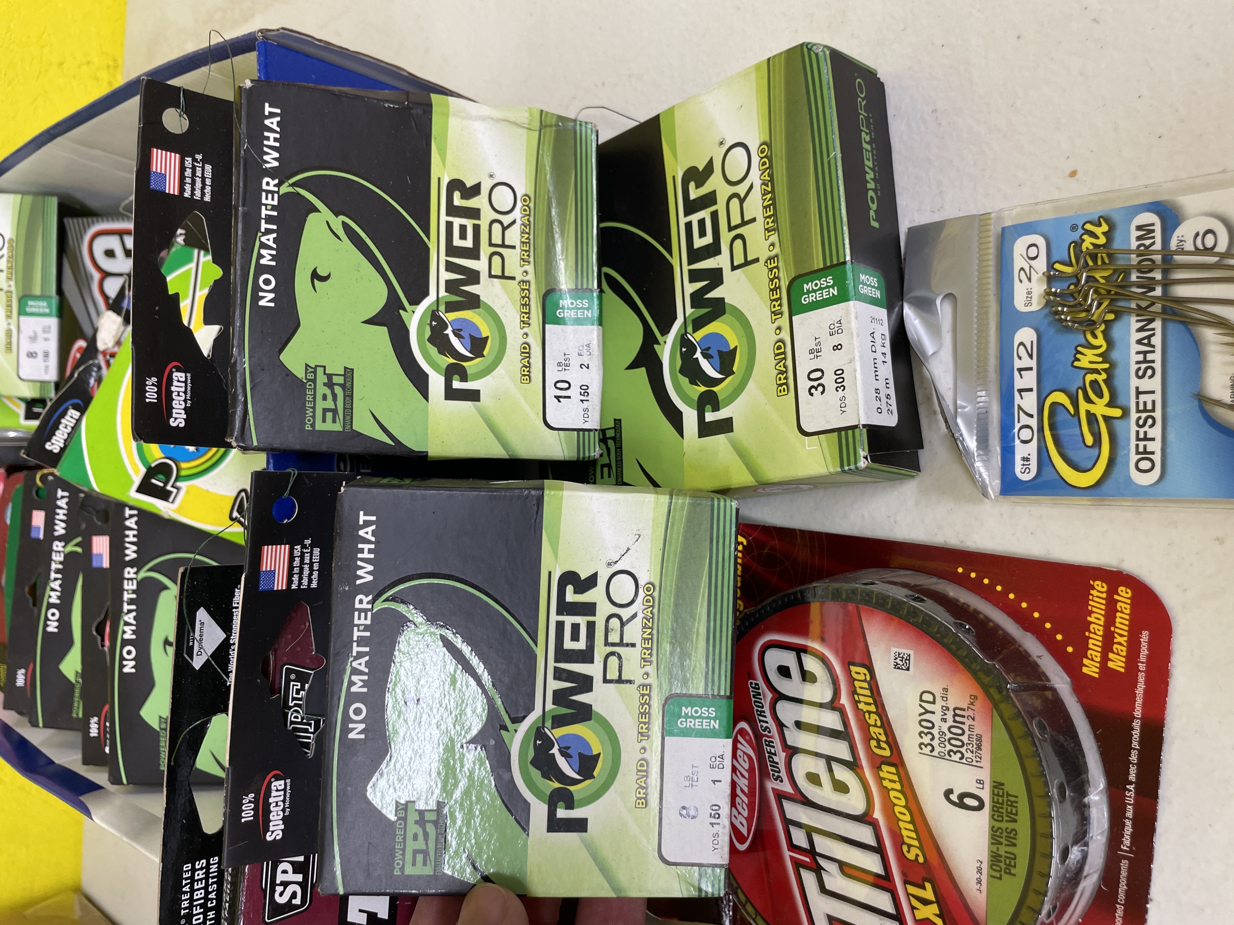A Collection of New Fishing Line and Hooks by Power Pro, Berkley, Spiderwire, and Others