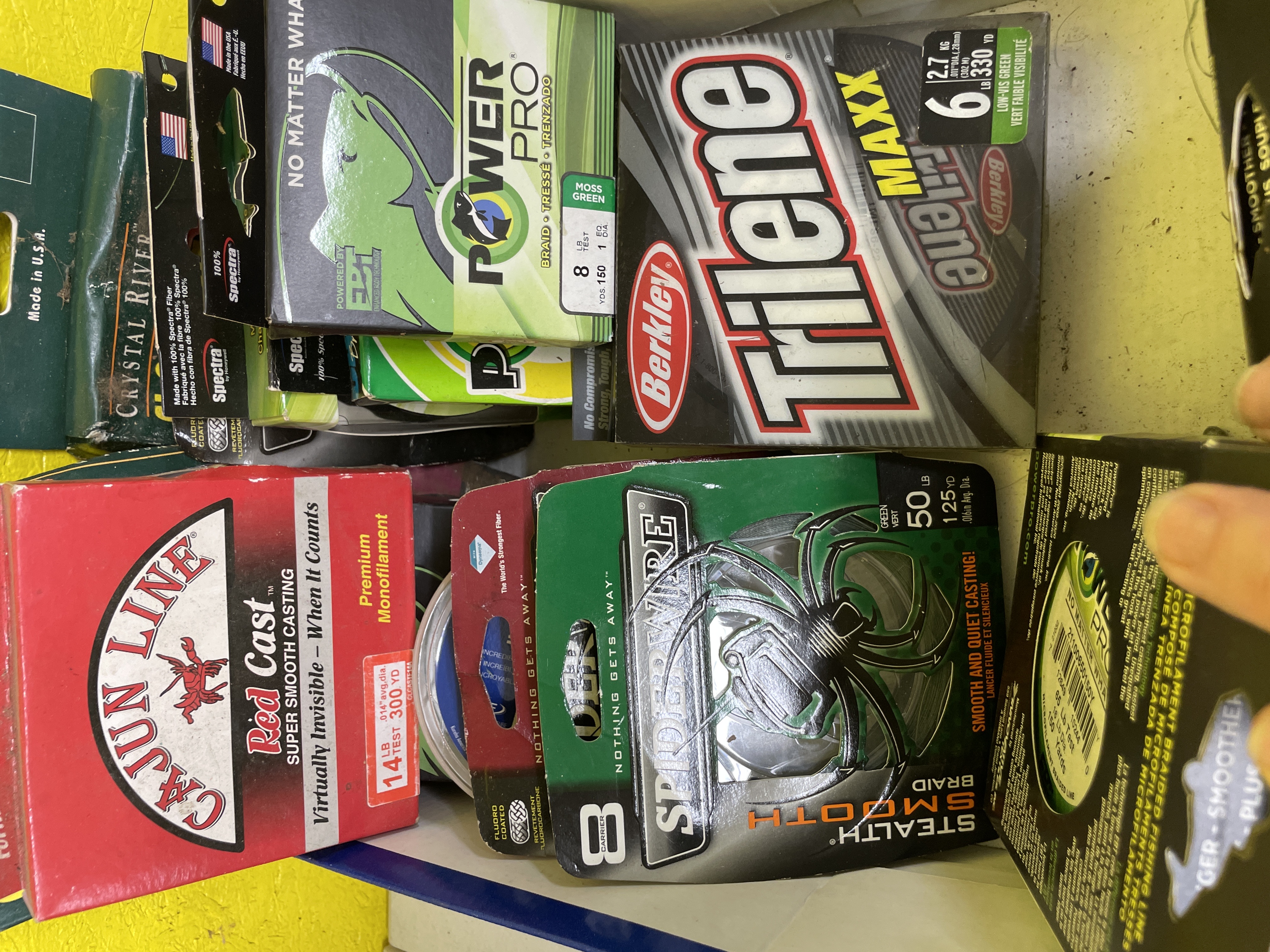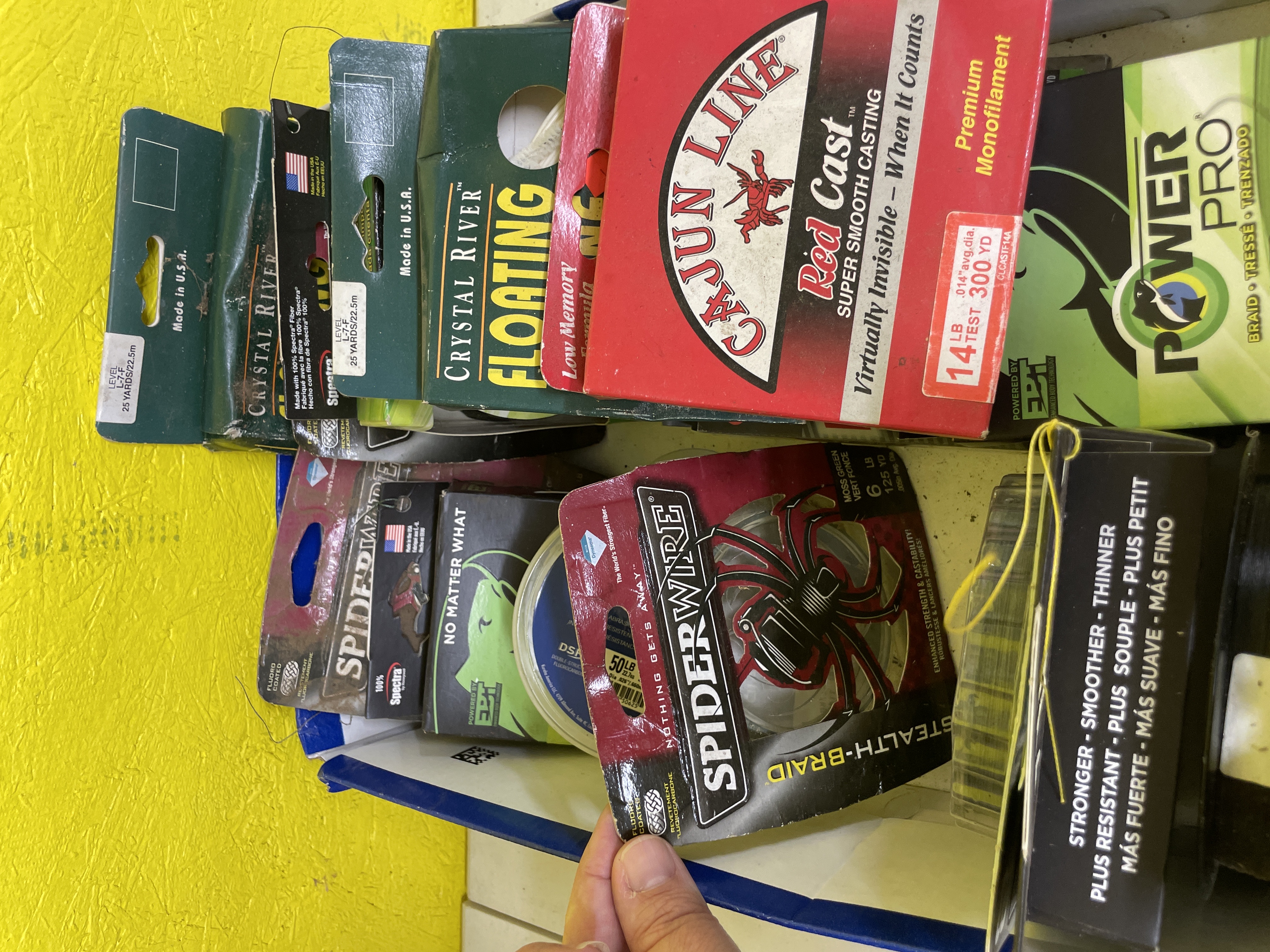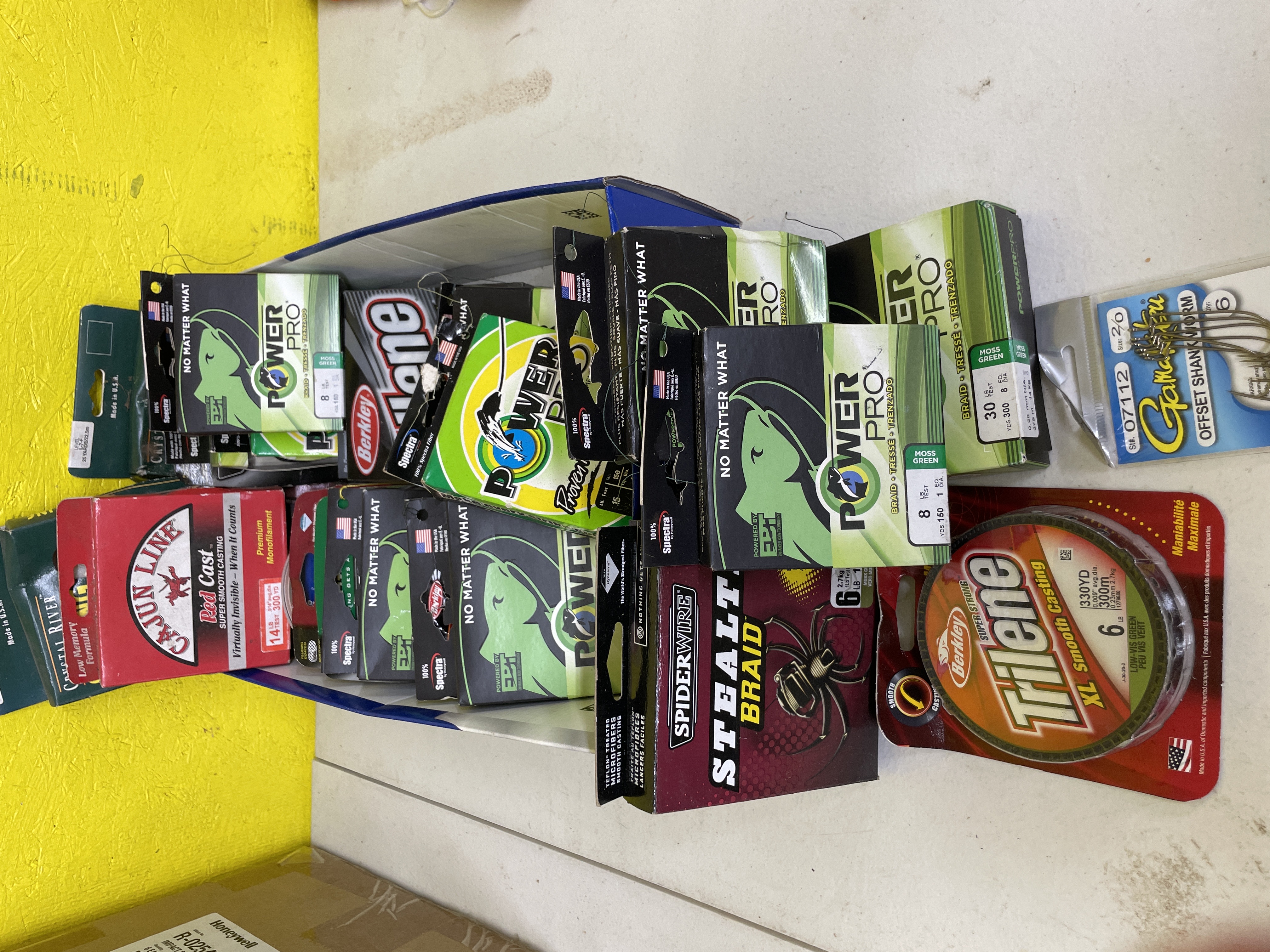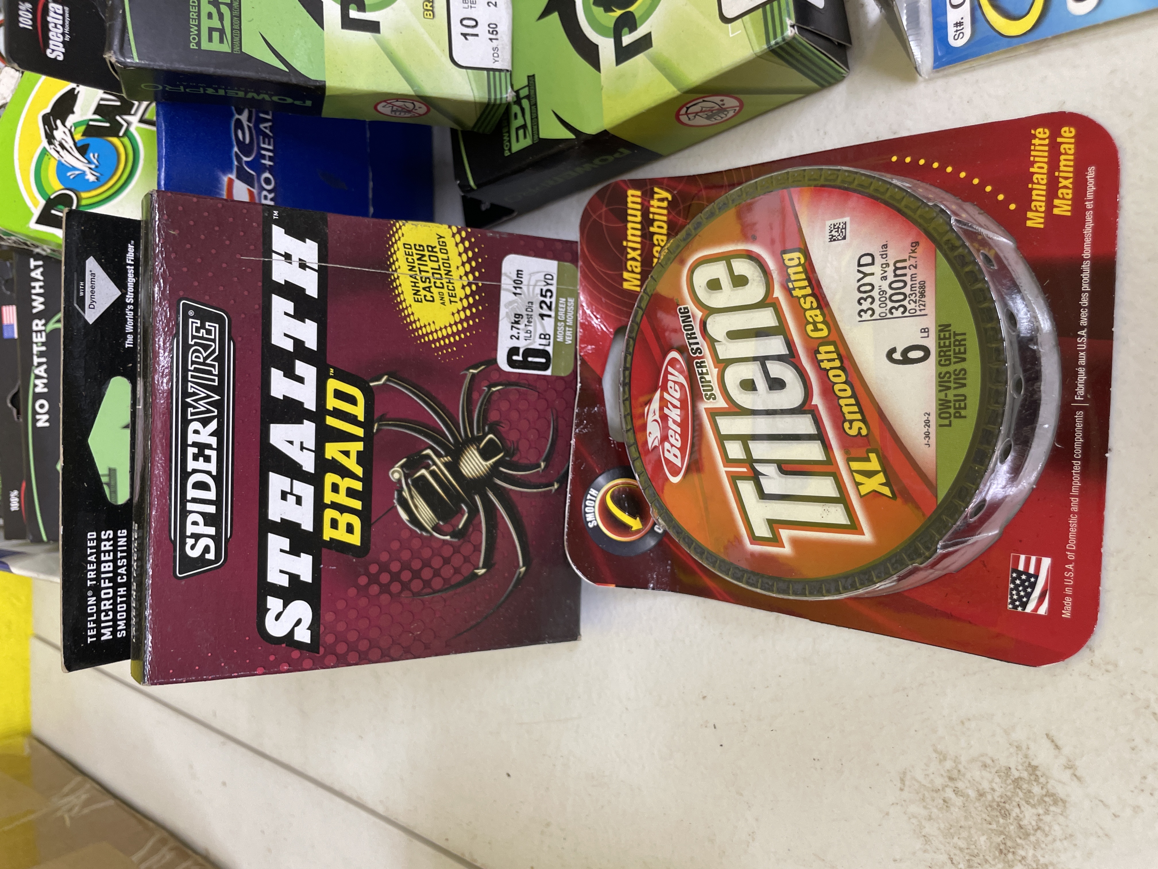 A Collection of New Fishing Line and Hooks by Power Pro, Berkley, Spiderwire, and Others