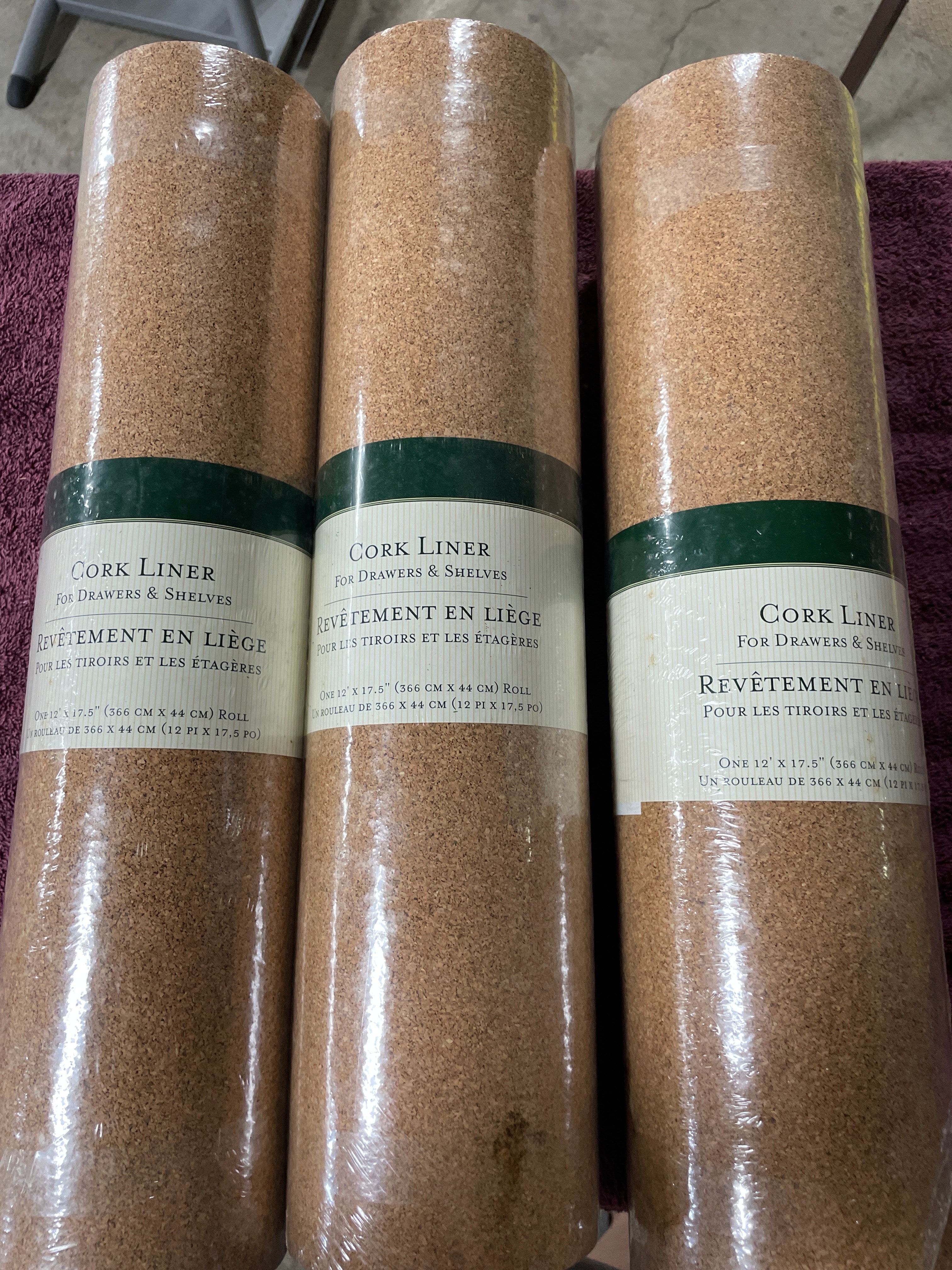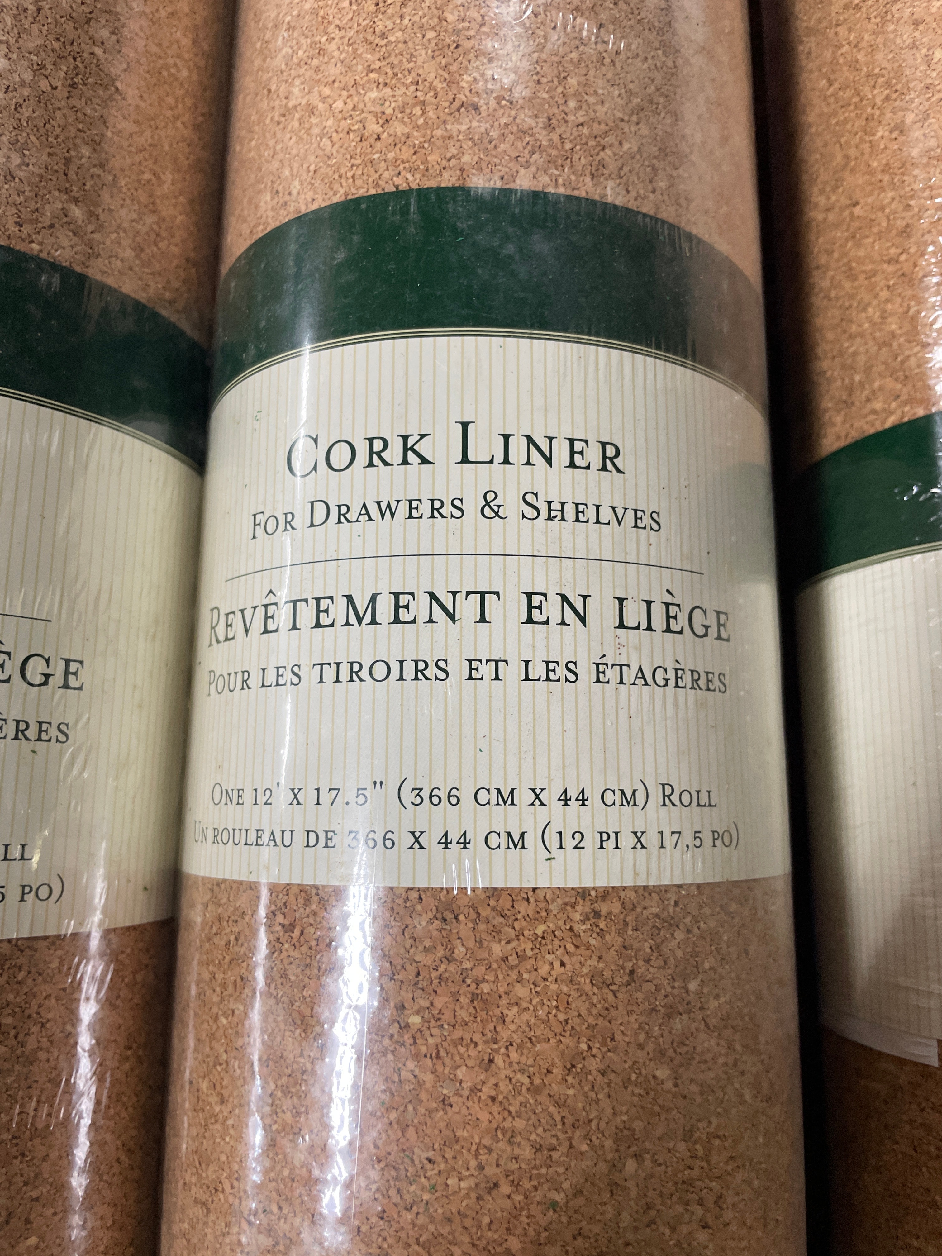 Three Williams Sonoma Cork Shelf and Drawer Liner Rolls, New and Sealed