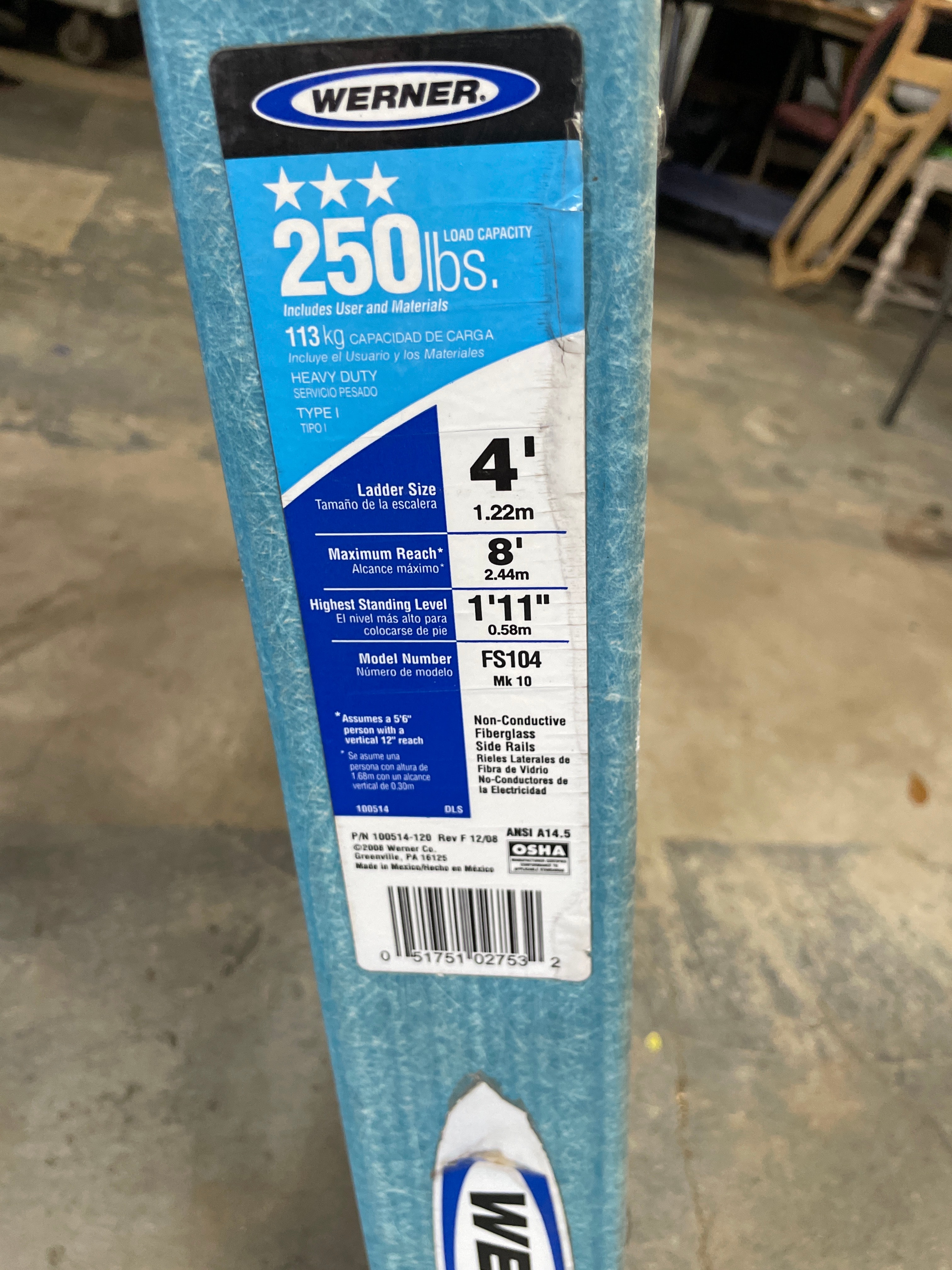 Ladder size: 4′ (1.22m)