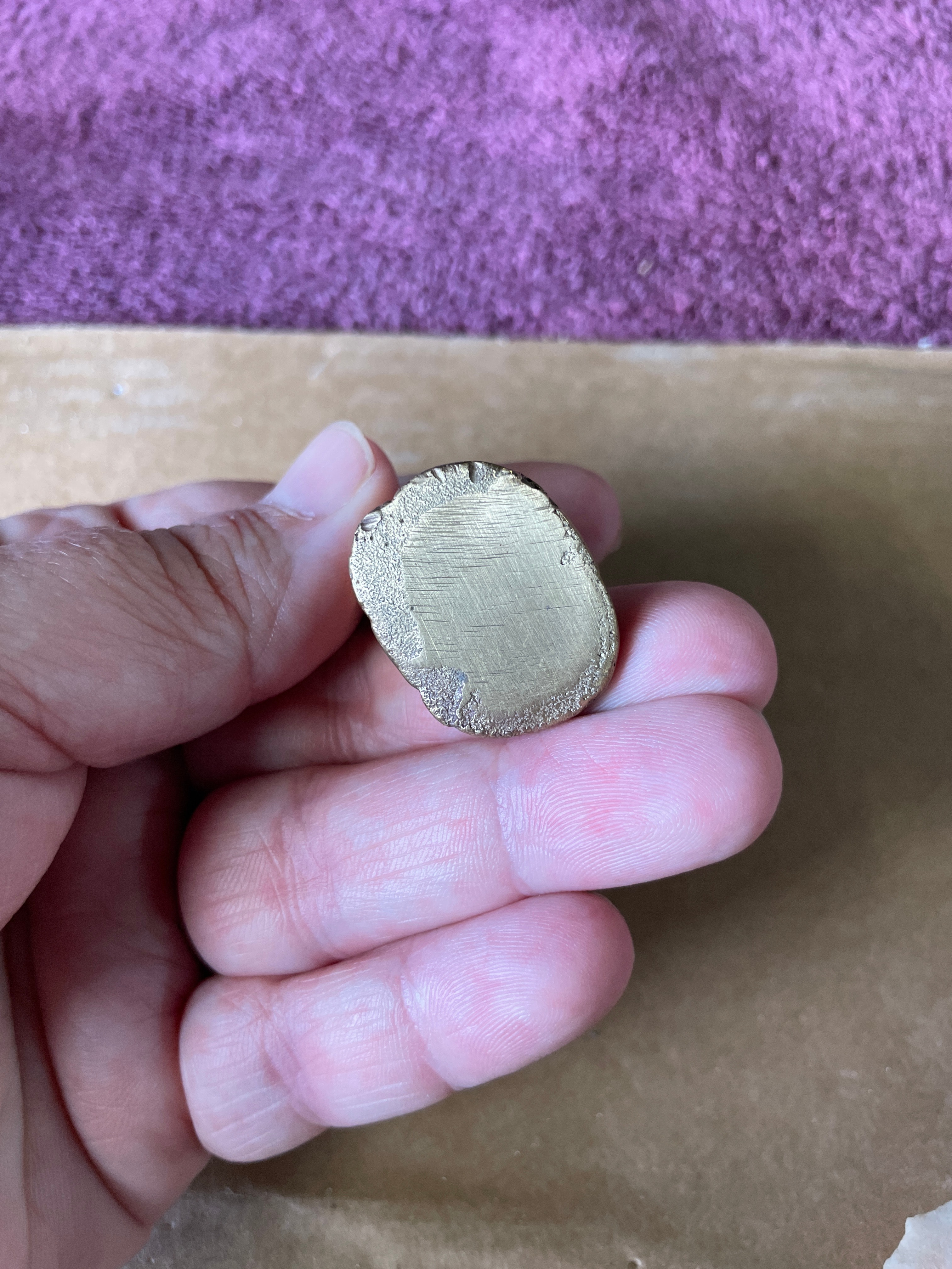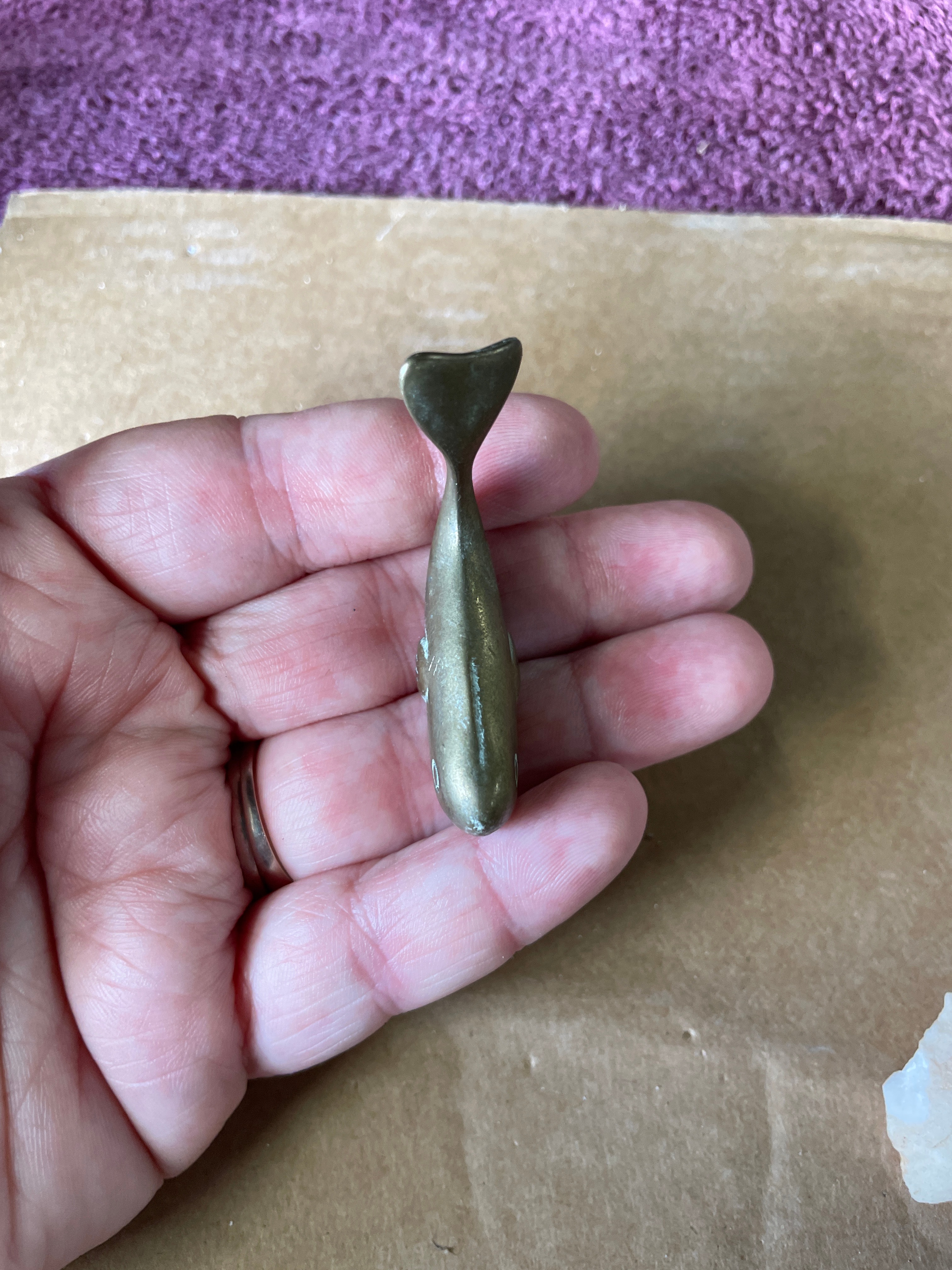 A Group of Four Brass Miniature Animal Figurines and a Natural Mineral Fragment