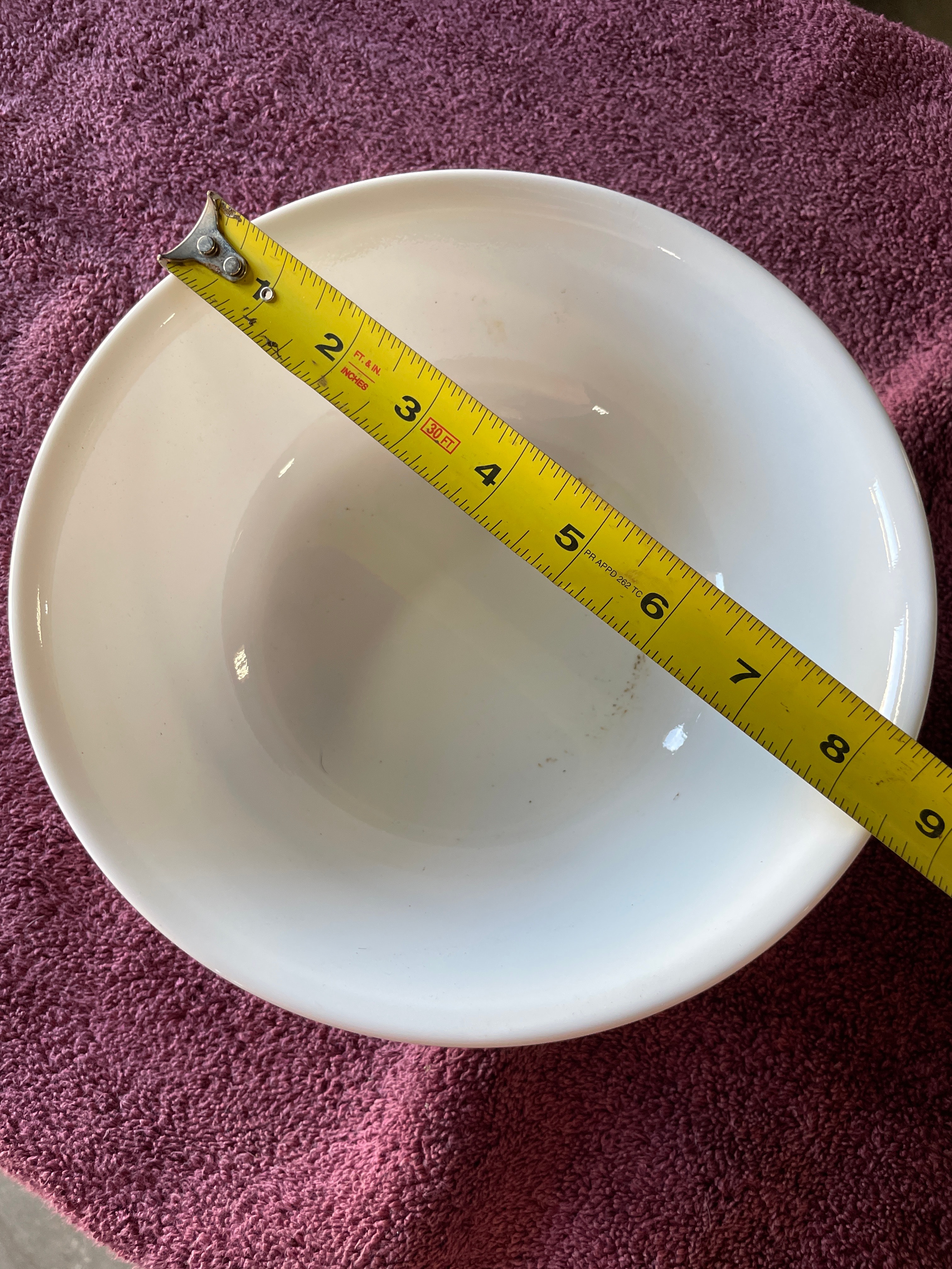 Smaller bowls: 4.75 inches diameter, 2.25 inches high