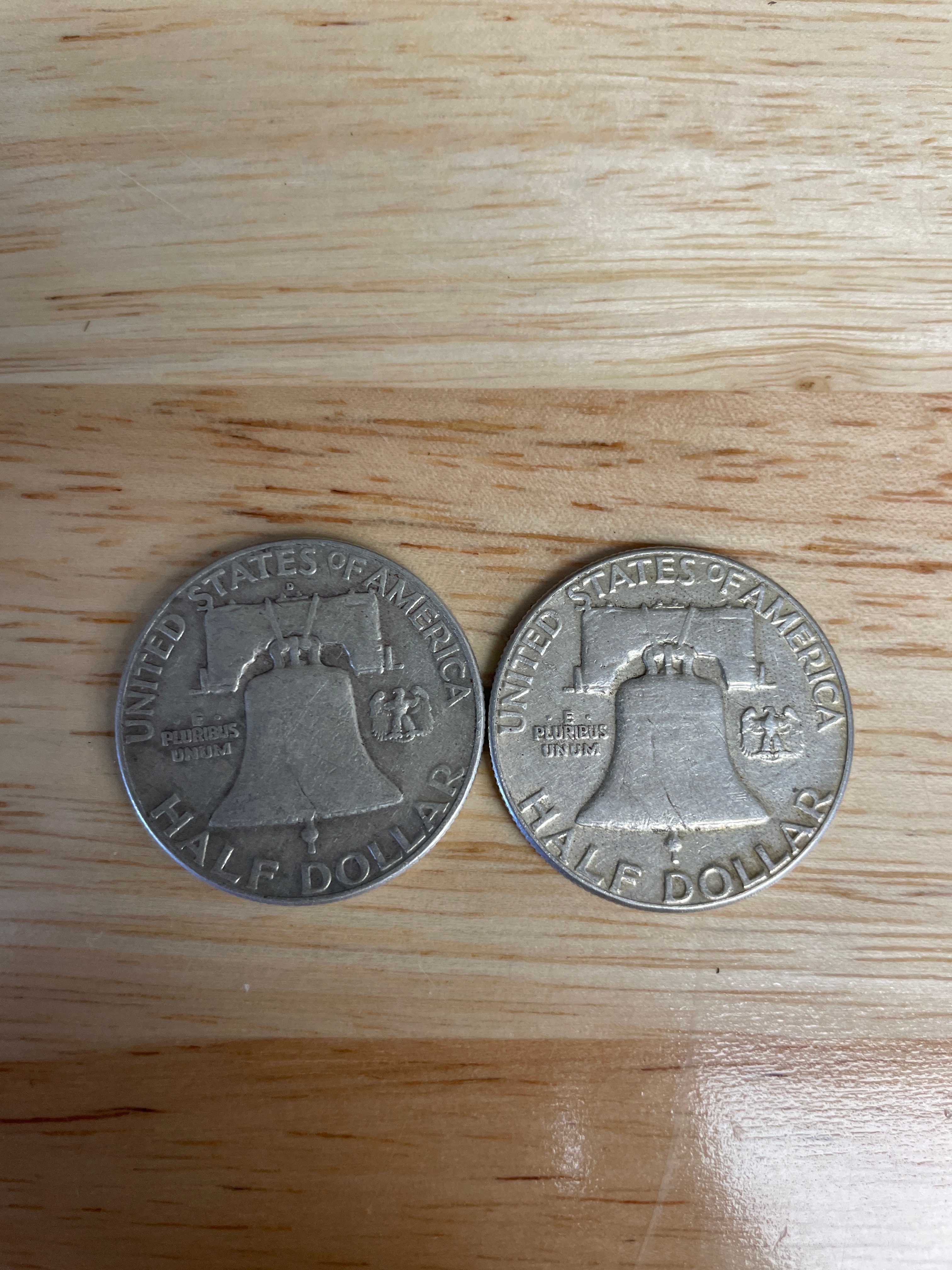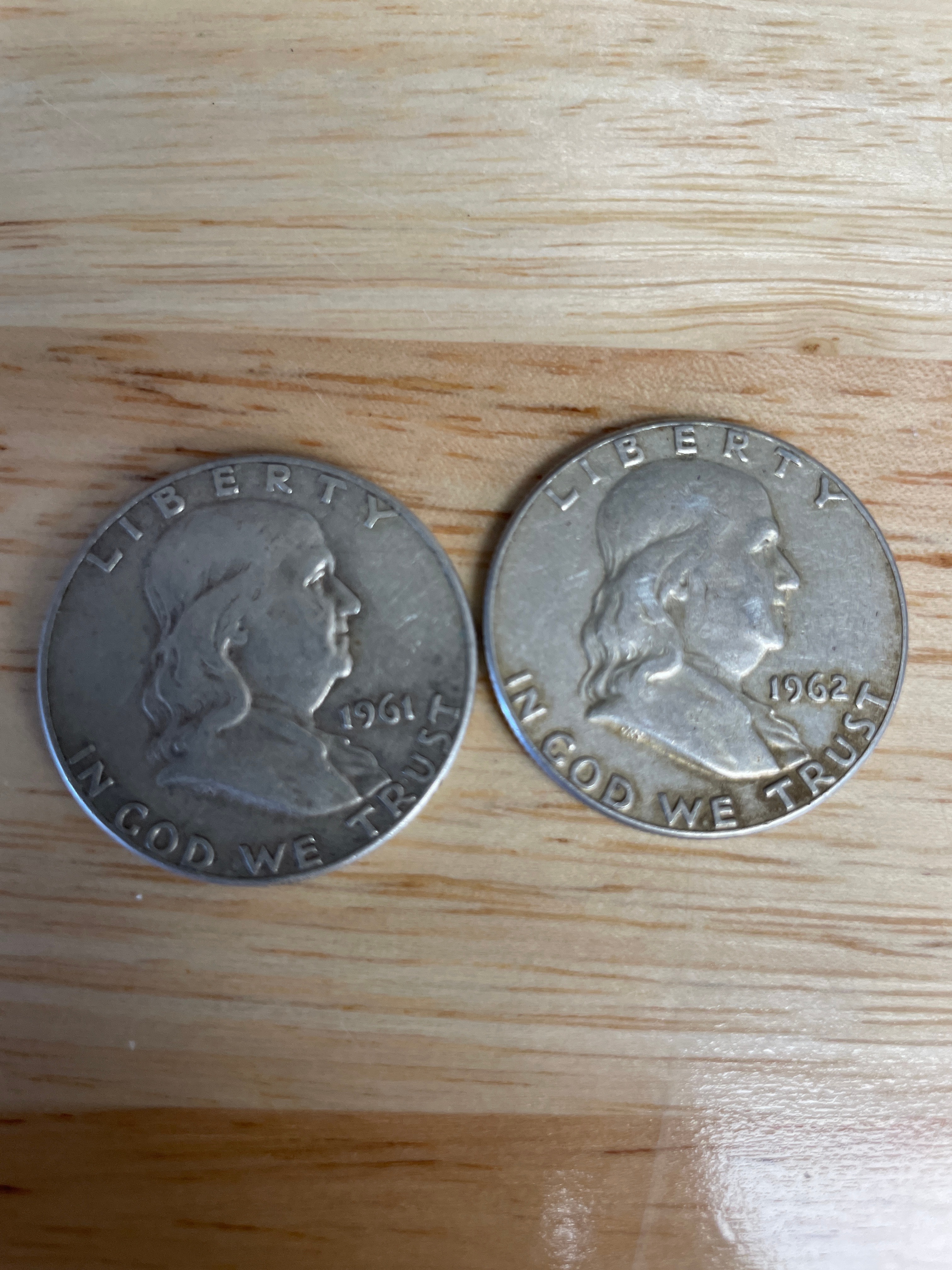 Two 1961 and 1962 90% Silver Franklin Half Dollar Coins