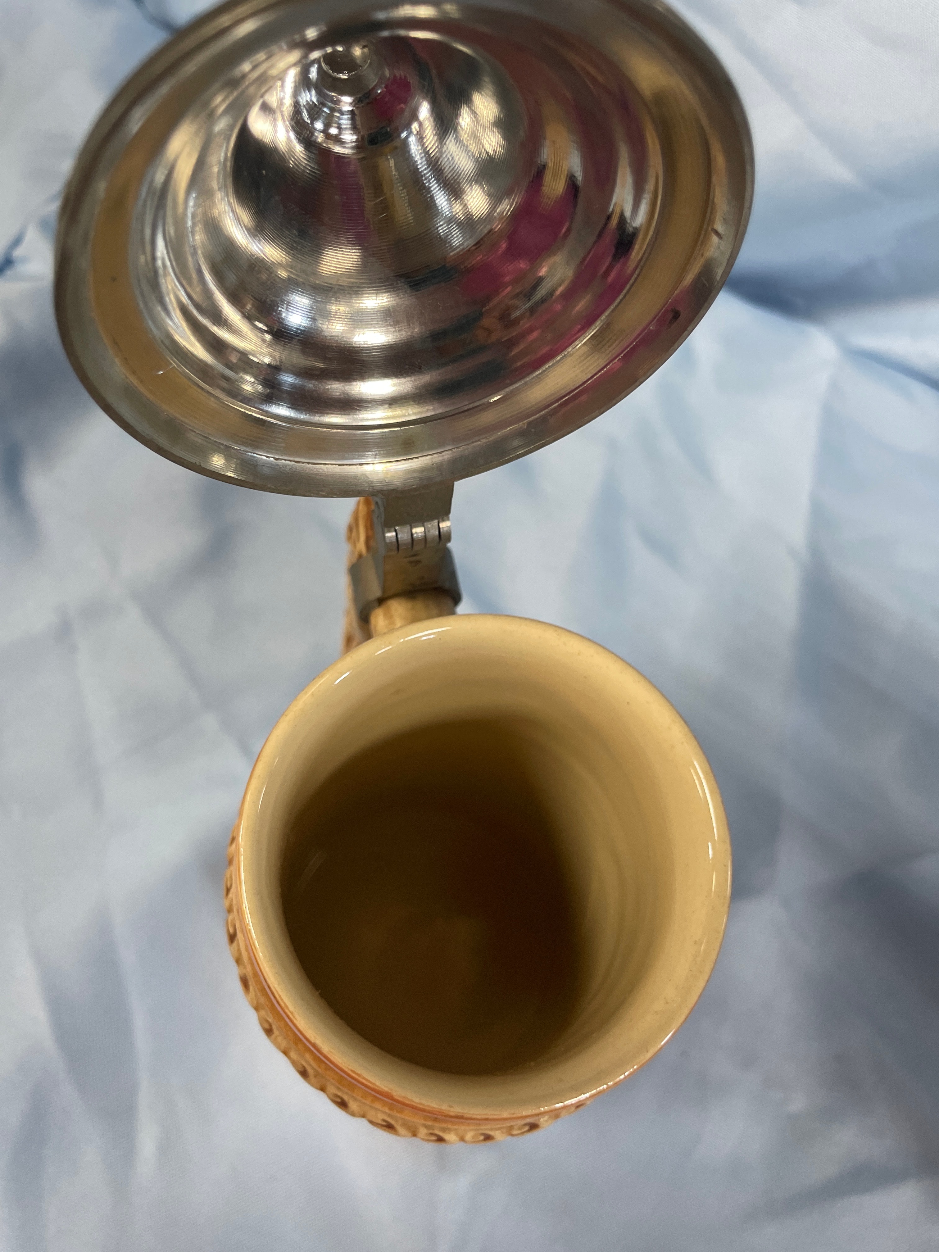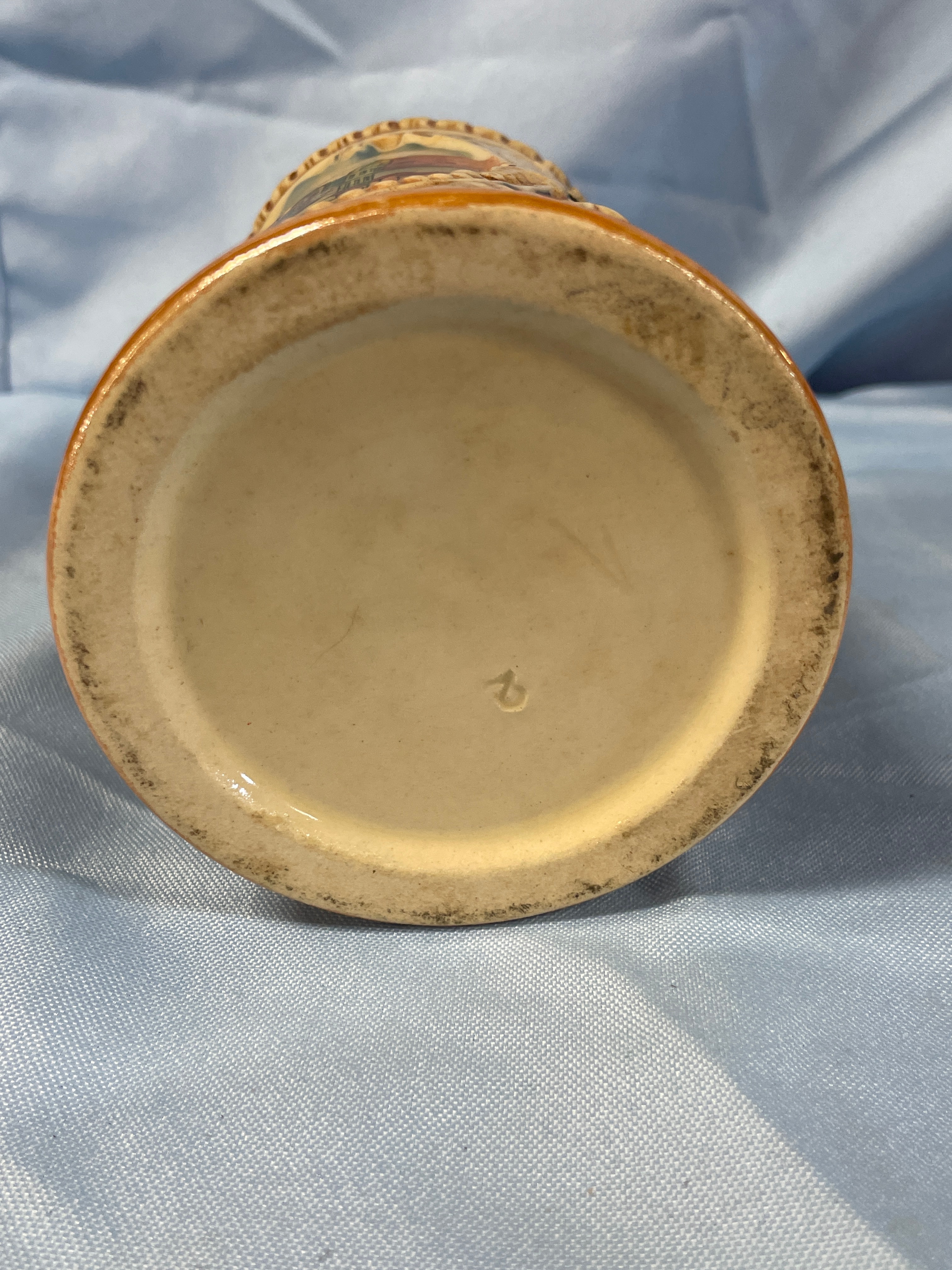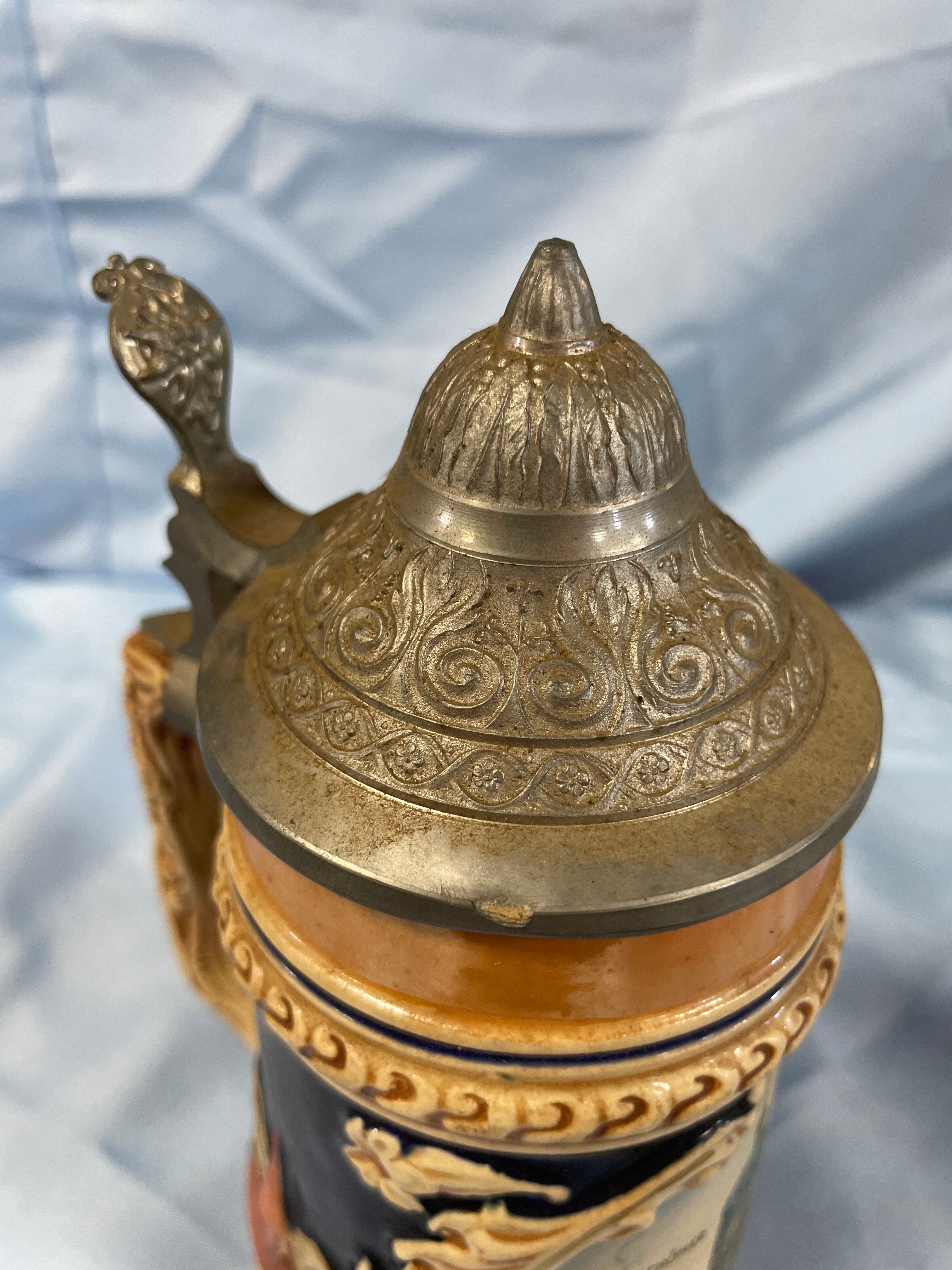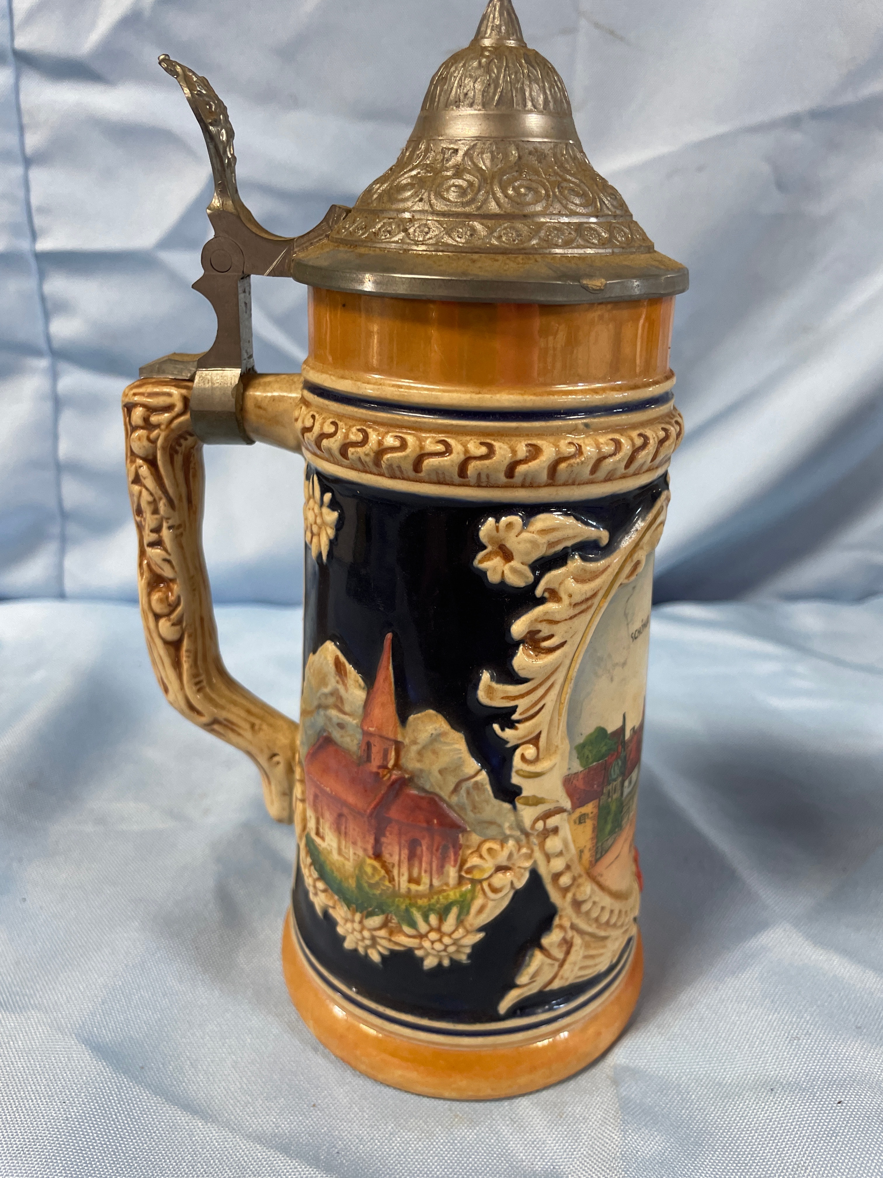 One German Ceramic Scenic Beer Stein with Pewter Lid