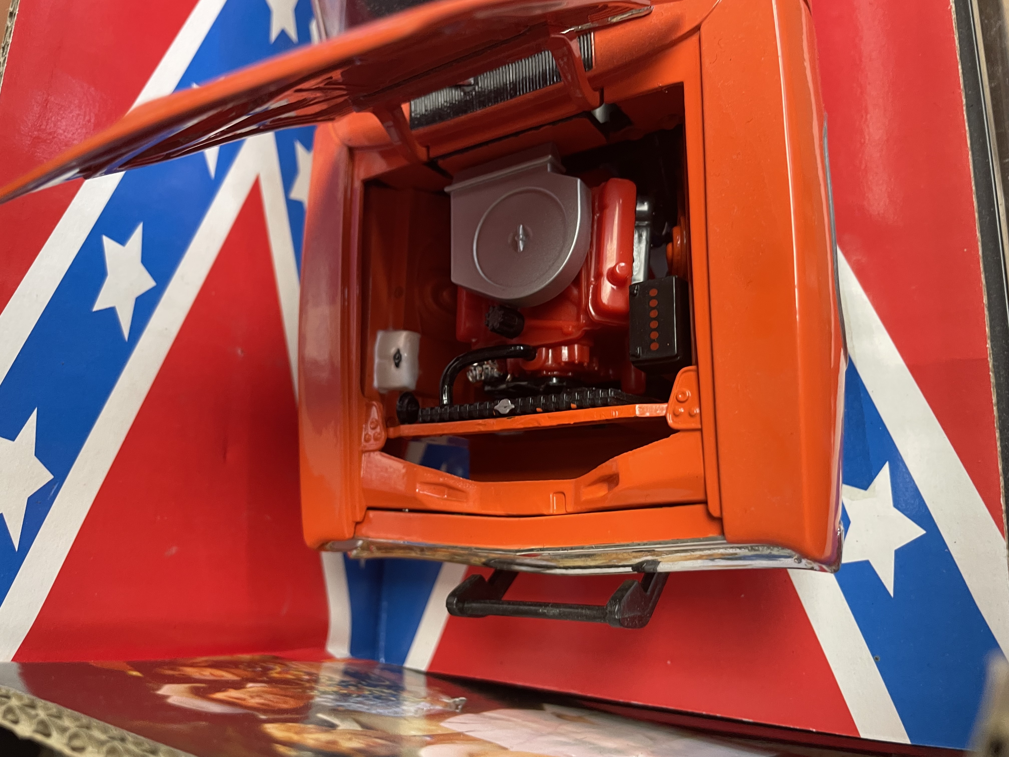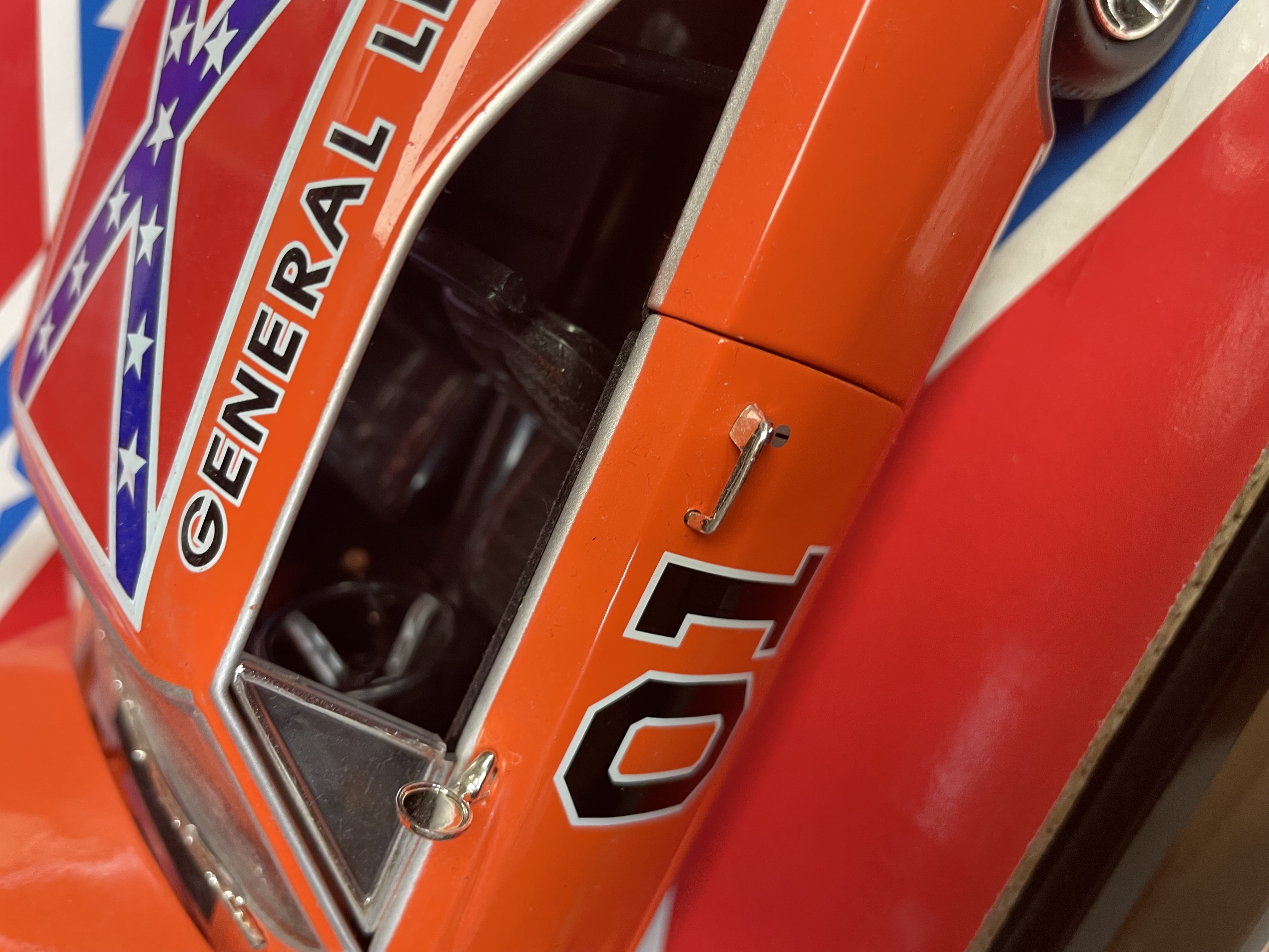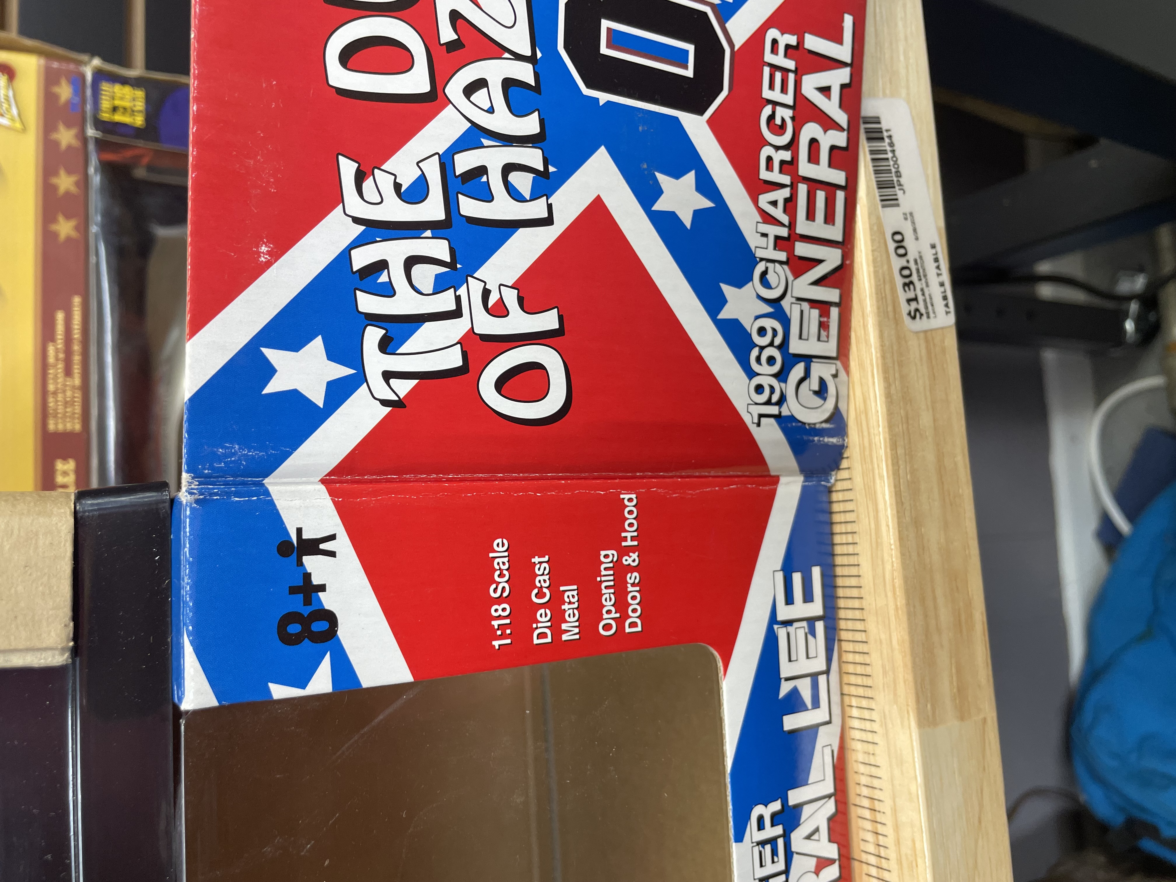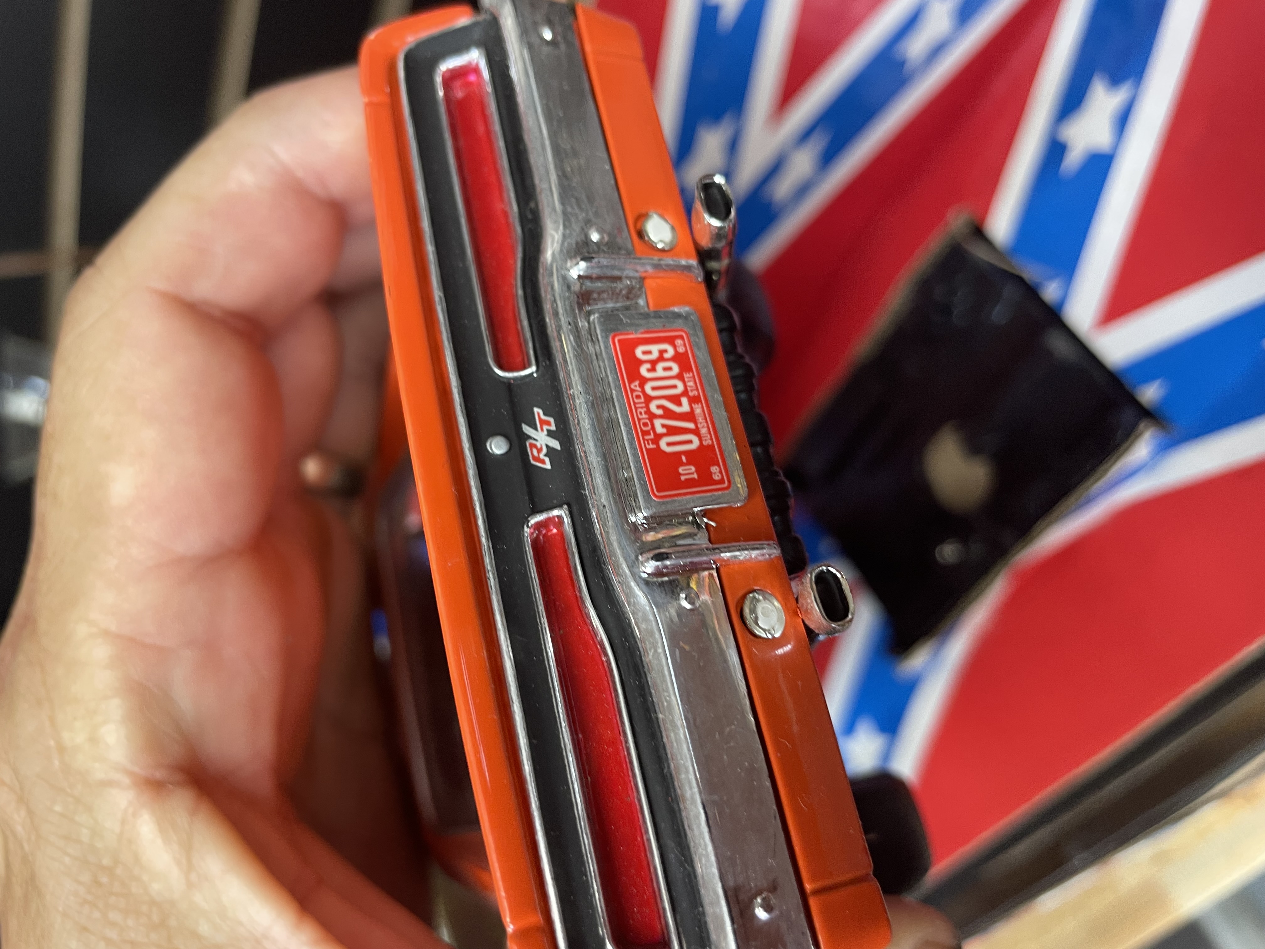 The Dukes of Hazard Diecast 1/18 American Muscle 69 Charger General Lee is a collectible toy vehicle made by Ertl in 2000. for some reason ERTL has a Florida tag dunno why but they are only maker that does this.